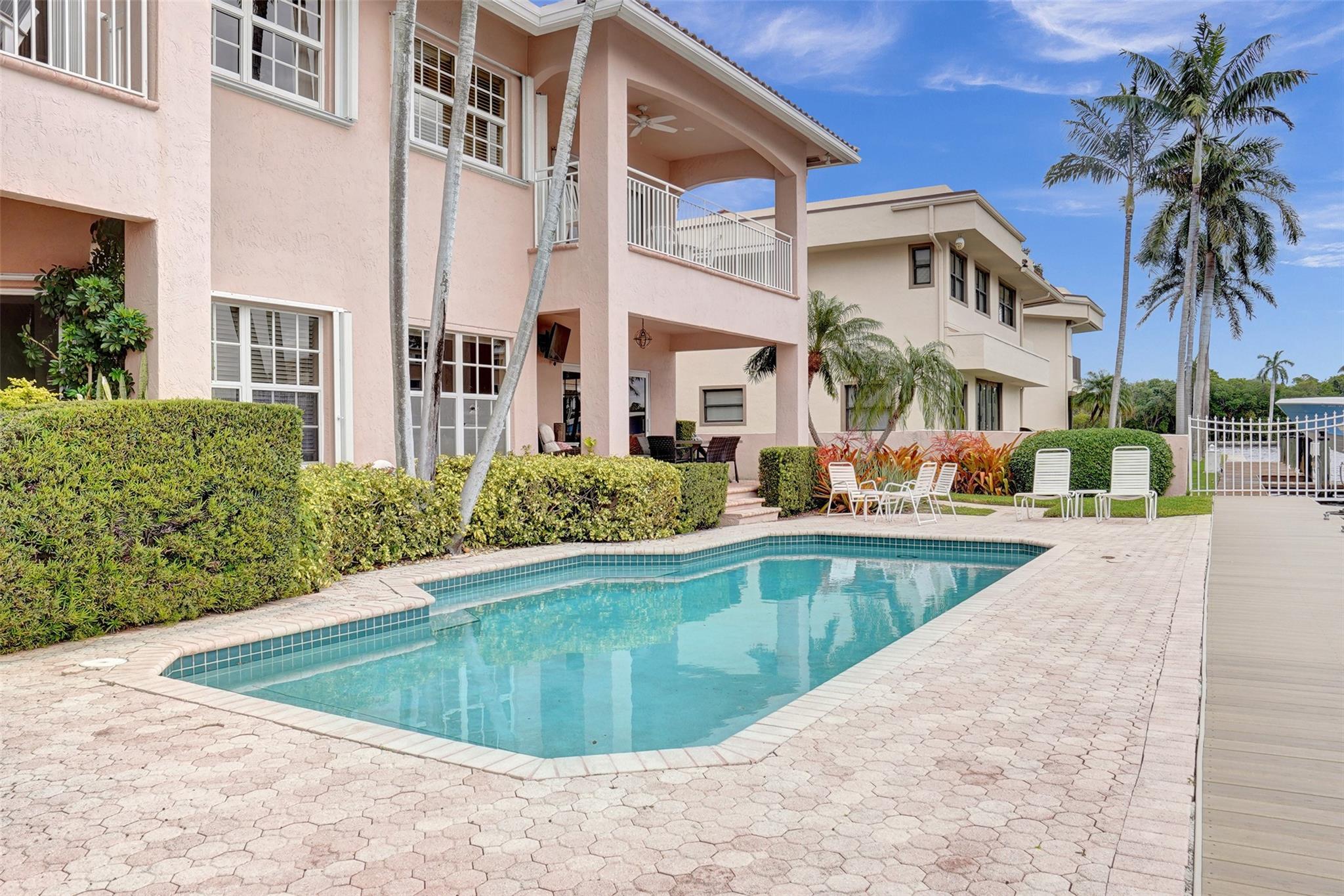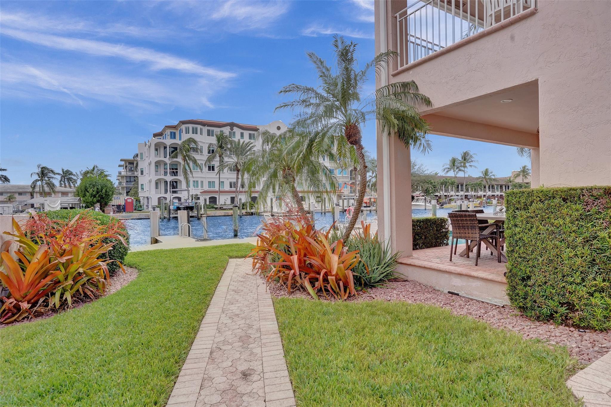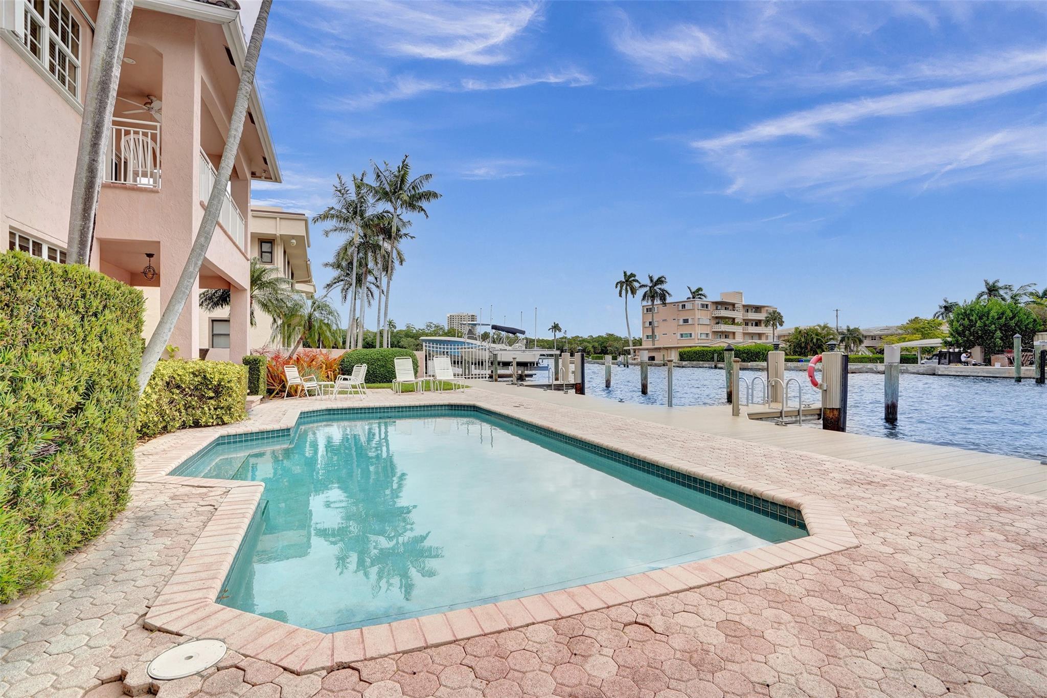 ***THIS UNIT IS RENTED UNTIL 11/30/2024**** Beautiful 2nd floor waterfront courtyard townhome condo w/ 2 bedrooms + bonus room, ideal for office/den. Overlooks Intracoastal & Birch State Park. Only 4 units in charming complex just off the point. 35′ dock & 1-car garage. Fantastic updated kitchen w/ granite counters & Miele & Viking appliances. Open & airy w/ vaulted ceilings. Walk-in closet. Jacuzzi tub + shower in master bathroom. Spacious balcony overlooking the waterway & heated pool. Minutes to beach, shopping & dining. Bayview school district.