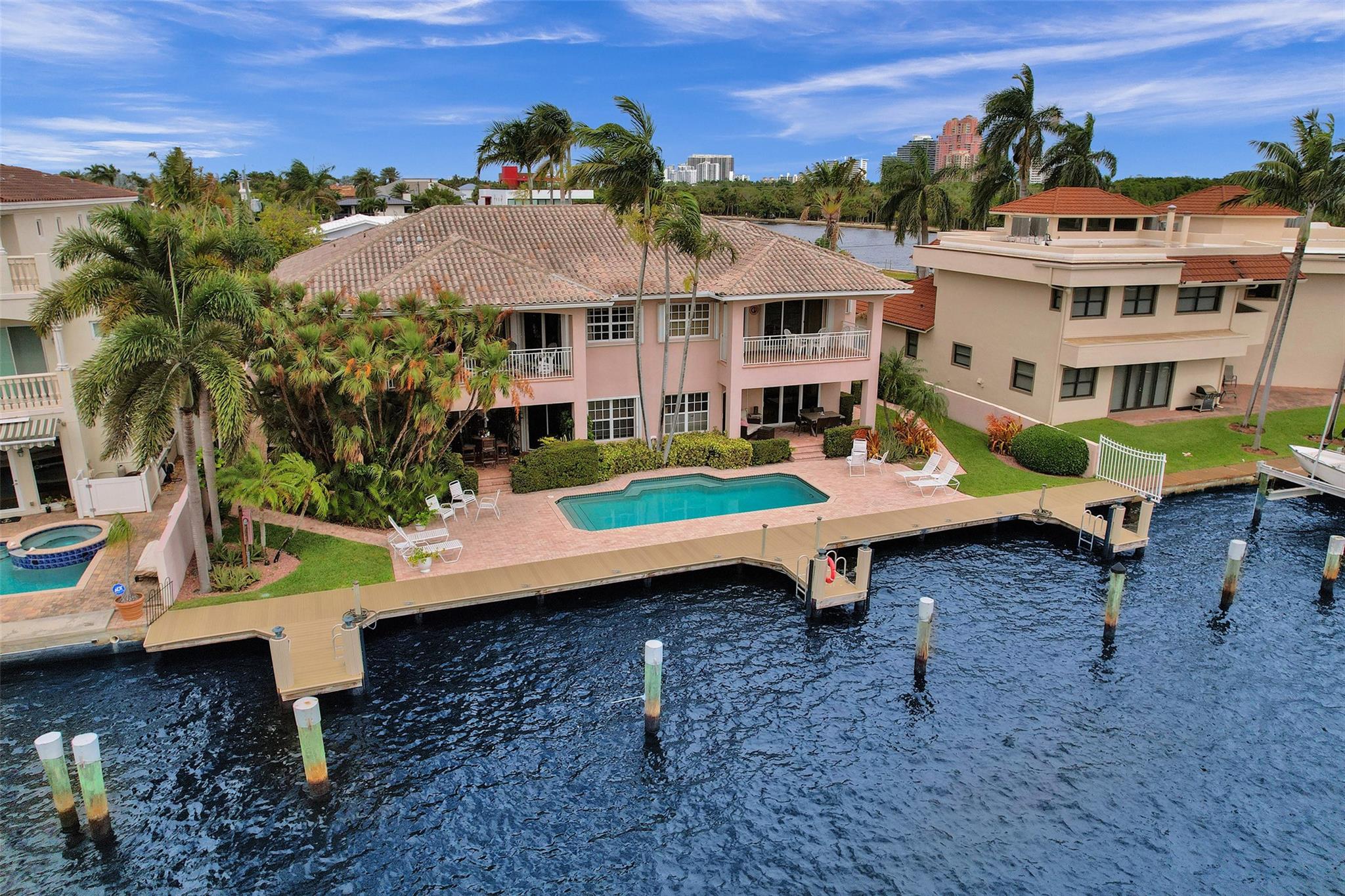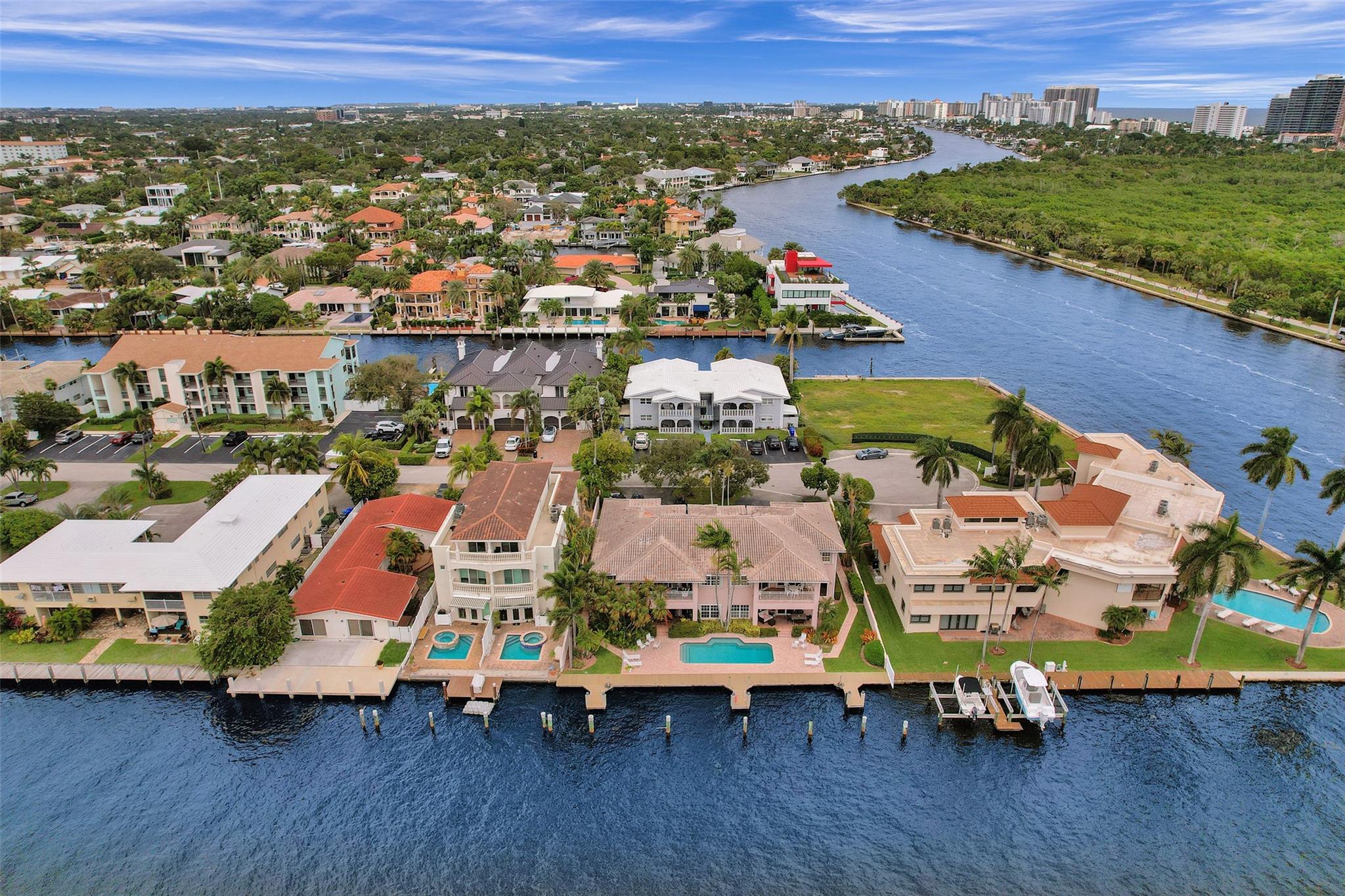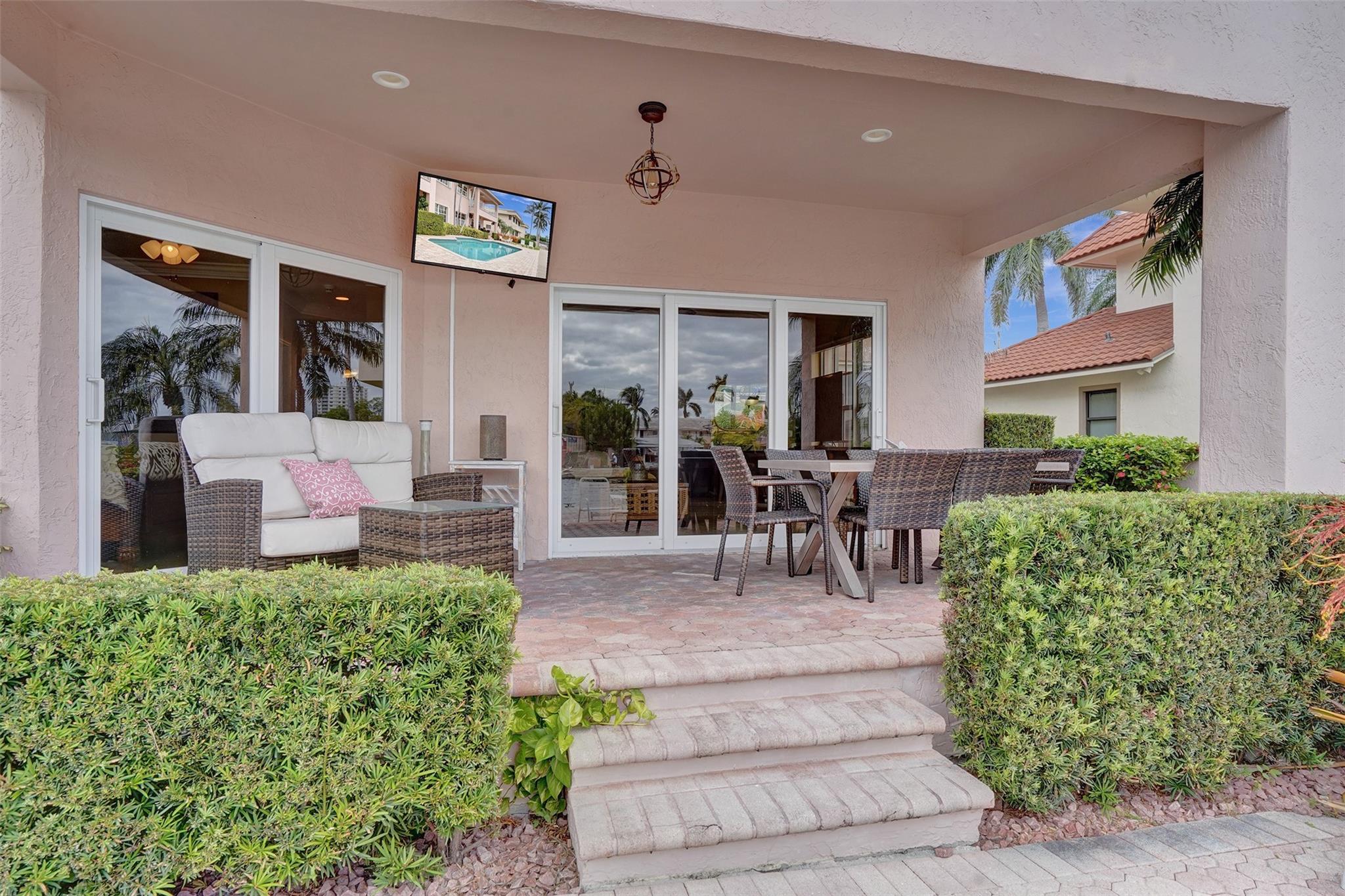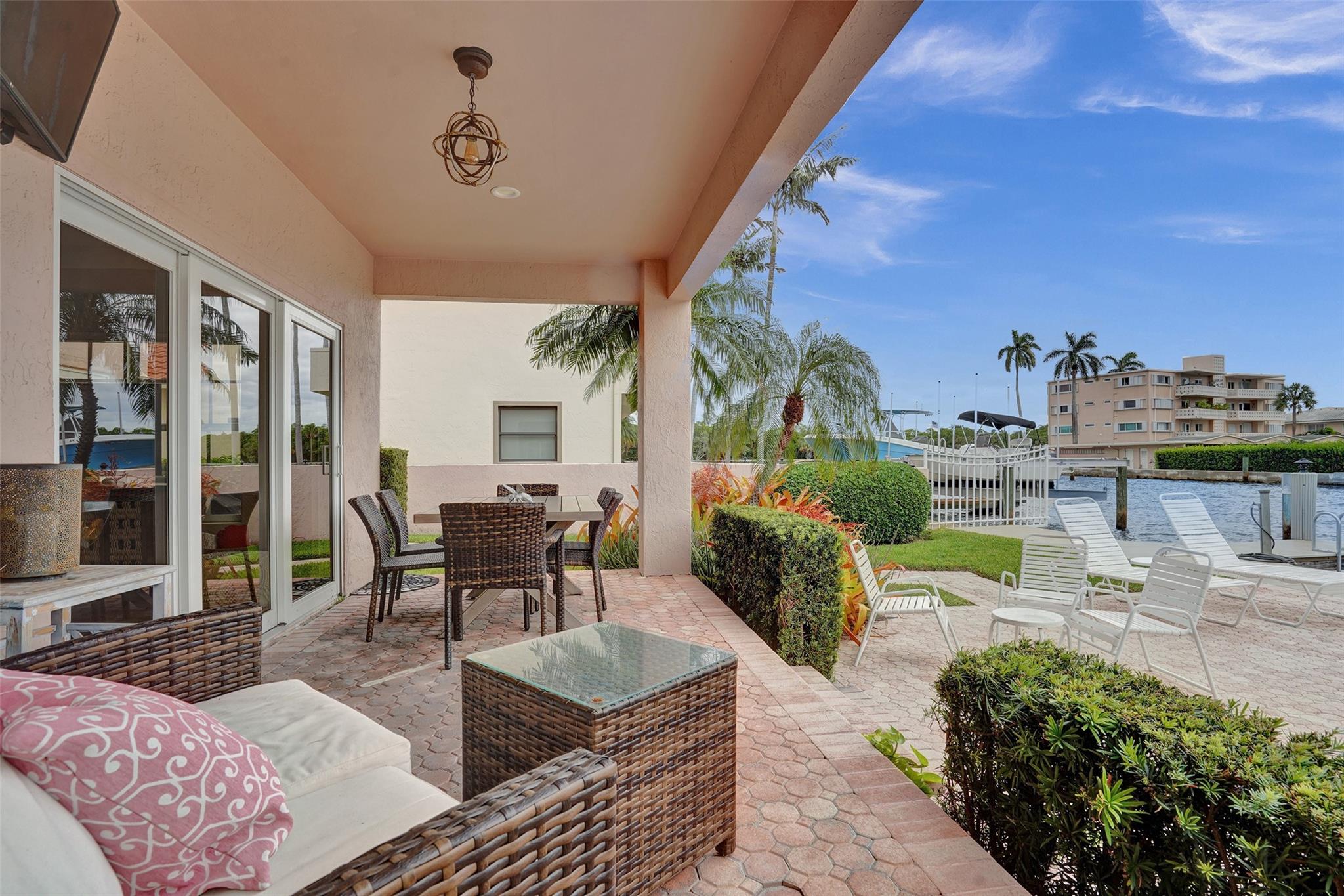 ***THIS UNIT IS RENTED UNTIL 11/30/2024**** Beautiful 2nd floor waterfront courtyard townhome condo w/ 2 bedrooms + bonus room, ideal for office/den. Overlooks Intracoastal & Birch State Park. Only 4 units in charming complex just off the point. 35′ dock & 1-car garage. Fantastic updated kitchen w/ granite counters & Miele & Viking appliances. Open & airy w/ vaulted ceilings. Walk-in closet. Jacuzzi tub + shower in master bathroom. Spacious balcony overlooking the waterway & heated pool. Minutes to beach, shopping & dining. Bayview school district.