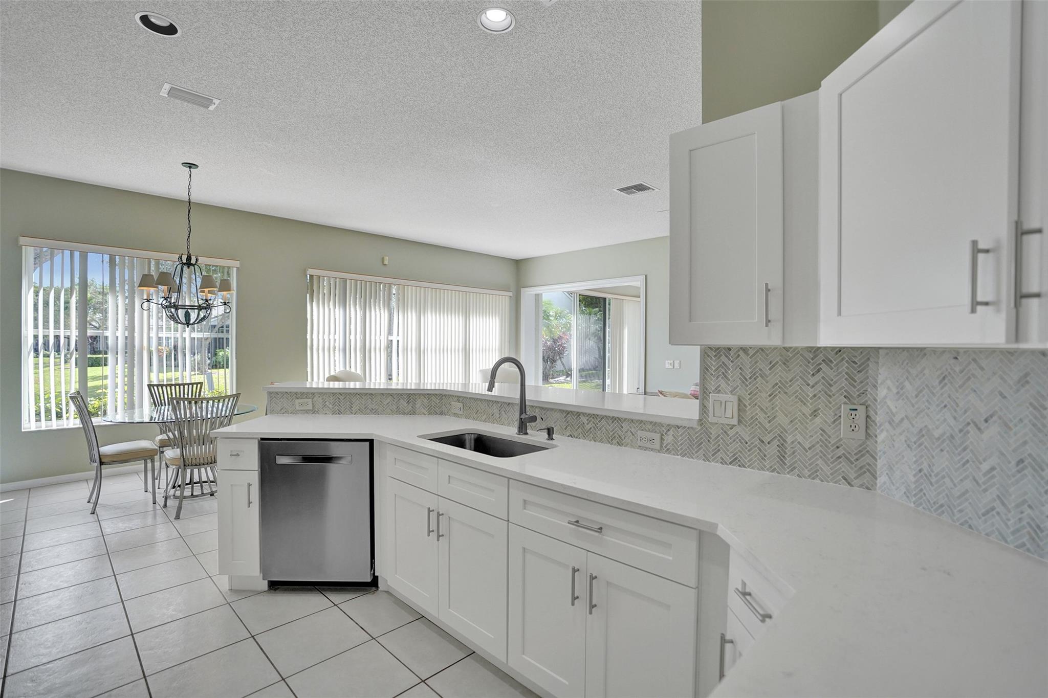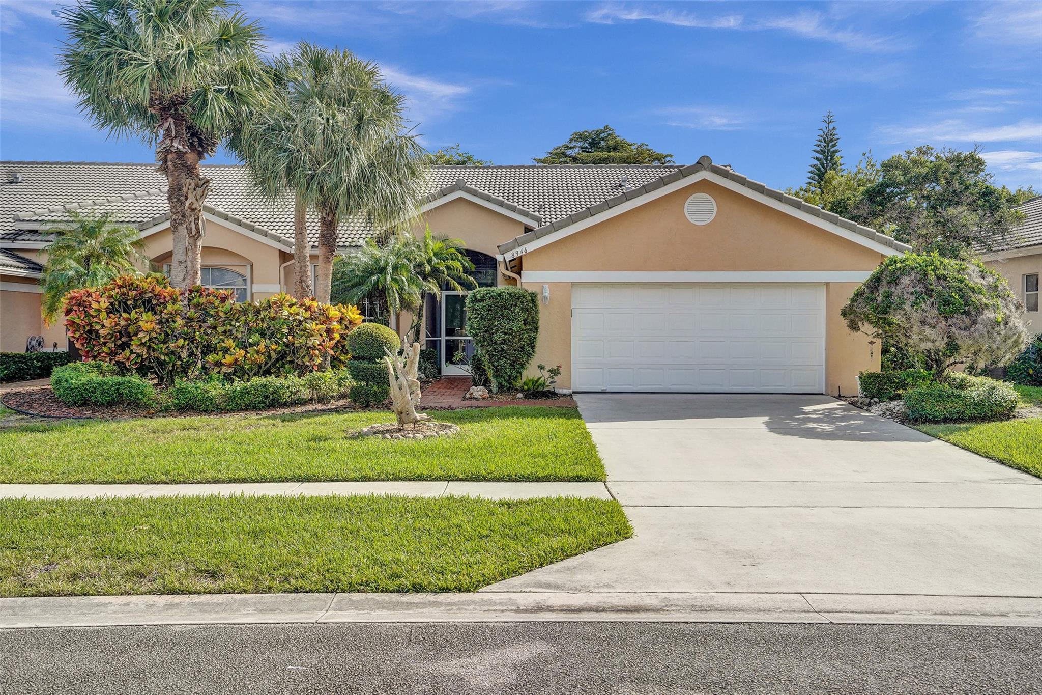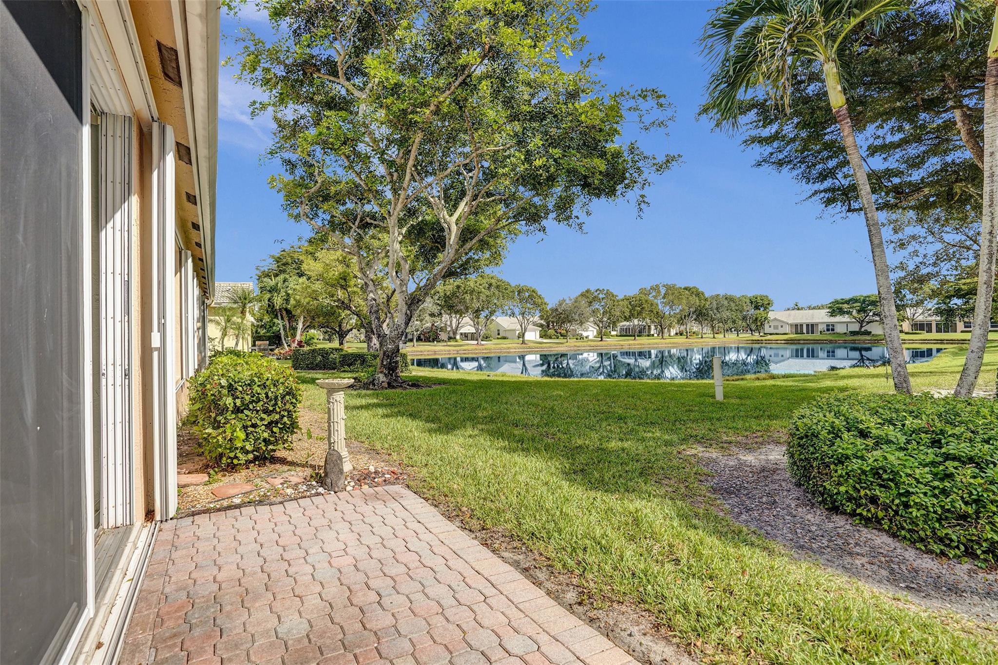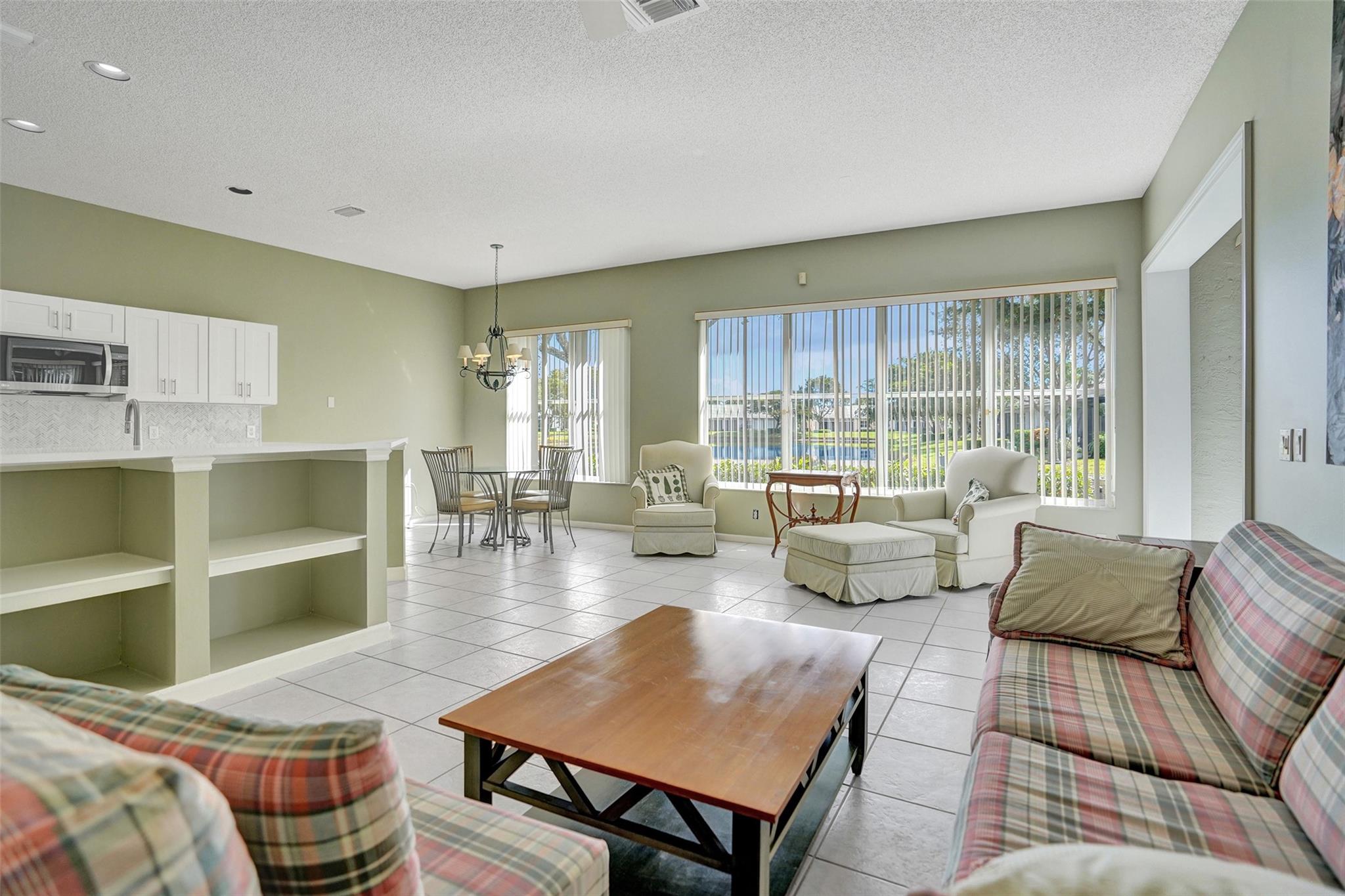 Lovely lake view villa in 55+ manned gated community of Brittany Lakes in Aberdeen Country Club. 2/2 plus den/office with 2 car garage features a large open floor plan with volume ceilings and recessed lighting. Home features a gorgeous upgraded kitchen with quartz countertops, SS appliances and breakfast bar. Accordion storm shutters. Tile and laminate floors throughout. Glass enclosed Florida room. Large primary bedroom with plenty of closet space, Bathroom boasts double sinks with separate tub and shower. AC 2 years old. Roof 2013. LIVE THE COUNTRY CLUB LIFESTYLE! Aberdeen Country Club is a MANDATORY MEMBERSHIP COUNTRY CLUB. Tom Fazio golf course/State of the art fitness and aquatic center, tennis, pickleball, 3 restaurants. Membership initial joining fees start at $75,500+ annual dues