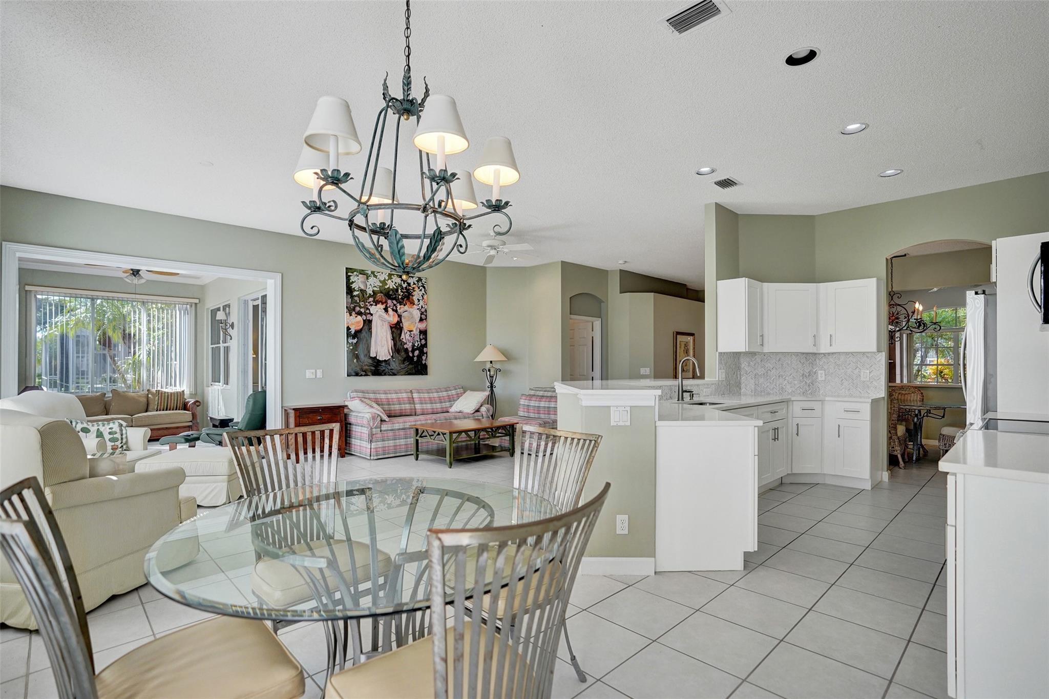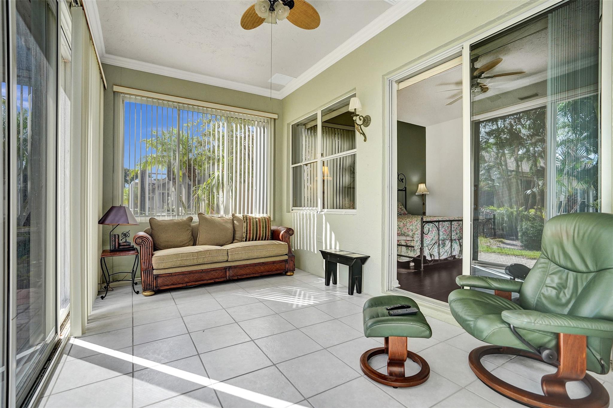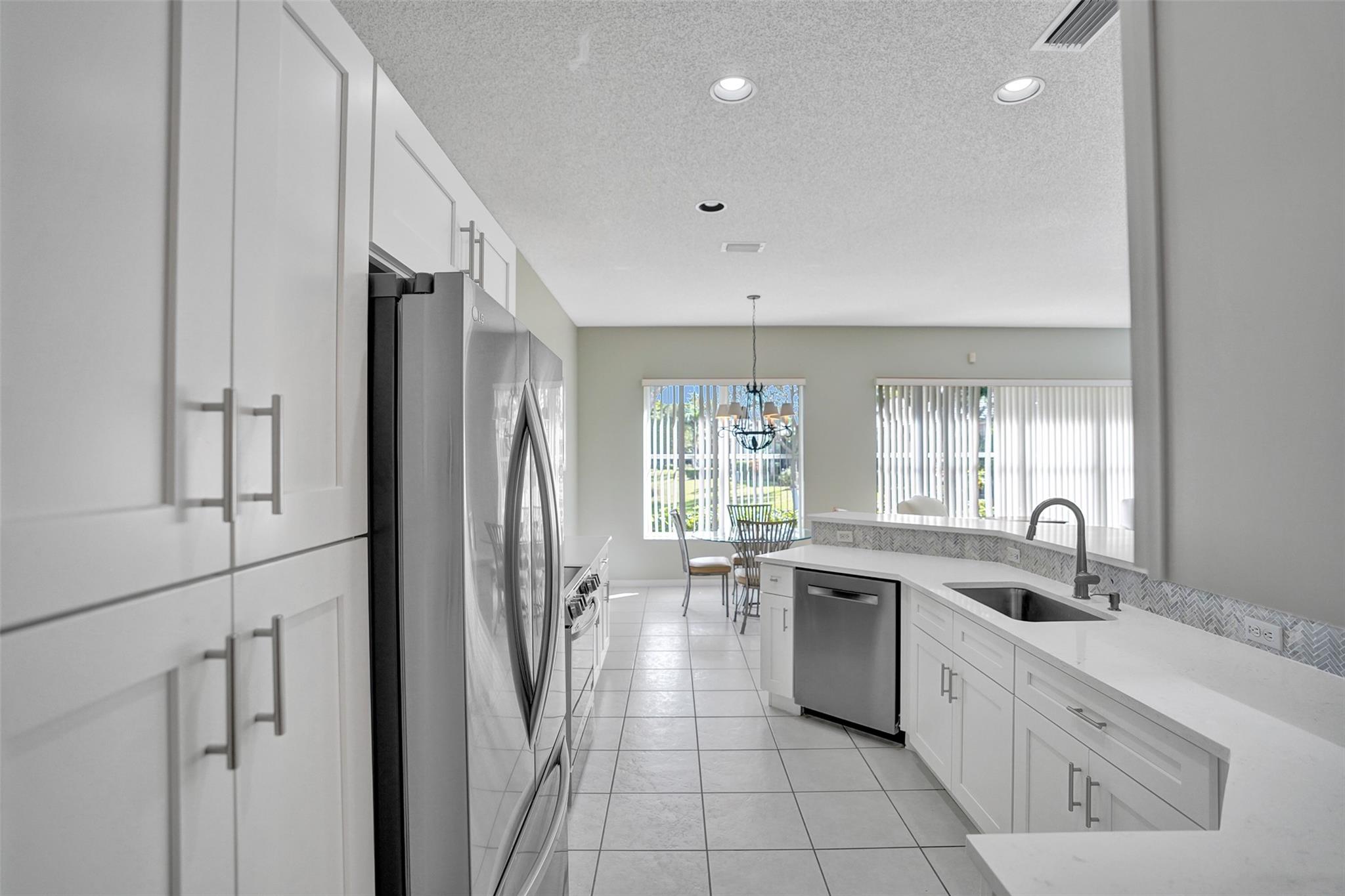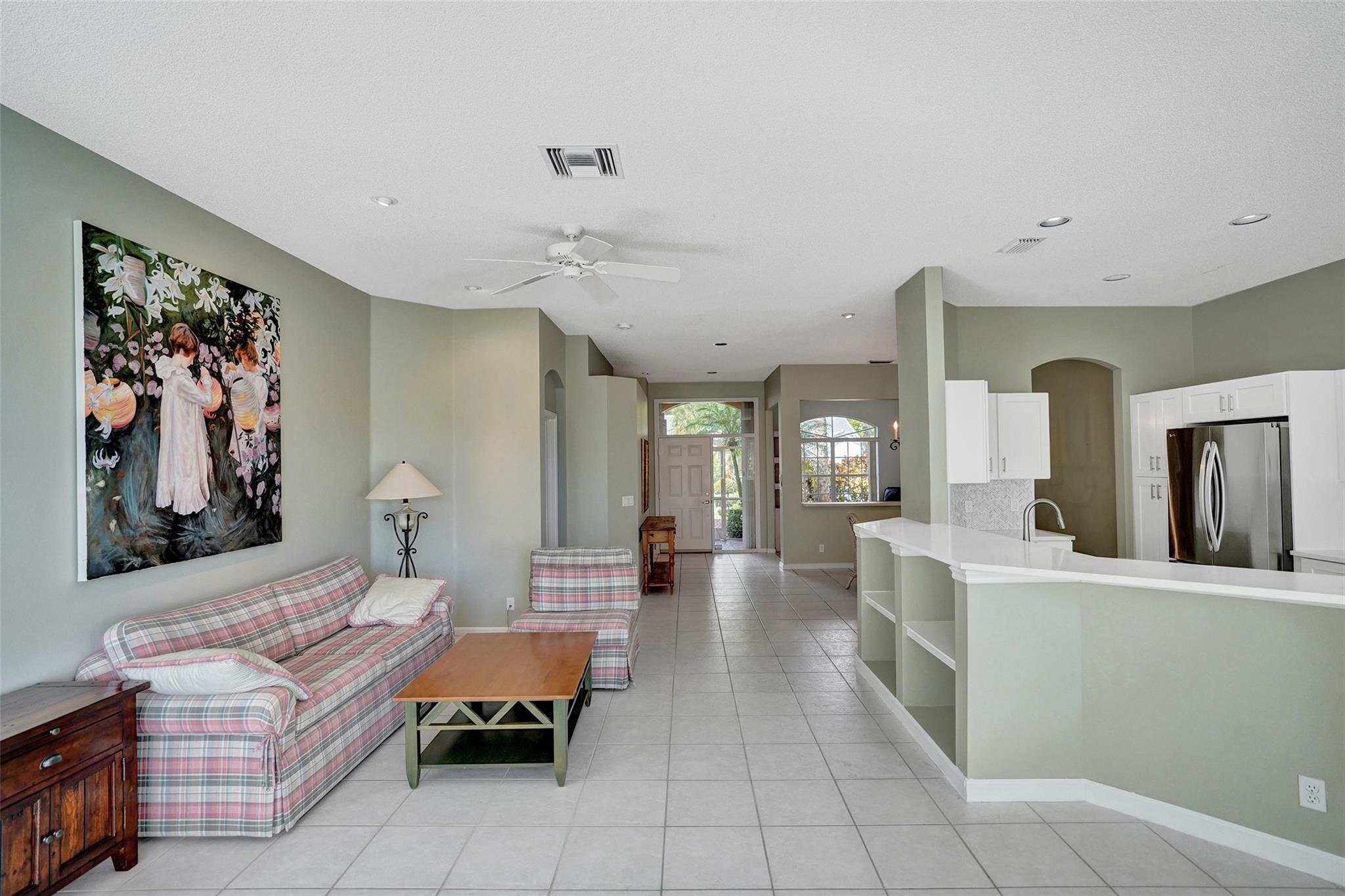 Lovely lake view villa in 55+ manned gated community of Brittany Lakes in Aberdeen Country Club. 2/2 plus den/office with 2 car garage features a large open floor plan with volume ceilings and recessed lighting. Home features a gorgeous upgraded kitchen with quartz countertops, SS appliances and breakfast bar. Accordion storm shutters. Tile and laminate floors throughout. Glass enclosed Florida room. Large primary bedroom with plenty of closet space, Bathroom boasts double sinks with separate tub and shower. AC 2 years old. Roof 2013. LIVE THE COUNTRY CLUB LIFESTYLE! Aberdeen Country Club is a MANDATORY MEMBERSHIP COUNTRY CLUB. Tom Fazio golf course/State of the art fitness and aquatic center, tennis, pickleball, 3 restaurants. Membership initial joining fees start at $75,500+ annual dues
