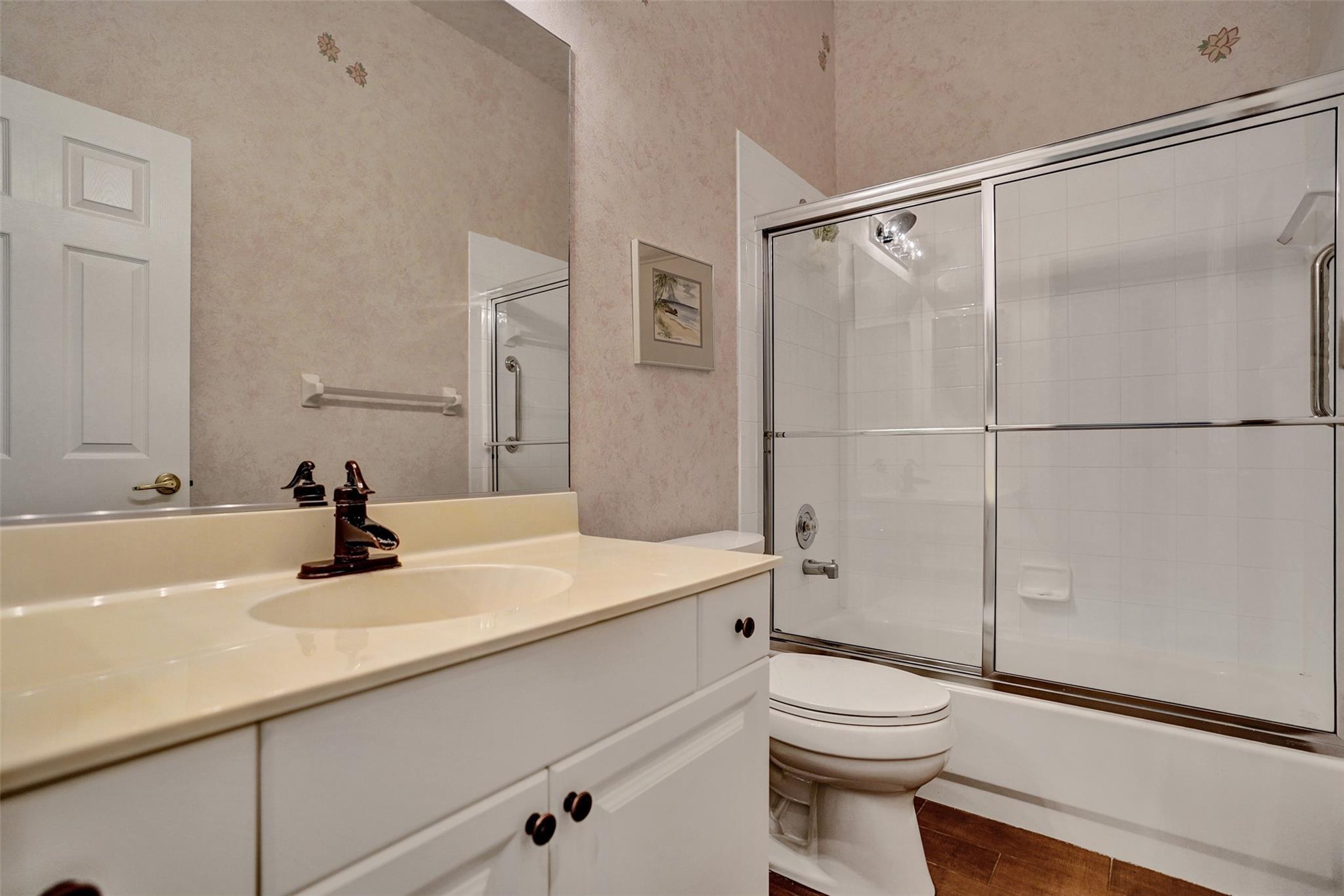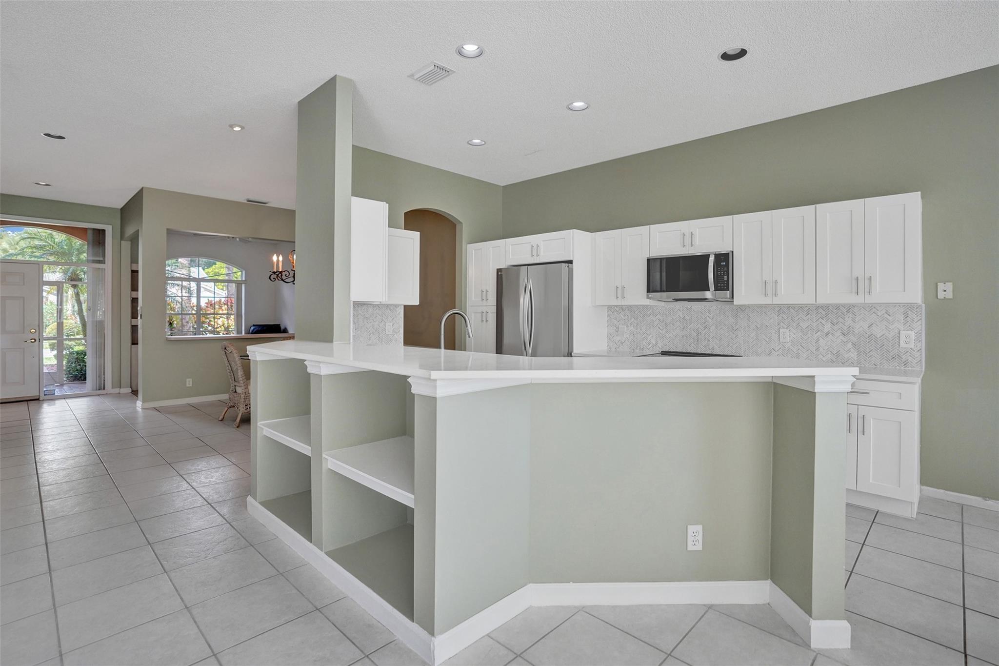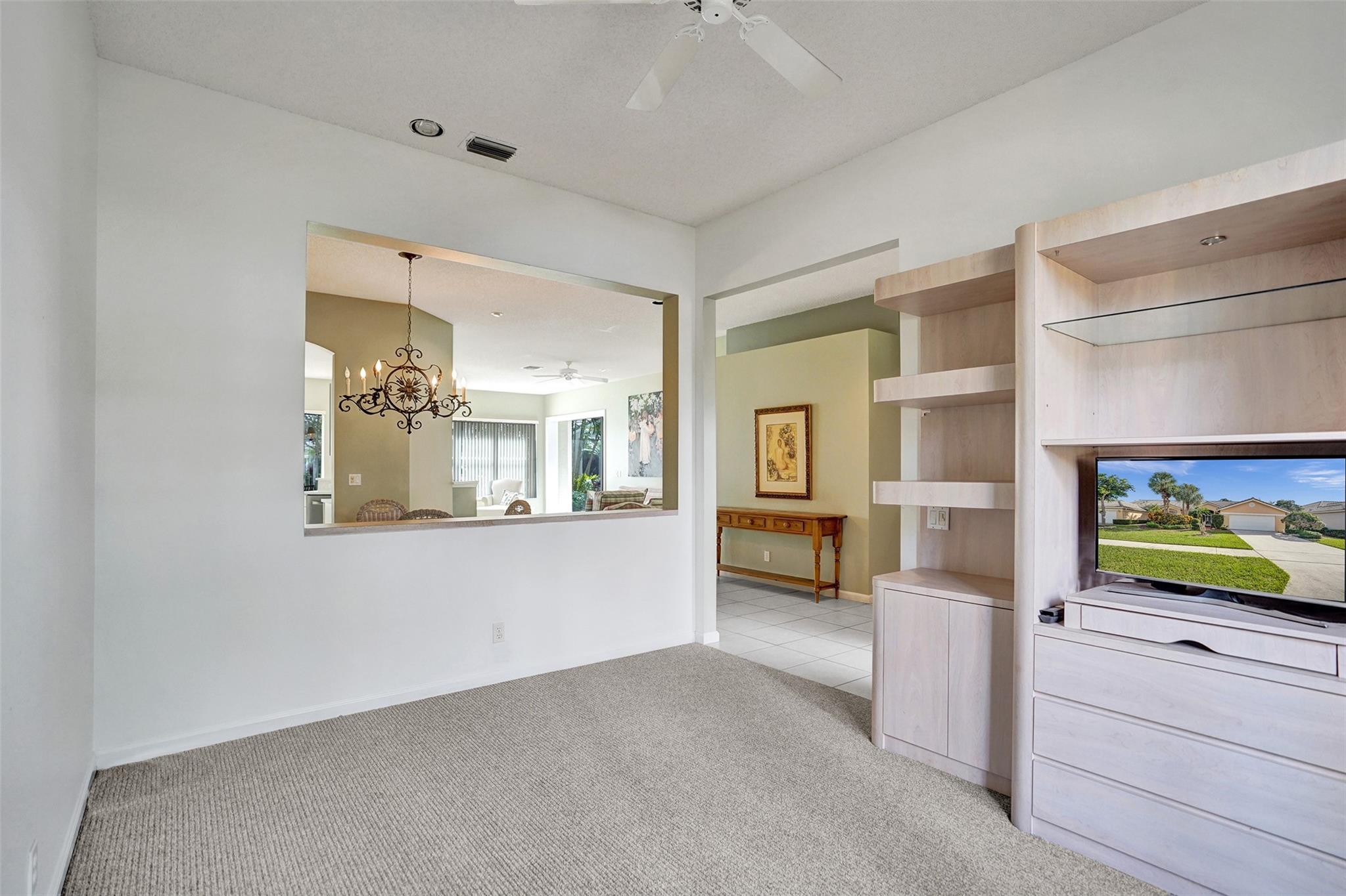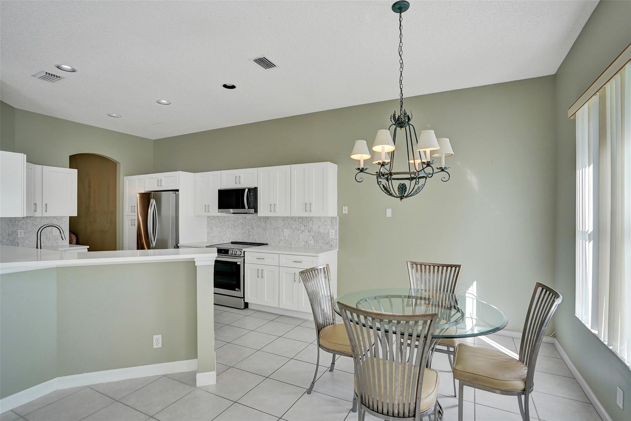 Lovely lake view villa in 55+ manned gated community of Brittany Lakes in Aberdeen Country Club. 2/2 plus den/office with 2 car garage features a large open floor plan with volume ceilings and recessed lighting. Home features a gorgeous upgraded kitchen with quartz countertops, SS appliances and breakfast bar. Accordion storm shutters. Tile and laminate floors throughout. Glass enclosed Florida room. Large primary bedroom with plenty of closet space, Bathroom boasts double sinks with separate tub and shower. AC 2 years old. Roof 2013. LIVE THE COUNTRY CLUB LIFESTYLE! Aberdeen Country Club is a MANDATORY MEMBERSHIP COUNTRY CLUB. Tom Fazio golf course/State of the art fitness and aquatic center, tennis, pickleball, 3 restaurants. Membership initial joining fees start at $75,500+ annual dues