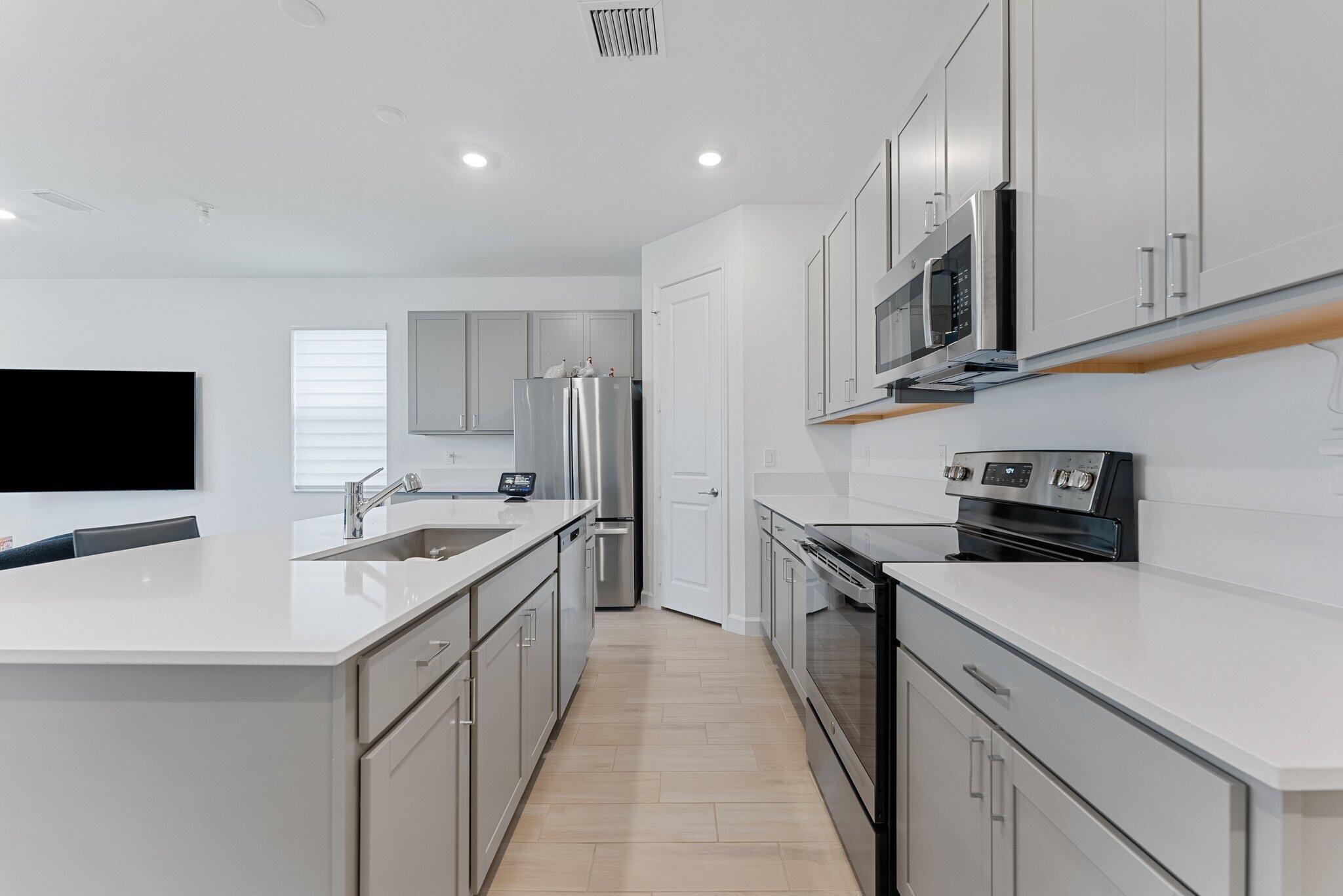 2024 built home on a cul-a-sac with Water views throughout the home, custom primary designed closets and glass shower, custom laundry with cabinets and counter, new recessed and pendant lights, alarms and cameras, quarts countertops, Impact Windows, 2 car garage, open floor plan and brand new appliances, new automatic blinds, and NO carpet in any of the rooms. Close by to 95 and FL Turnpike, shopping and restaurants