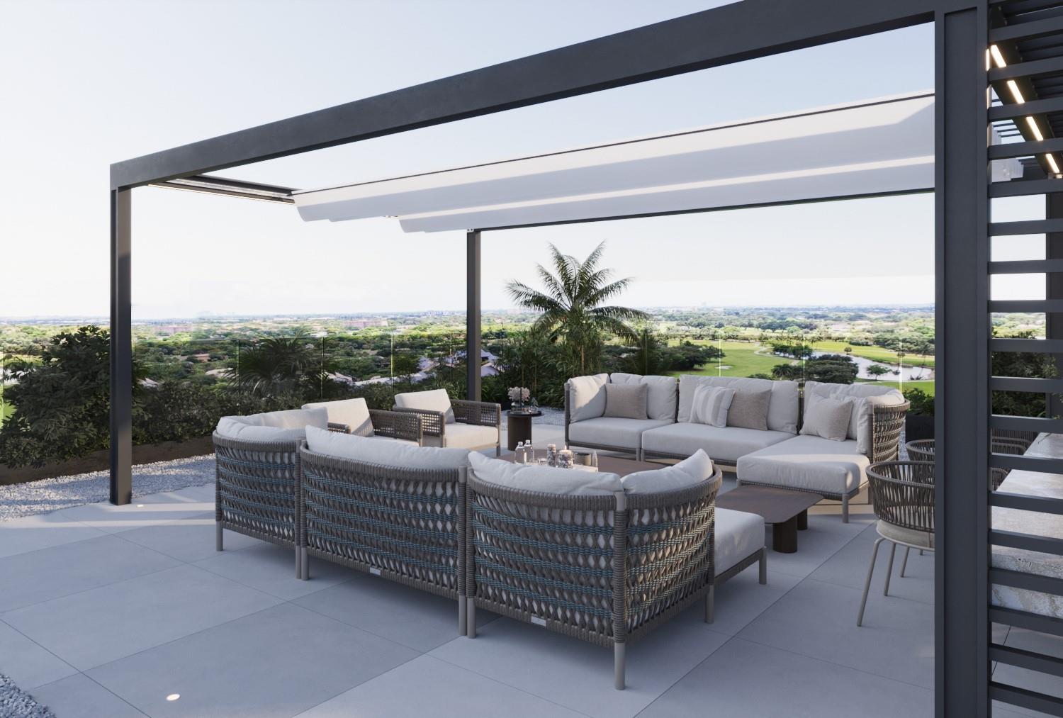 This ultra-luxury residence offers an unparalleled blend of elegance, comfort, and sophistication. Nestled alongside a scenic golf course, the home boasts a stunning rooftop terrace with breathtaking panoramic views. At the heart of the property is a large, resort-style pool, complemented by a cabana bath for ultimate convenience.
