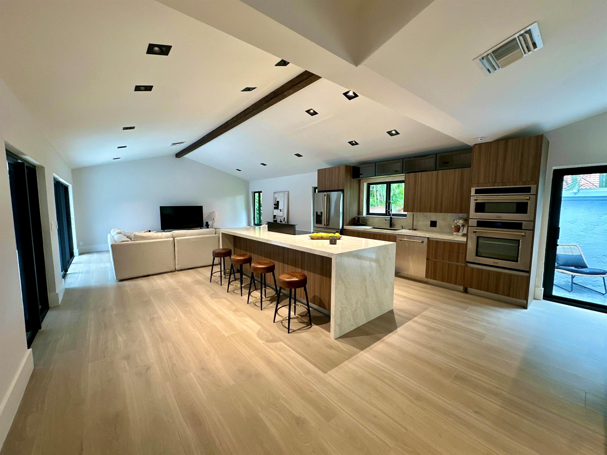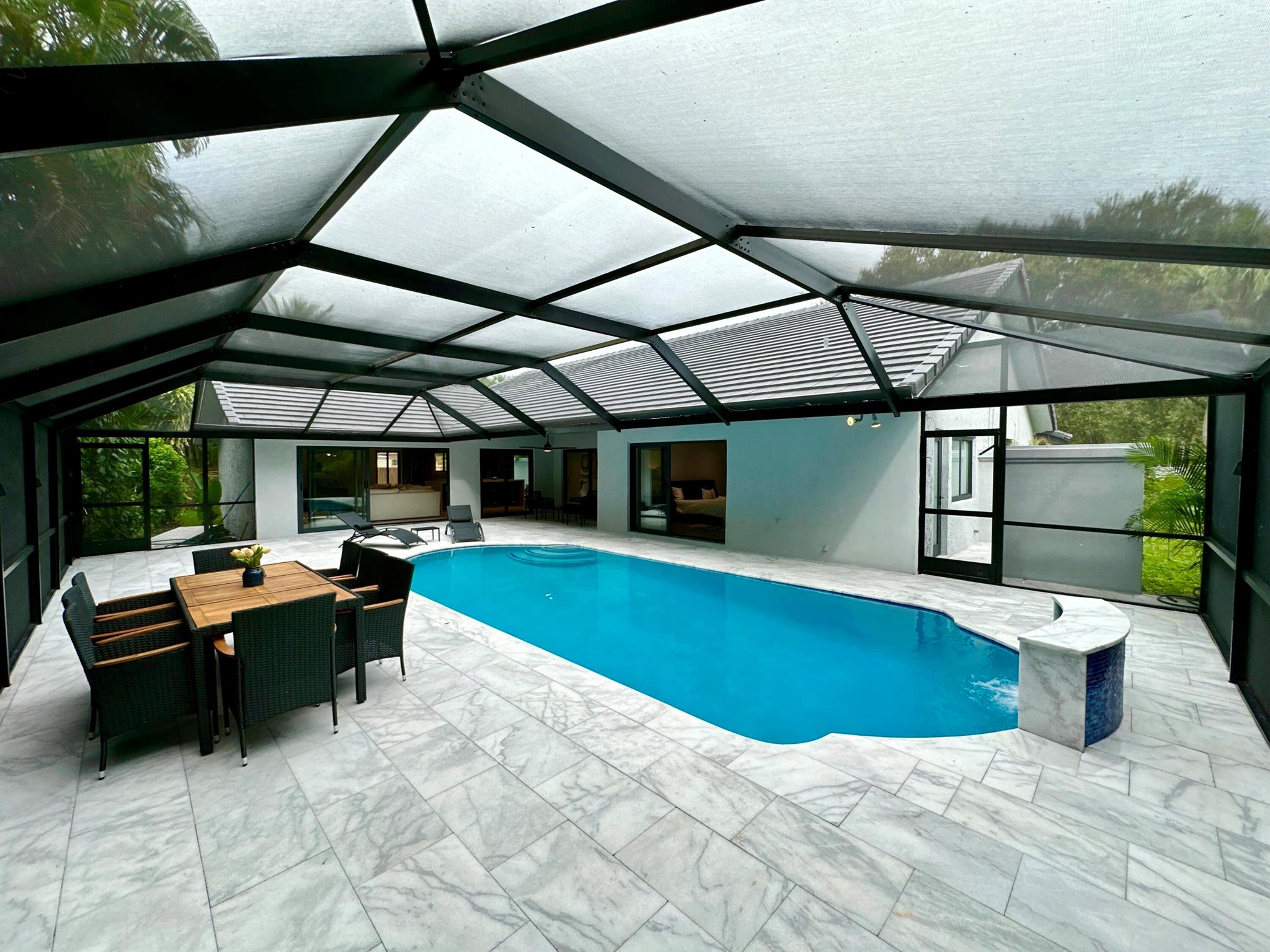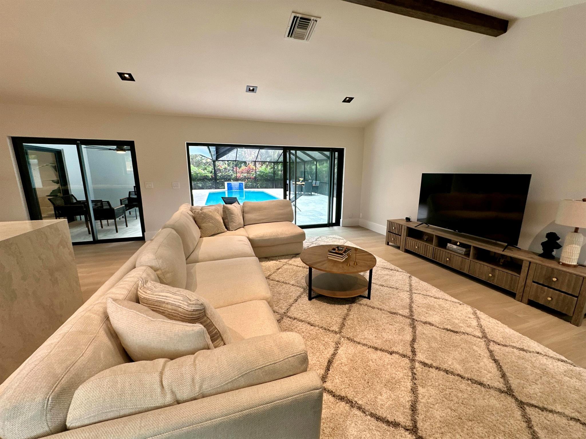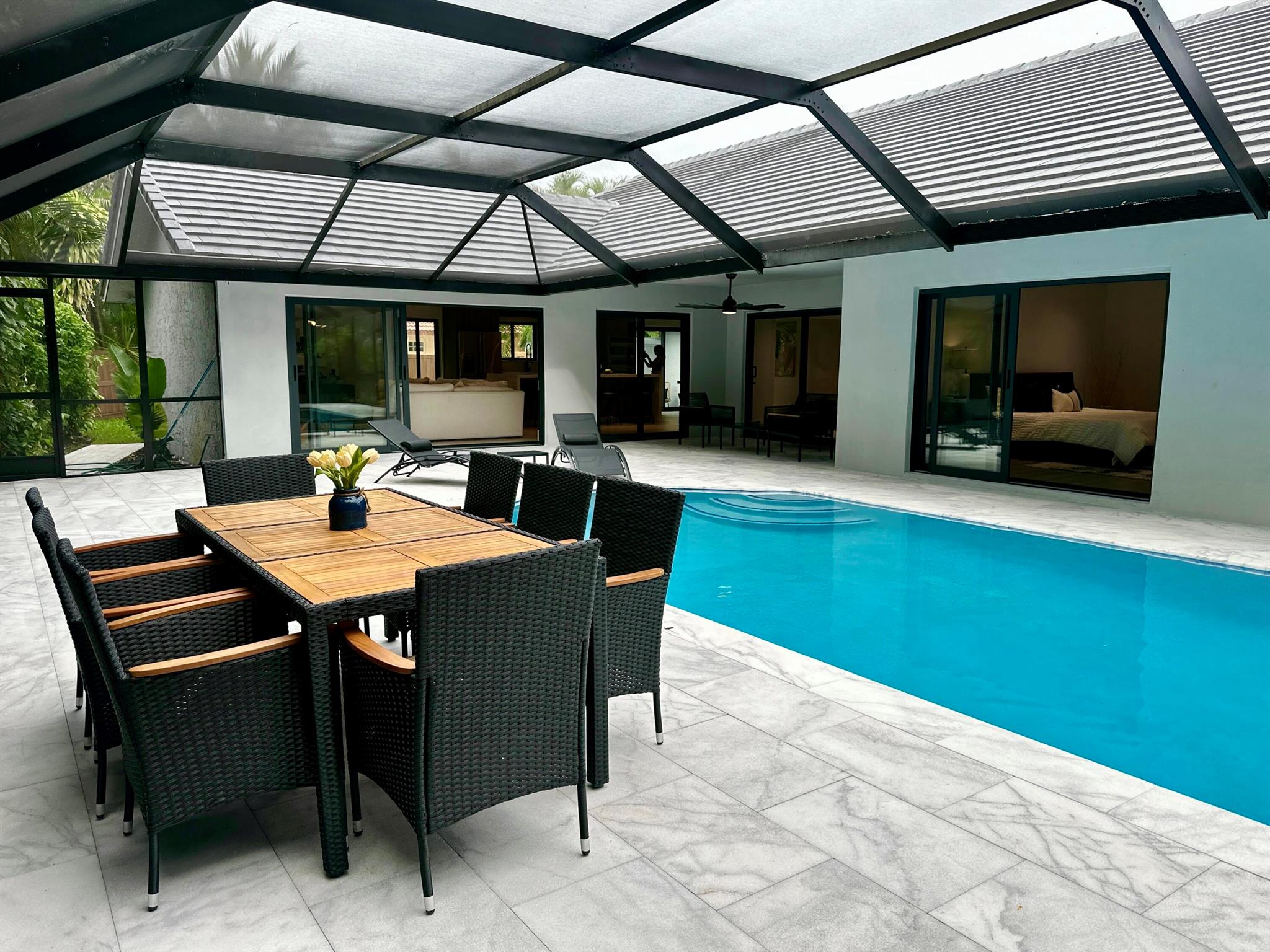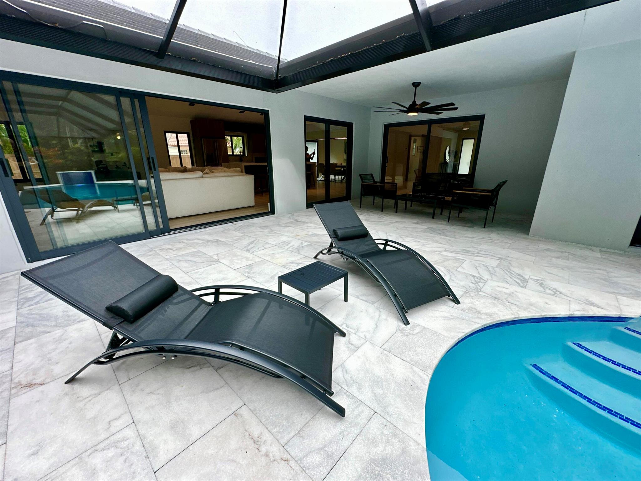Step into luxury with this completely renovated home that exemplifies high-end living! Featuring a stunning pool and designer finishes throughout, this property is a true gem. The European-style custom kitchen is a chef’s dream, equipped with top-of-the-line appliances and elegant porcelain countertops, perfect for culinary enthusiasts. Gorgeous tile floors sweep across the spacious living areas, blending style and functionality effortlessly.This home has been fully upgraded with a new tile roof, ensuring durability and peace of mind for years to come. Enjoy the comfort of brand-new A/C units and a new water heater, along with new sprinklers for an easy-care landscape. The new impact windows and doors not only enhance safety but also improve energy efficiency.