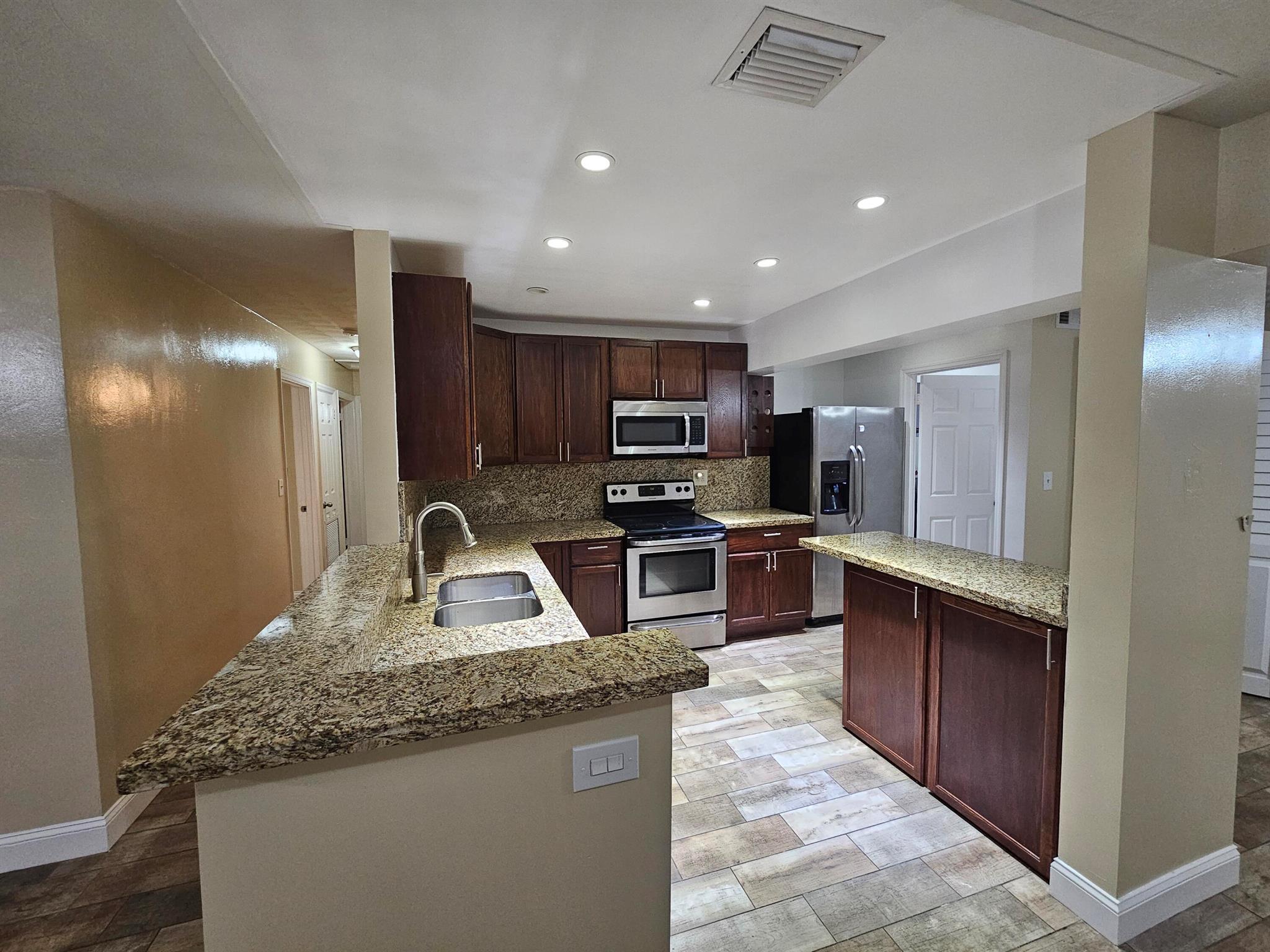Price Reduction! This spacious and beautifully updated 4-bedroom, 2-bathroom home offers modern living at its best! One of the largest homes in the neighborhood, it features stylish finishes and upgrades throughout. The large, gourmet kitchen, complete with a pantry, is perfect for home chefs, and the indoor laundry room offers added convenience with ample shelving and hanging space.Step outside to a versatile backyard ideal for entertaining, featuring a covered summer kitchen with lighting and electrical hookups. Both driveways have been recently resurfaced, providing space for up to 4 vehicles.