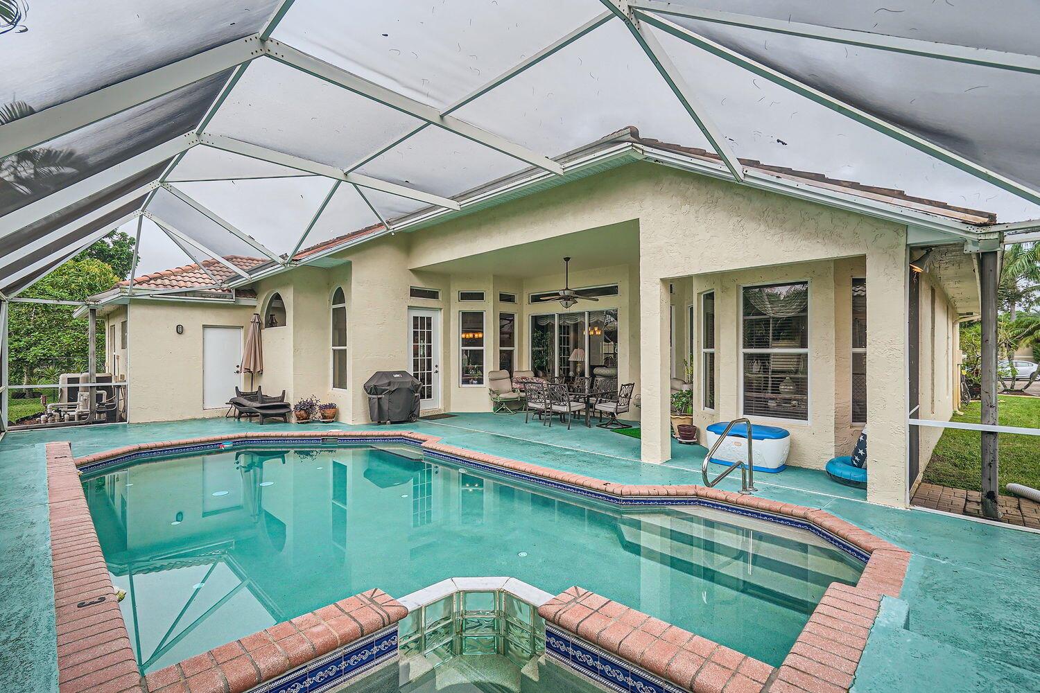 MASSIVE PRICE CUT! THIS IS THE ONE! Voted Safest community in Palm Beach County! Nestled in the prestigious Estates of Royal Palm Beach, this stunning 4-bedroom, 3-bath lakefront home offers serene living with beautiful water views. Unmatched privacy and safety abound on this peaceful cul de sac. Enjoy the spacious and well-maintained, the open-concept layout boasts abundant natural light and modern finishes. The kitchen is both spacious and chef friendly. Enjoy lake views from the master suite, living or family rooms. Outside, the well-kept yard and screened in pool area overlook your lake perfect for relaxing or fishing. Amenities include walking paths, a playground, and 24/7 manned guardhouse. Check out our list of upgrades in the documents tab! Call now for a private showing!