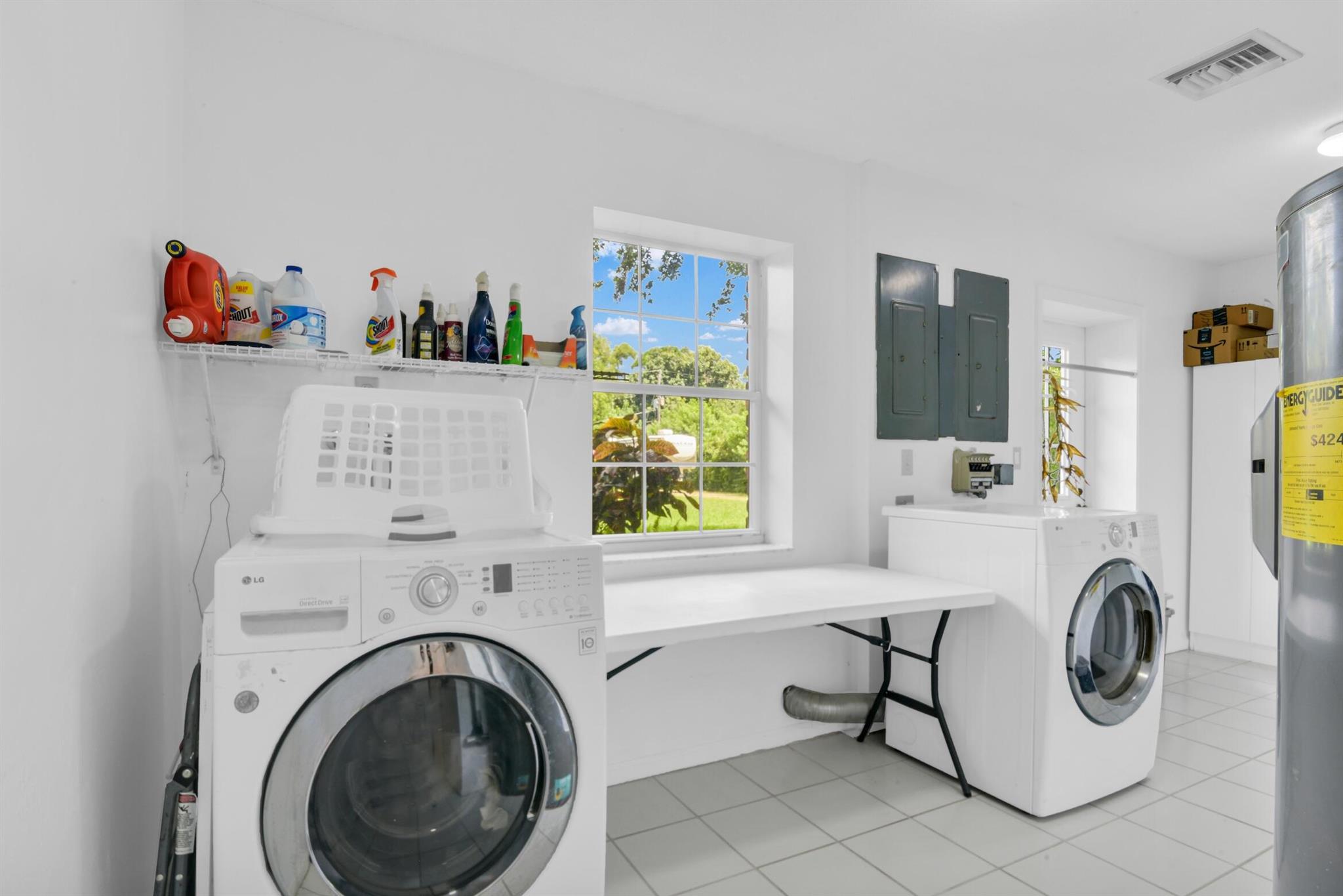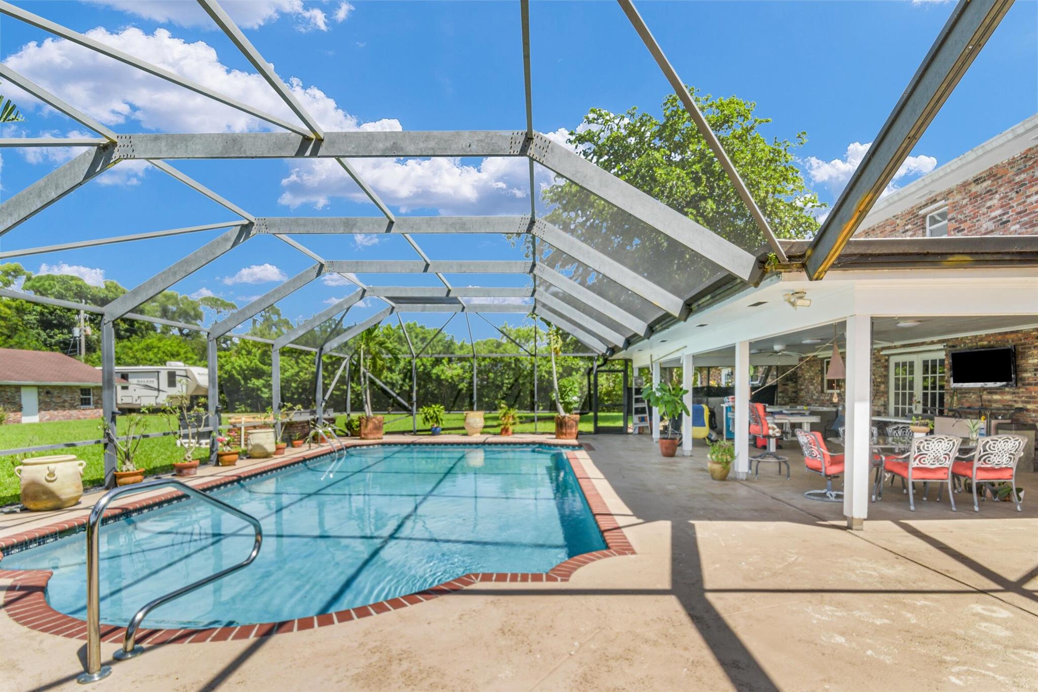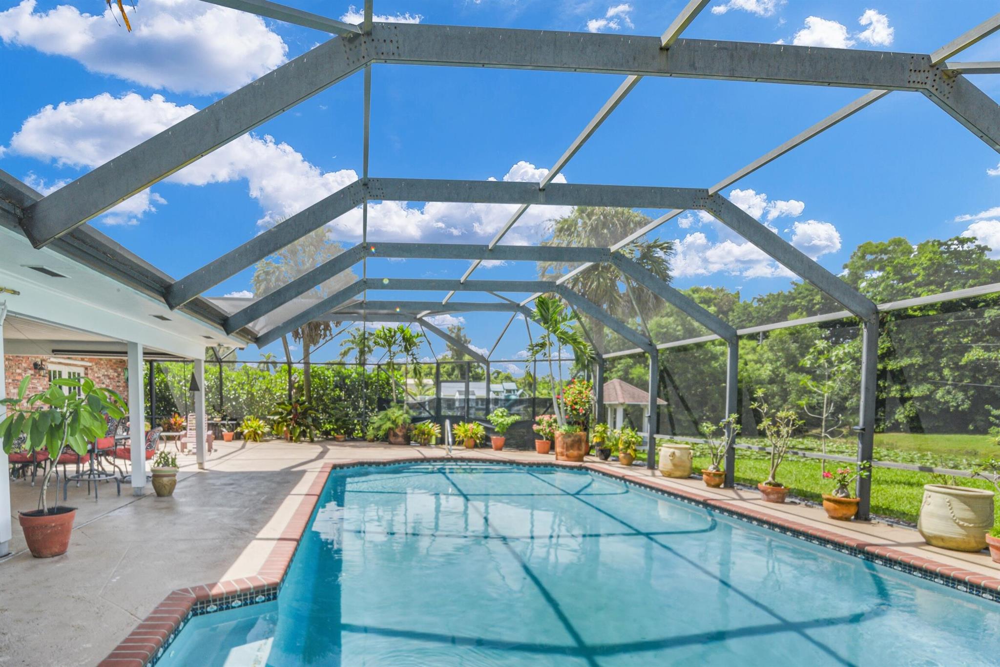 Discover this exceptionally spacious country setting Colonial Style Ranch Home on 2 acres; just 15 minutes from downtown West Palm Beach, local beaches and only 10 minutes from PBI! Zoned AR with no HOA (owner can operate a small business or B&B; (see PBC zoning info)); this property comes with a brand new roof and offers a wide range of possibilities to grow with your future needs: it currently has 4 bedrooms, 3.5 bathrooms and an office (upside potential for 5 bedrooms, 4.5 bathrooms and office; professional design plans available) as well as a fully detached 6 to 8 car garage that can be converted into a guest house or living space (already plumbed for sewer and water service + metered separately with heavy duty commercial 3-phase electric; including 2 50A RV ”shore power” connection