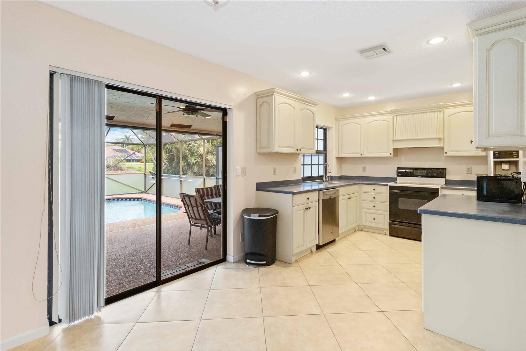 Welcome to this delightful 3-bed, 2-bath corner unit in the prestigious Boca Greens, a private, manned gated golf club community where membership is optional–pay to play! Offering immense potential, this home features soaring ceilings and a bright, open-concept layout, with spacious living and dining areas that perfectly frame stunning views of the pool and golf course. The kitchen, with its solid wood cabinets and included appliances, invites your personal touch to create the modern space you’ve always envisioned.Outside, your private, enclosed screened pool area is an oasis of tranquility, surrounded by swaying palm trees, ideal for both entertaining and quiet relaxation. The well-maintained front and back yards, along with included cable and internet, (CLICK MORE FOR FULL DETAILS).