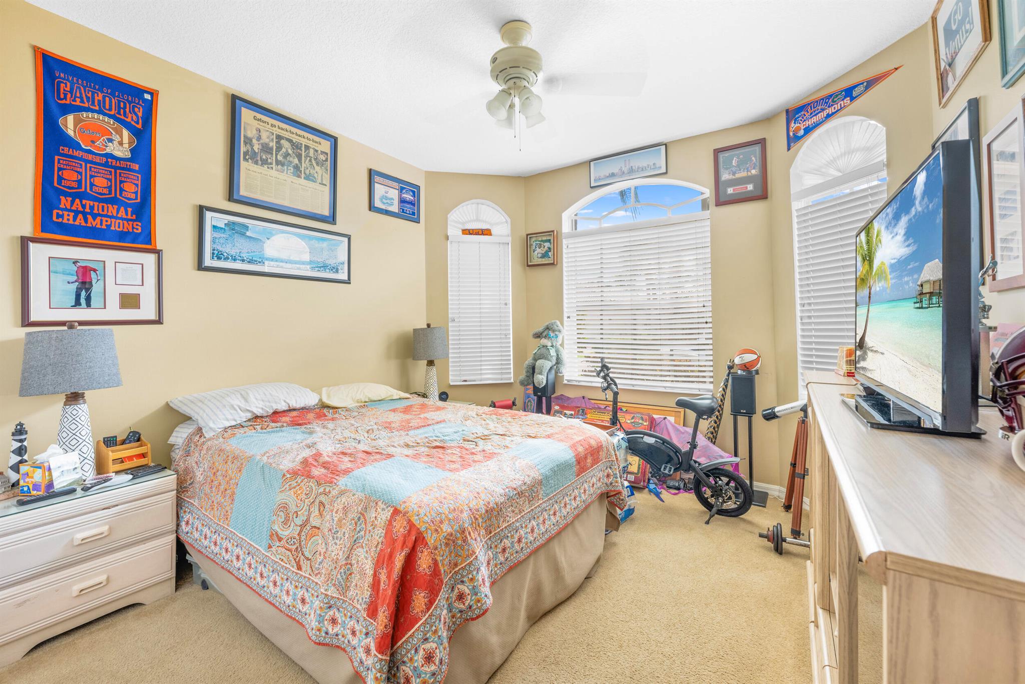 Welcome to this beautifully maintained 3-bed, 2-bath home in the gated Isola Bella community. This property sits on a 5,998 sq ft lot with a serene lakeview. Inside, enjoy a spacious layout featuring a mix of wood floors and carpet. The modern kitchen comes equipped with granite countertops and updated appliances, with a dedicated laundry room. The master suites offer walk-in closets, step-in shower, and separate tub for ultimate comfort.Key updates include a 5-year-old roof with a 10-year warranty and a 5 Ton 14 SEER Goodman A/C installed in 2020, with a 10-year parts warranty for added peace of mind. The fenced backyard provides privacy and tranquility, along with stunning lake views.