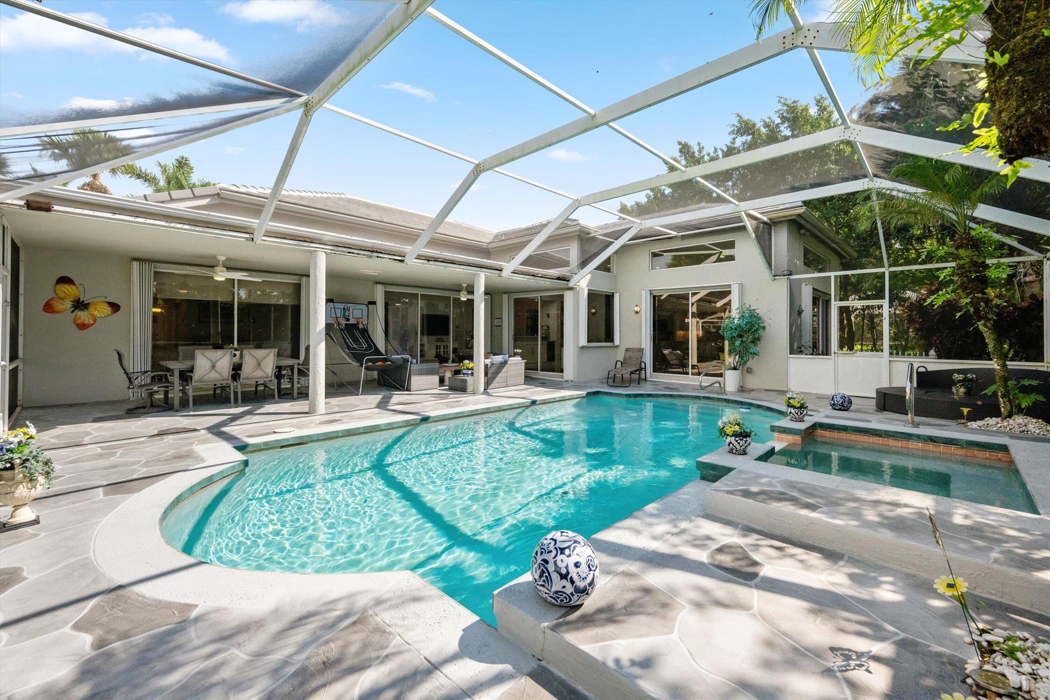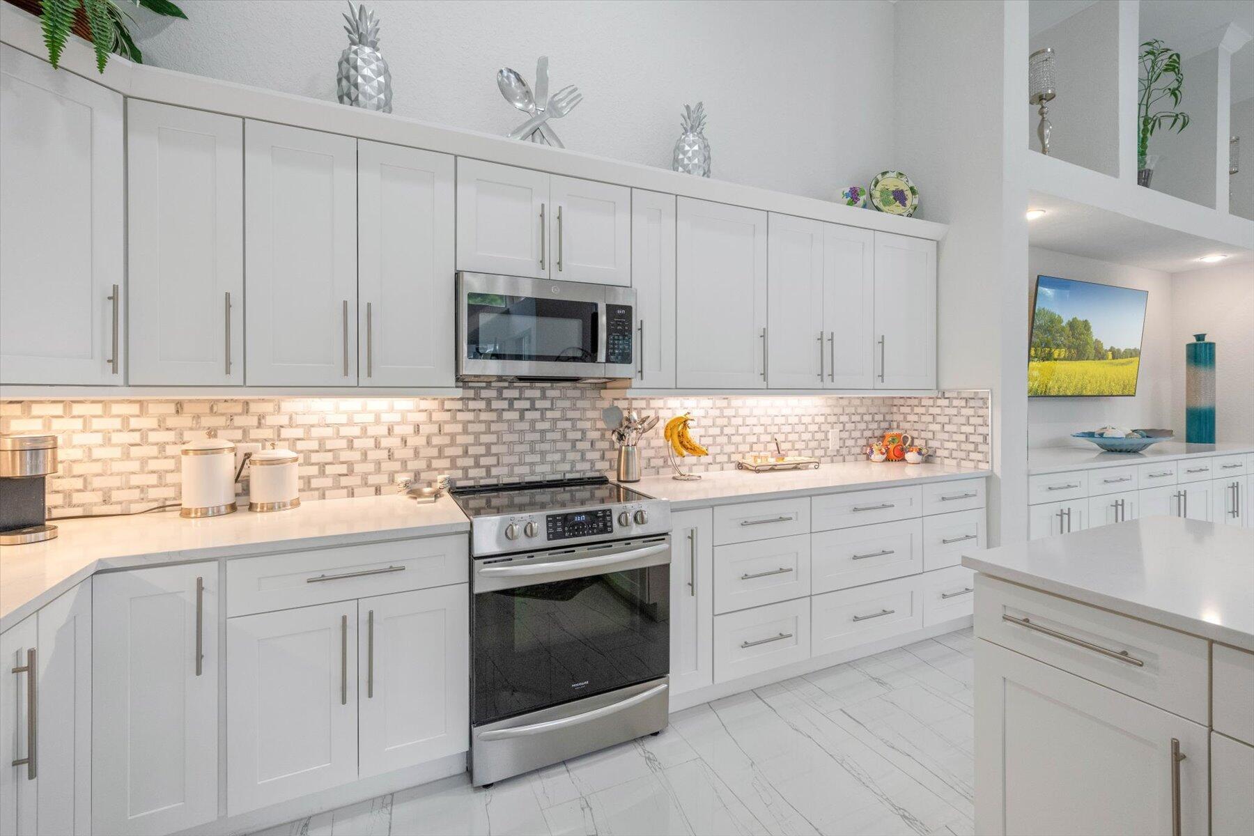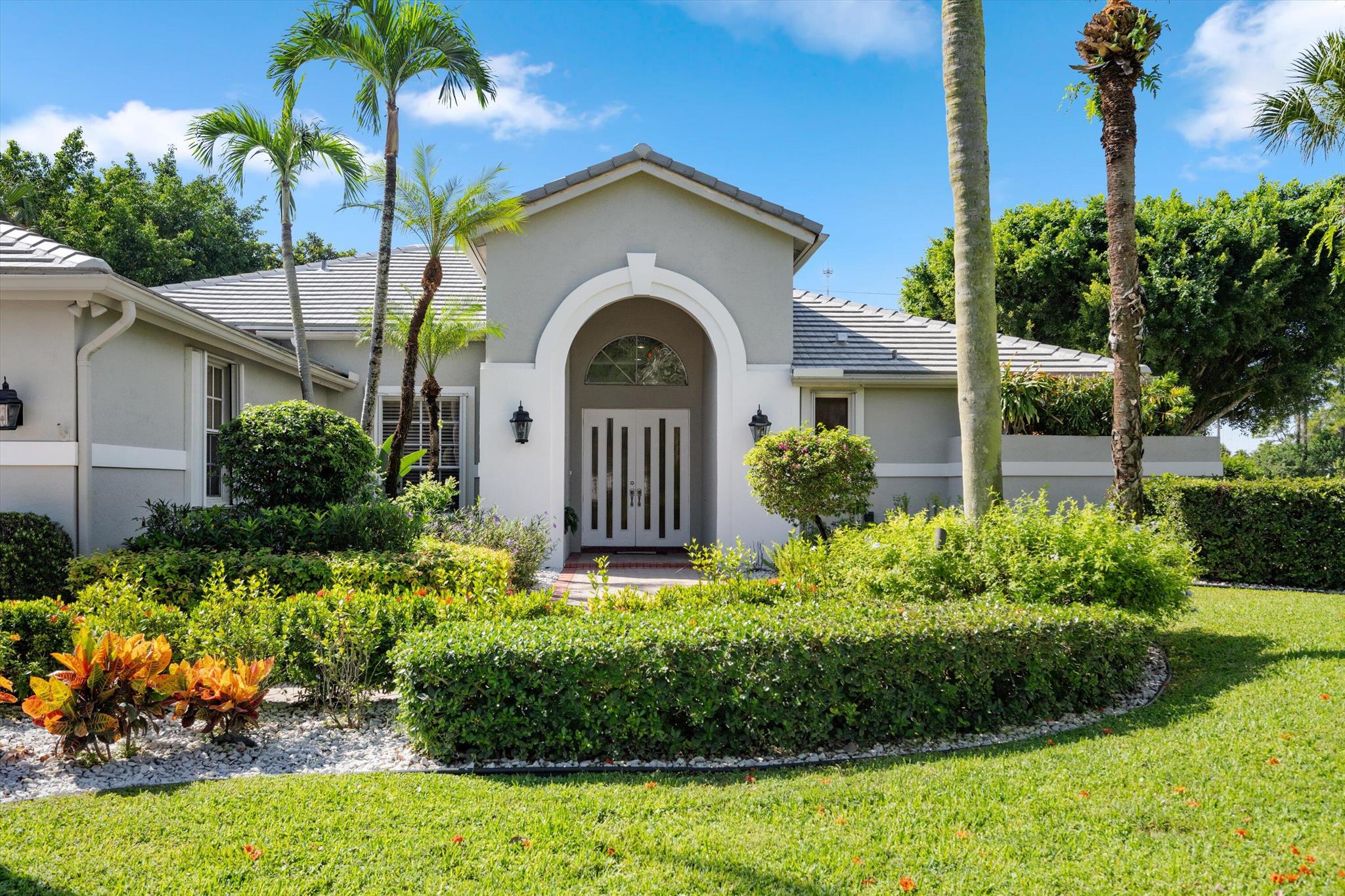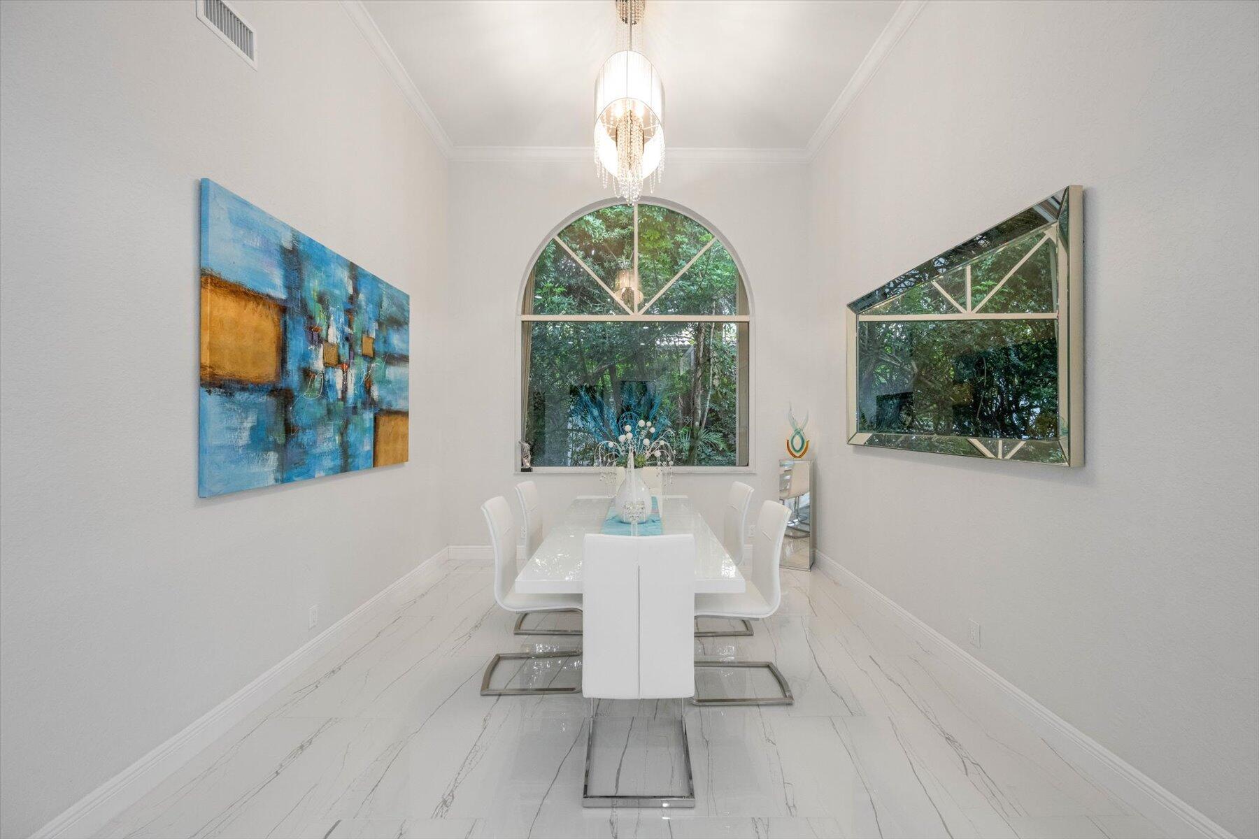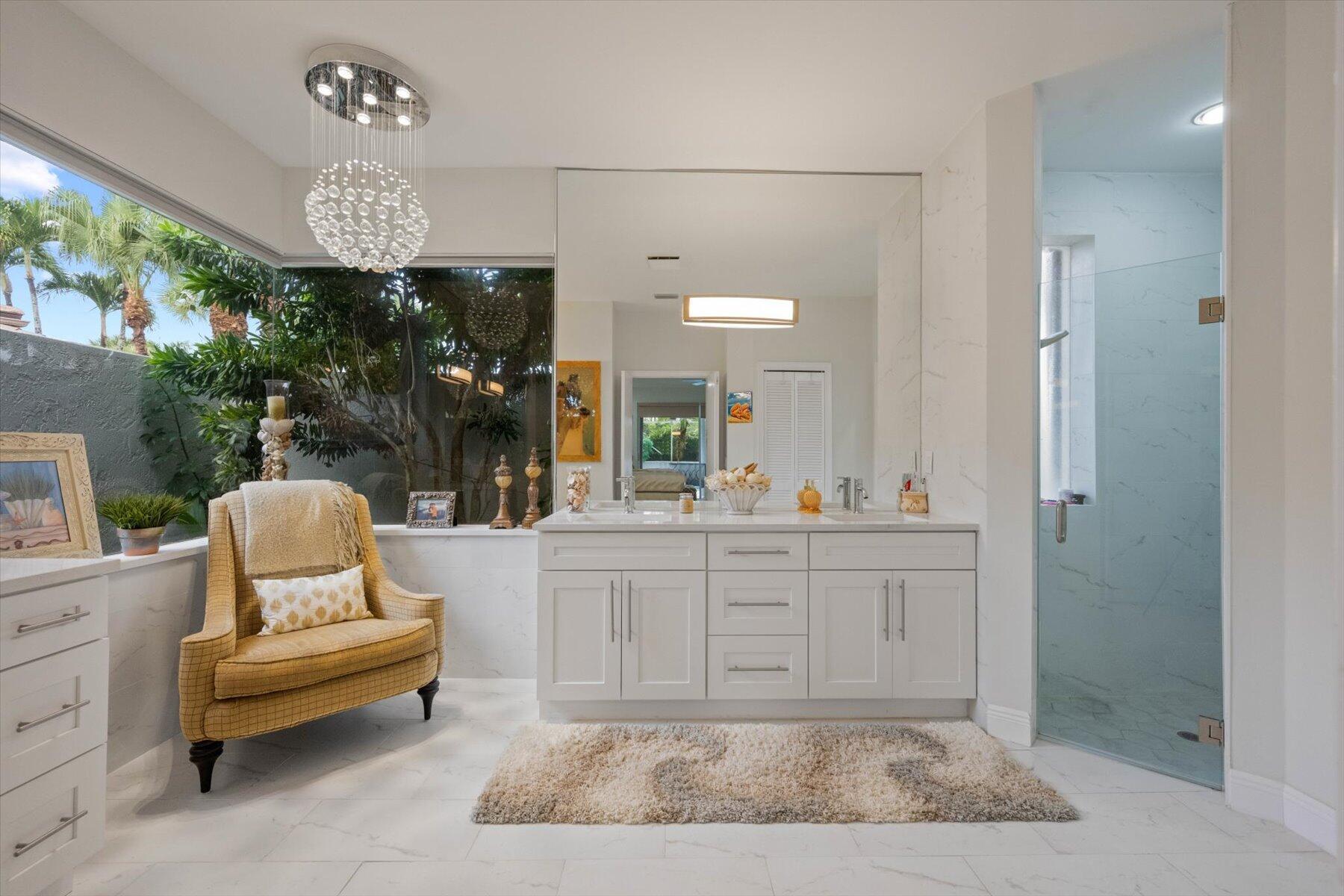 Welcome to your dream home in the prestigious Exeter Estates at Wycliffe Golf and Country Club! Boasting a brand new 2024 roof and recently installed 2024 impact transom windows, this exceptional 3-bedroom, 3-bathroom estate residence with a private pool is a masterpiece of modern luxury. Set on the freshly redesigned 15th hole of the East Course, the home has been meticulously maintained with updated landscaping creating stunning curb appeal. Step inside and be captivated by the bright, all-white interior and spacious open floor plan, fully renovated with designer touches throughout. The modern kitchen features a center island with quartz countertops, perfect for casual dining or entertaining, and a sleek wet bar adds to the entertainment possibilities.