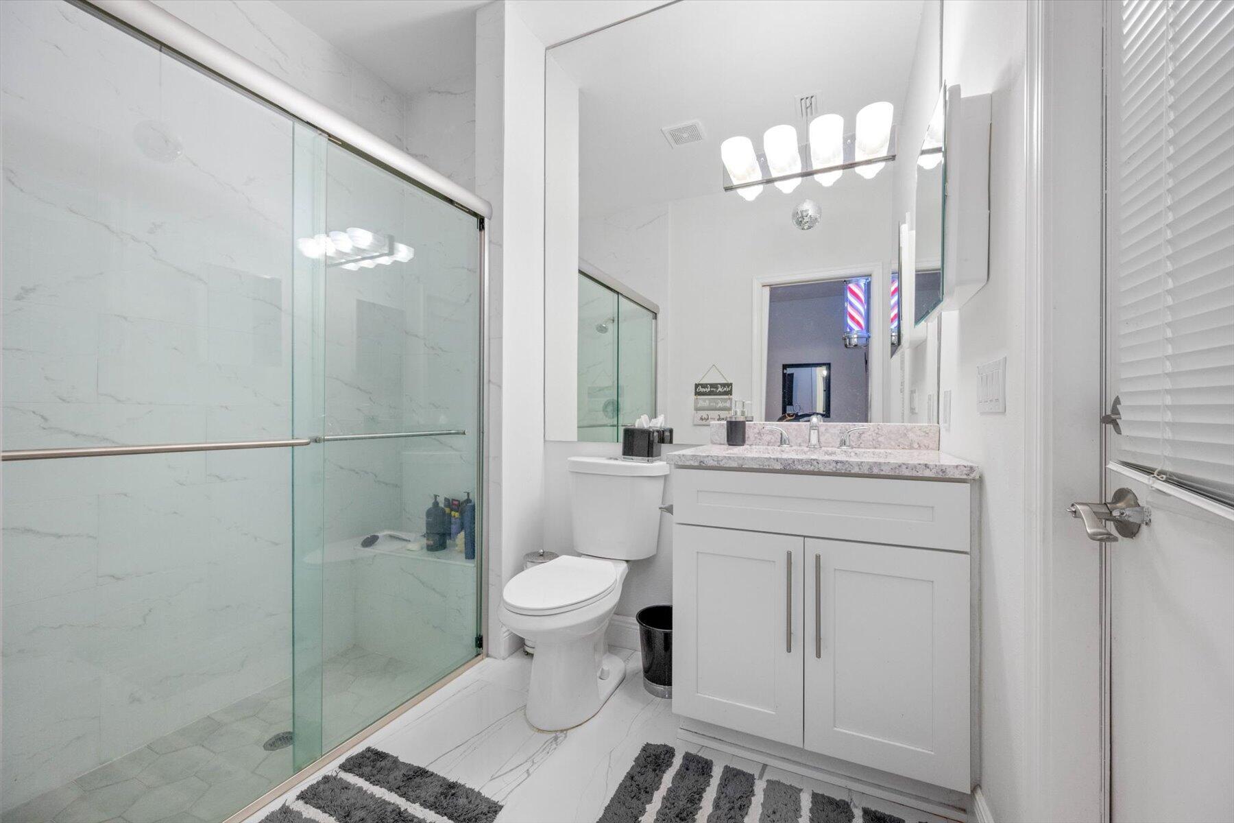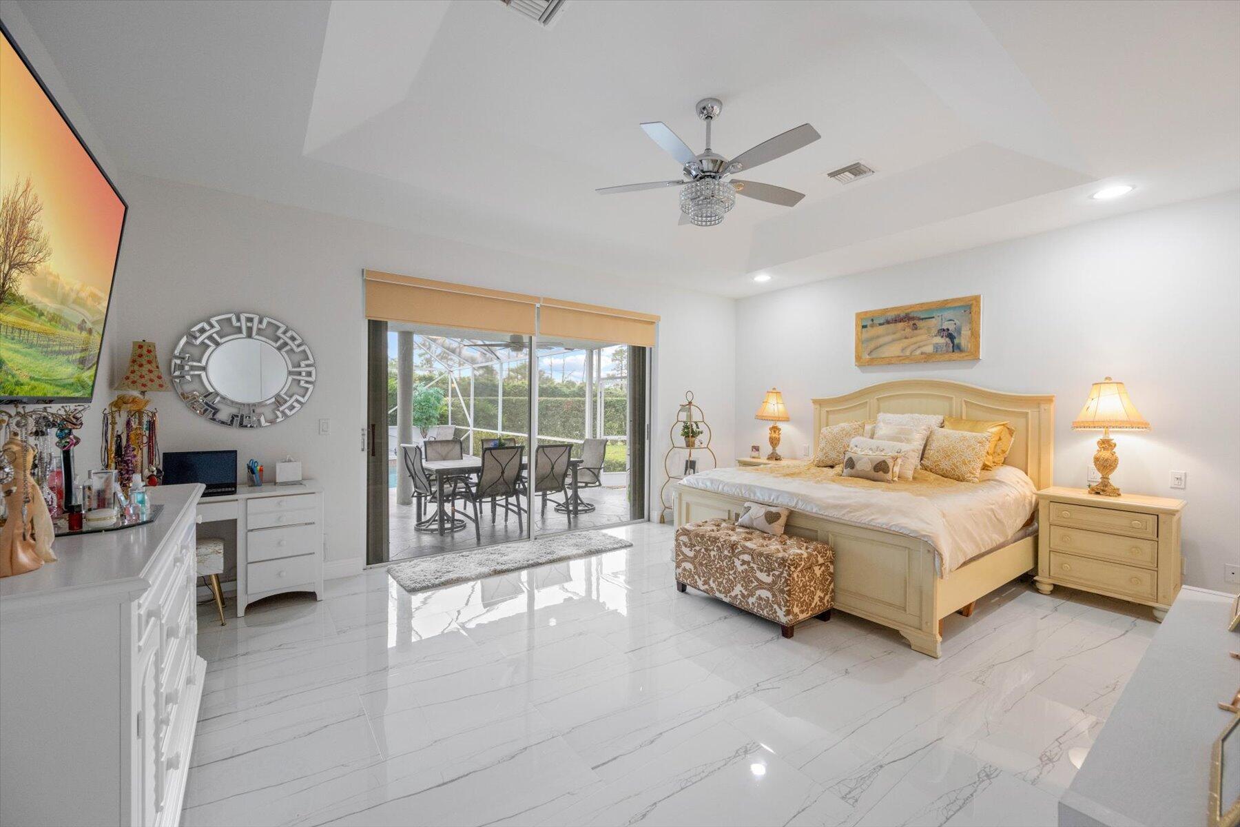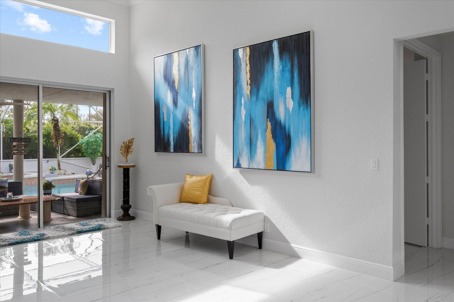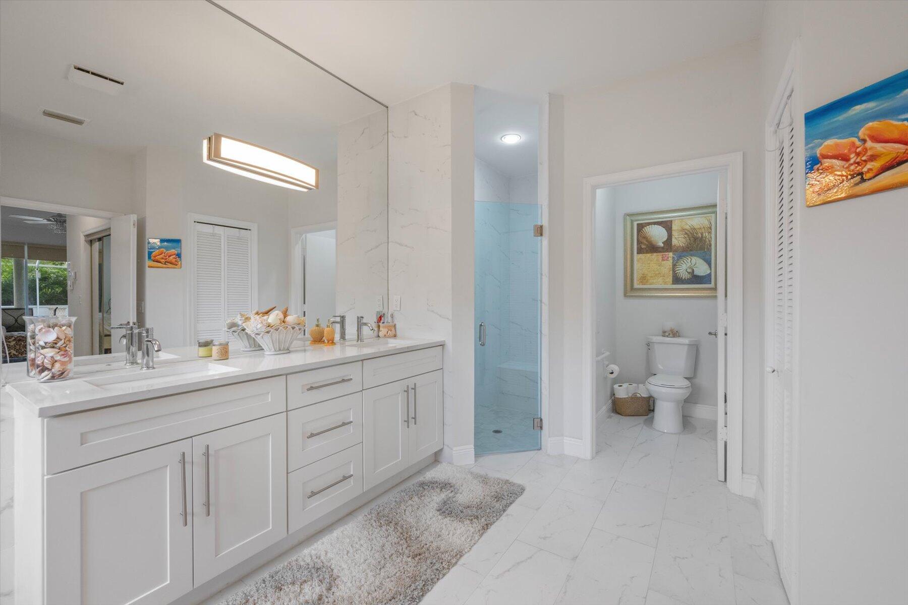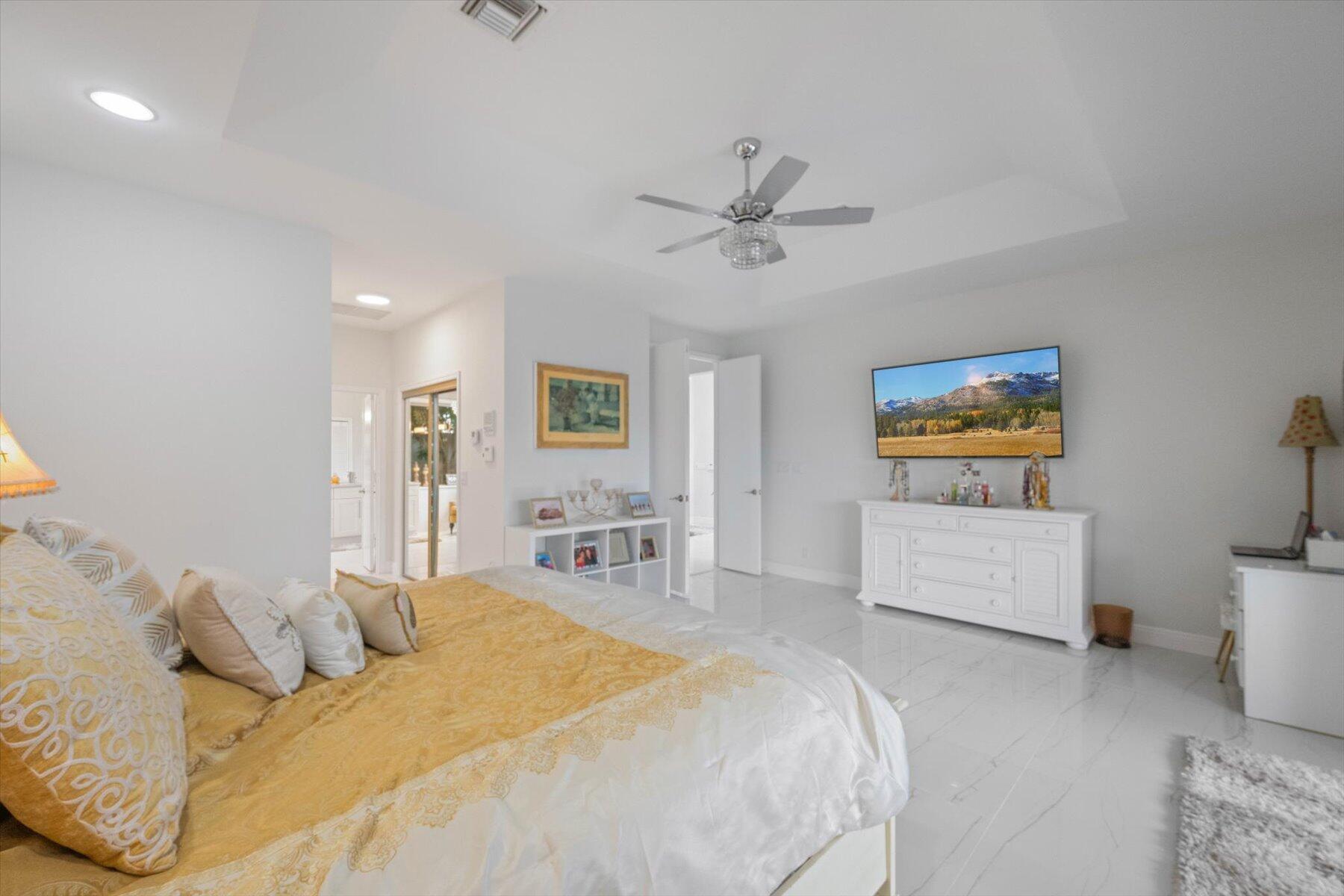 Welcome to your dream home in the prestigious Exeter Estates at Wycliffe Golf and Country Club! Boasting a brand new 2024 roof and recently installed 2024 impact transom windows, this exceptional 3-bedroom, 3-bathroom estate residence with a private pool is a masterpiece of modern luxury. Set on the freshly redesigned 15th hole of the East Course, the home has been meticulously maintained with updated landscaping creating stunning curb appeal. Step inside and be captivated by the bright, all-white interior and spacious open floor plan, fully renovated with designer touches throughout. The modern kitchen features a center island with quartz countertops, perfect for casual dining or entertaining, and a sleek wet bar adds to the entertainment possibilities.