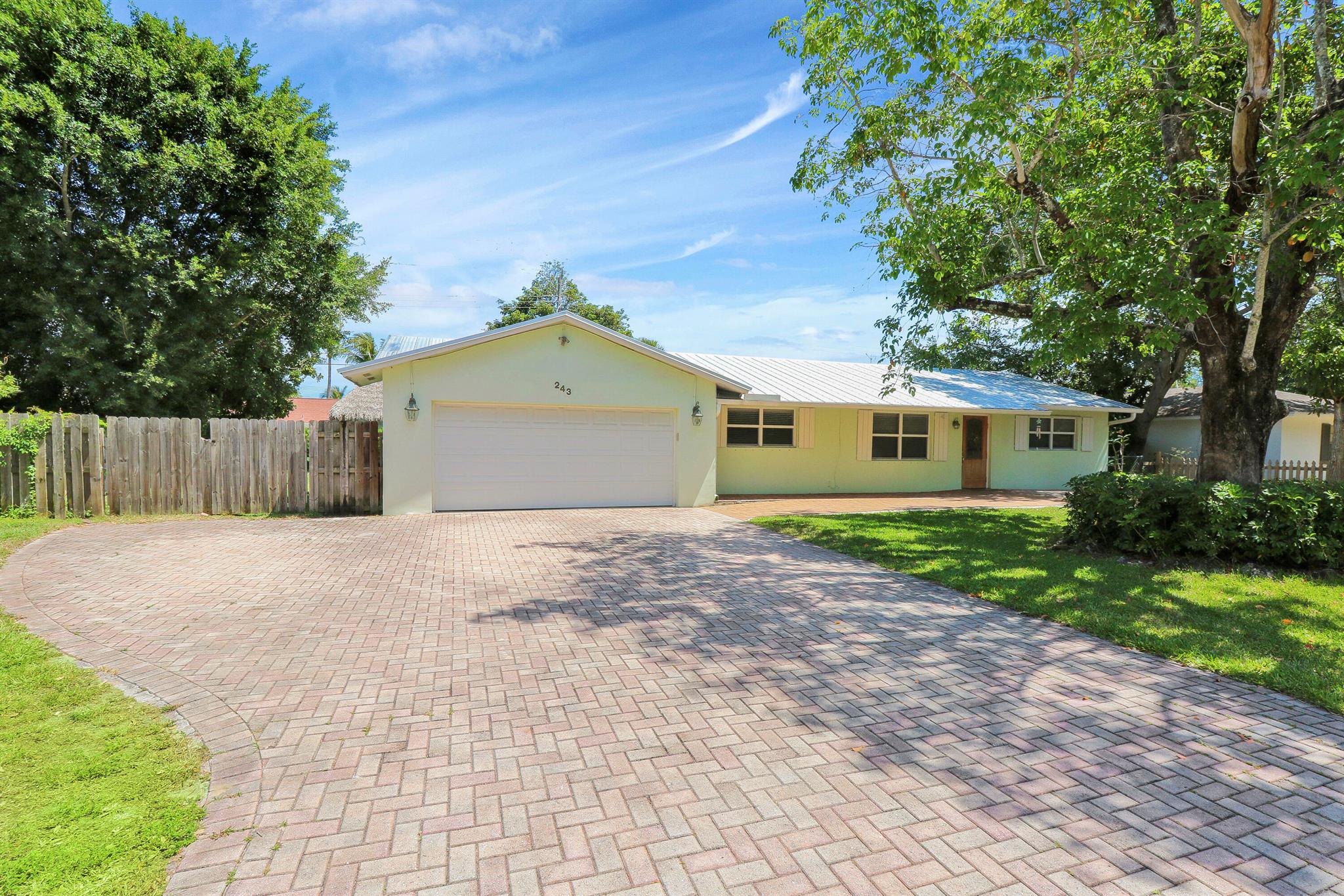 Welcome to your coastal oasis in Jupiter in the Pines! BRAND NEW updates include a flat roof and AC, ready for your personal touch. Located on the Tequesta side of the Loxahatchee River. The home features 3 bedrooms and 2 baths, along with a spacious living/dining/family room, PLUS an OVERSIZED additional room that can be used as an office, playroom, media/family room or add a closet for a 4 bedroom. Built with CBS construction and a durable metal roof from 2016, this home is equipped with impact glass windows and offers ample space for your boat! The updated kitchen boasts custom wood cabinets, stainless steel appliances, and gorgeous granite countertops. The primary bedroom features an ensuite bathroom and a walk-in closet for your convenience.