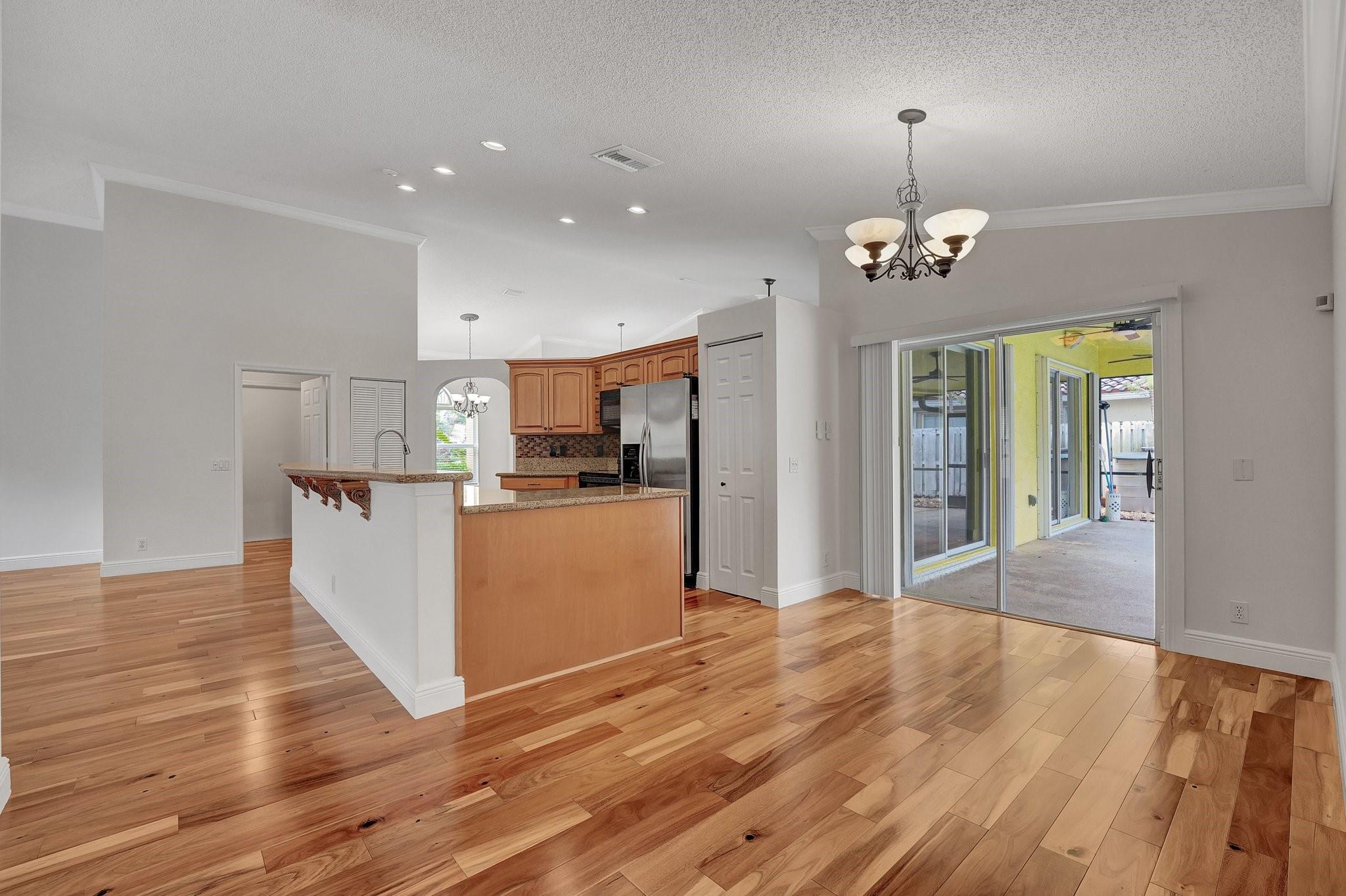 Live in one of Weston’s premier gated communities, across from Town Center, in a top-rated school district! This home features a private, fenced backyard with a screened, freeform pool, patio & cabana bath, making poolside lounging easy. The primary suite also offers pool access, 2 customized closets, dual vanities, separate tub, shower & WC. Enjoy an open eat-in kitchen with custom wood cabinets, granite counters & plenty of space to cook & gather. With a separate living & dining area, this home offers endless layout possibilities to suit your lifestyle. Equipped with oak & acacia floors throughout, split bedrooms, a laundry room & a 2-car garage. Don’t miss the opportunity to make this exceptional Weston home yours! Floor plan, 3D tour & video available.