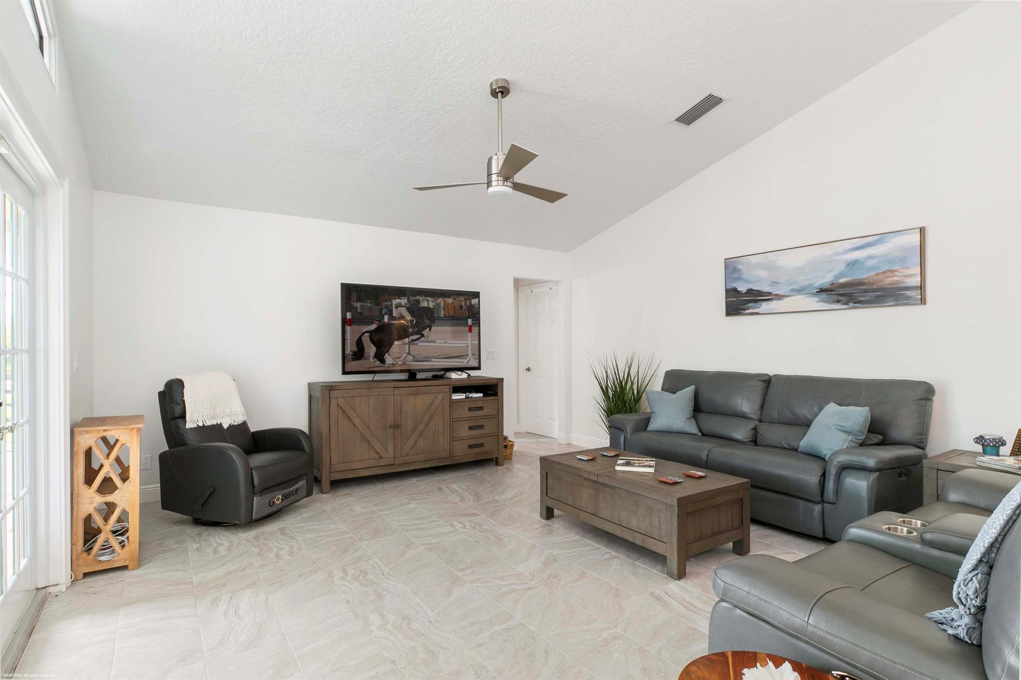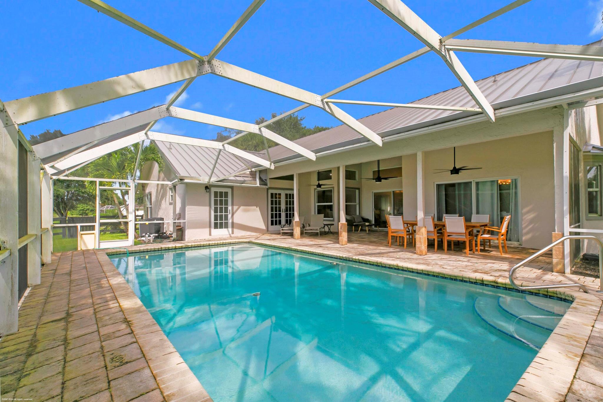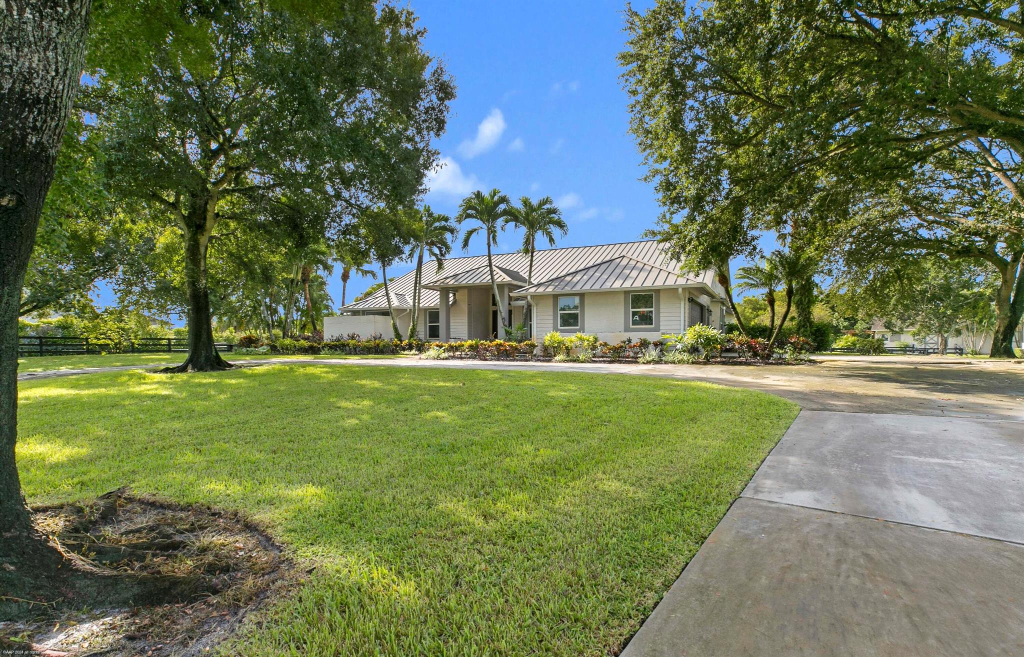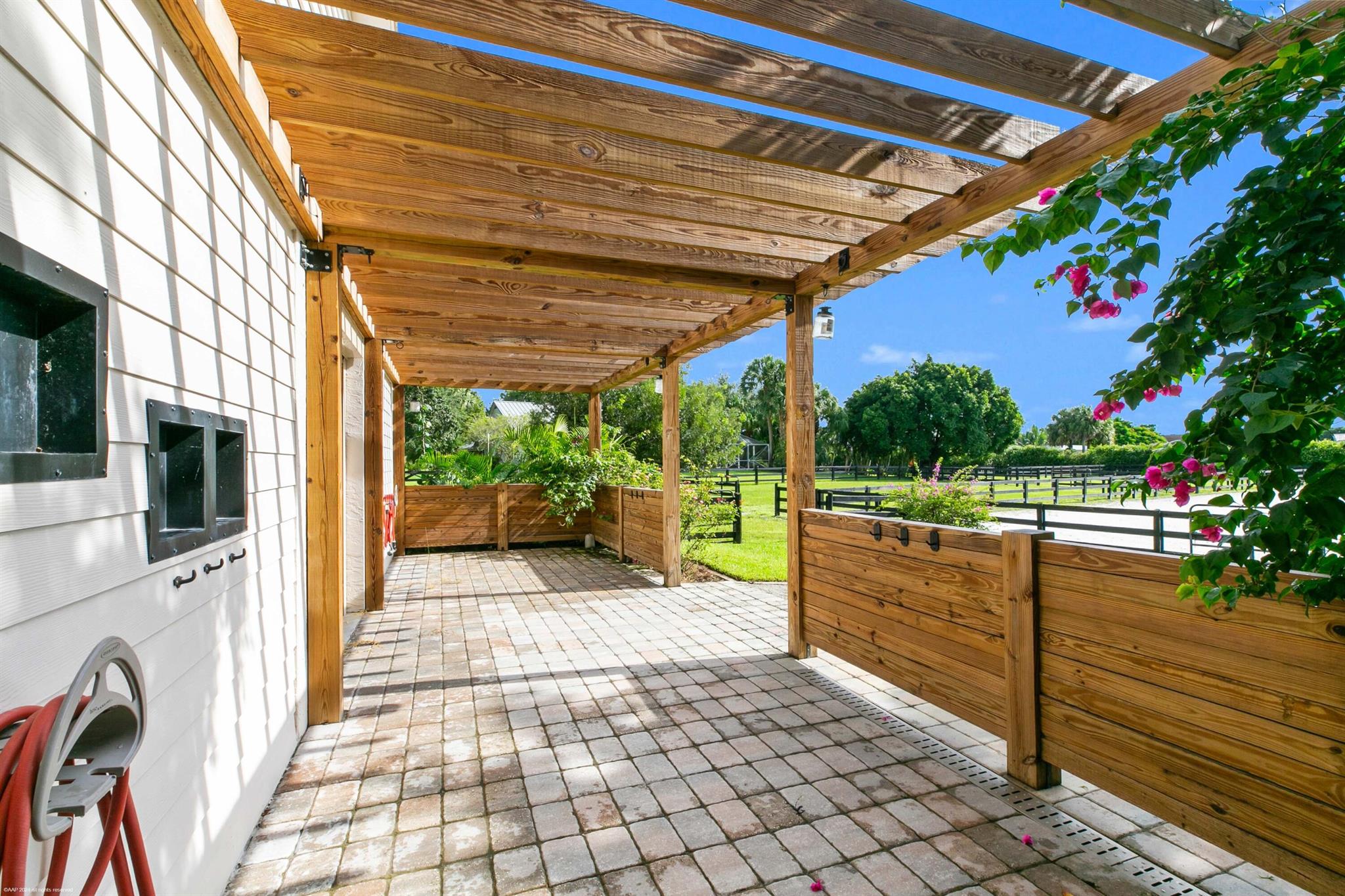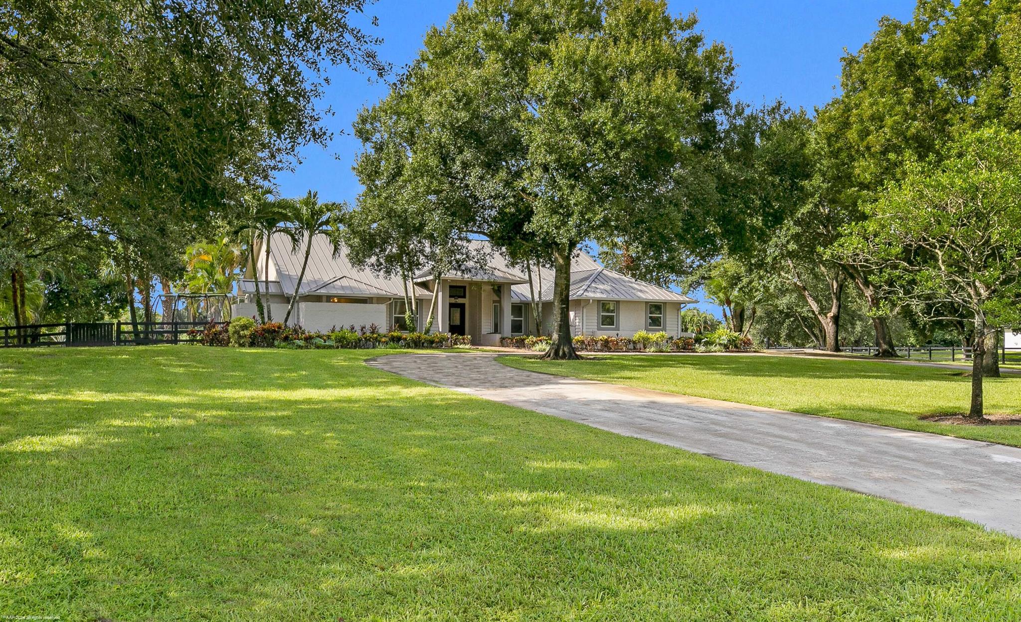 Arguably the best deal farm deal in town! Move-in ready for season! Renovated farm with great turnout on oversized lot adjacent to bridle path! 5 bedroom + office home and CBS 6-stall barn on 2.39 acres in the highly sought after neighborhood of Saddle Trail Park! Boasting a light and bright contemporary design, this stunning property has everything you need to live the Wellington lifestyle. Large fully screened in patio with heated pool and covered outdoor living space. Outfitted with full impact windows throughout, a new roof and a whole home generator for your piece of mind. The barn features a new stall system with durable synthetic wood, tongue and groove ceiling, a chic renovated tack room and beautiful pergola wash racks. The CBS barn has roll down doors and functional shutters