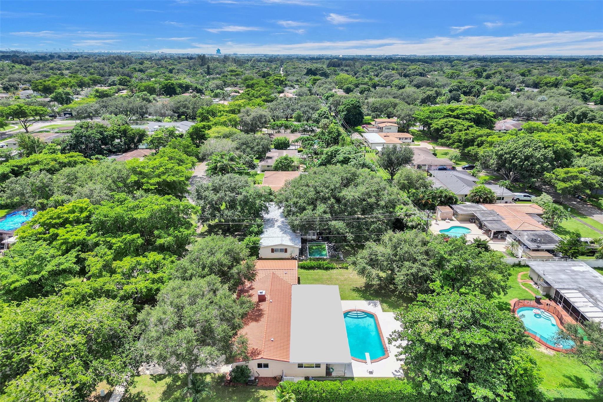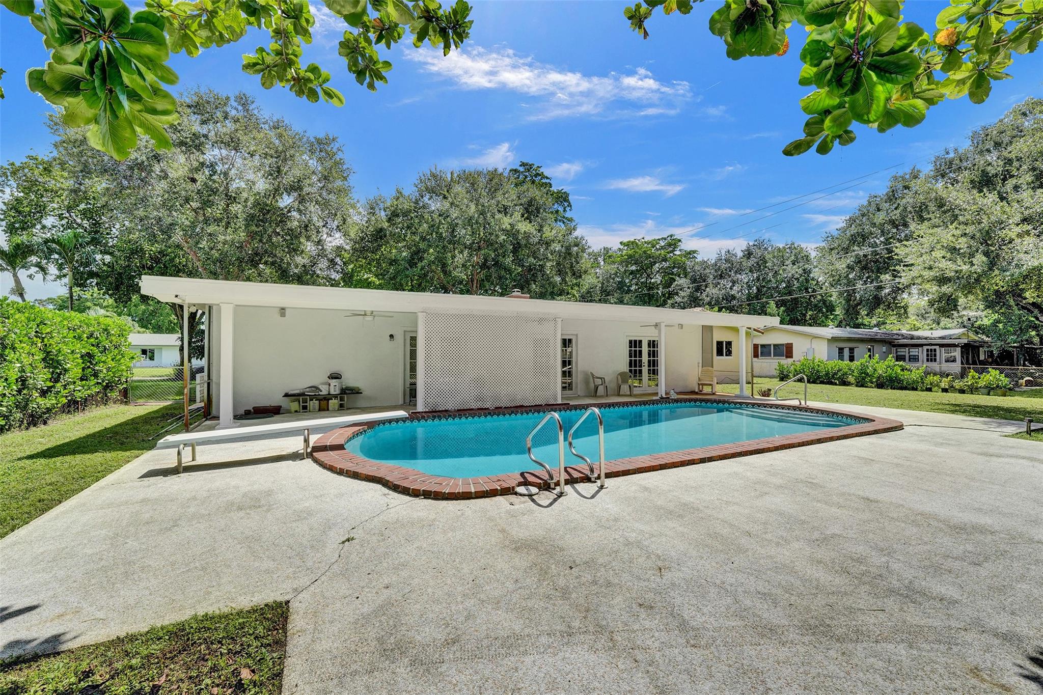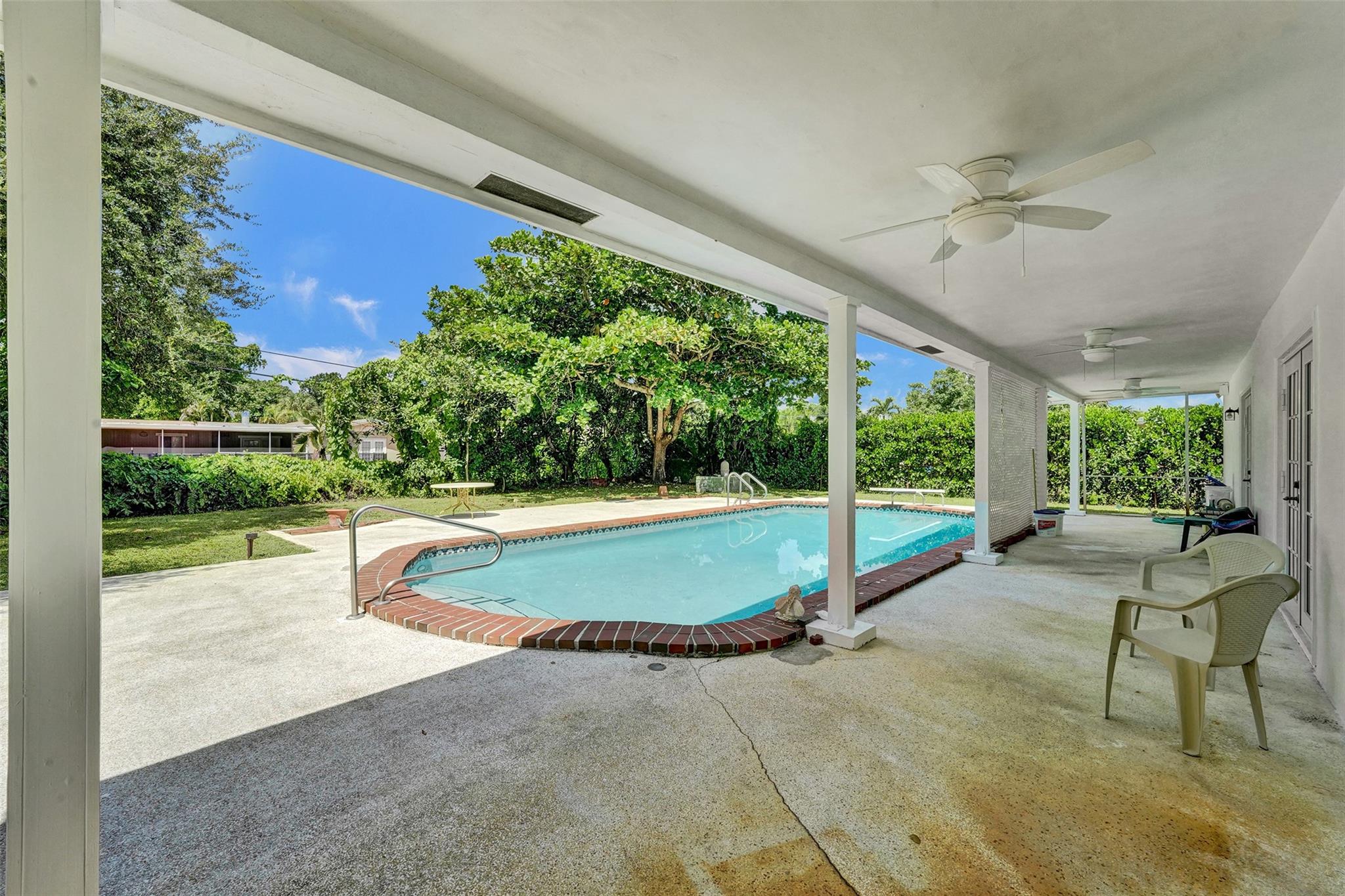Welcome to this 3-bedroom, 2-bath home on a tree-lined street in Plantation! The updated kitchen boasts granite countertops, wood cabinets, and walk-in pantry. Partial cast iron replacement of sewer and full water line replacement. The dining room offers a view of the oversized 9″ deep pool & terrazo patio. Real pecky cedar family room. Termite warranty vaild until 3-2025. Tinted hurricane impact french doors, garage door and windows offer privacy and security. This home also features a cozy wood-burning fireplace with real chicago bricks in one of two flexible living spaces. The 2½-car garage (598 sq feet) provides plenty of storage, and NO HOA! Entrance to Plantation Woods Park, Hoffman Library and the Community Center from Gardenia Lane. Close to shops, restaurants, and major highways.