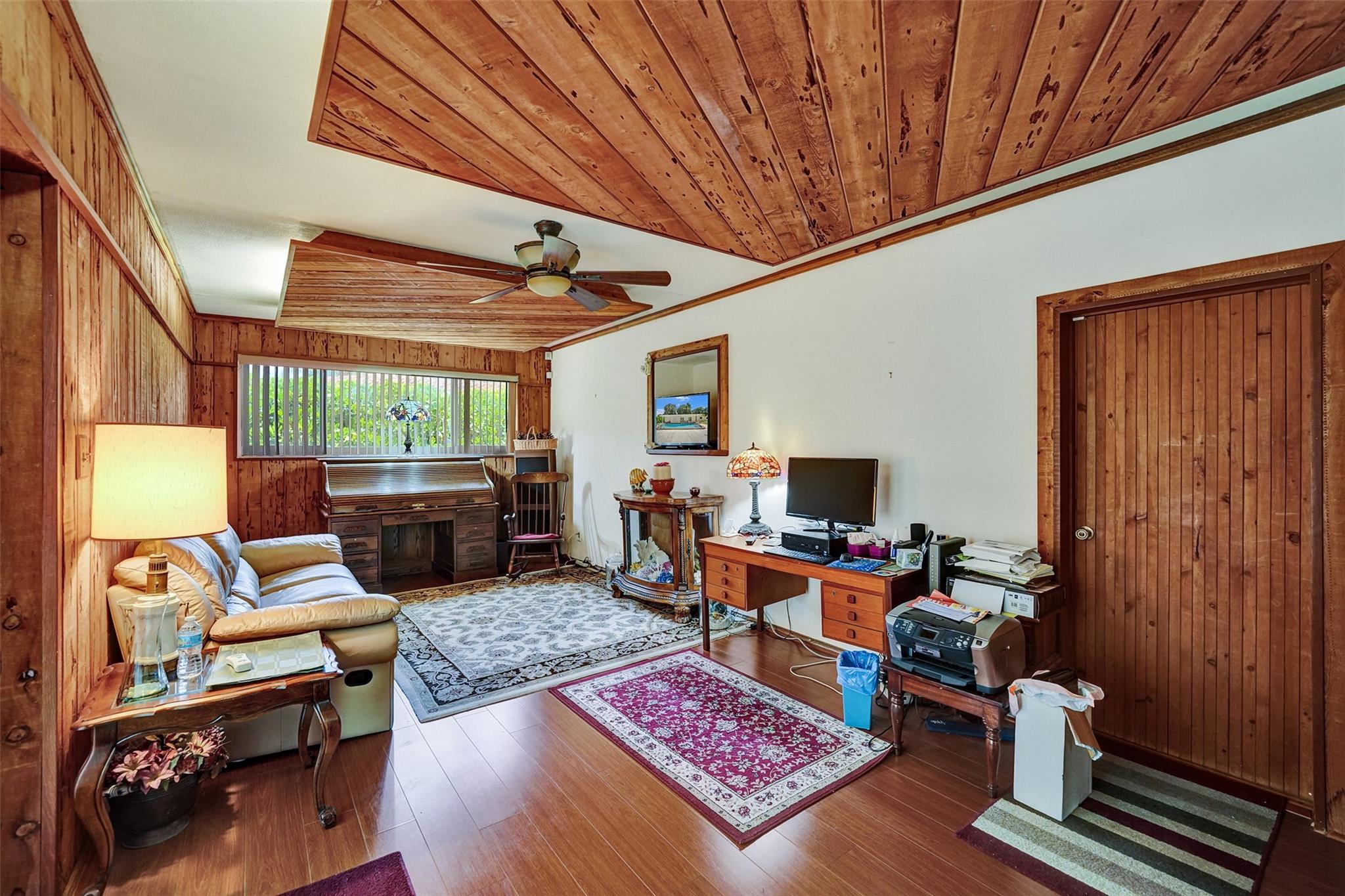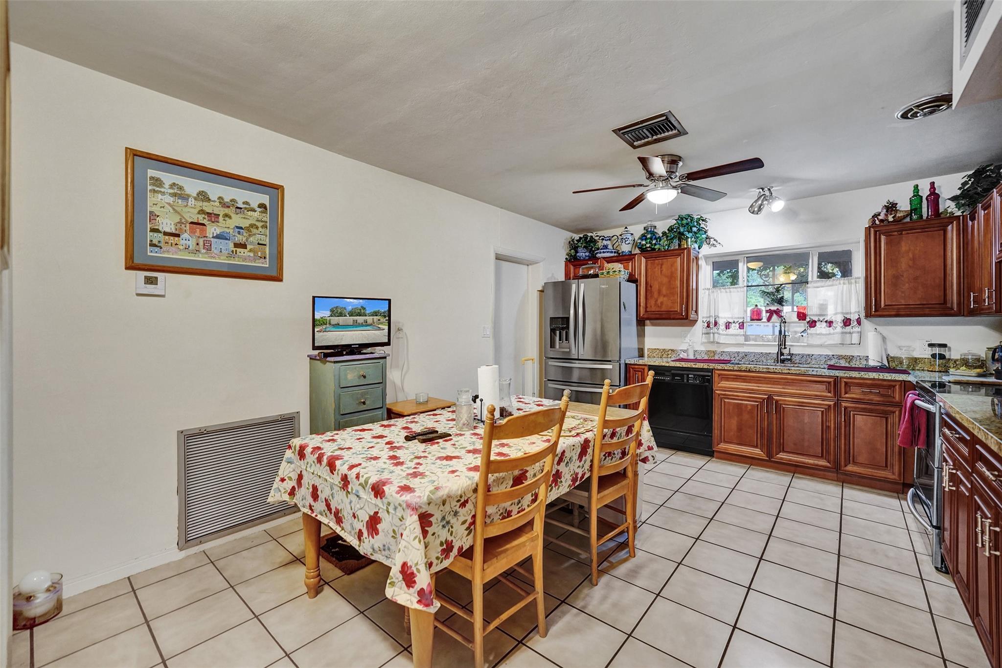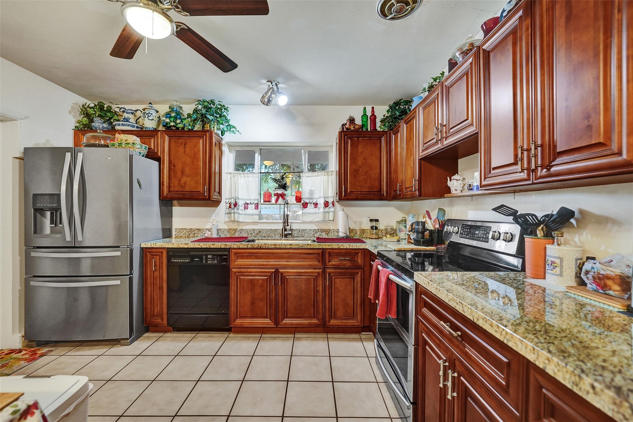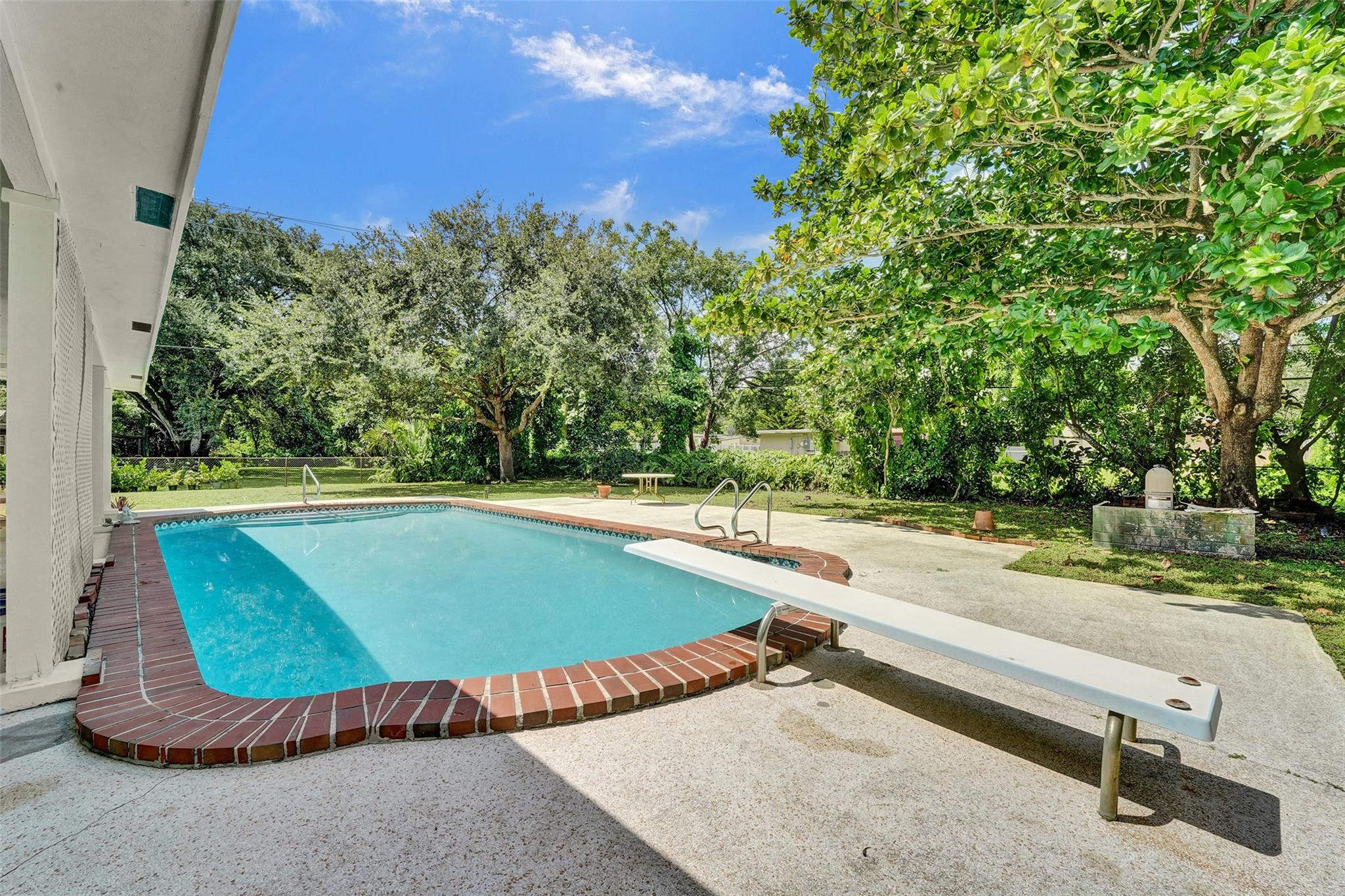 Welcome to this 3-bedroom, 2-bath home on a tree-lined street in Plantation! The updated kitchen boasts granite countertops, wood cabinets, and walk-in pantry. Partial cast iron replacement of sewer and full water line replacement. The dining room offers a view of the oversized 9″ deep pool & terrazo patio. Real pecky cedar family room. Termite warranty vaild until 3-2025. Tinted hurricane impact french doors, garage door and windows offer privacy and security. This home also features a cozy wood-burning fireplace with real chicago bricks in one of two flexible living spaces. The 2½-car garage (598 sq feet) provides plenty of storage, and NO HOA! Entrance to Plantation Woods Park, Hoffman Library and the Community Center from Gardenia Lane. Close to shops, restaurants, and major highways.