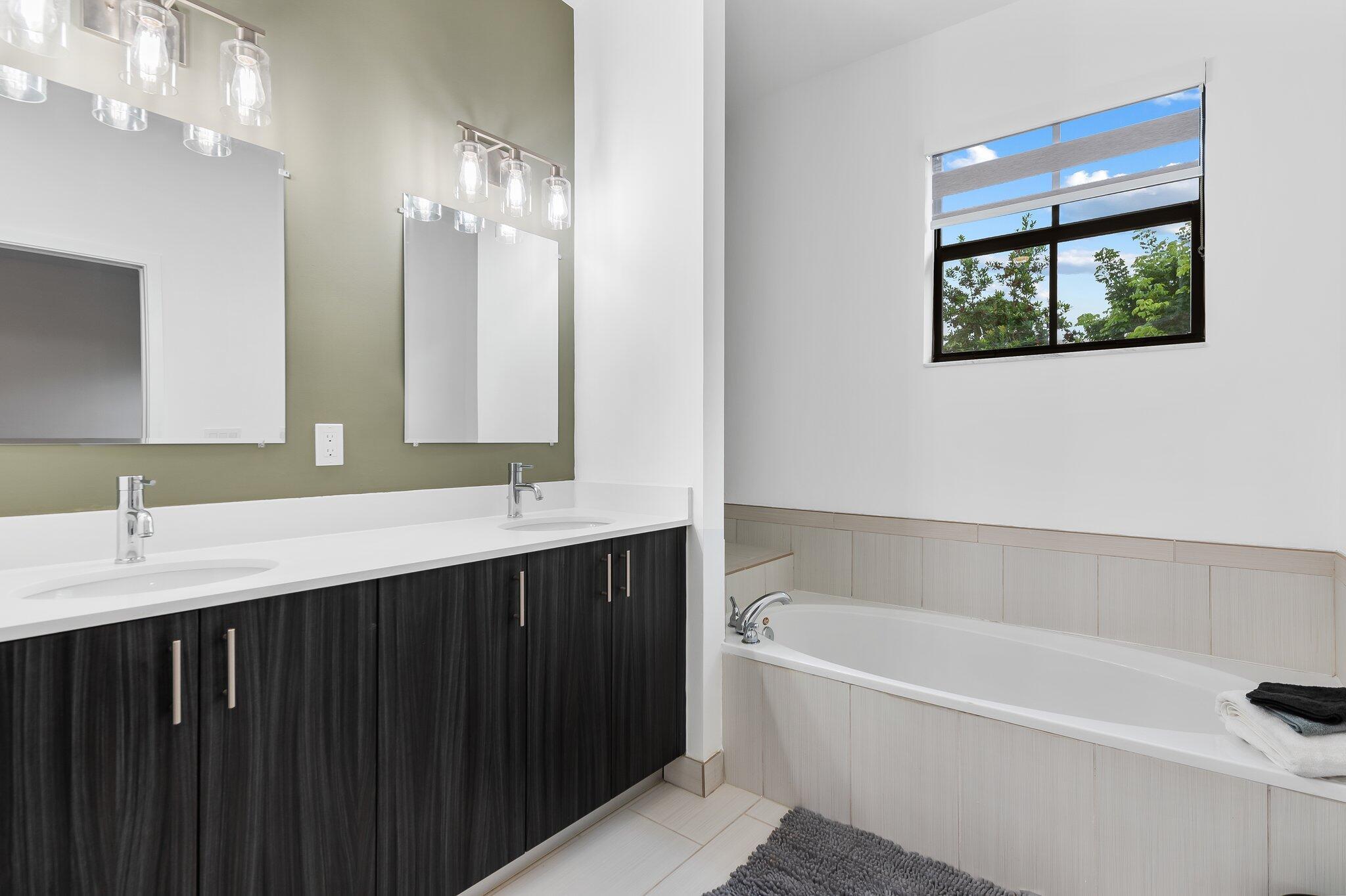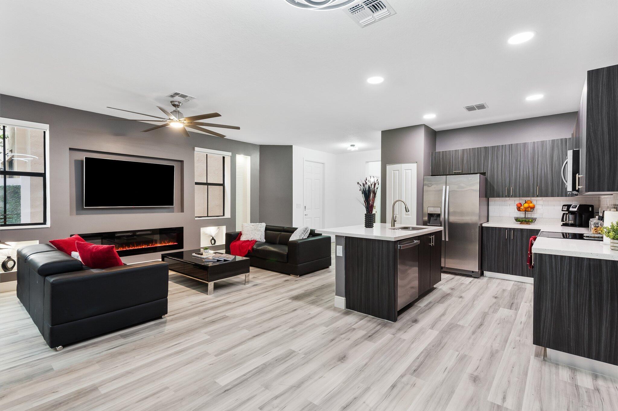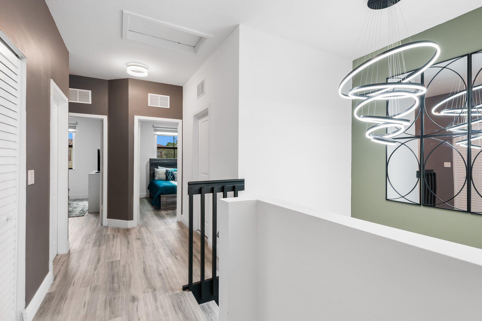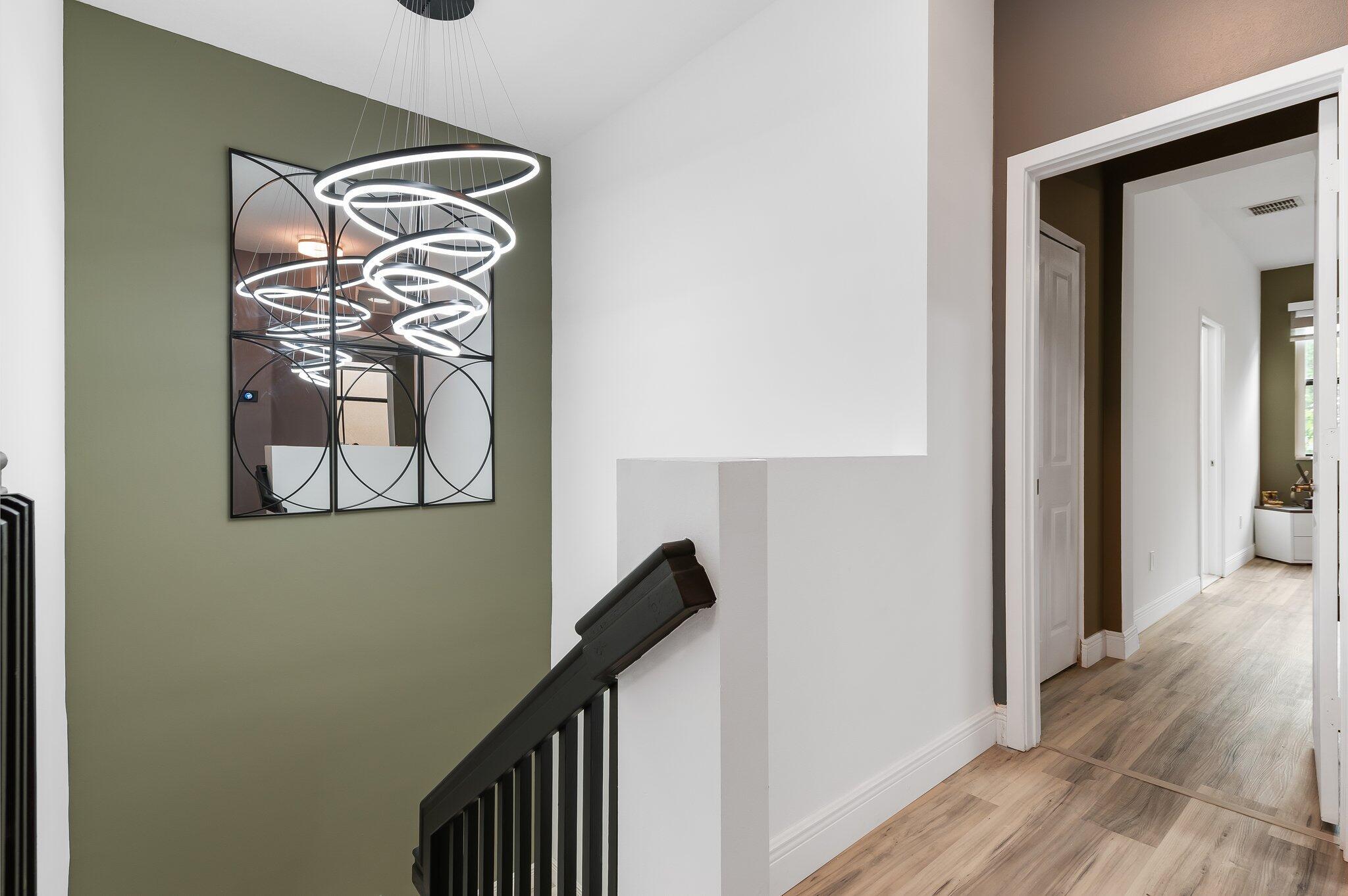 Exquisitely designed two-story home nestled in the prestigious Central Park community of Tamarac, Florida. This stunning single-family residence, built in 2016, offers the perfect blend of modern luxury and practicality. As you step inside, you are greeted by a bright and spacious open concept layout that flows seamlessly from room to room. Over $35,000 in renovations have been meticulously invested, showcasing newly installed luxury vinyl flooring and energy-efficient LED recessed lighting throughout. Elegant geometric LED chandeliers adorn the dining and stairway areas, adding a touch of sophistication. The gourmet kitchen has been thoughtfully updated with quartz countertops, stylish tile backsplash, and top-of-the-line stainless steel appliances, including a brand new dishwasher