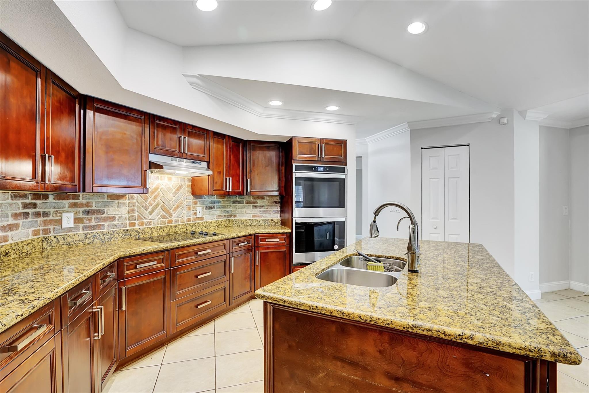 Gorgeous 5 bedroom house nestled into the lovely community of Coco Bay. The 5th bedroom is currently being used as a den. The gourmet kitchen is a chef’s delight complete with rich cabinetry, center island, granite counter tops & a newer double oven & newer dishwasher. Time to make culinary masterpieces! Large adjoining family room. Designer touches throughout such as crown molding & dramatic ceilings. Large master suite has 2 walk in closets & the luxurious master bath has dual sinks, & a separate soaking tub & shower. Additional bedrooms are a good size. 5th bedroom is downstairs. Interior laundry room with newer washer. Storm protection in place. Fenced backyard with covered patio is ideal for morning coffee. Sparkling community pool. Neighborhood with mature trees and beautiful homes.