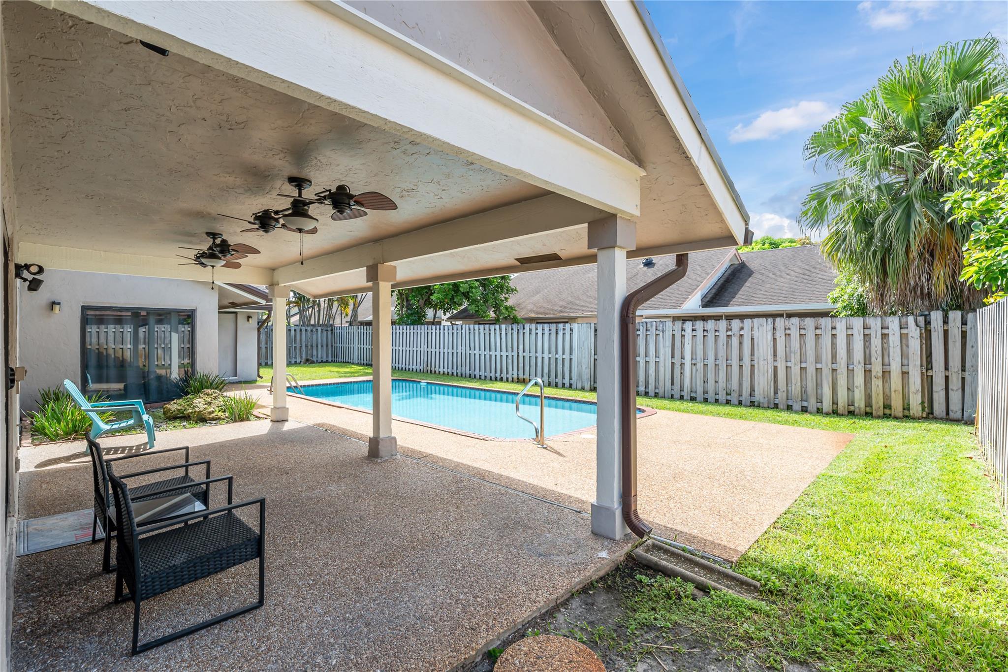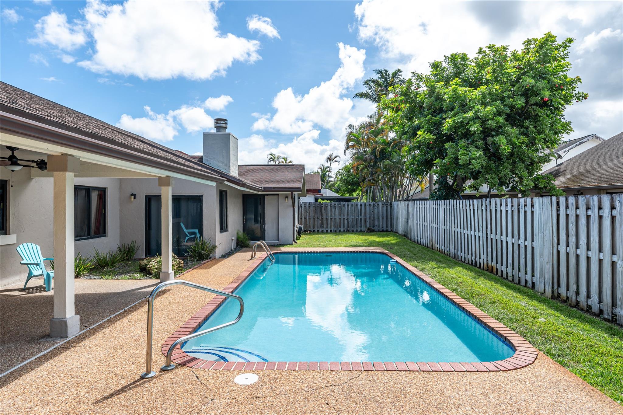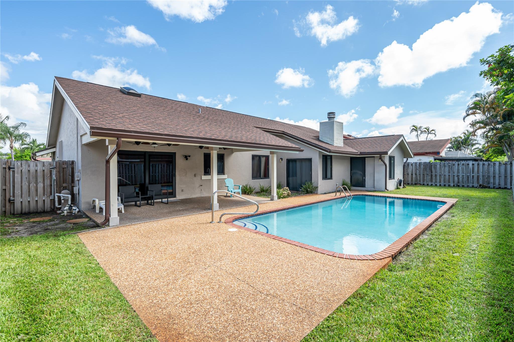 Welcome to your dream home in Inverrary! You will love this exquisite beautifully maintained 3BR, 2.5BA with a sparkling resurfaced pool, perfect for relaxation and entertaining. Step inside to find elegant tile flooring throughout, sunken living room, split floorplan with large master bedroom, walk-in closet and oversized bathroom. The spacious layout offers a seamless flow from room to room, with ample natural light, high ceilings, working fireplace and stylish finishes. Eat-in kitchen is perfect for casual meals and entertaining, with newer cabinets, stainless steel appliances and granite countertop. Experience peace of mind with newer roof (2019), hurricane impact windows and doors, including the two-car garage door. No HOA! Schedule your visit to see everything it has to offer!