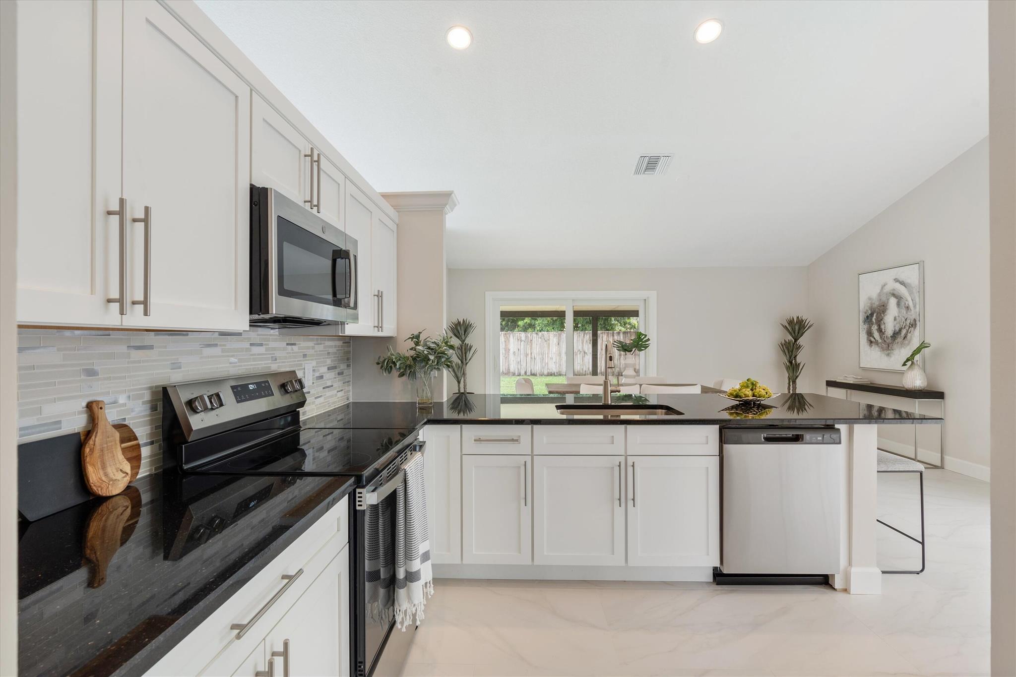 Welcome to 9768 Sun Pointe Dr., where modern updates meet comfort and style. This beautifully renovated home features an updated kitchen with additional storage space, updated bathrooms, and an impressive walk-in closet in the master suite. The 2023 AC unit, complete impact glass, and durable metal roof. Perfect for entertaining, the home boasts a fully fenced, spacious backyard–ideal for both pets and family fun. Enjoy Florida’s sunshine with access to community amenities, including a pool, playground, tennis, and pickleball courts. Come see this stunning home today!