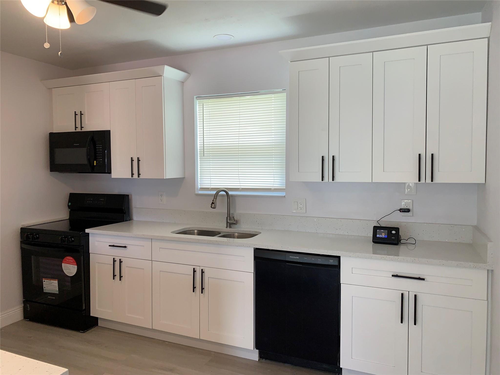 Completely remodeled home with permits. New Kitchen with quartz countertops and new Frigidaire appliances. New bathroom with new plumbing, fixtures and lighting. New flooring and central air conditioning system. Upgraded electric with new outlets and switches. New lighting fixtures and ceiling fans. Home has a large family room which could easily be converted to a 3rd bedroom. Interior and exterior paint. Home is located on a 60 by 100 foot lot with new rear privacy fence. Rear yard has mango tree and a small storage shed located on a concrete pad. Roof was replaced in 2021.