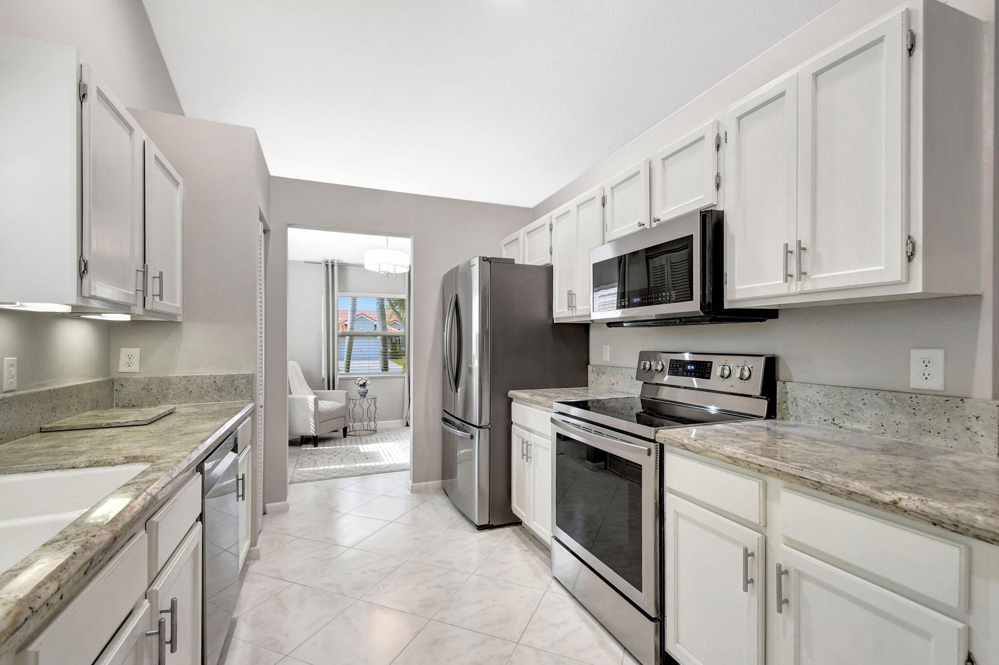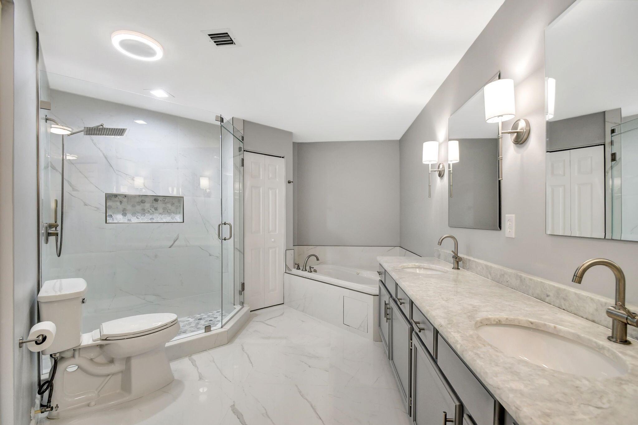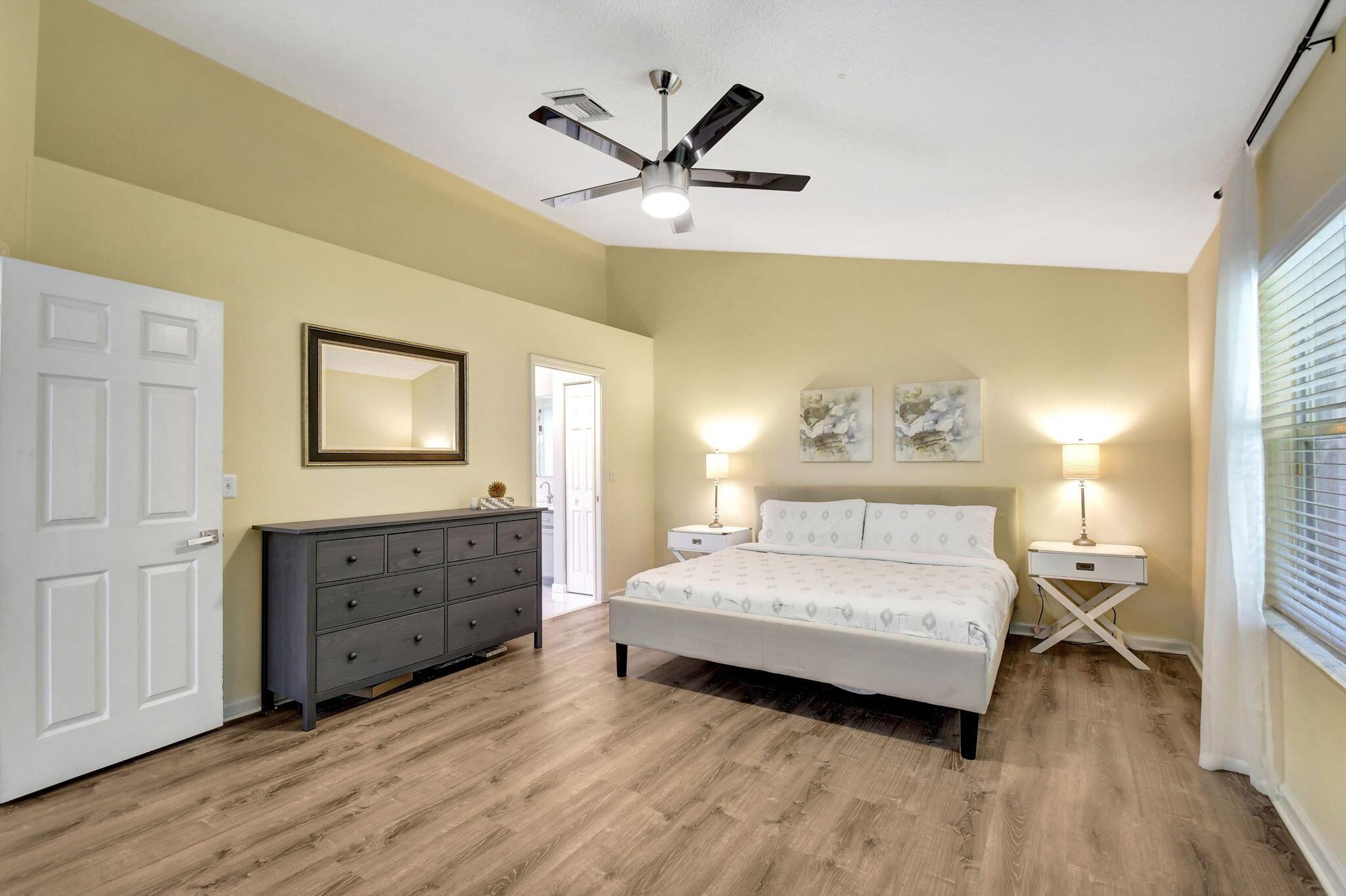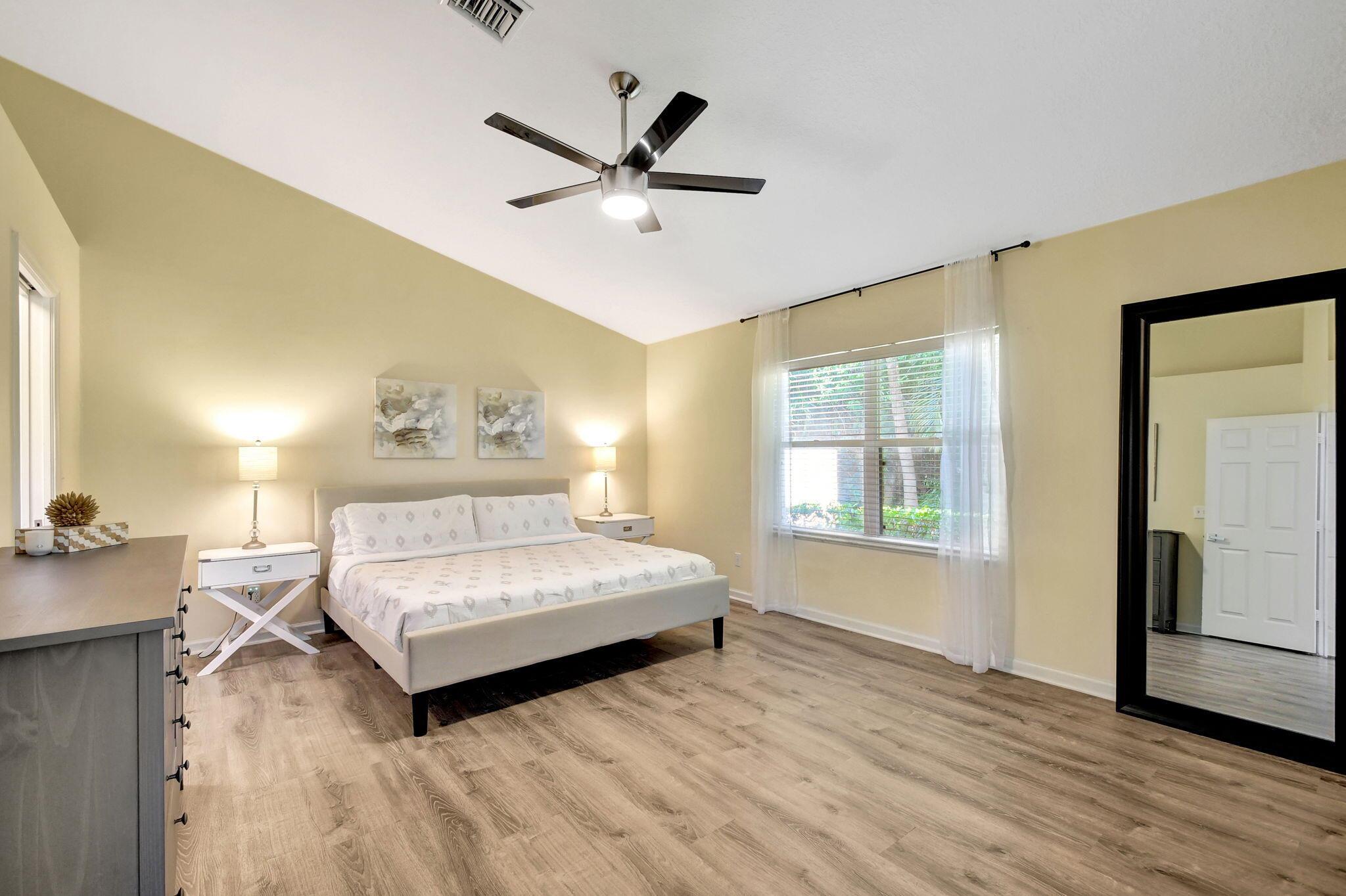 Welcome to 5361 Grande Palm Circle, nestled in the prestigious, gated community of Palm Beach Bath & Tennis in Delray Beach. This meticulously renovated home offers a modern living experience with a desirable split floorplan, soaring ceilings, and sleek updated bathrooms.The community boasts low HOA fee of just $310 per month, providing access to a range of amenities including tennis courts, basketball courts, a sparkling pool, and a clubhouse. Enjoy leisurely evening walks with your family and furry friends along the community’s charming sidewalks.The home’s private backyard is perfect for entertaining guests, while the garage is equipped with a Tesla charger, adding a touch of convenience for electric vehicle