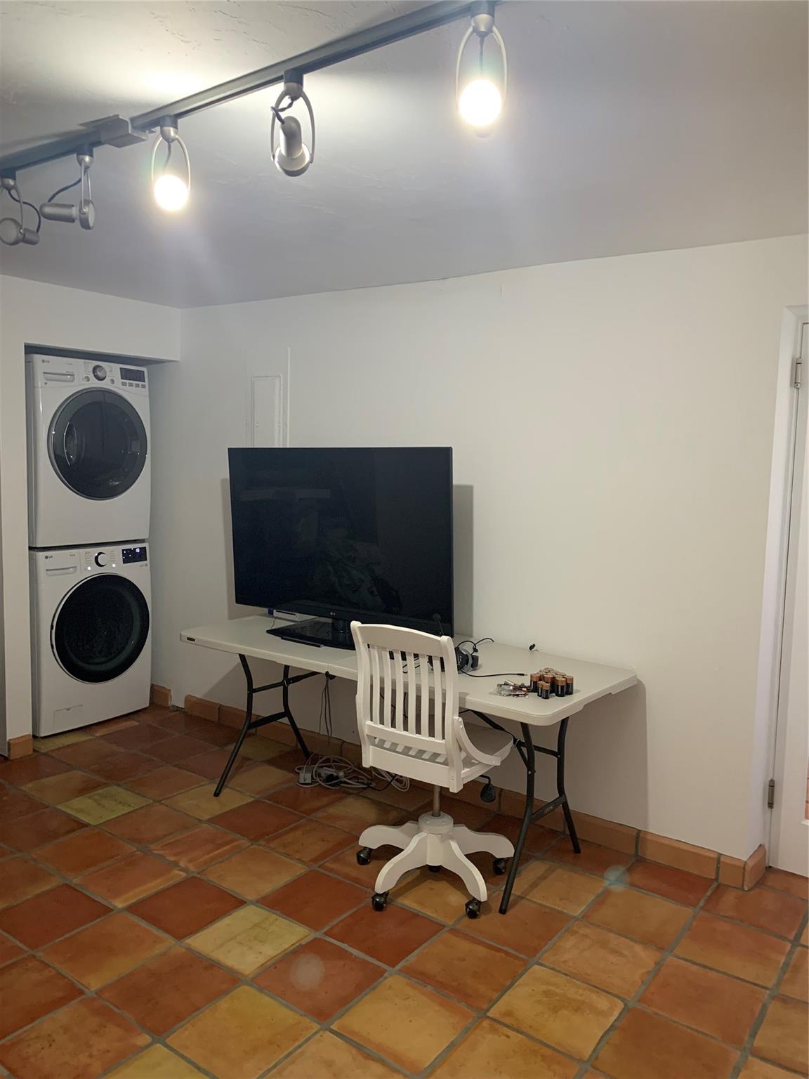 Single car garage with split system A/C unit.