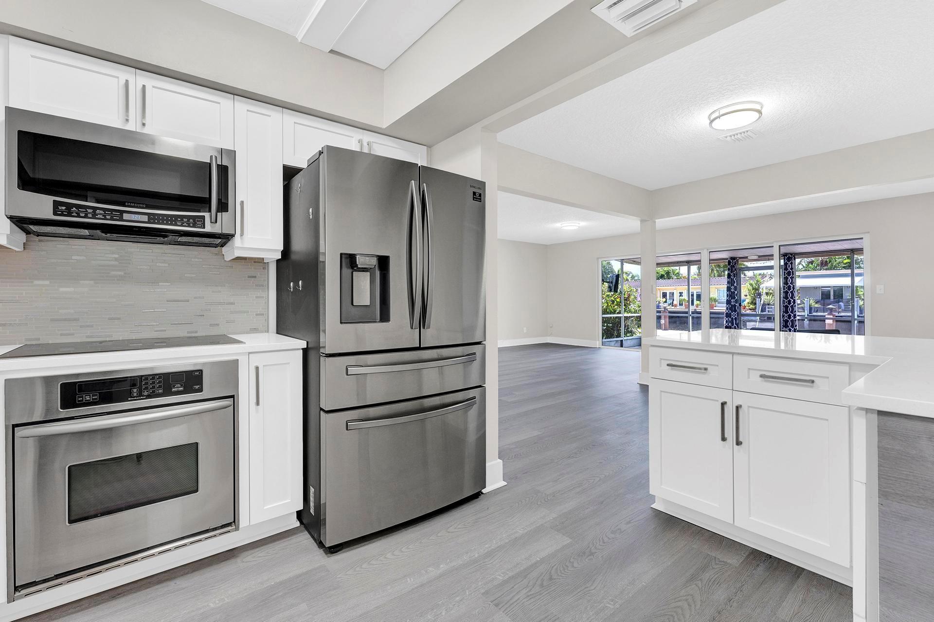 Waterfront 3/2 home in desirable east Wilton Manors. Move in ready. Newly remodeled kitchen with luxury vinyl floors. Roof 2014 with single wraps added. Elevated retaining wall with new trex dock 2021. New A/C 2021.