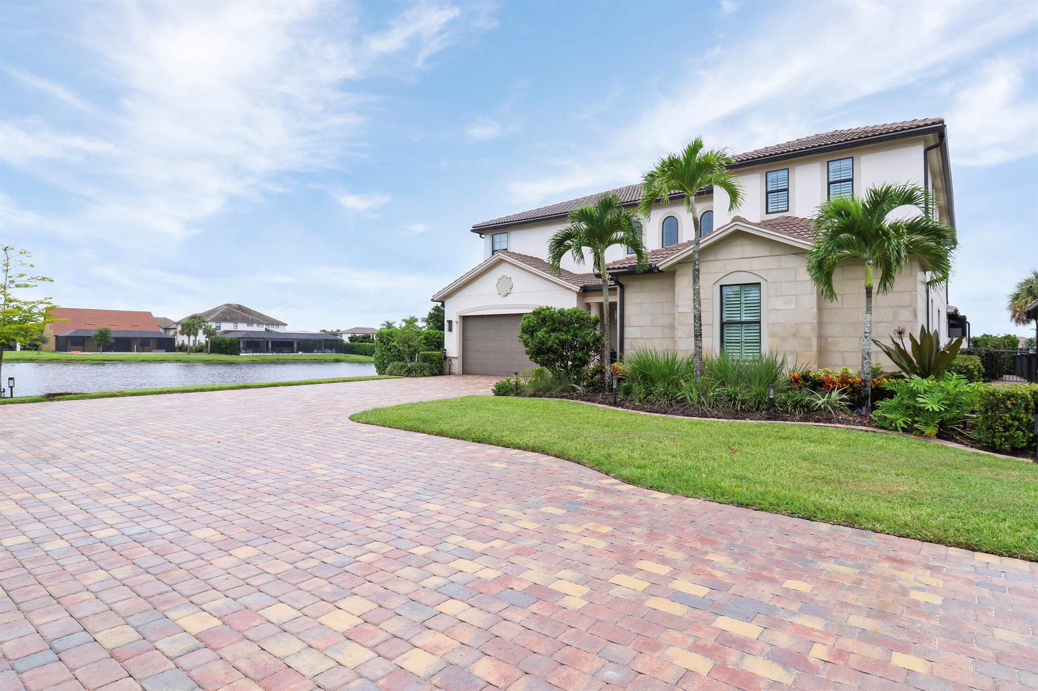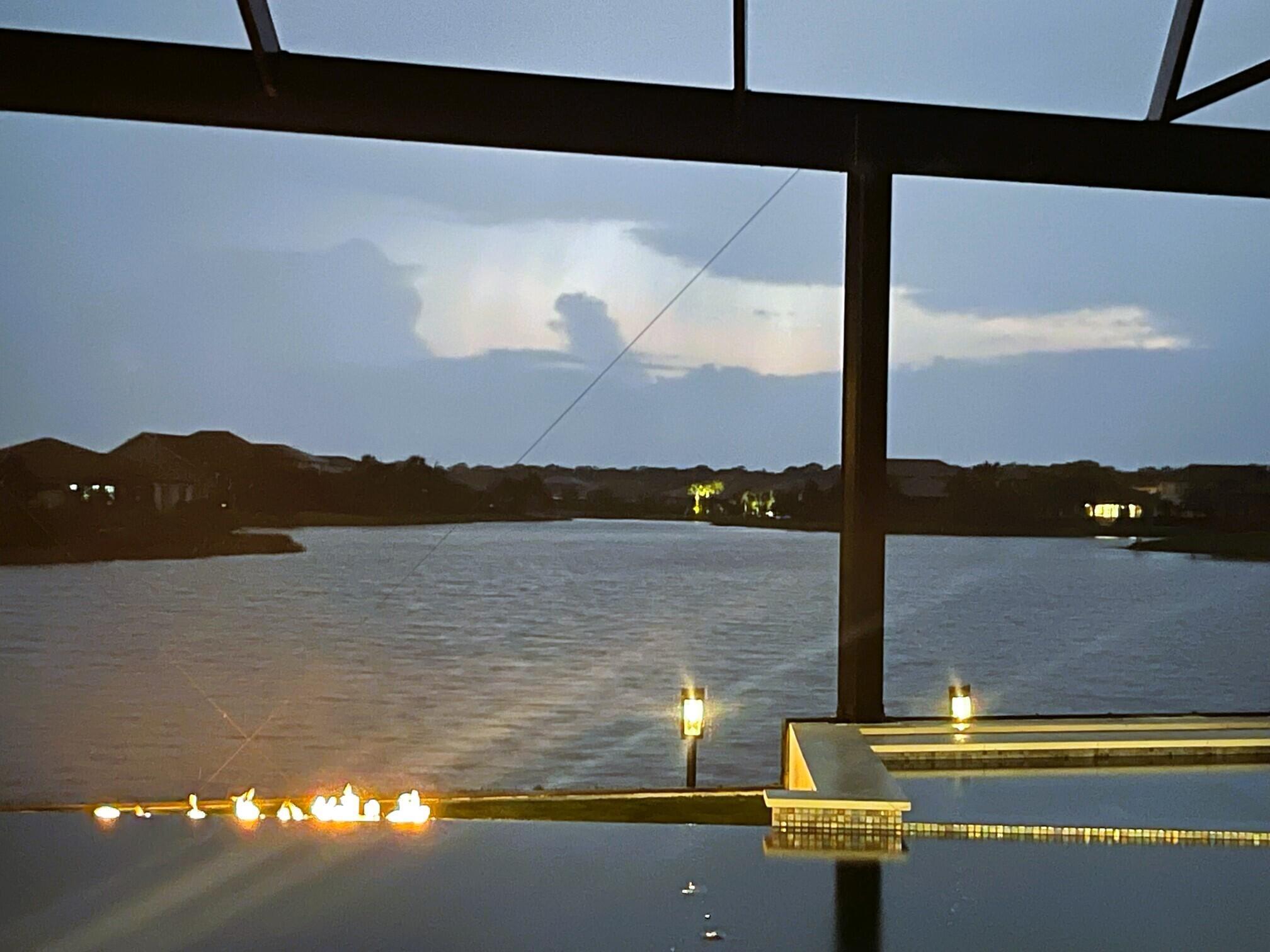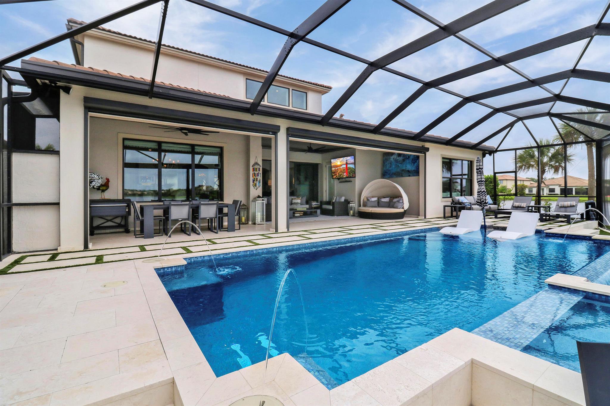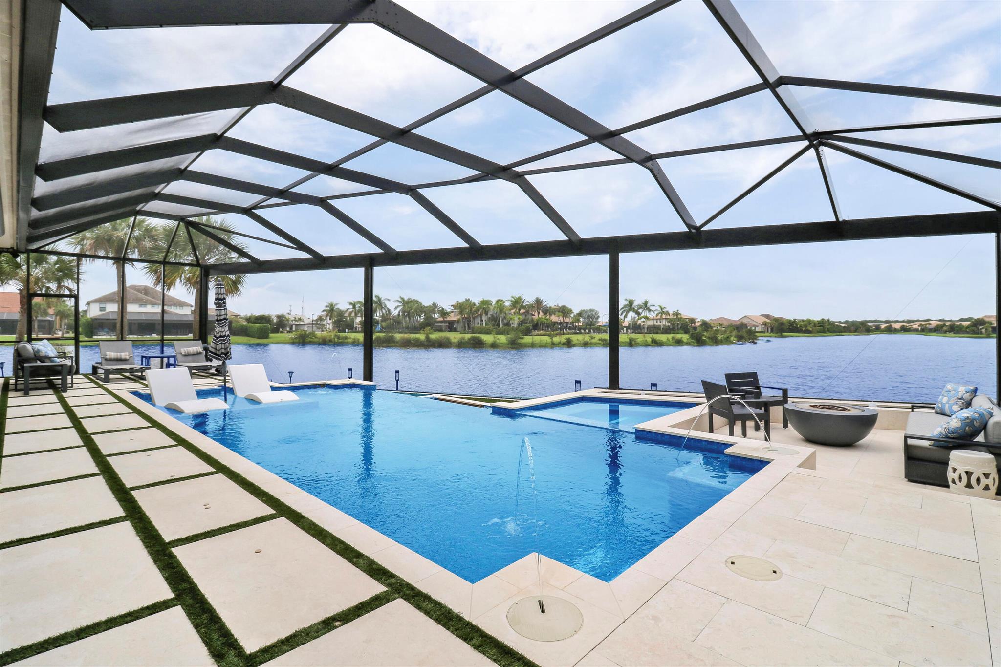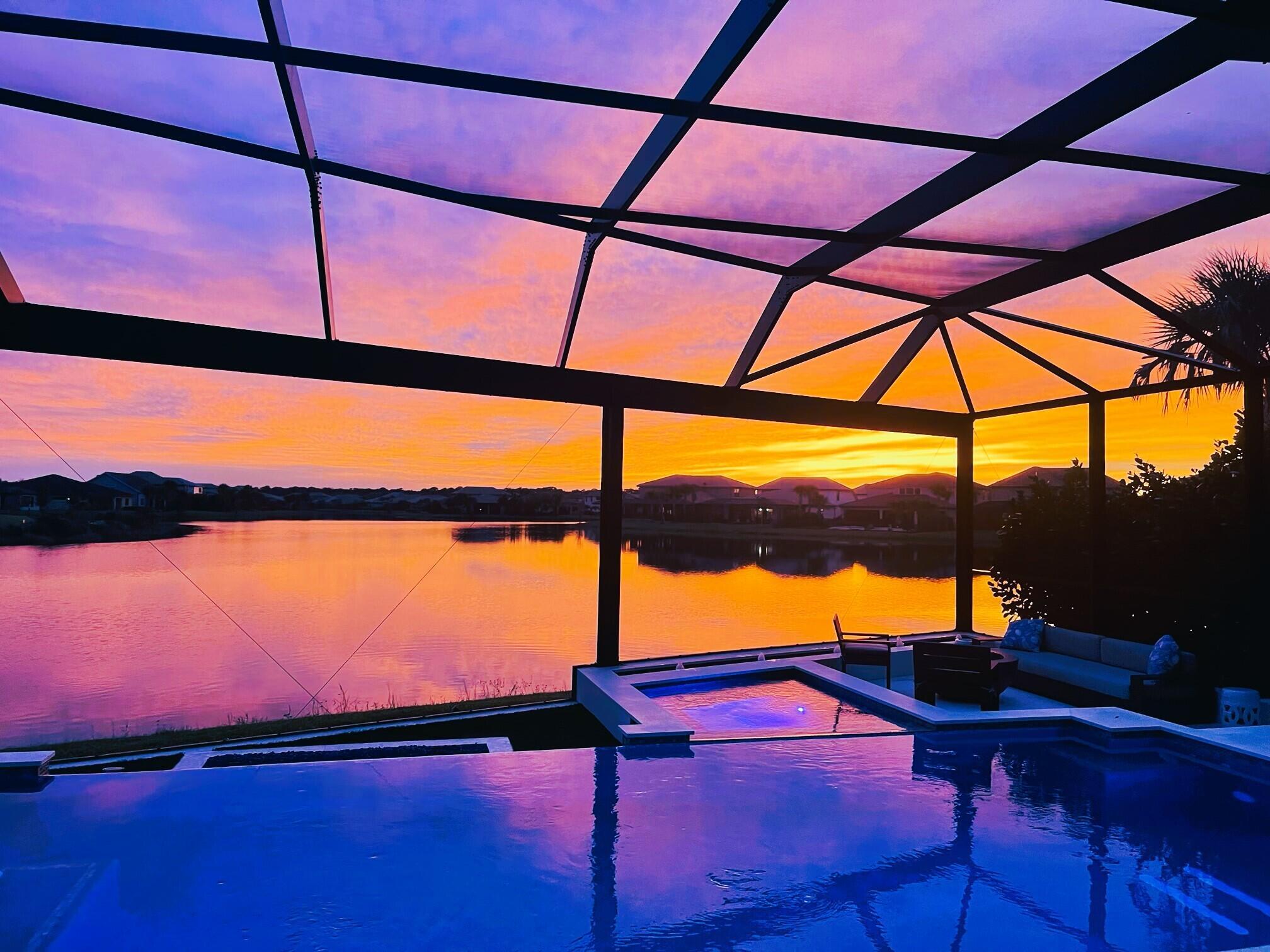 This stunning 6-bedroom, 7.5-bath home is a true entertainer’s dream, situated on a prime lakefront lot. With over 5,100/sf of living space, there is plenty of room for relaxation and hosting guests. The gourmet kitchen features extended cabinetry and designer lighting, while the elegant upgrades throughout the home include wallpaper, moldings and window treatments. The first floor includes an oversized primary bedroom with a large sitting area and spacious bath along with two additional bedrooms and 4 baths. Upstairs, you’ll find a home theatre, loft area, and 3 guest suites. The house is surrounded by water, creating a peaceful atmosphere with the infinity edge pool as the centerpiece. This home offers a luxurious lifestyle in a beautiful setting, perfect for those who love to entertain