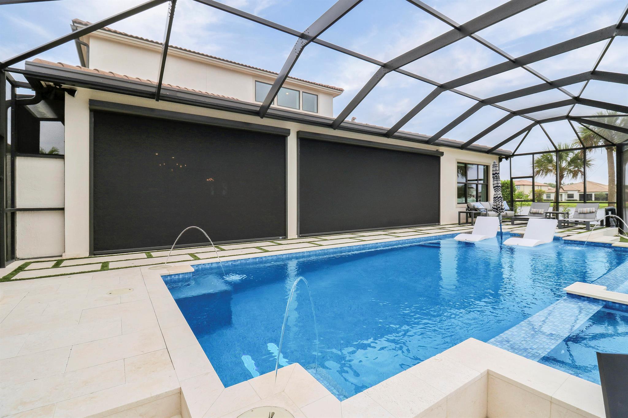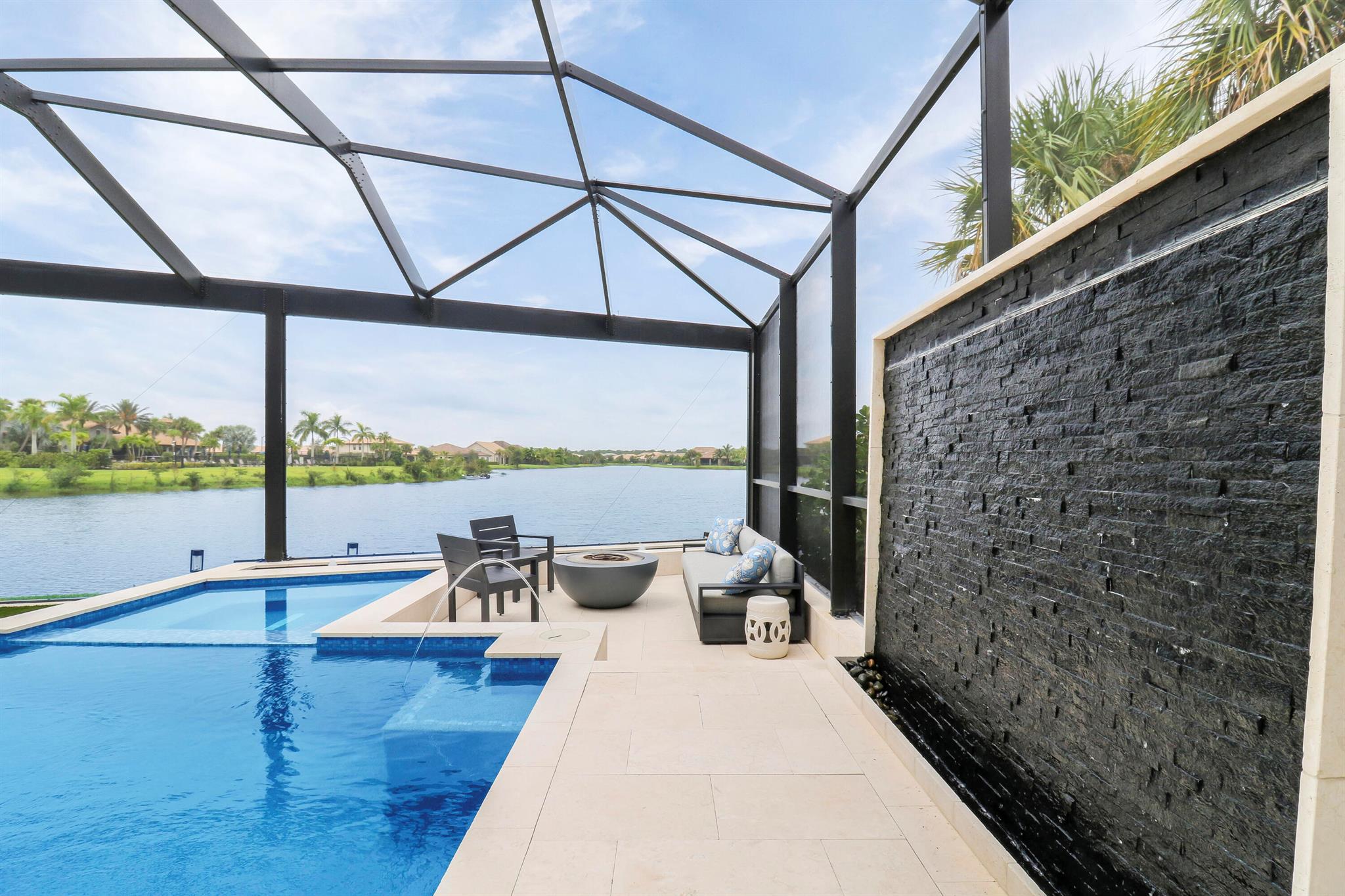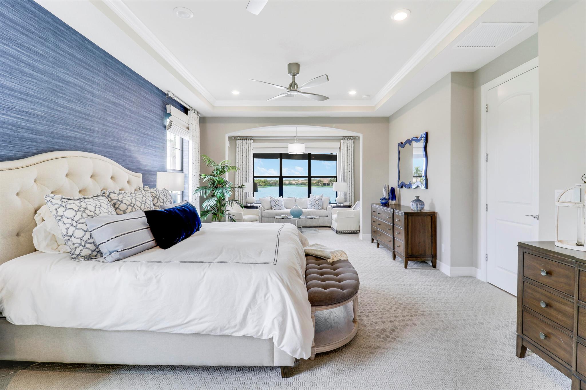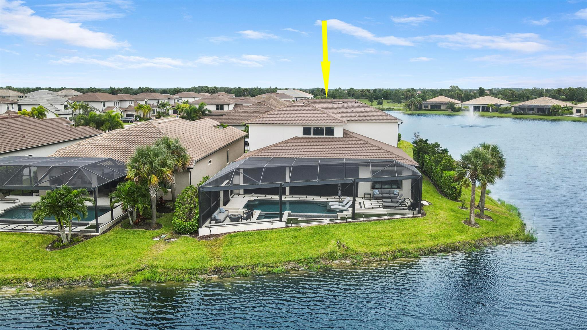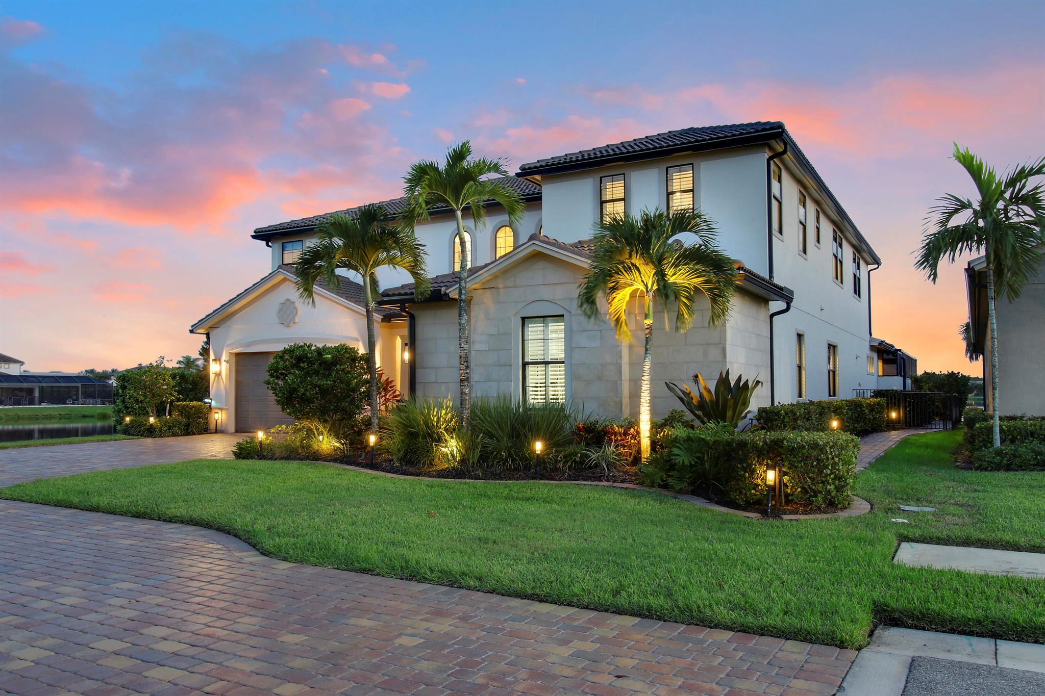 This stunning 6-bedroom, 7.5-bath home is a true entertainer’s dream, situated on a prime lakefront lot. With over 5,100/sf of living space, there is plenty of room for relaxation and hosting guests. The gourmet kitchen features extended cabinetry and designer lighting, while the elegant upgrades throughout the home include wallpaper, moldings and window treatments. The first floor includes an oversized primary bedroom with a large sitting area and spacious bath along with two additional bedrooms and 4 baths. Upstairs, you’ll find a home theatre, loft area, and 3 guest suites. The house is surrounded by water, creating a peaceful atmosphere with the infinity edge pool as the centerpiece. This home offers a luxurious lifestyle in a beautiful setting, perfect for those who love to entertain