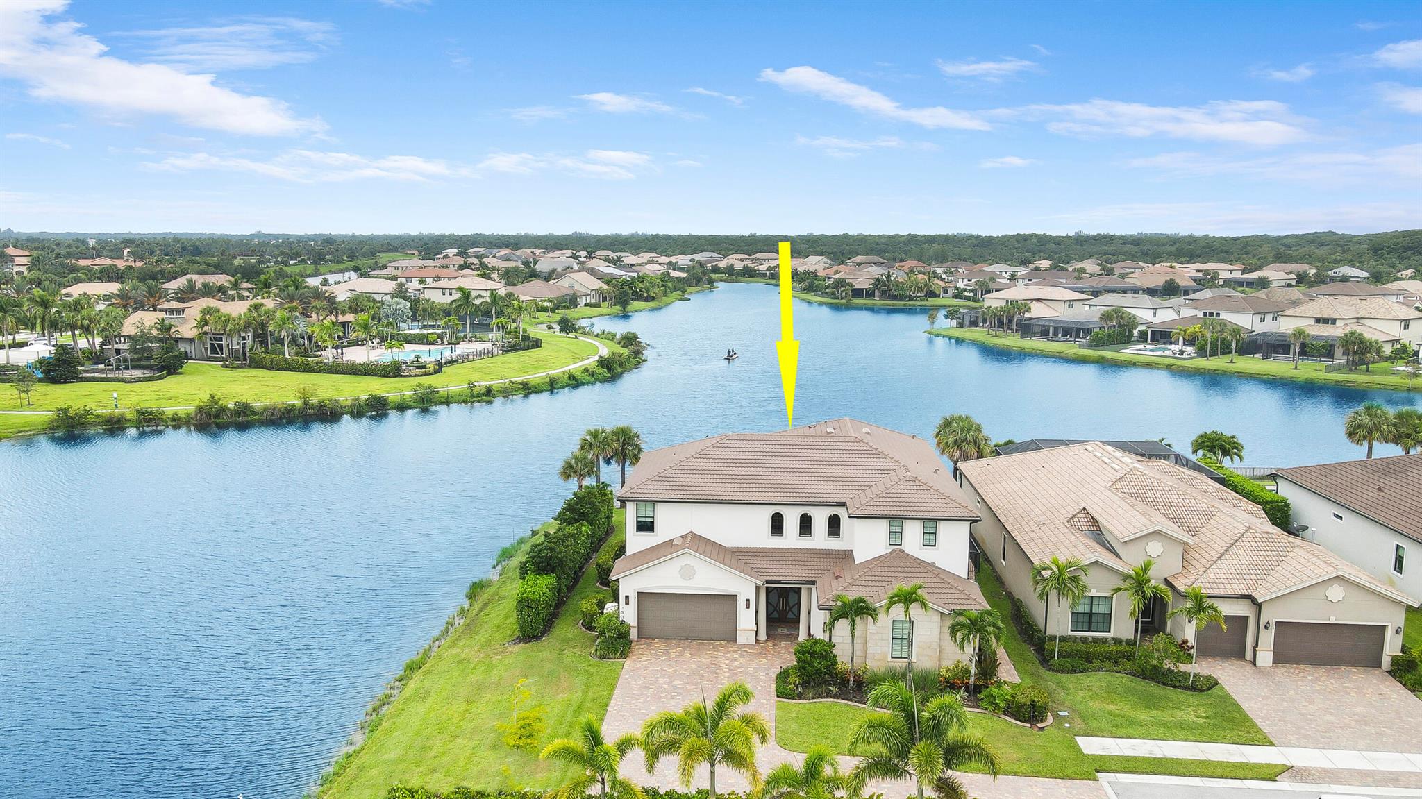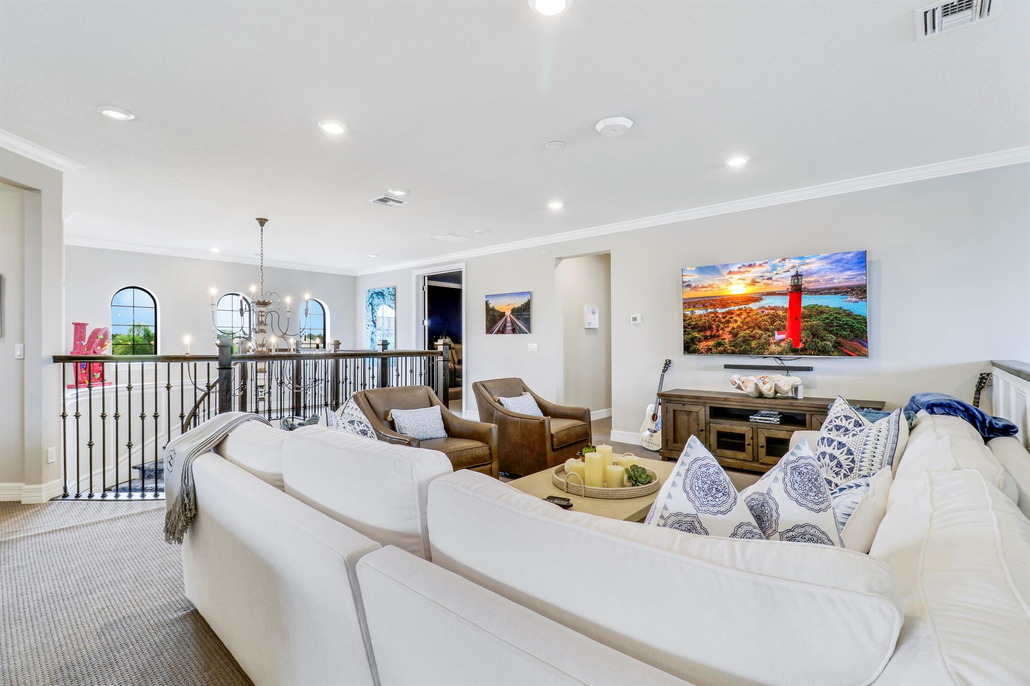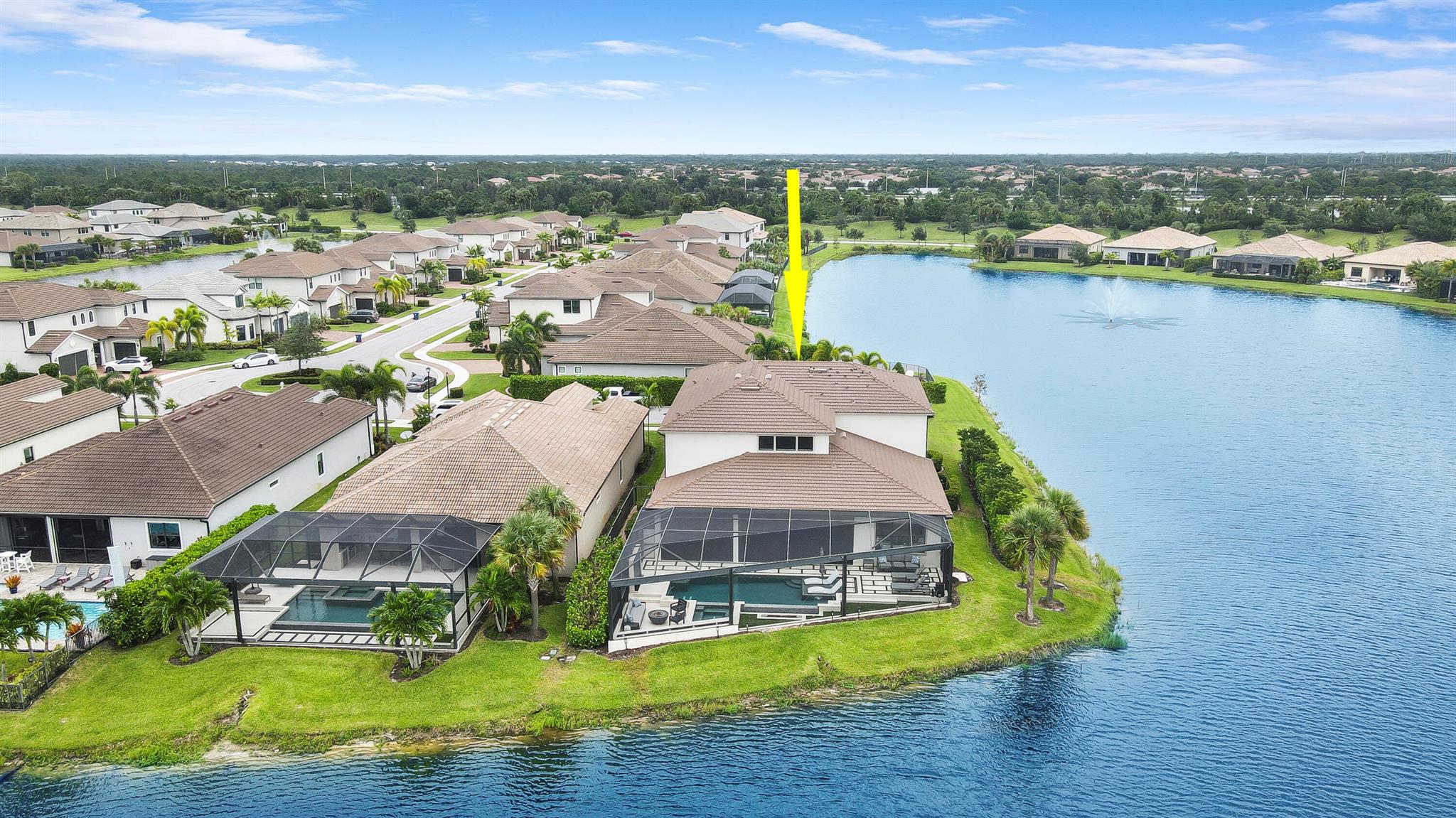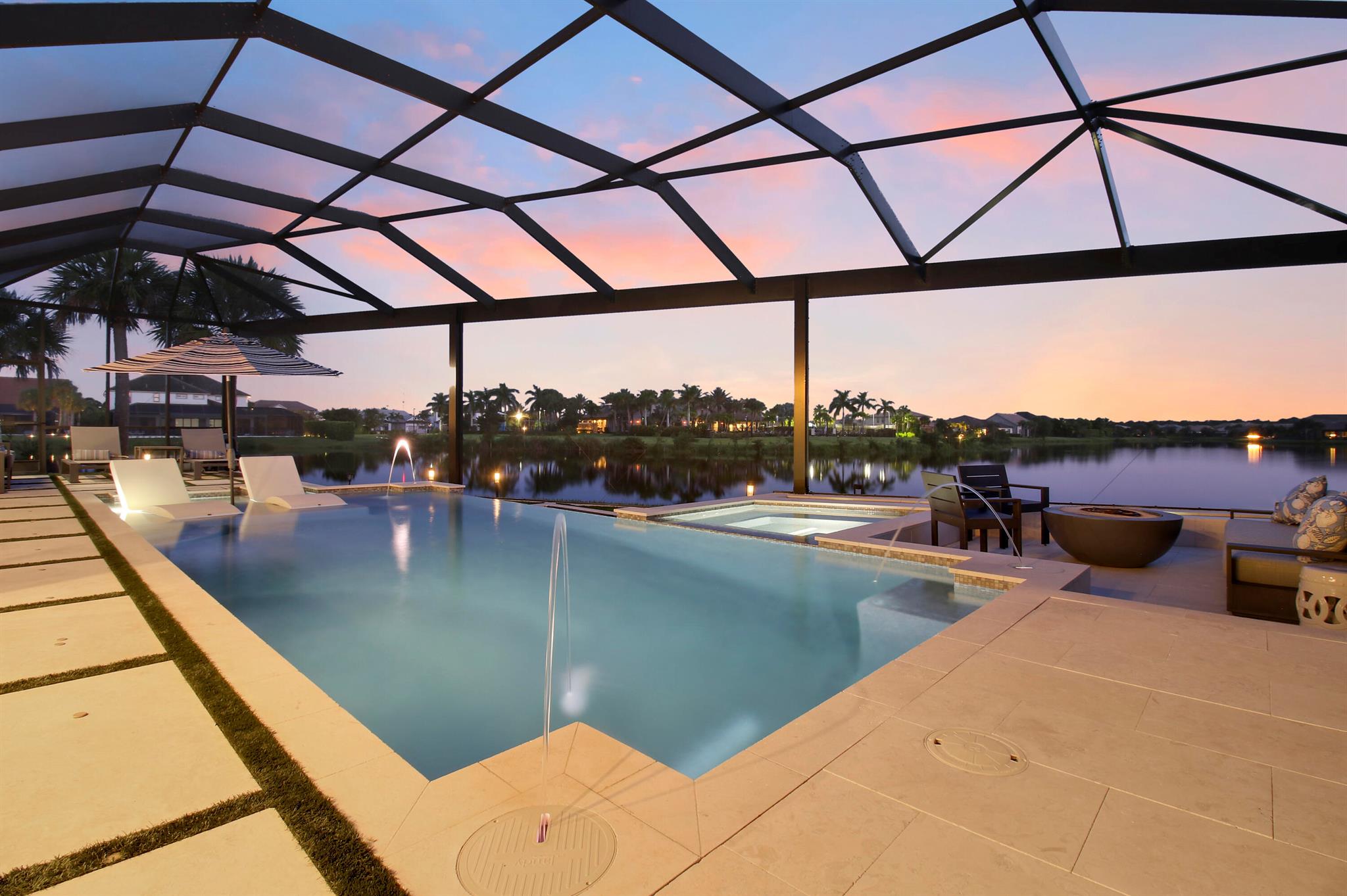 This stunning 6-bedroom, 7.5-bath home is a true entertainer’s dream, situated on a prime lakefront lot. With over 5,100/sf of living space, there is plenty of room for relaxation and hosting guests. The gourmet kitchen features extended cabinetry and designer lighting, while the elegant upgrades throughout the home include wallpaper, moldings and window treatments. The first floor includes an oversized primary bedroom with a large sitting area and spacious bath along with two additional bedrooms and 4 baths. Upstairs, you’ll find a home theatre, loft area, and 3 guest suites. The house is surrounded by water, creating a peaceful atmosphere with the infinity edge pool as the centerpiece. This home offers a luxurious lifestyle in a beautiful setting, perfect for those who love to entertain