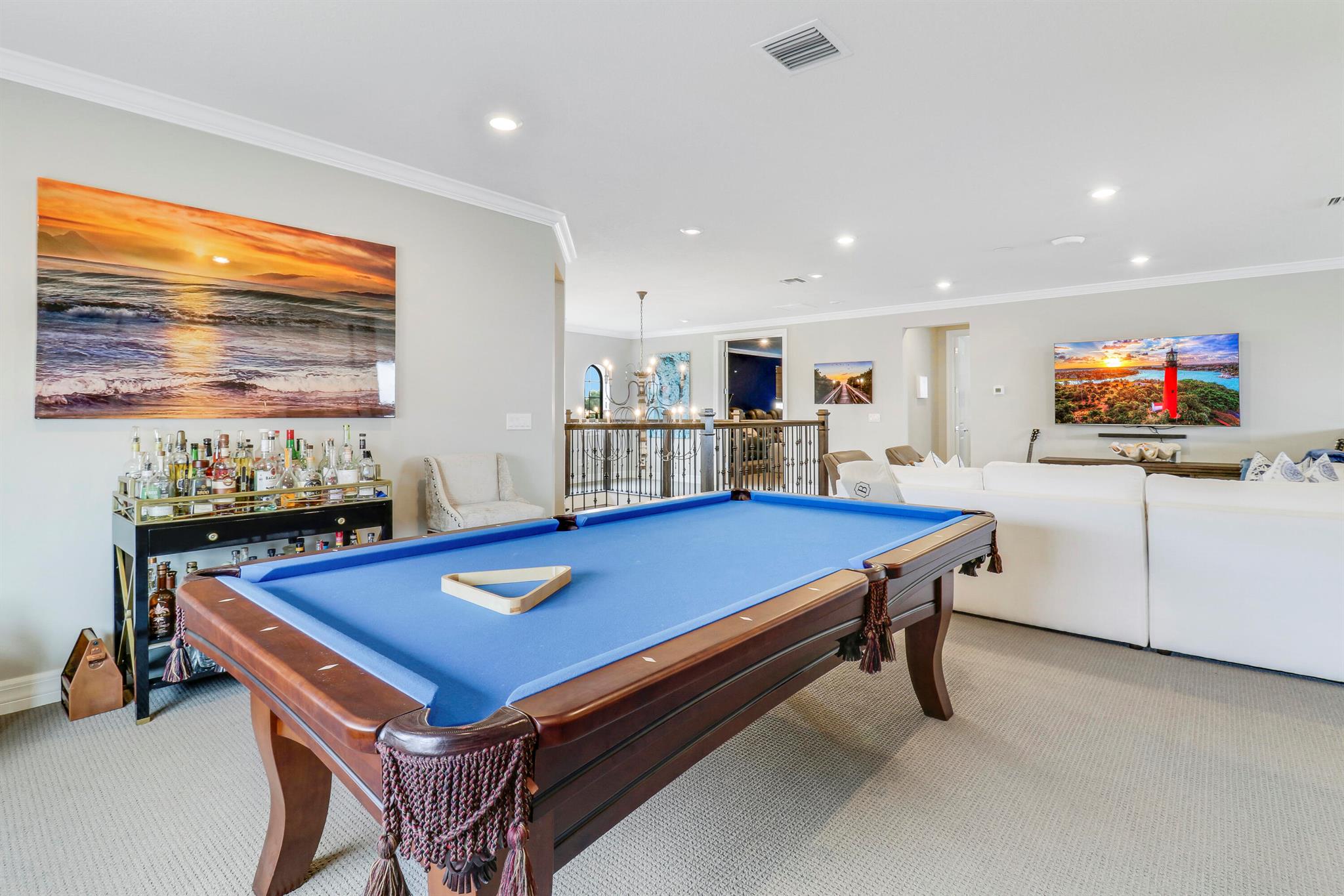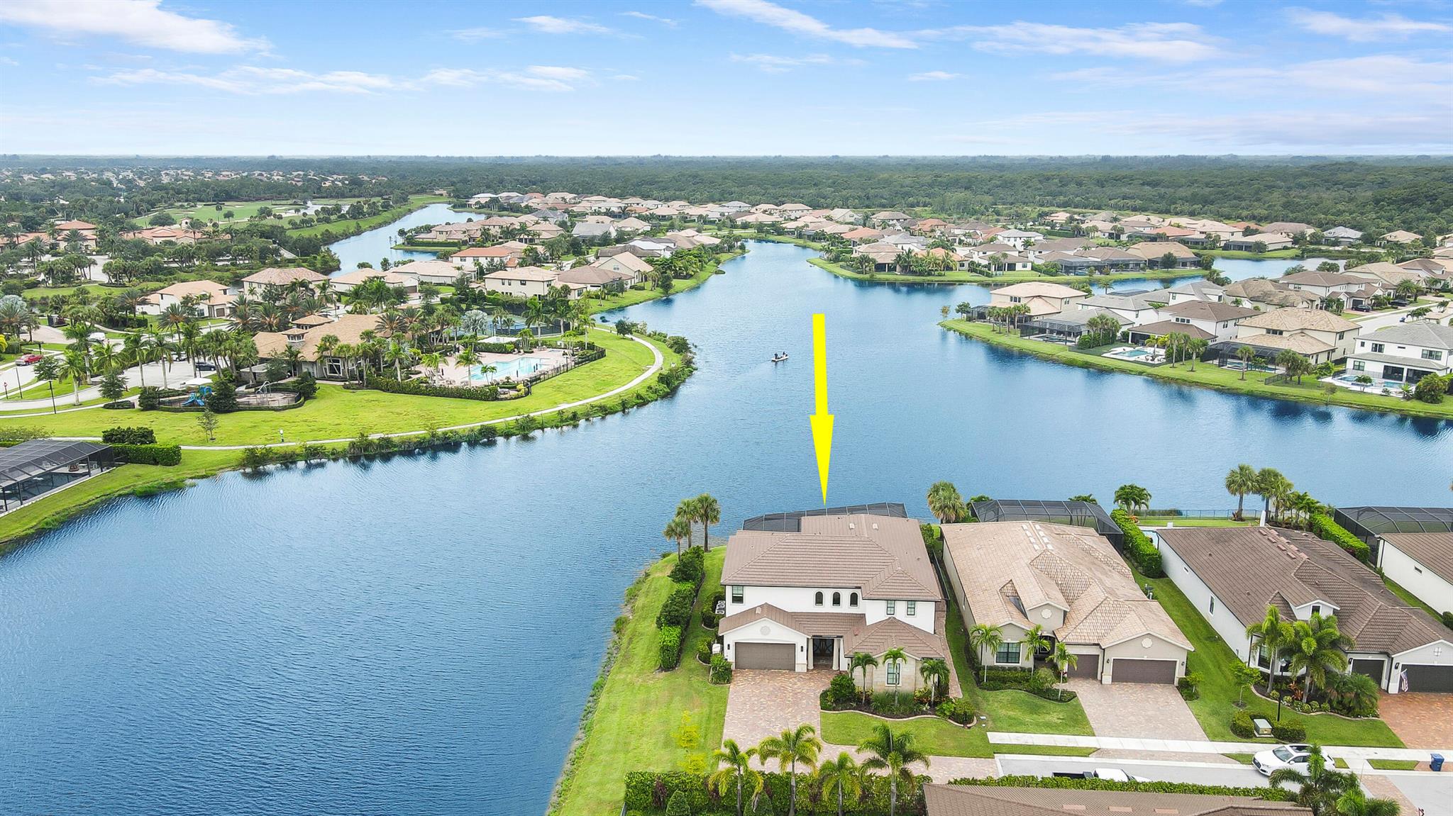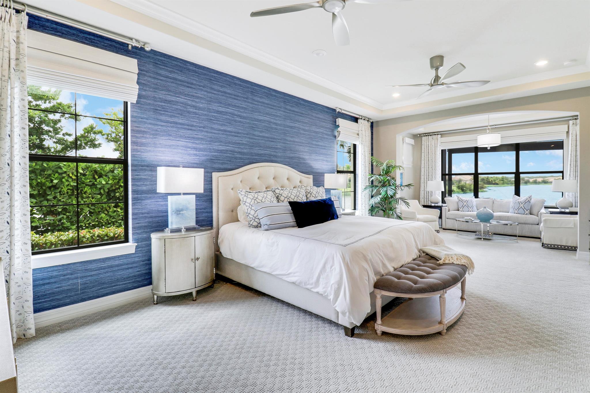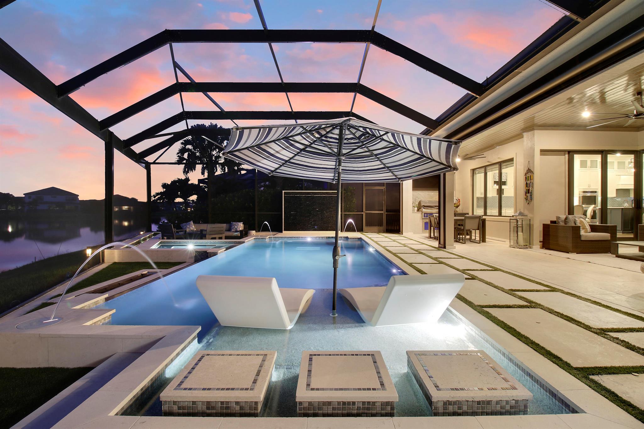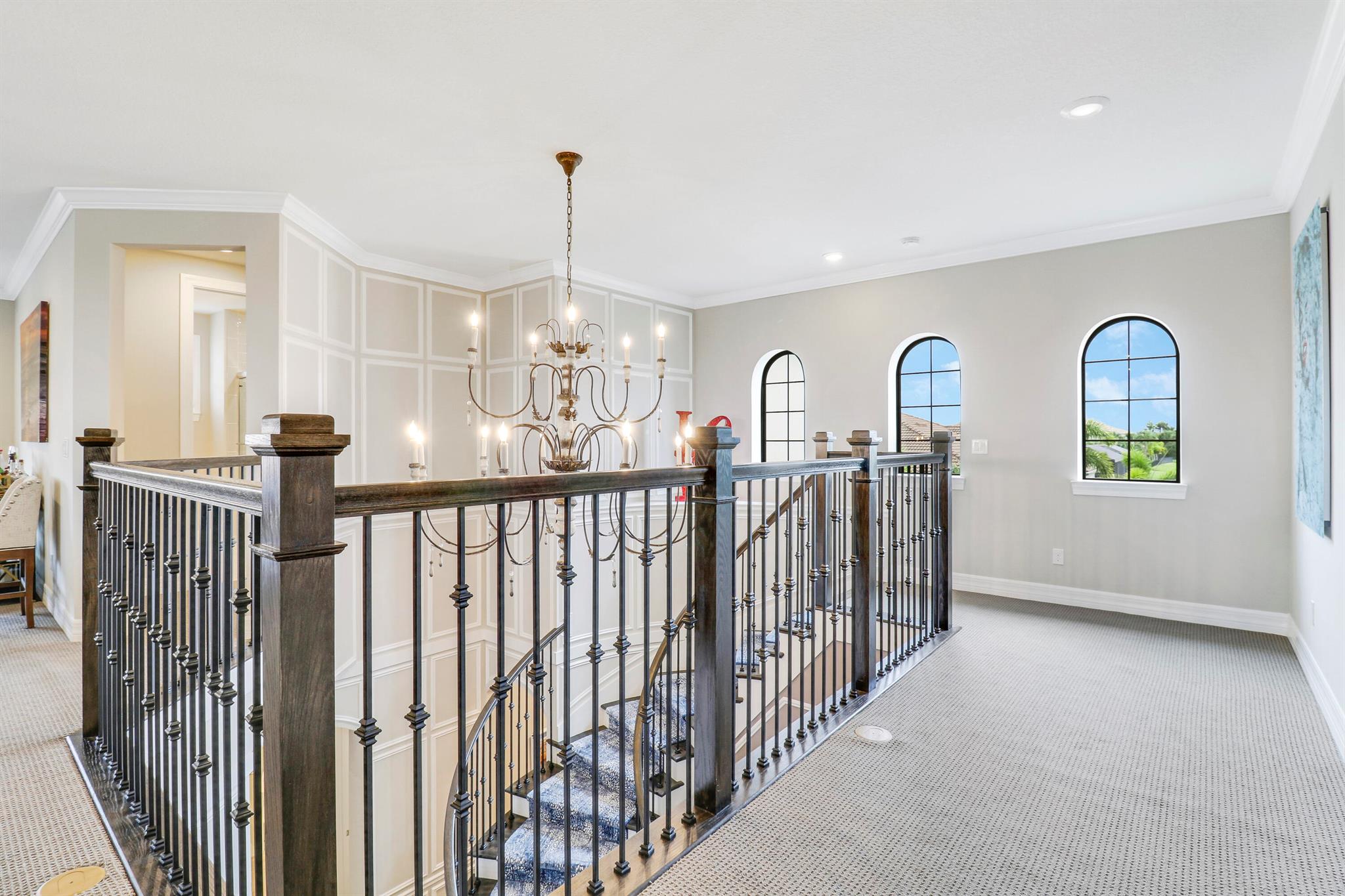 This stunning 6-bedroom, 7.5-bath home is a true entertainer’s dream, situated on a prime lakefront lot. With over 5,100/sf of living space, there is plenty of room for relaxation and hosting guests. The gourmet kitchen features extended cabinetry and designer lighting, while the elegant upgrades throughout the home include wallpaper, moldings and window treatments. The first floor includes an oversized primary bedroom with a large sitting area and spacious bath along with two additional bedrooms and 4 baths. Upstairs, you’ll find a home theatre, loft area, and 3 guest suites. The house is surrounded by water, creating a peaceful atmosphere with the infinity edge pool as the centerpiece. This home offers a luxurious lifestyle in a beautiful setting, perfect for those who love to entertain