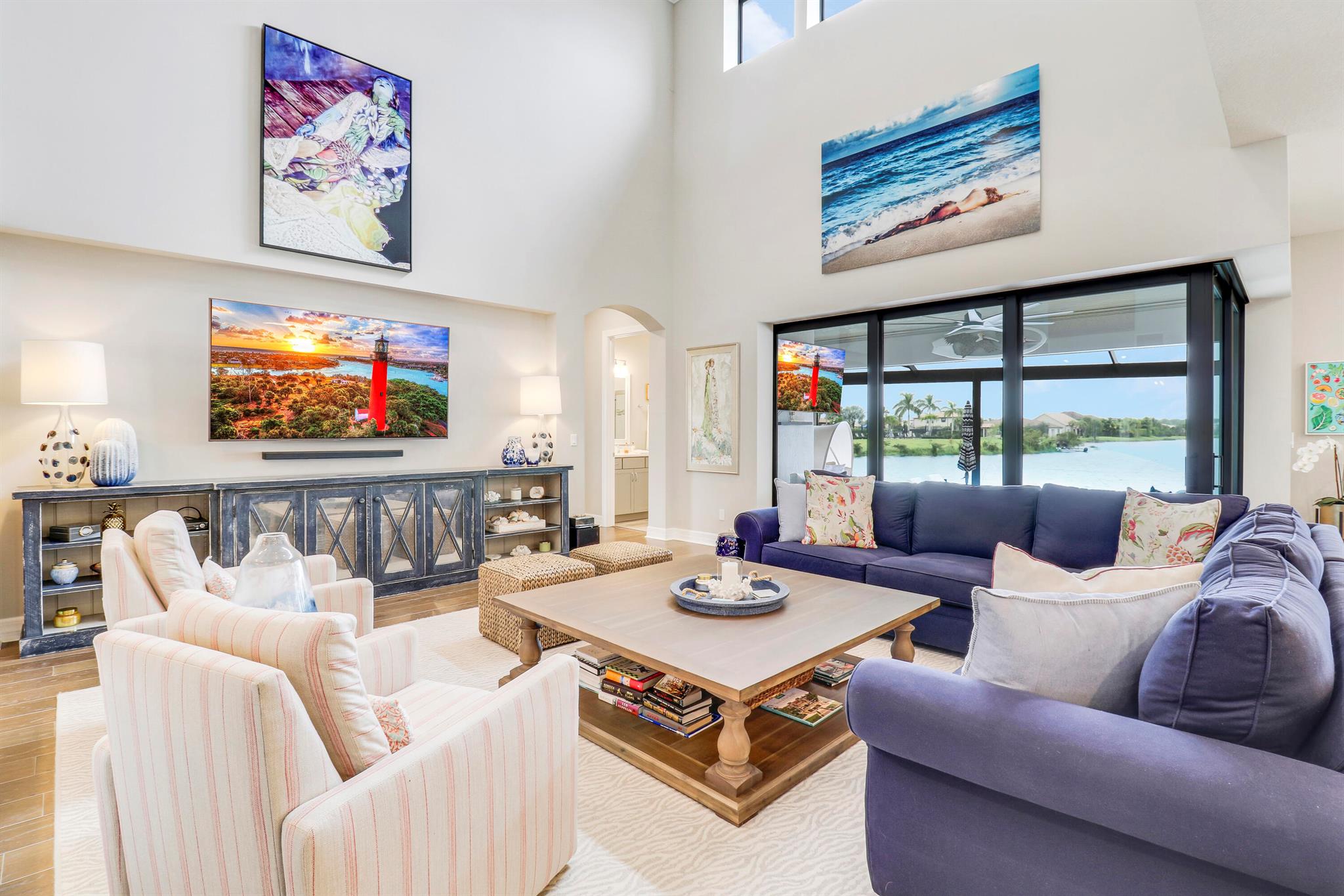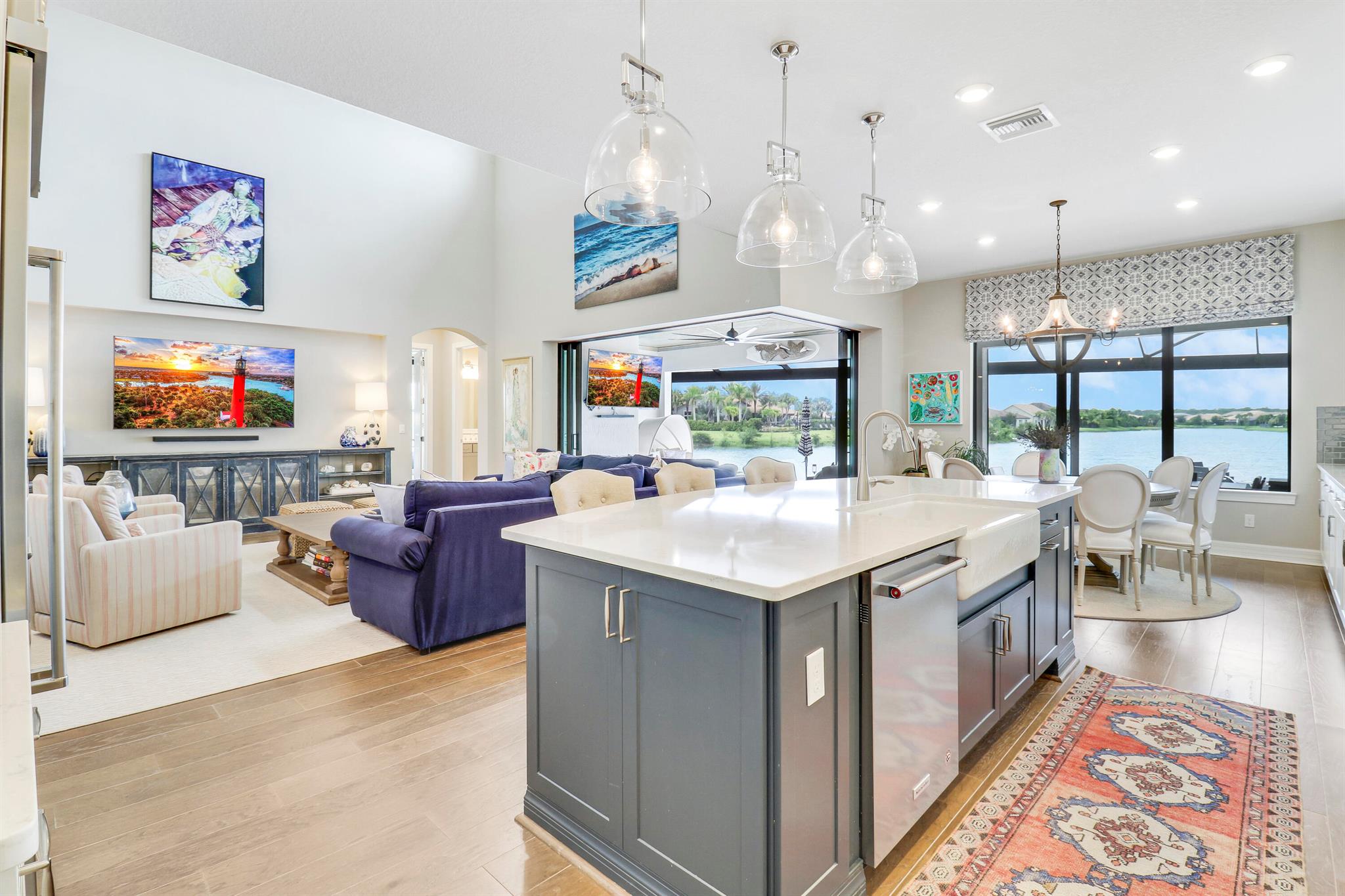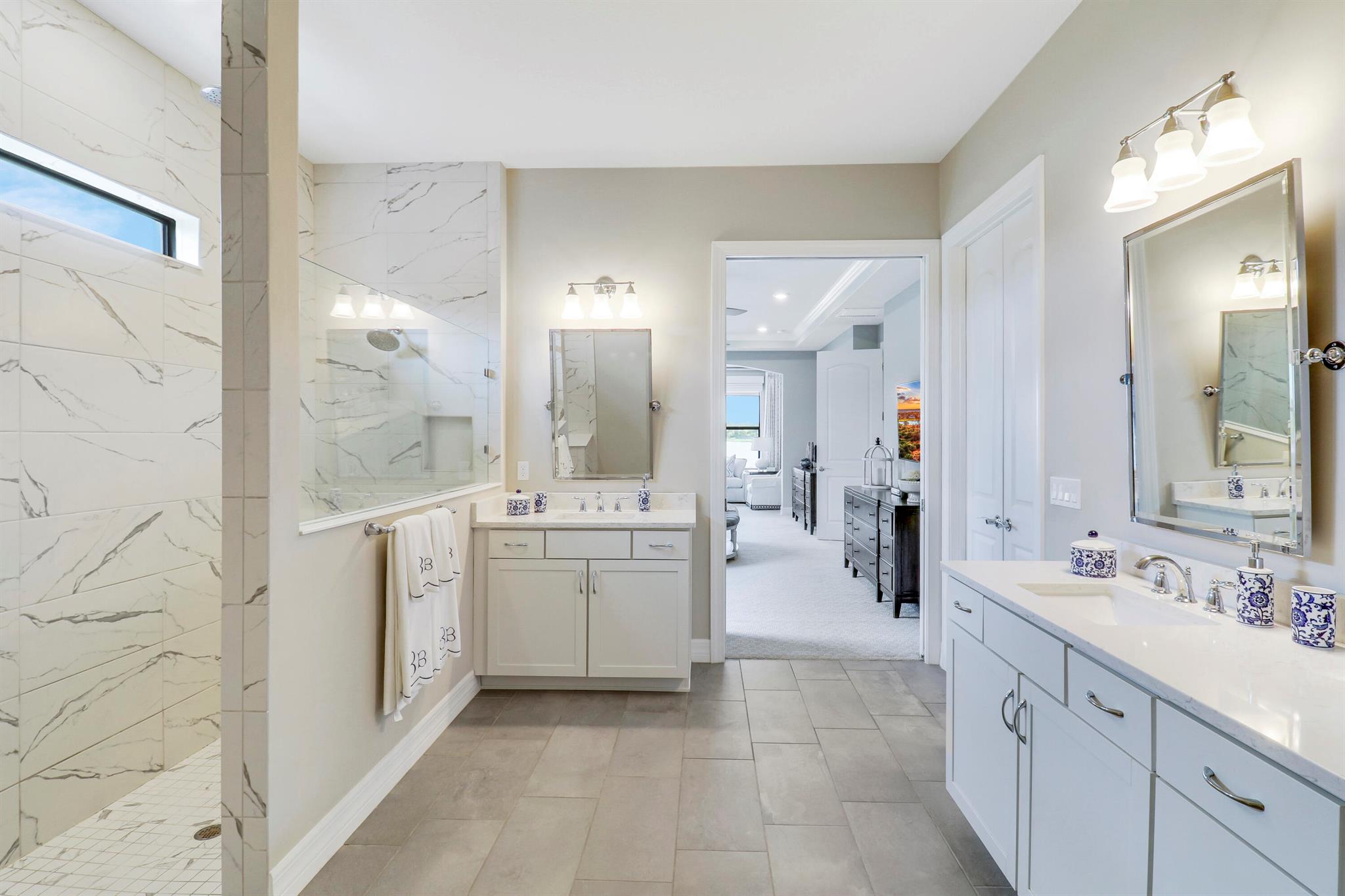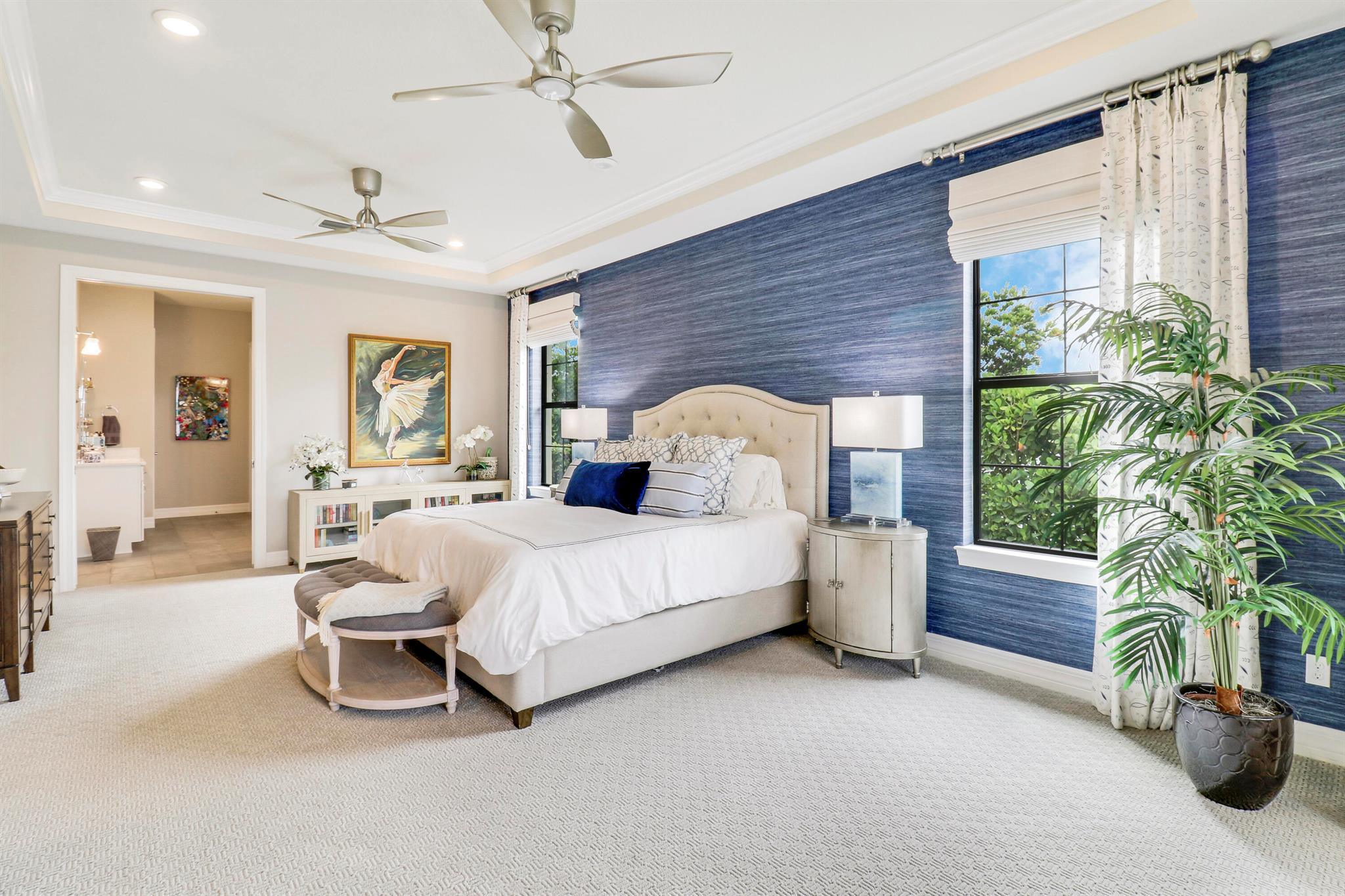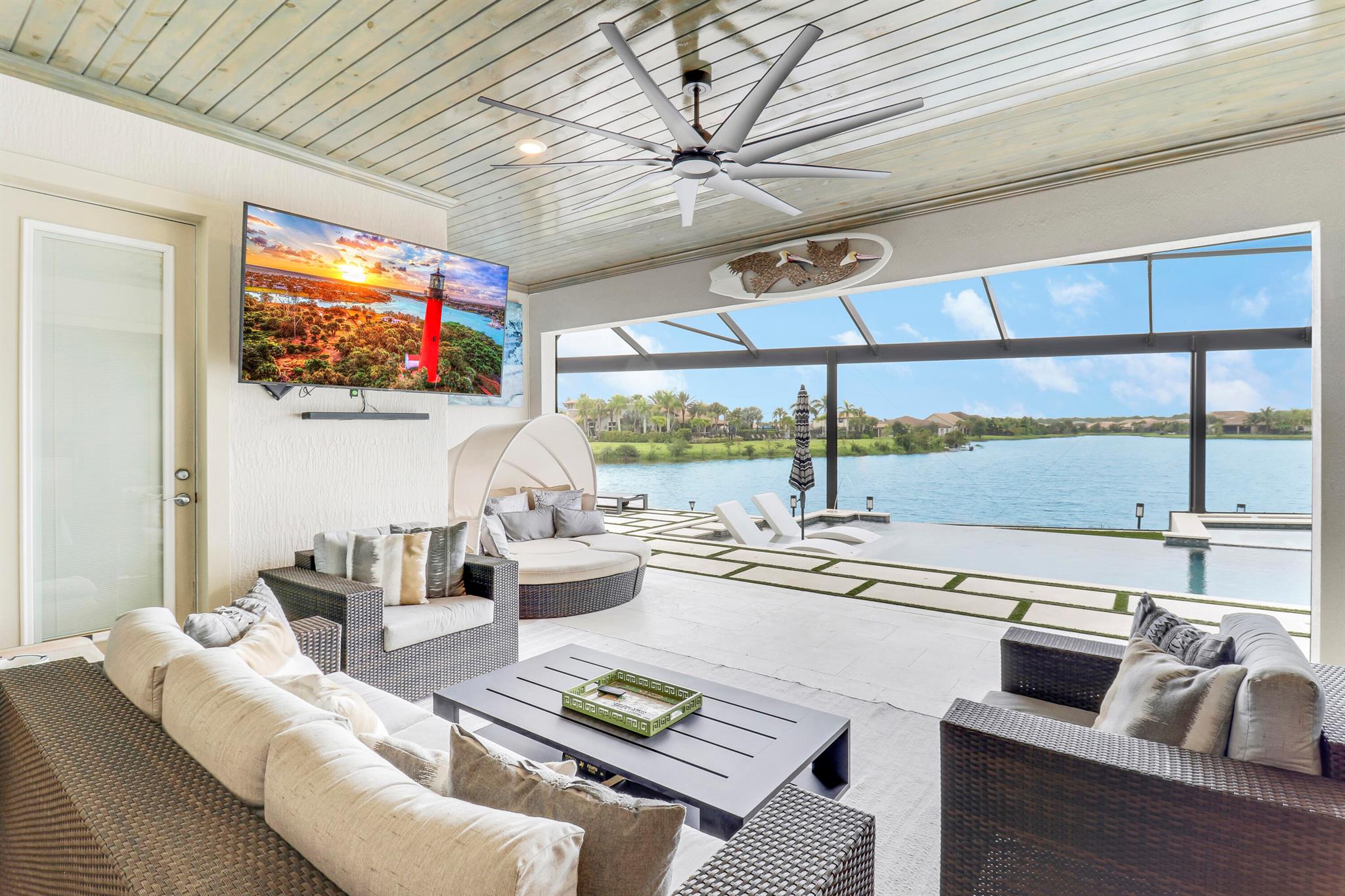 This stunning 6-bedroom, 7.5-bath home is a true entertainer’s dream, situated on a prime lakefront lot. With over 5,100/sf of living space, there is plenty of room for relaxation and hosting guests. The gourmet kitchen features extended cabinetry and designer lighting, while the elegant upgrades throughout the home include wallpaper, moldings and window treatments. The first floor includes an oversized primary bedroom with a large sitting area and spacious bath along with two additional bedrooms and 4 baths. Upstairs, you’ll find a home theatre, loft area, and 3 guest suites. The house is surrounded by water, creating a peaceful atmosphere with the infinity edge pool as the centerpiece. This home offers a luxurious lifestyle in a beautiful setting, perfect for those who love to entertain