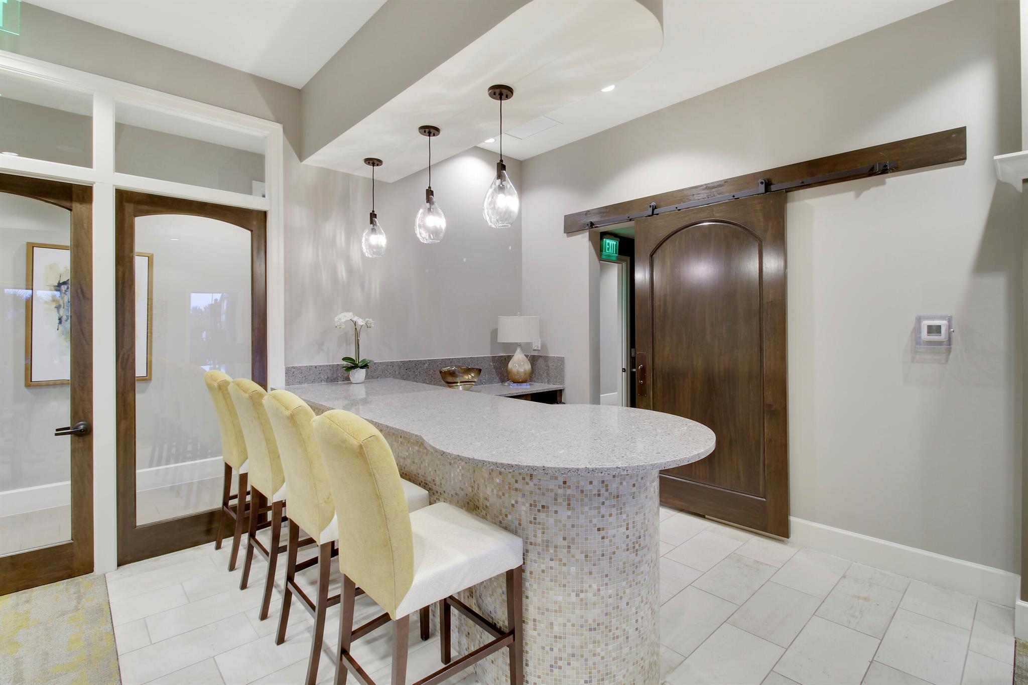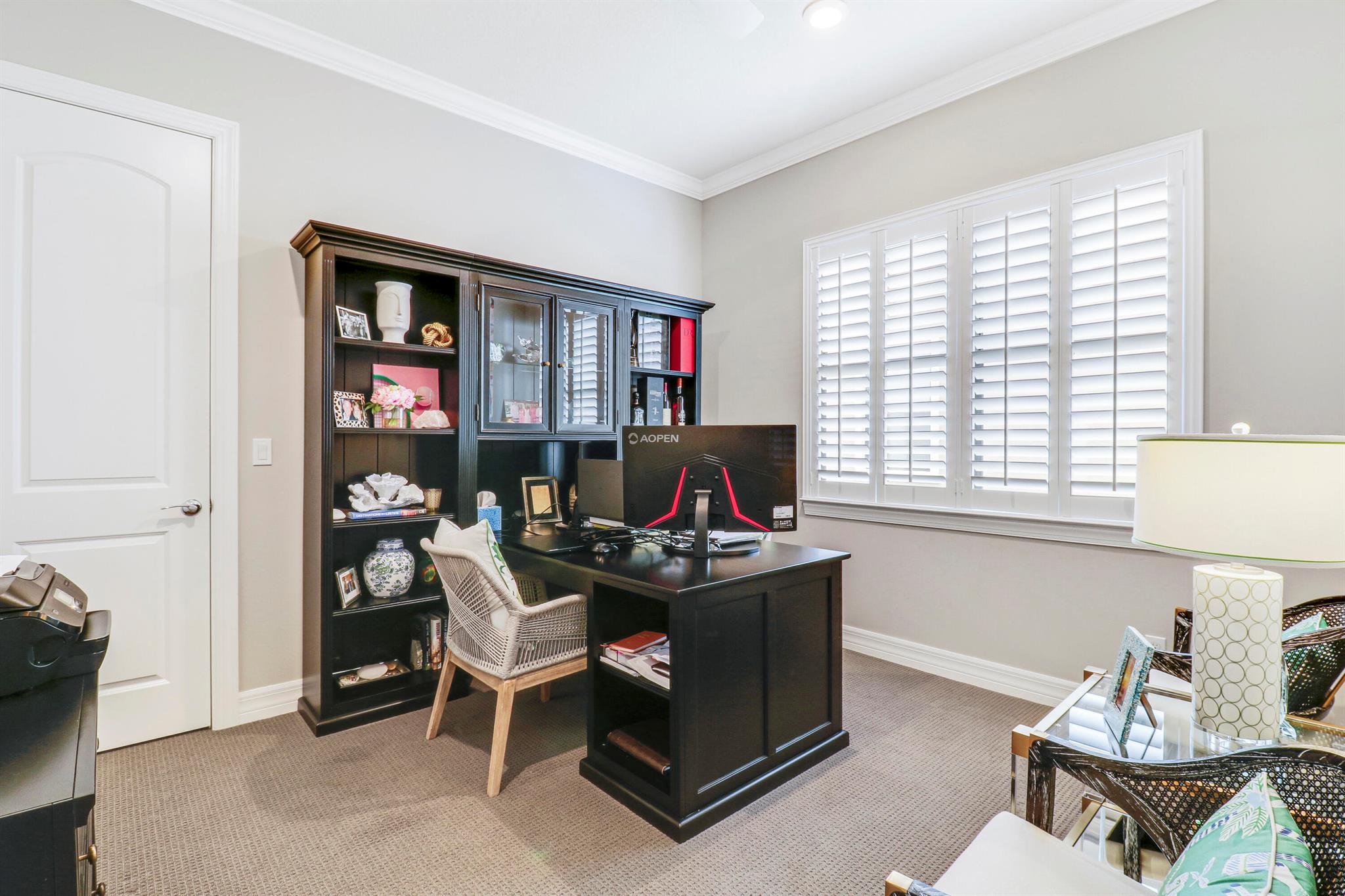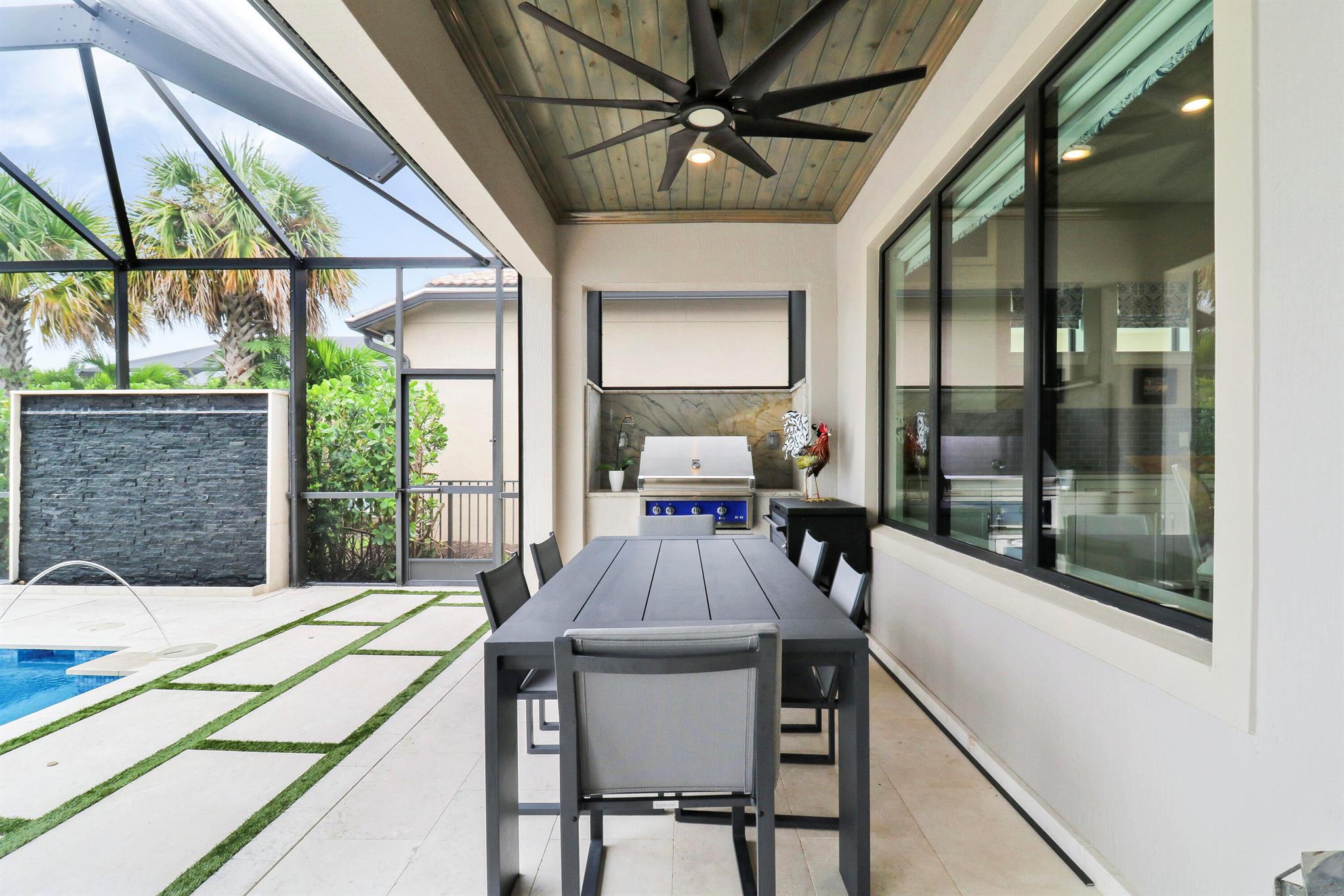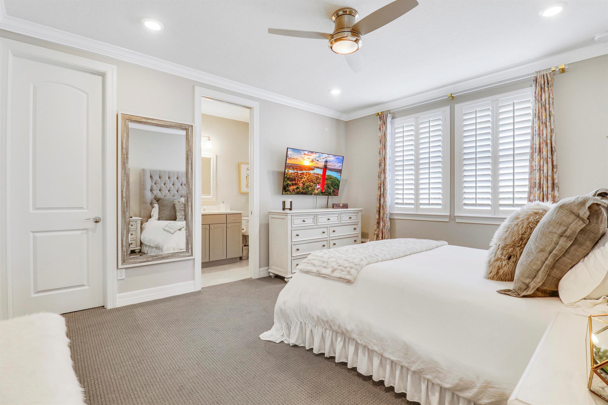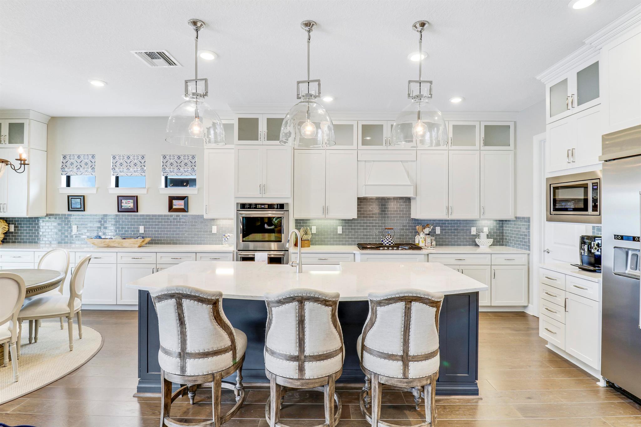 This stunning 6-bedroom, 7.5-bath home is a true entertainer’s dream, situated on a prime lakefront lot. With over 5,100/sf of living space, there is plenty of room for relaxation and hosting guests. The gourmet kitchen features extended cabinetry and designer lighting, while the elegant upgrades throughout the home include wallpaper, moldings and window treatments. The first floor includes an oversized primary bedroom with a large sitting area and spacious bath along with two additional bedrooms and 4 baths. Upstairs, you’ll find a home theatre, loft area, and 3 guest suites. The house is surrounded by water, creating a peaceful atmosphere with the infinity edge pool as the centerpiece. This home offers a luxurious lifestyle in a beautiful setting, perfect for those who love to entertain