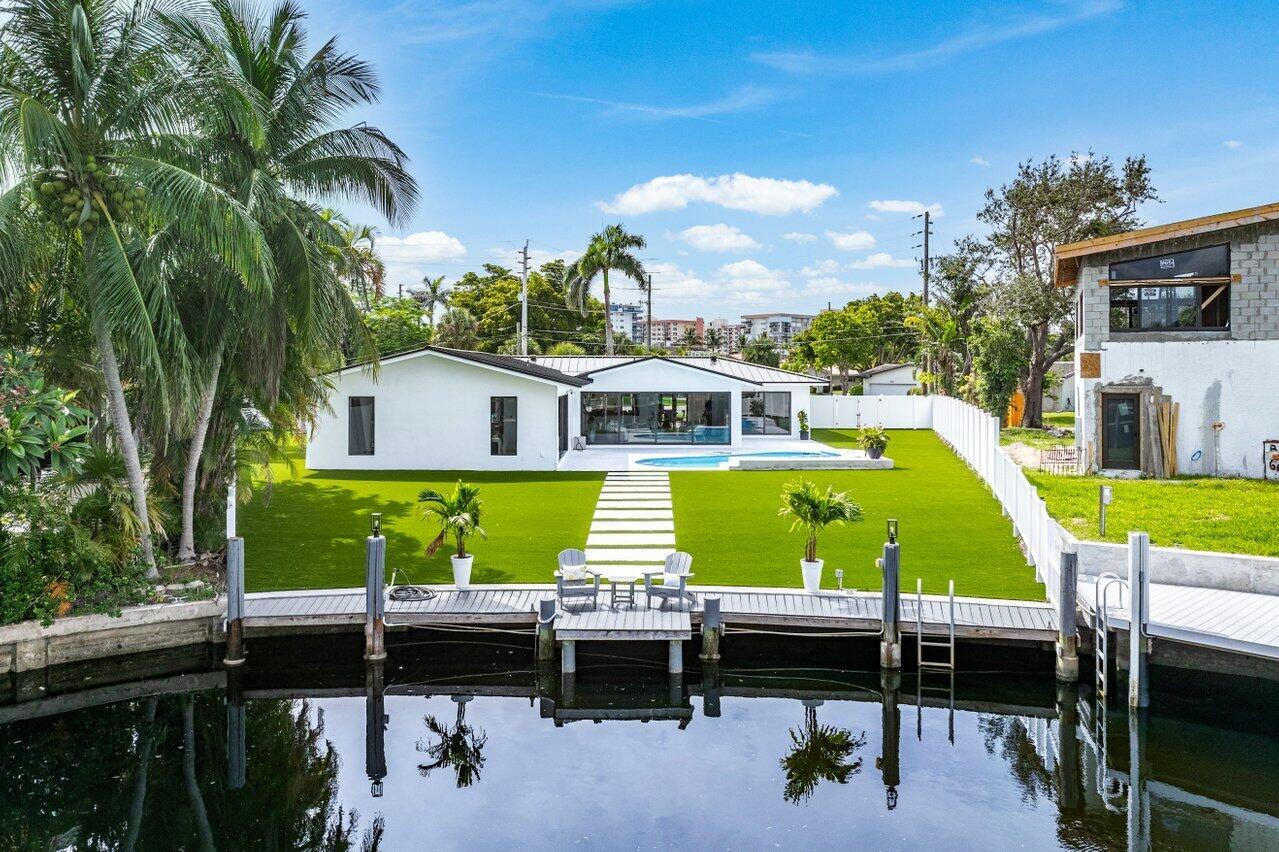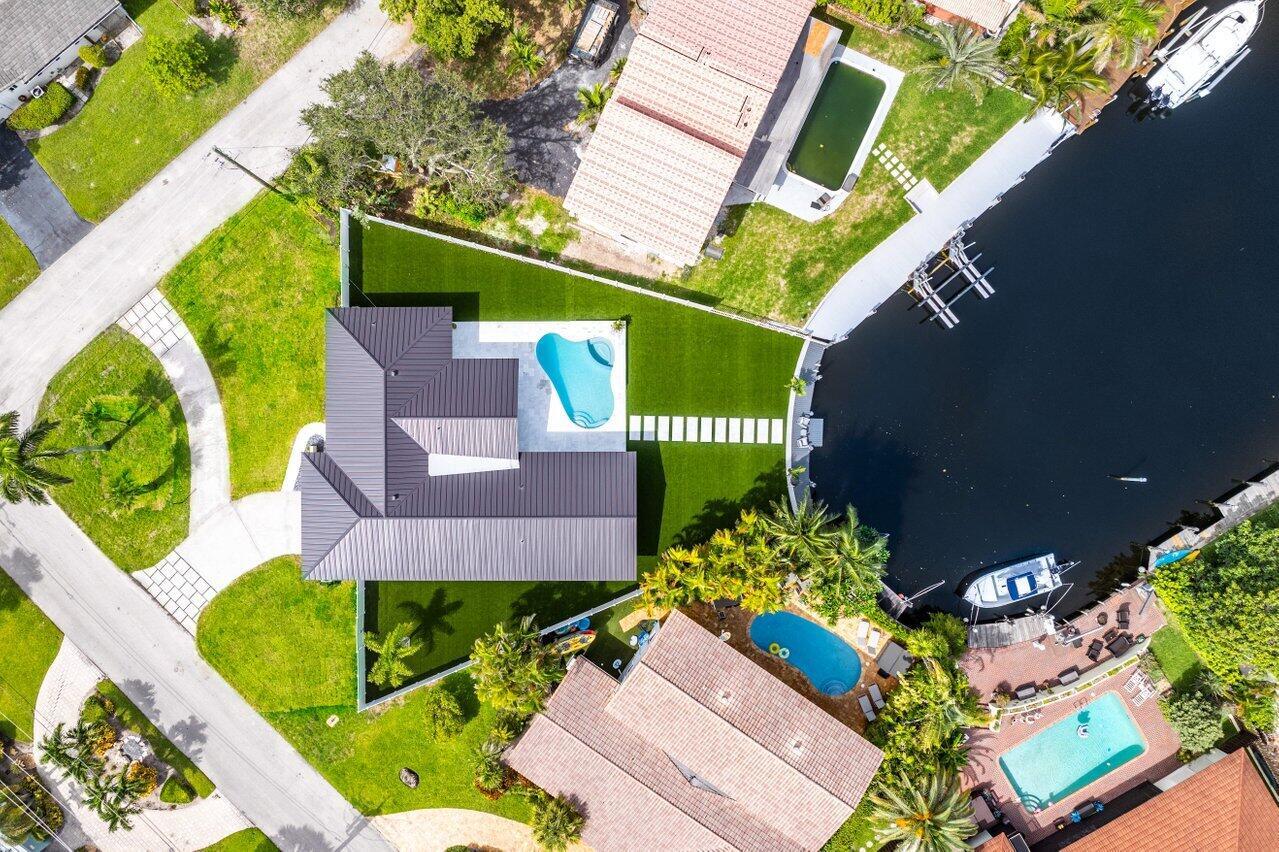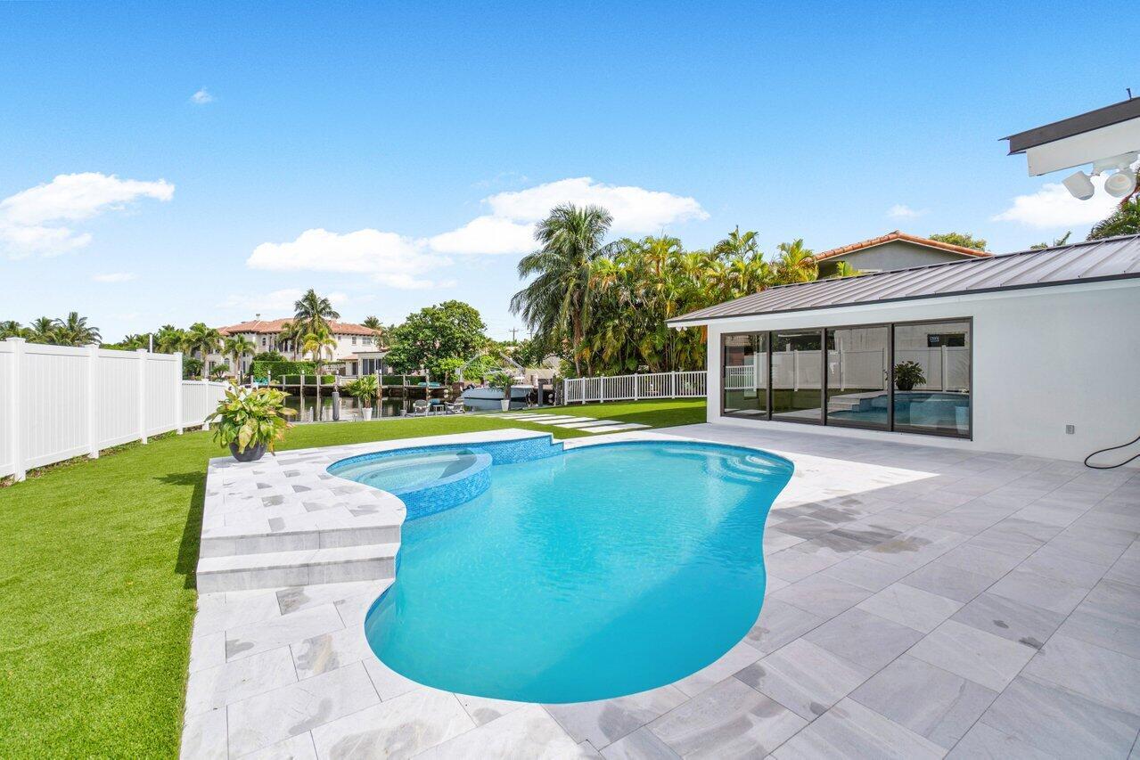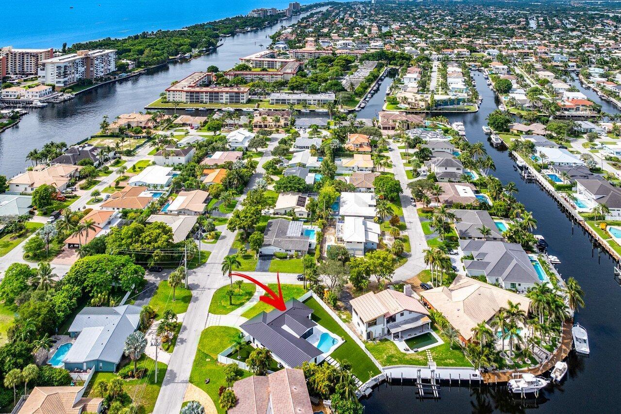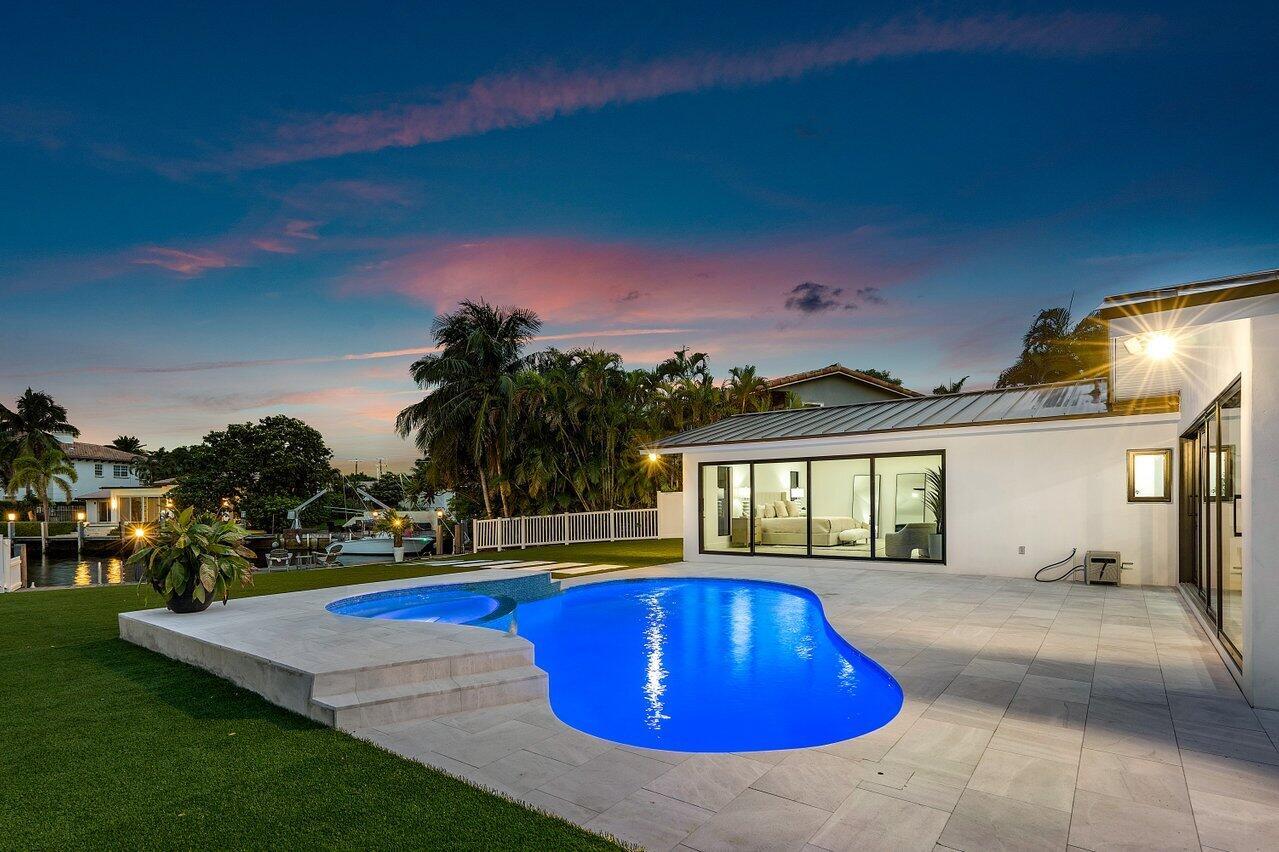ABSOLUTELY MINT and PRICED TO SELL! One-of-a-kind opportunity to own this Coastal-Inspired Deepwater Estate sited on 49′ +/- of waterfrontage on a 14,274 sq ft lot with no fixed bridges in Lighthouse Point. This 3 bedroom/3 bathroom single family home has been completely remodeled on one of the largest lots offered in the area. Split floor plan, Italian porcelain tile floors throughout. Bright, open kitchen with European flat cabinets quartz countertops, and brand new appliances. Oversized master suite with 2 walk-in closets, large freestanding tub, and curbless walk in shower. BRAND NEW METAL ROOF, NEW AC’s & brand new impact windows & doors with huge pocket sliders leading out to the resort style backyard that includes a fully remodeled heated pool/spa with sandblasted marble deck.