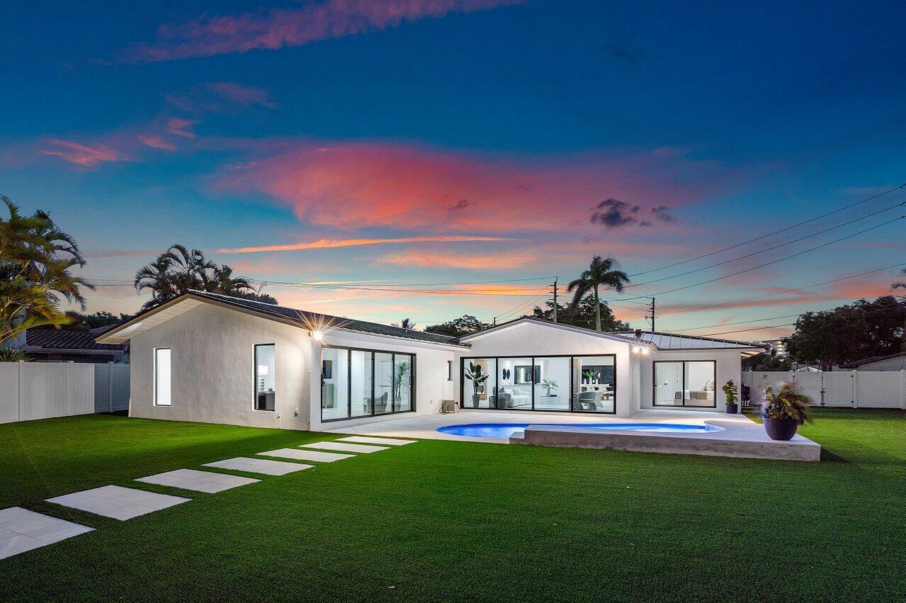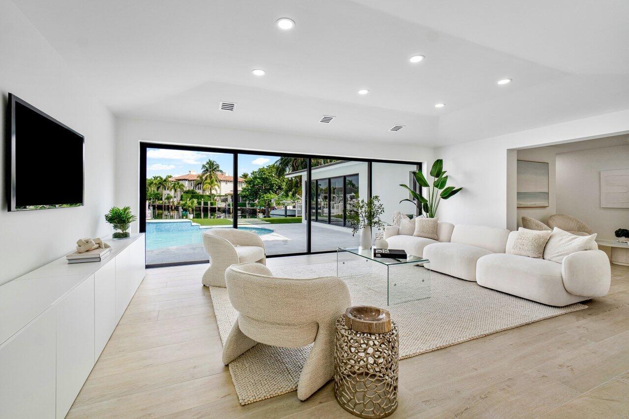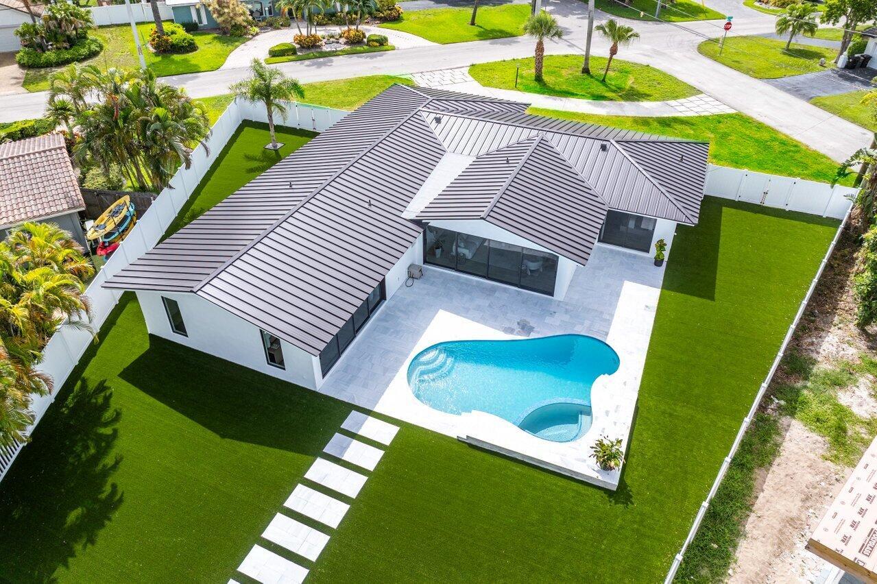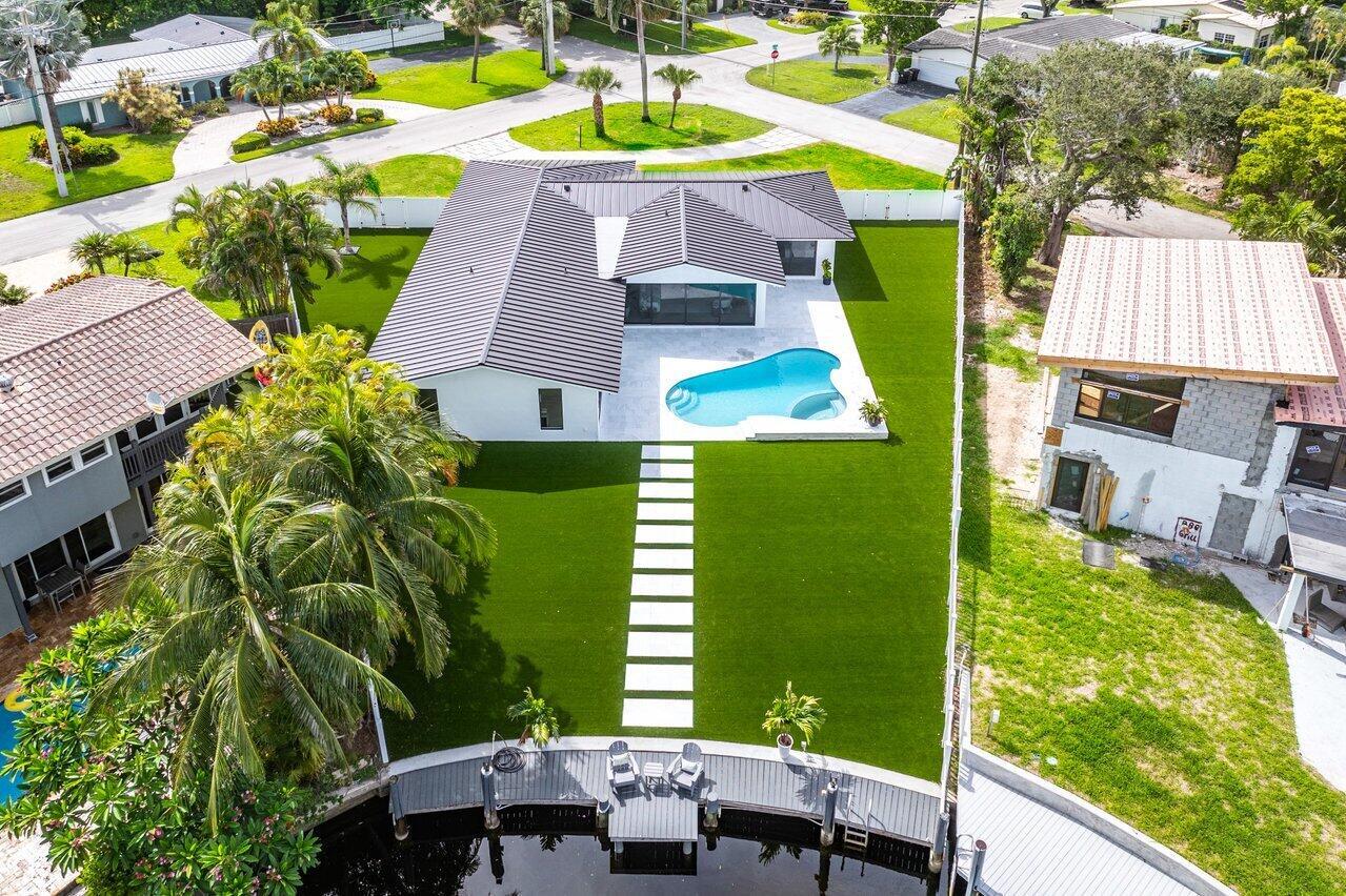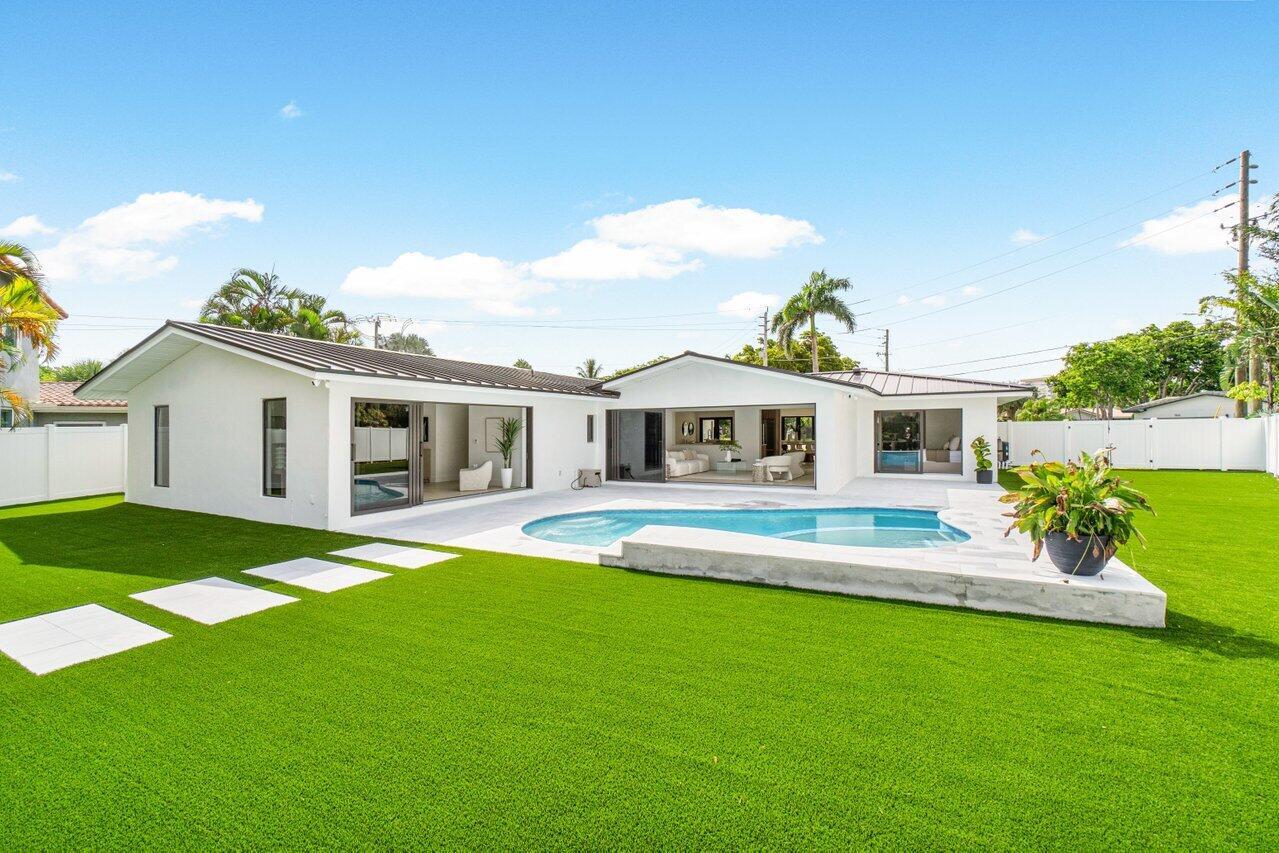 ABSOLUTELY MINT and PRICED TO SELL! One-of-a-kind opportunity to own this Coastal-Inspired Deepwater Estate sited on 49′ +/- of waterfrontage on a 14,274 sq ft lot with no fixed bridges in Lighthouse Point. This 3 bedroom/3 bathroom single family home has been completely remodeled on one of the largest lots offered in the area. Split floor plan, Italian porcelain tile floors throughout. Bright, open kitchen with European flat cabinets quartz countertops, and brand new appliances. Oversized master suite with 2 walk-in closets, large freestanding tub, and curbless walk in shower. BRAND NEW METAL ROOF, NEW AC’s & brand new impact windows & doors with huge pocket sliders leading out to the resort style backyard that includes a fully remodeled heated pool/spa with sandblasted marble deck.