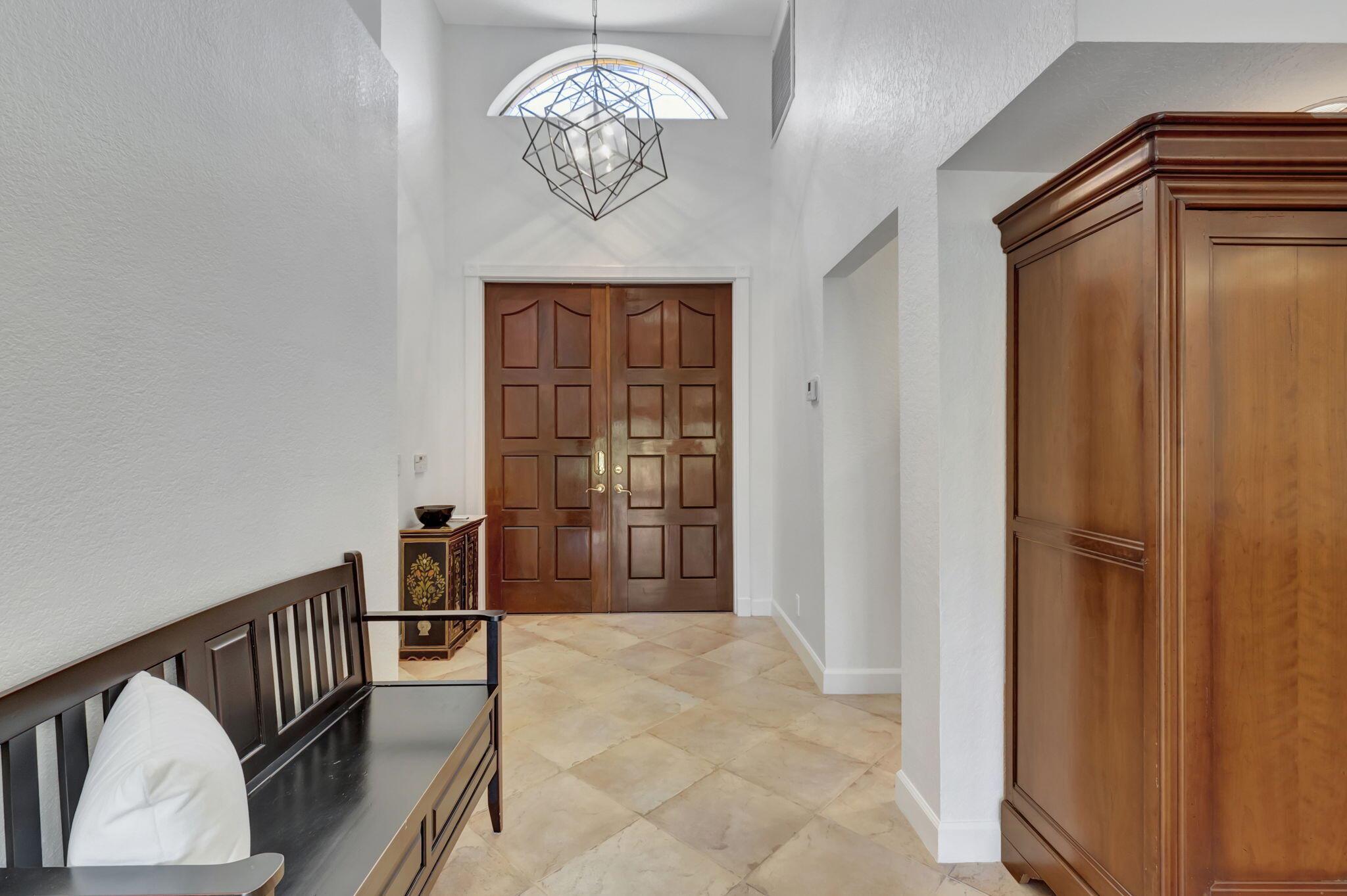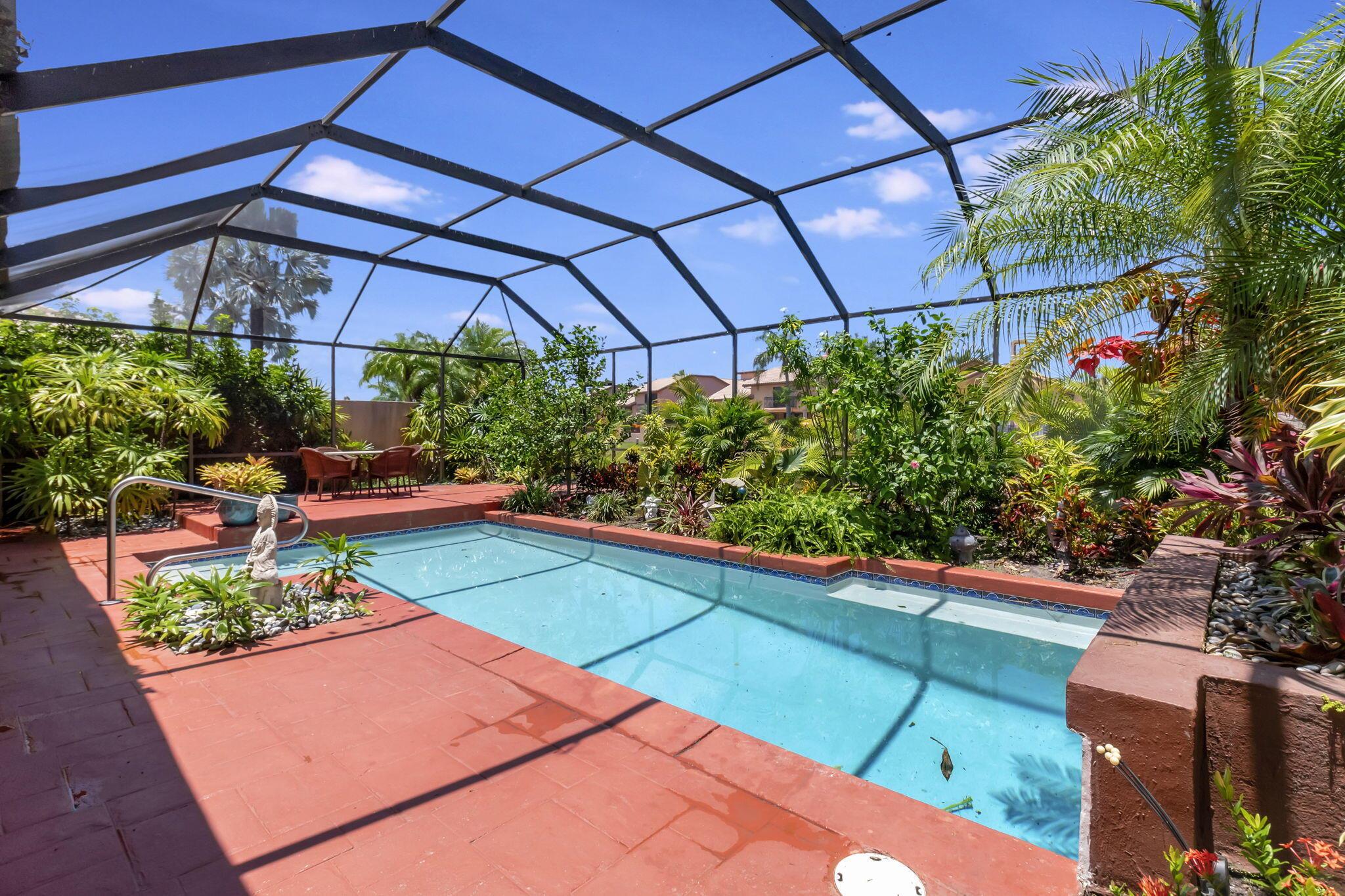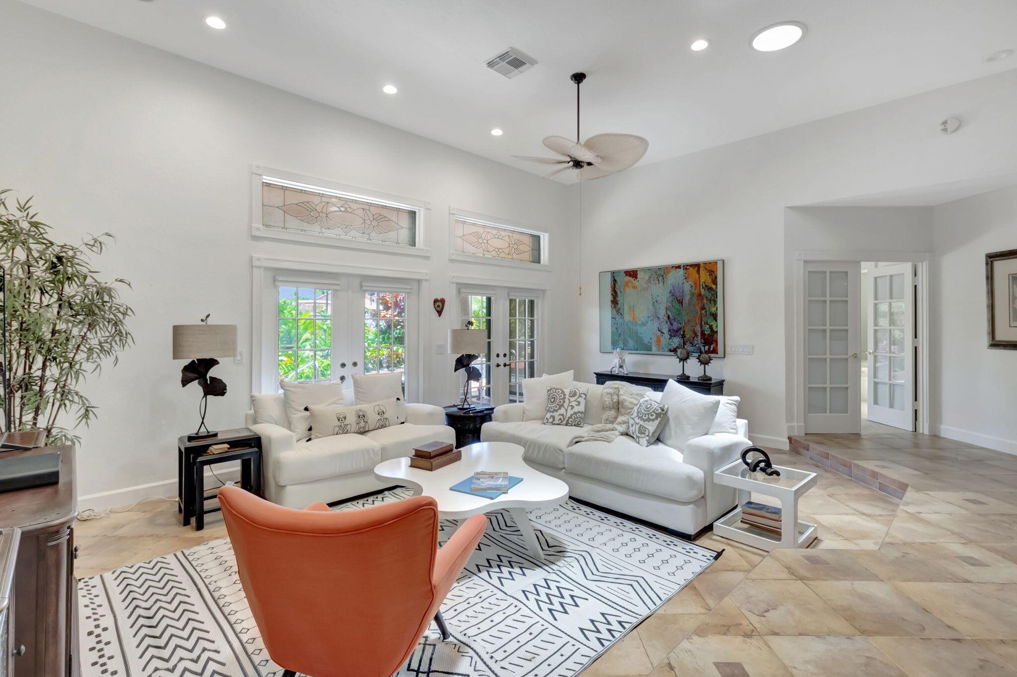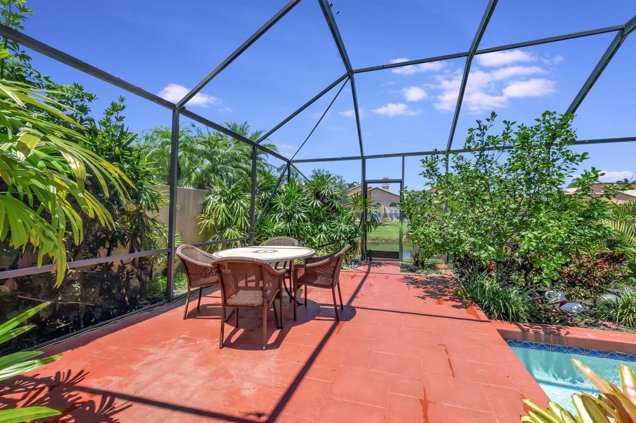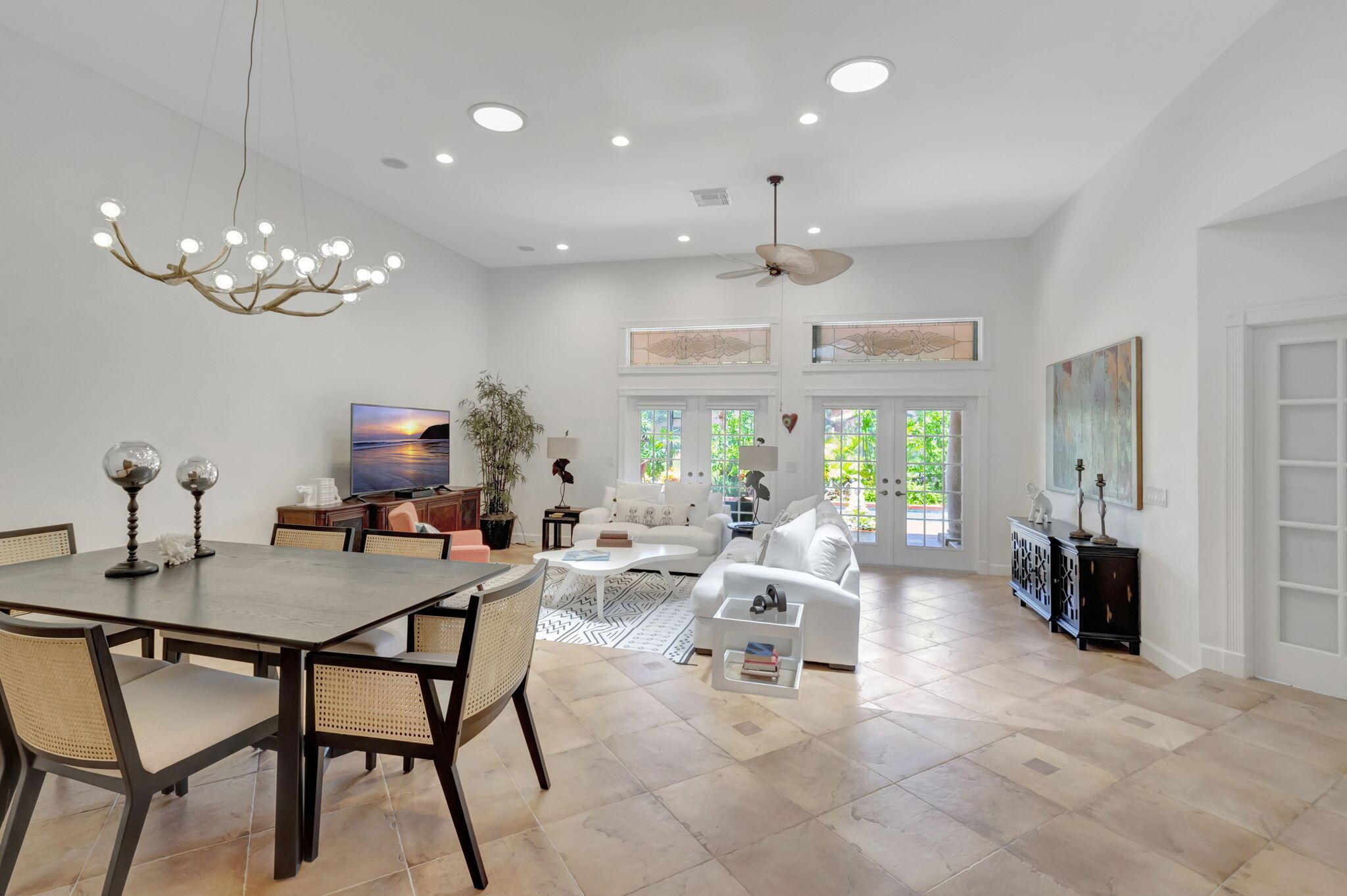 Rarely available, this stunning upgraded 2-bedroom, 2-bathroom single-family home (1 story) with a 2-car garage is located in the prestigious gated community of Boca Pointe Country Club. Boca Pointe CC is one of the only clubs in Boca Raton in which membership is optional! Move right in – This home is turn-key ready for you (all furnishings at the property are negotiable) This residence offers breathtaking views of the expansive community lake. This home was designed for effortless entertaining with an open floor plan featuring soaring volume ceilings that seamlessly connect the indoor and outdoor living spaces. Enjoy panoramic vistas of the new heated private pool and beautifully landscaped backyard, adorned with jasmine, hibiscus, and gardenias.