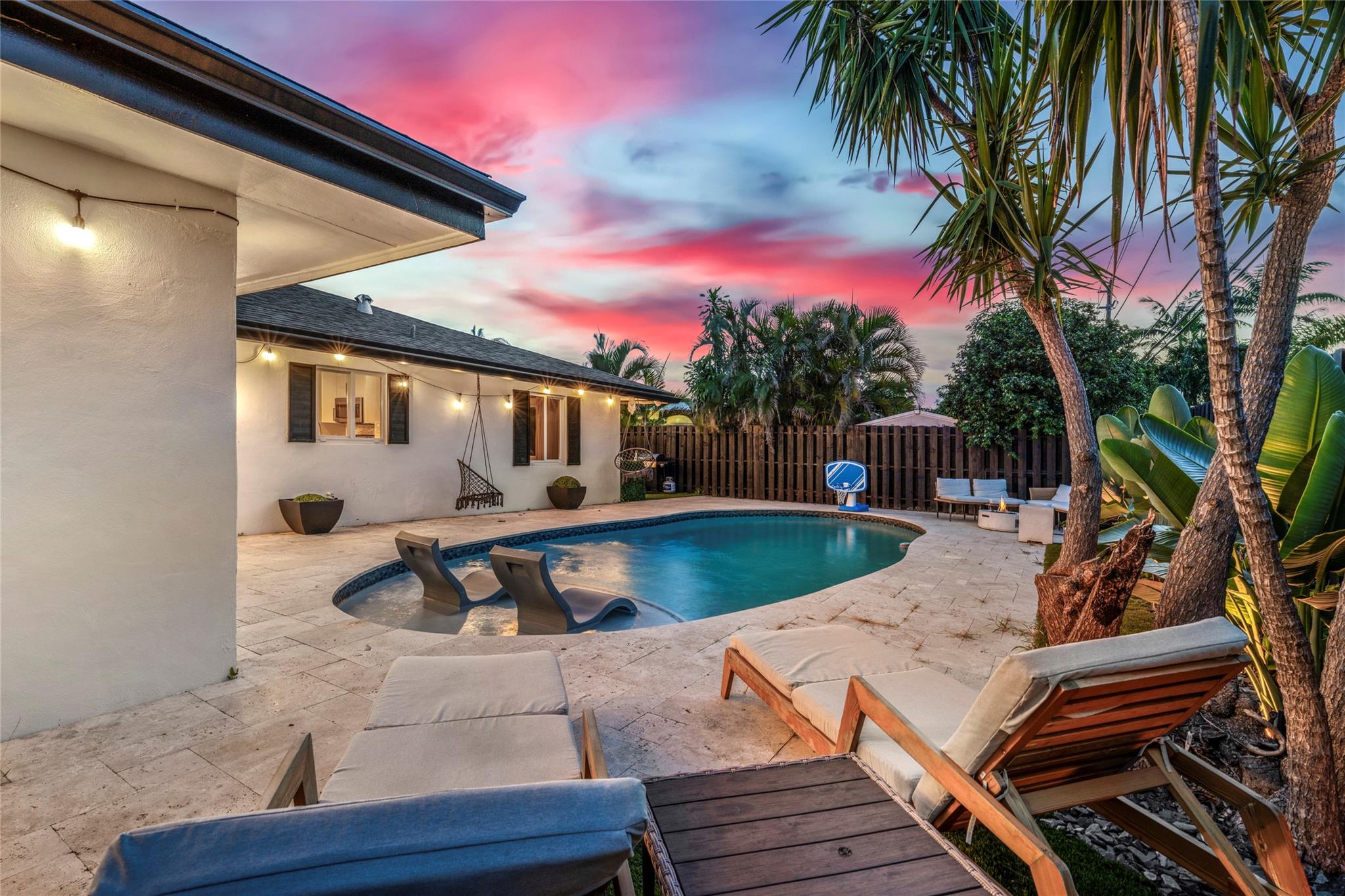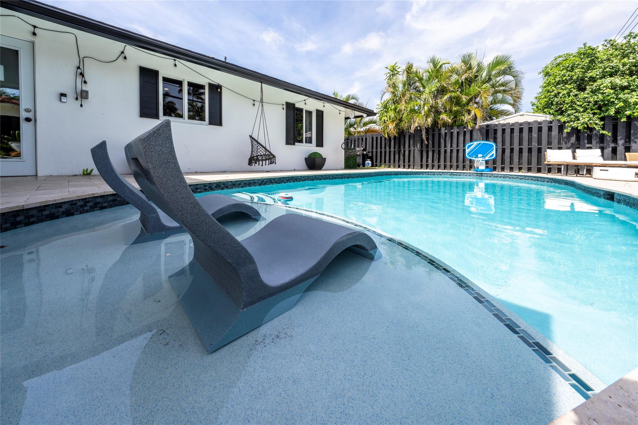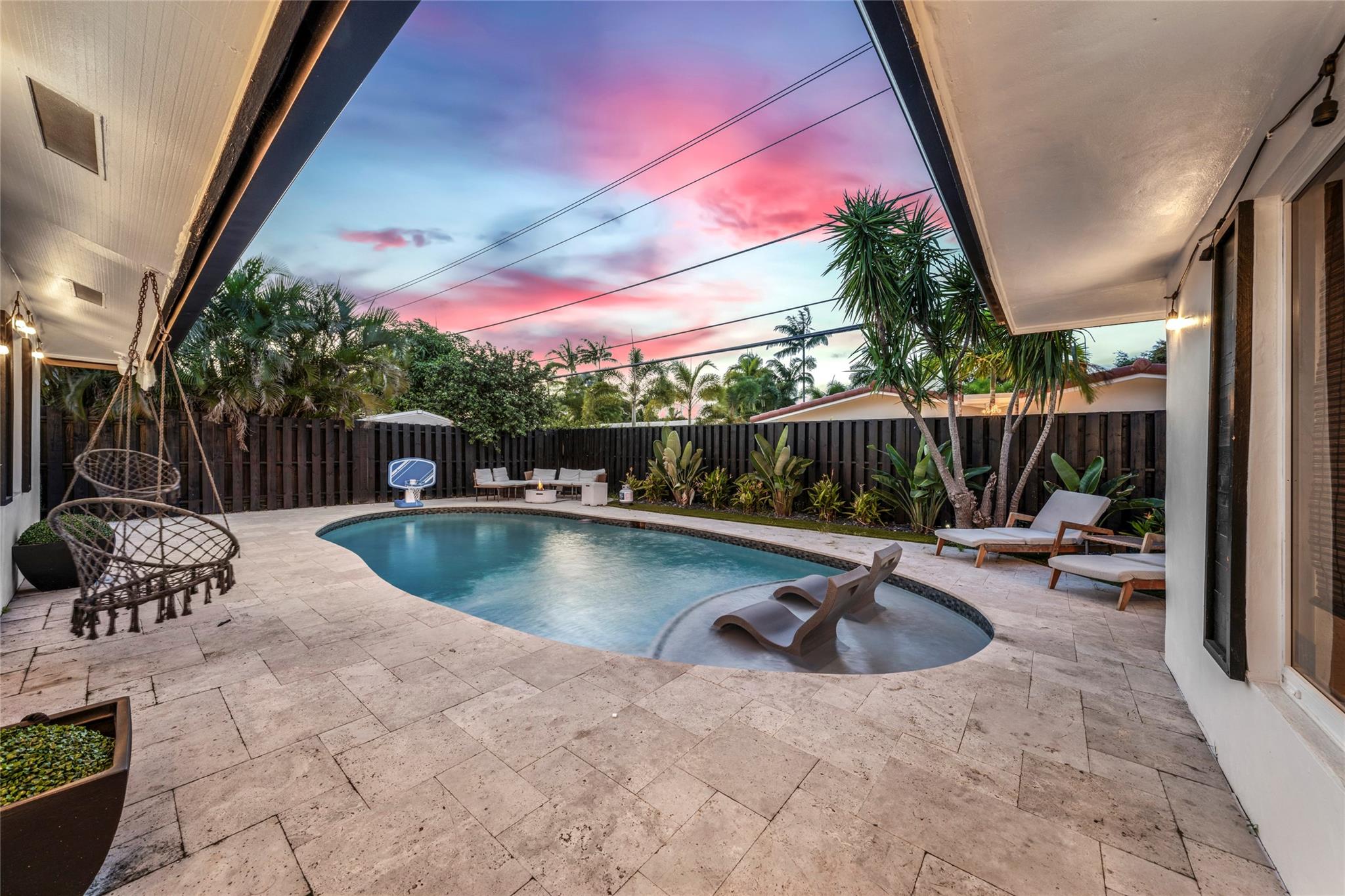 Experience luxury living in this gorgeous, fully furnished home with a pool in the desirable Imperial Point! This gem features 4 bedrooms, 2 bathrooms and an office in addition to modern finishes, tile floors, sleek stainless steel appliances, a stunning kitchen island with a quartz waterfall. The 2020 roof, impact windows throughout, and updated PVC plumbing provide peace of mind. The backyard is a professionally landscaped entertainer’s dream! Offering relaxation in the pool’s tanning ledge, or mingling by the grilling area and putting green. Just 10 minutes from the beach, this move-in ready home is perfect as a primary residence or a short-term rental. Currently an operational Airbnb, don’t miss this opportunity!