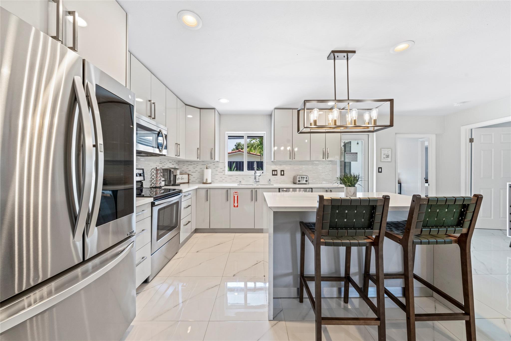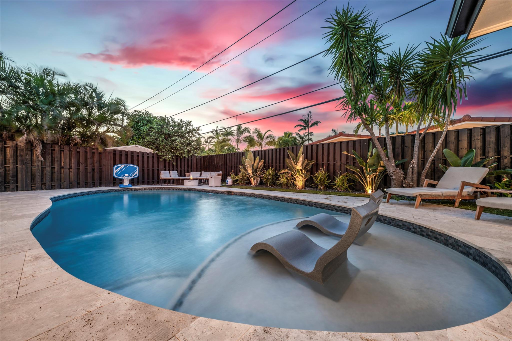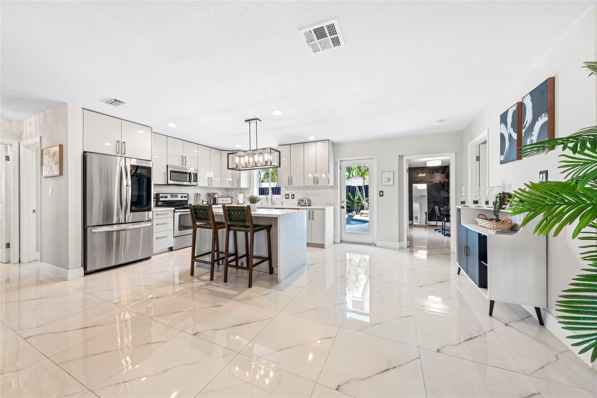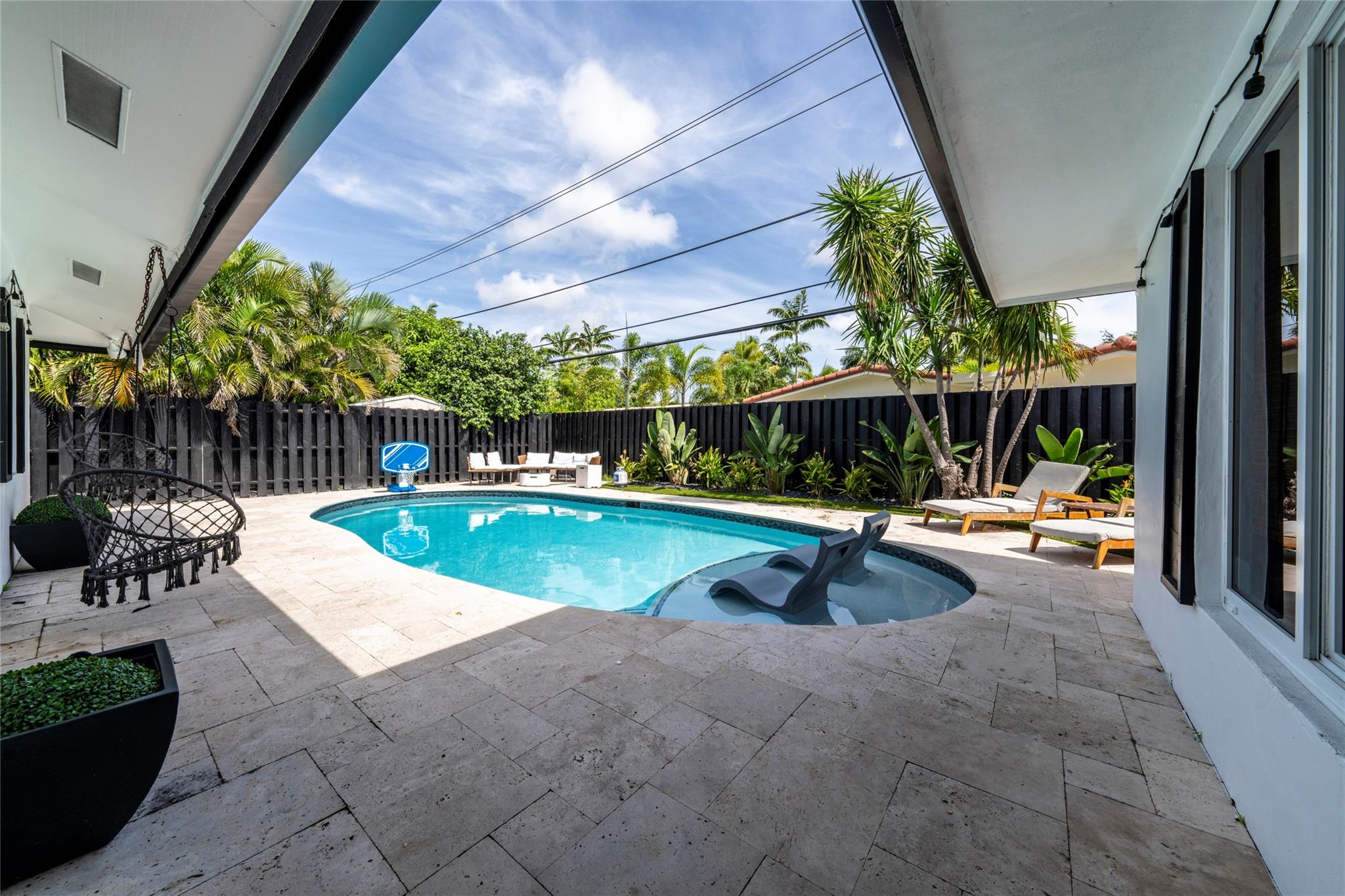 Experience luxury living in this gorgeous, fully furnished home with a pool in the desirable Imperial Point! This gem features 4 bedrooms, 2 bathrooms and an office in addition to modern finishes, tile floors, sleek stainless steel appliances, a stunning kitchen island with a quartz waterfall. The 2020 roof, impact windows throughout, and updated PVC plumbing provide peace of mind. The backyard is a professionally landscaped entertainer’s dream! Offering relaxation in the pool’s tanning ledge, or mingling by the grilling area and putting green. Just 10 minutes from the beach, this move-in ready home is perfect as a primary residence or a short-term rental. Currently an operational Airbnb, don’t miss this opportunity!