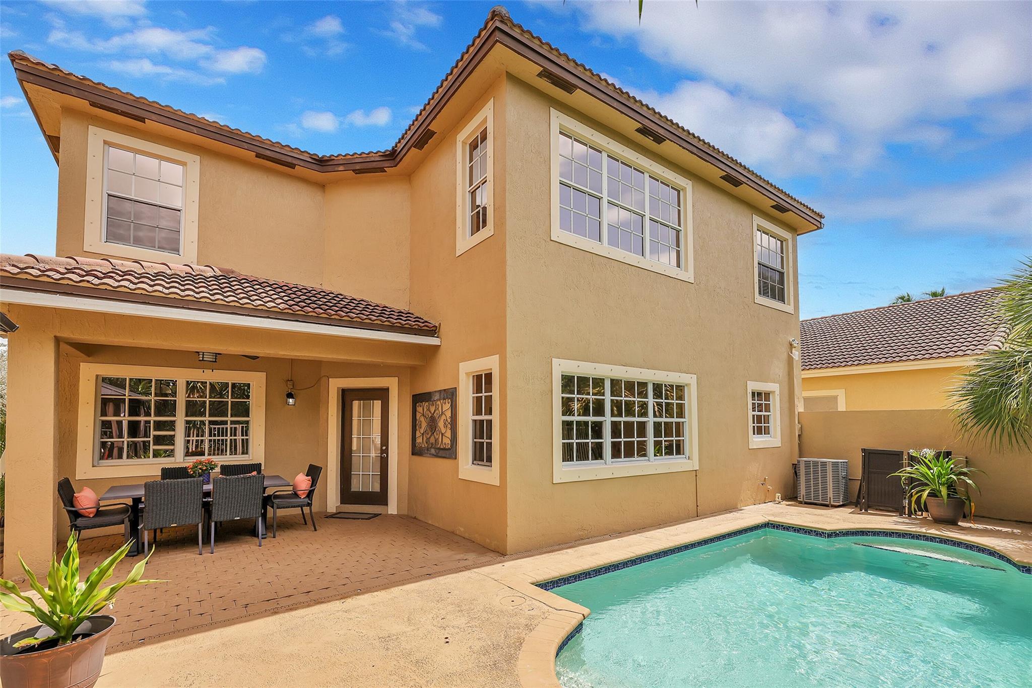 Enjoy entertaining pool-side in your private back yard. Outdoor furniture, gazebo, grill, hurricane panel shutters, are included with the sale.