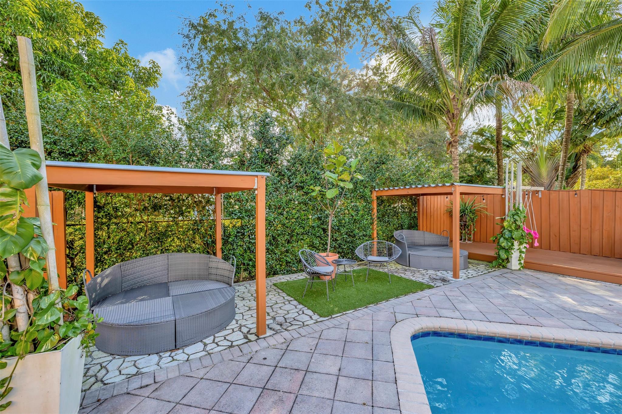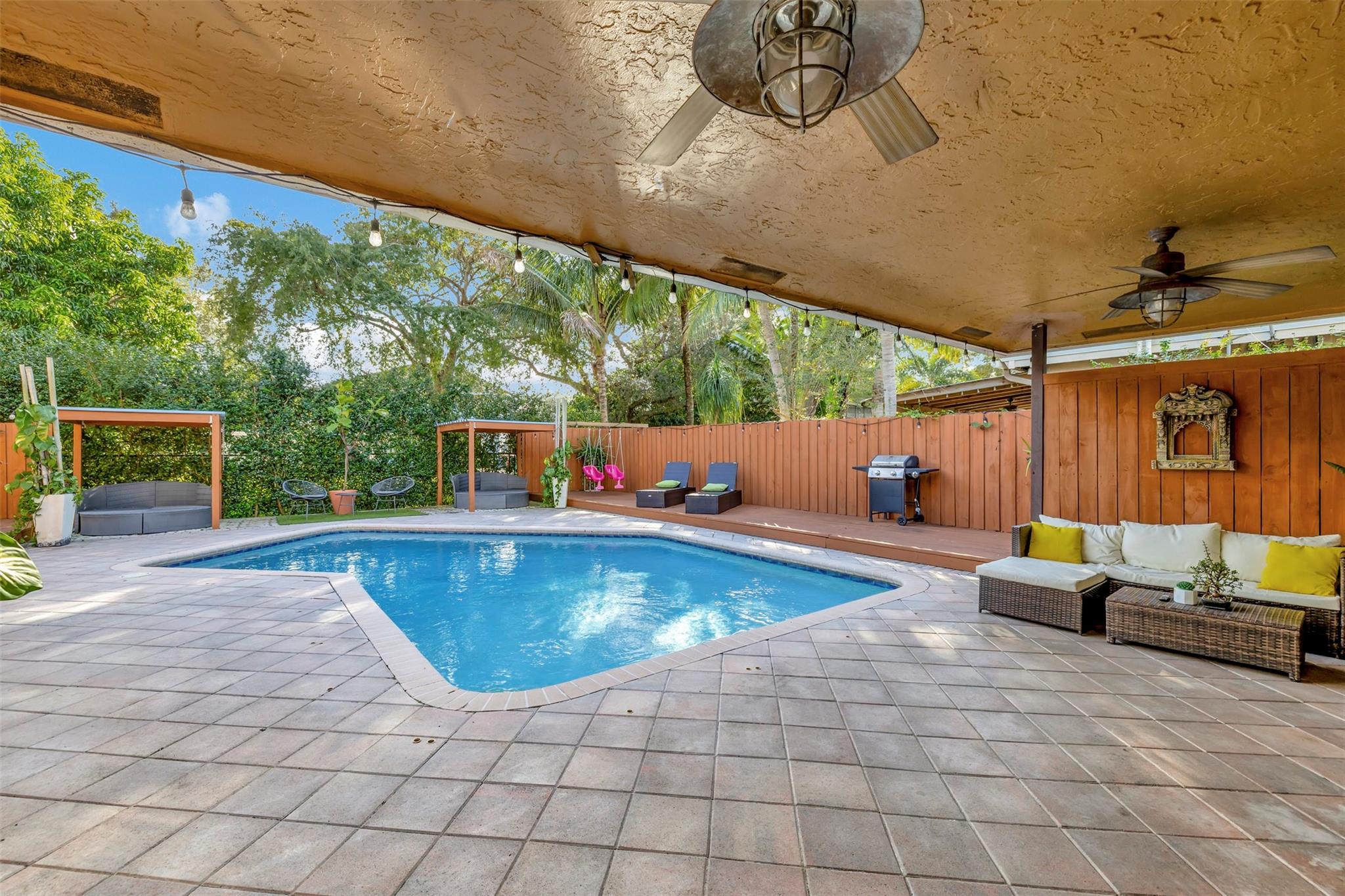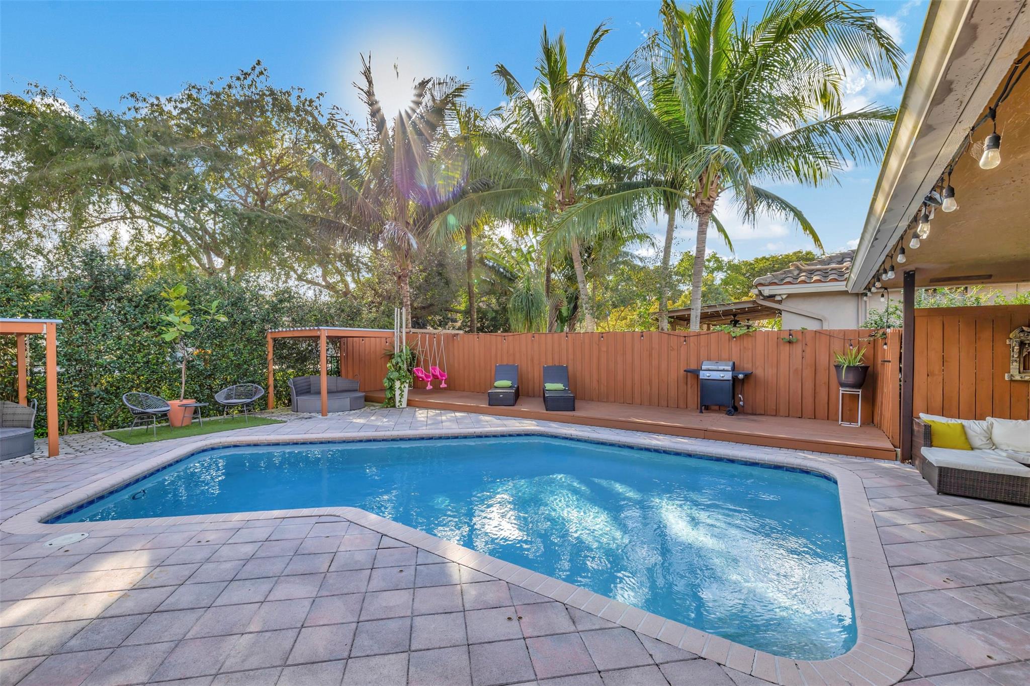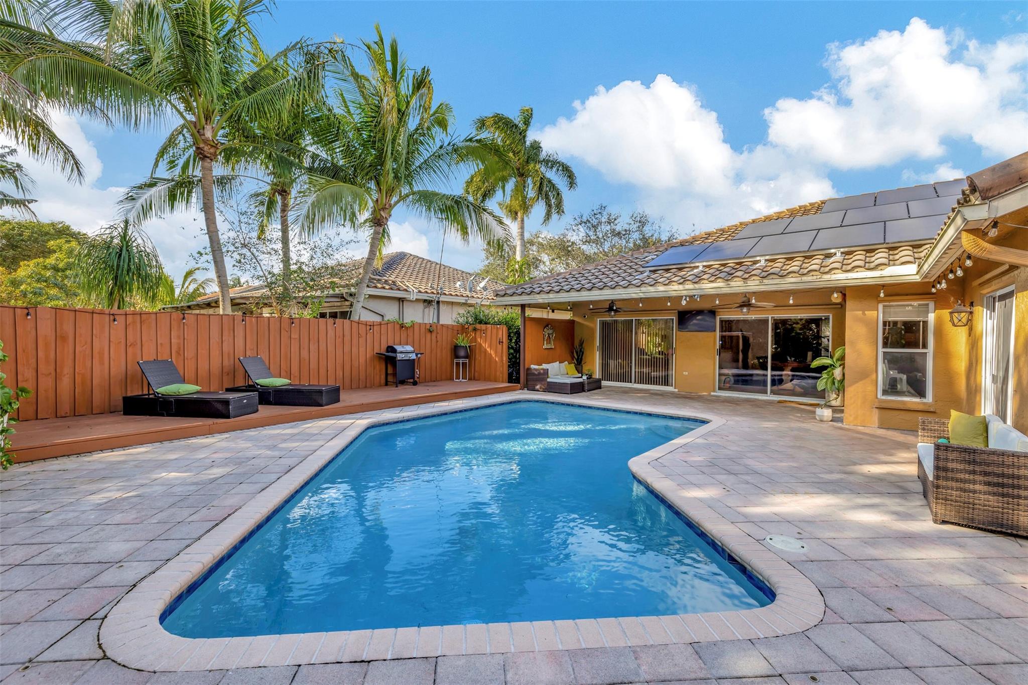 Welcome to your new 4 bedroom 2 bathroom home in Winston Park. From the circular pavered driveway and spanish tile roof with solar panels, the curb appeal sets the tone of what lies beyond the front door. Stepping inside, this open floorplan is ideal for even the most discerning of buyers. A beautiful kitchen comes complete with stainless steel appliances and granite countertops. The fenced-in backyard is a tropical retreat with a pool, two gazebos and a garden filled with fruit trees. North Coconut Creek offers its residents low HOA fees, great school districts and established neighborhoods with oak trees lining the streets. Sabal Pines park is nearby, perfect for kids or hop on the Sawgrass Expressway for an easy commute. Schedule your showing today!