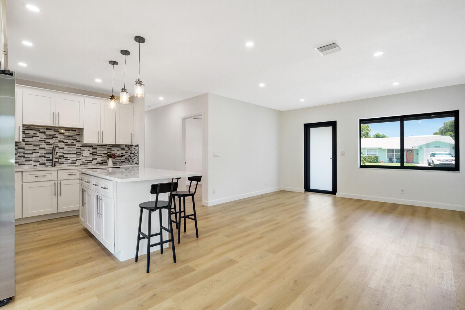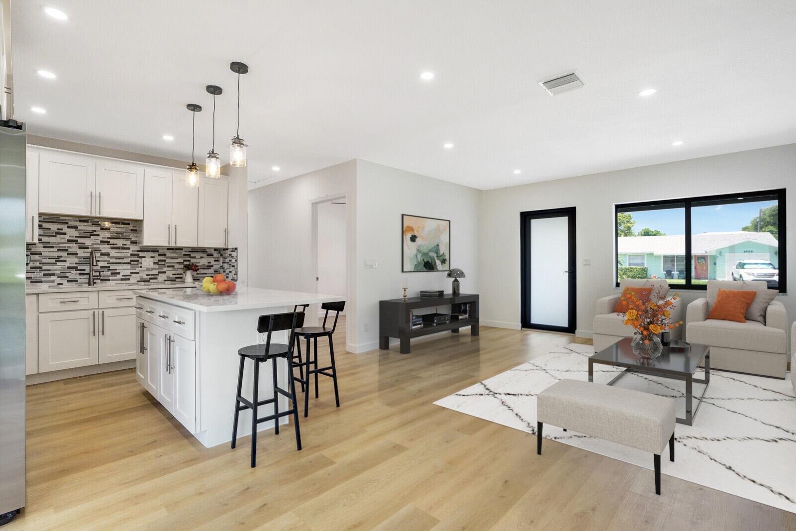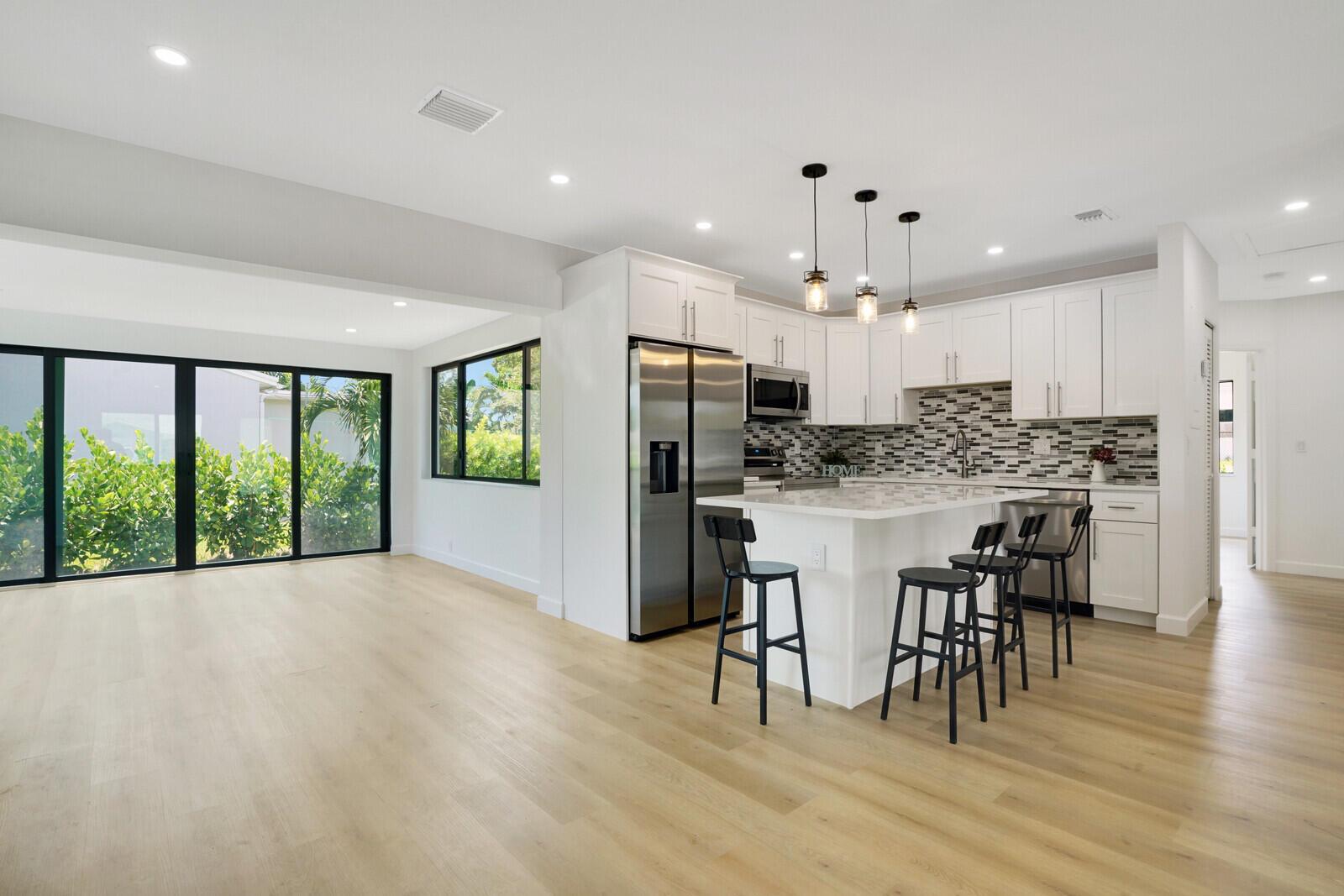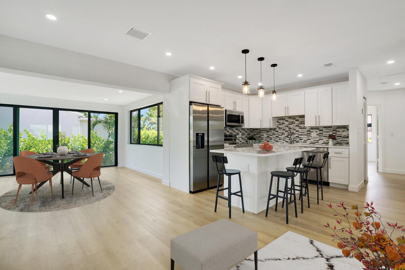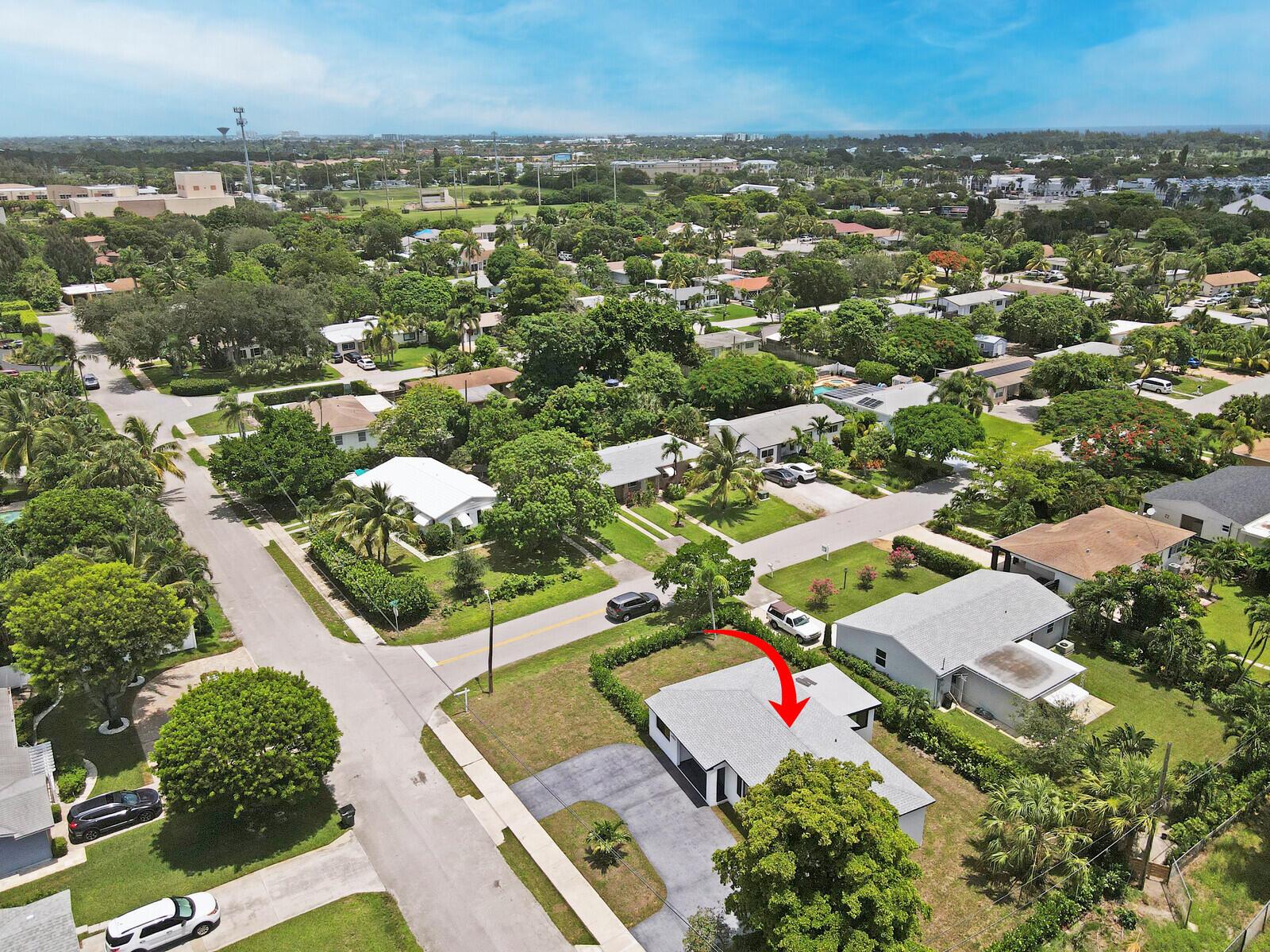 Welcome to this beautifully remodeled 4-bedroom, 2-bathroom home on a desirable corner lot at the end of a quiet street with NO HOA. This property is situated just minutes away from the beach, Pineapple Grove & the heart of Downtown Delray Beach. Enjoy peace of mind with a new roof (2022) & hurricane impact windows & doors. The open concept layout showcases a newly remodeled kitchen with Samsung appliances (2024), new electrical, plumbing, & luxury vinyl flooring throughout. Additional features include a tankless water heater, Avanti washer & dryer (2024), stamped concrete circular driveway, well water lawn sprinkler (save money on your water bill), & new privacy shrubbery. Room for a pool &outdoor kitchen. Would be an excellent Air BnB rental. See Rental Analysis under documents.