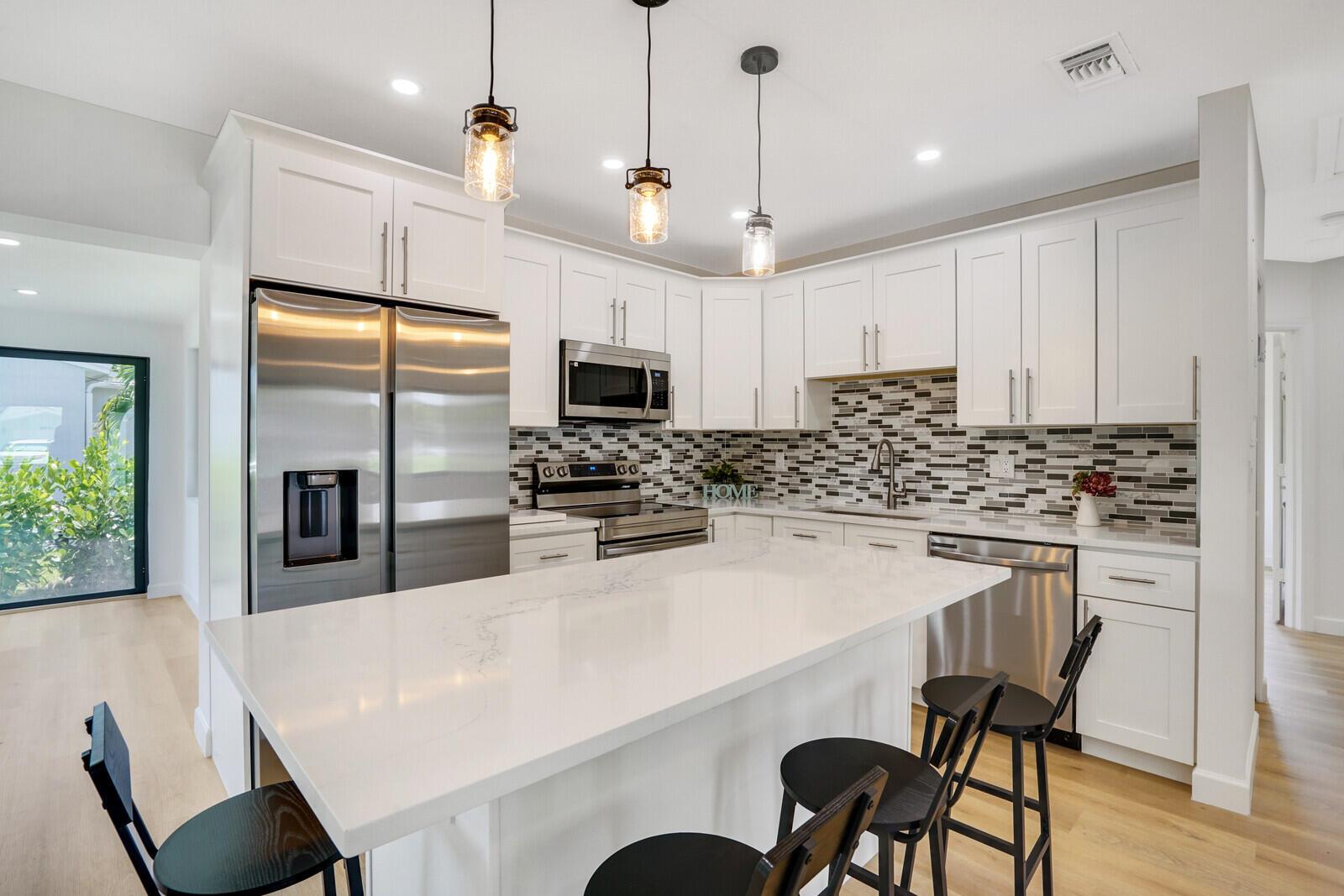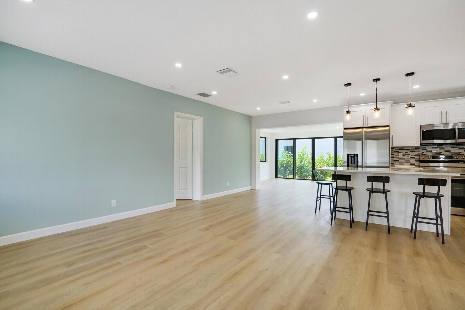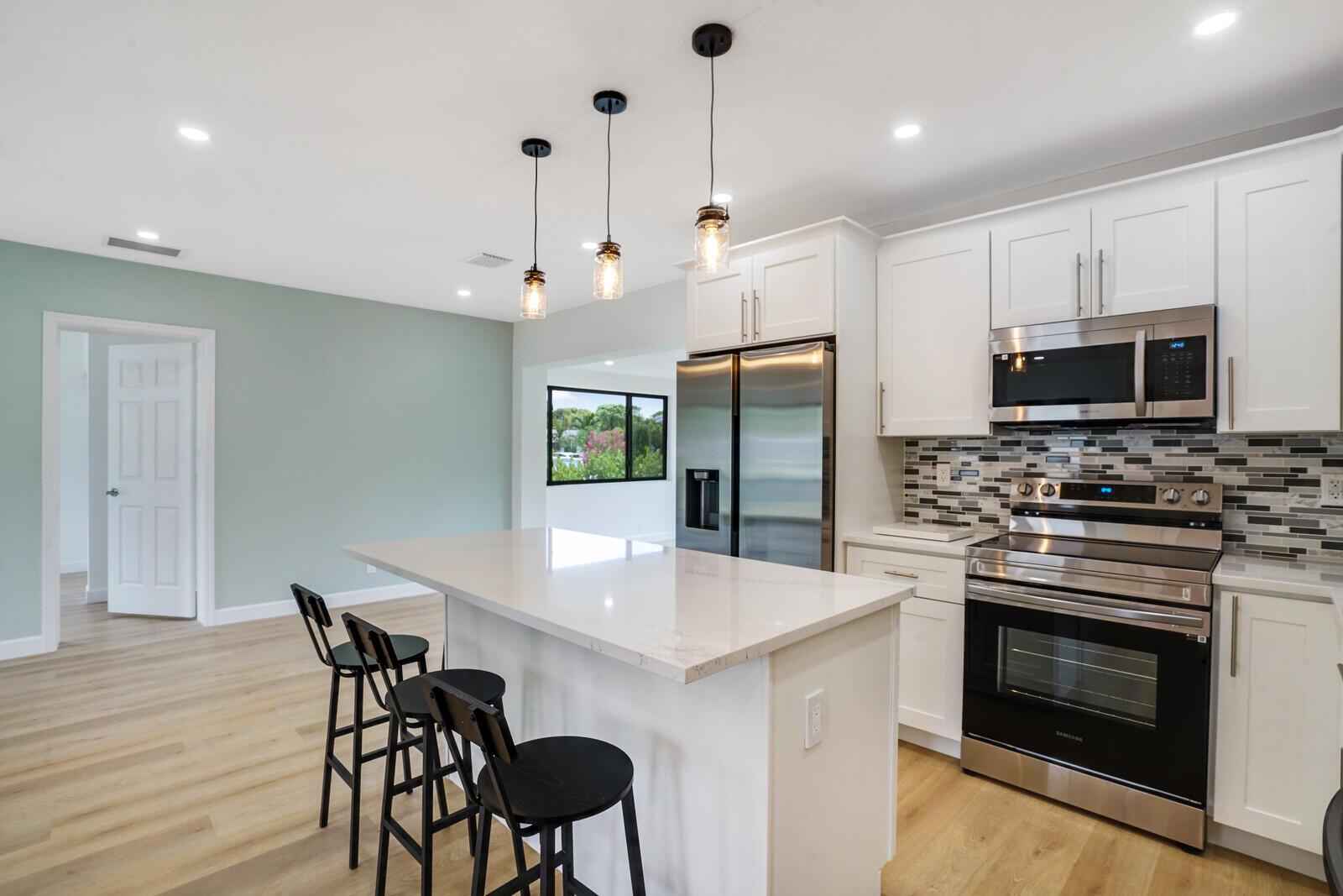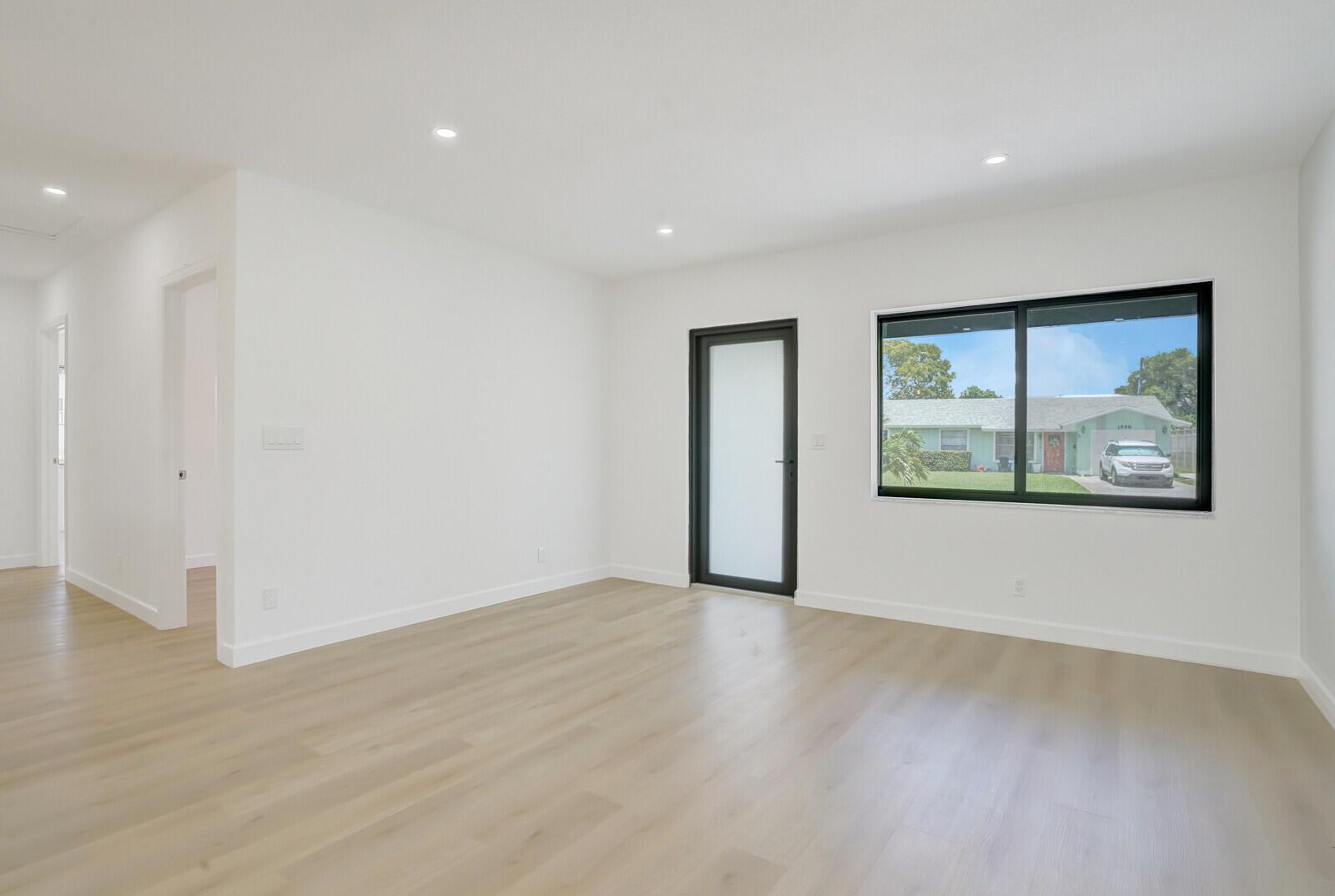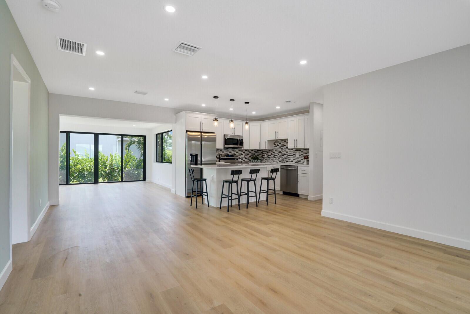 Welcome to this beautifully remodeled 4-bedroom, 2-bathroom home on a desirable corner lot at the end of a quiet street with NO HOA. This property is situated just minutes away from the beach, Pineapple Grove & the heart of Downtown Delray Beach. Enjoy peace of mind with a new roof (2022) & hurricane impact windows & doors. The open concept layout showcases a newly remodeled kitchen with Samsung appliances (2024), new electrical, plumbing, & luxury vinyl flooring throughout. Additional features include a tankless water heater, Avanti washer & dryer (2024), stamped concrete circular driveway, well water lawn sprinkler (save money on your water bill), & new privacy shrubbery. Room for a pool &outdoor kitchen. Would be an excellent Air BnB rental. See Rental Analysis under documents.