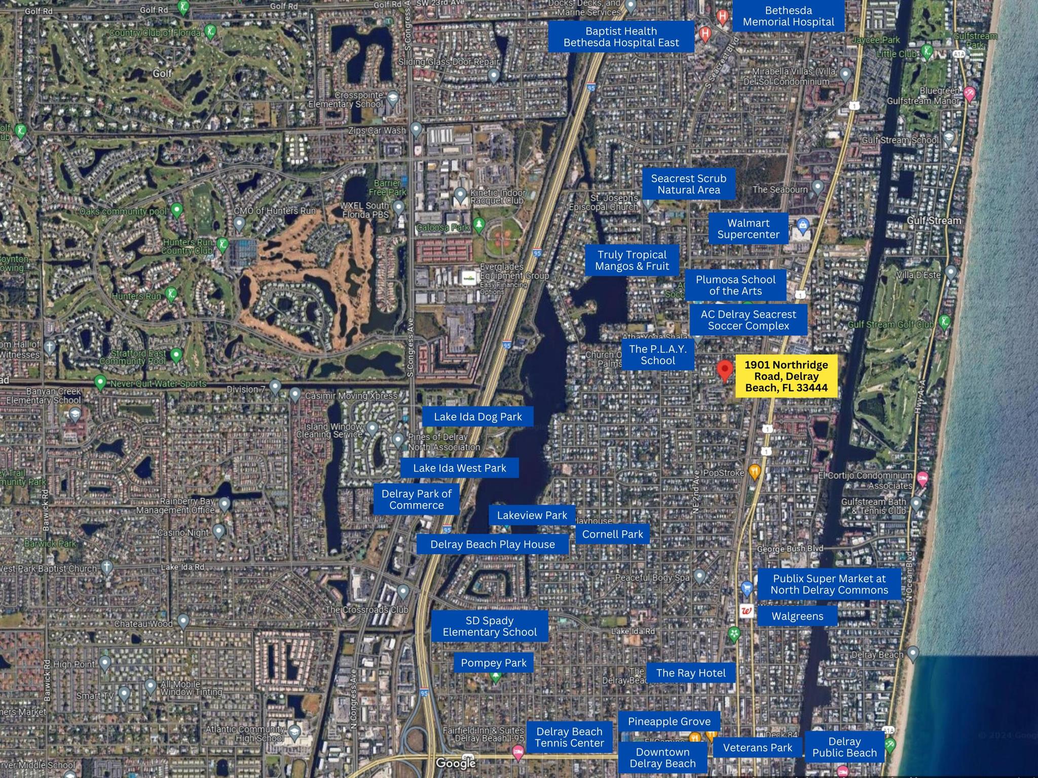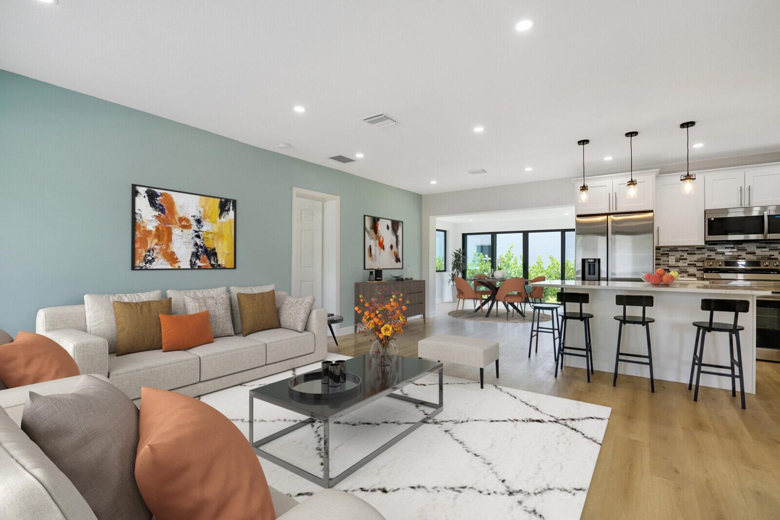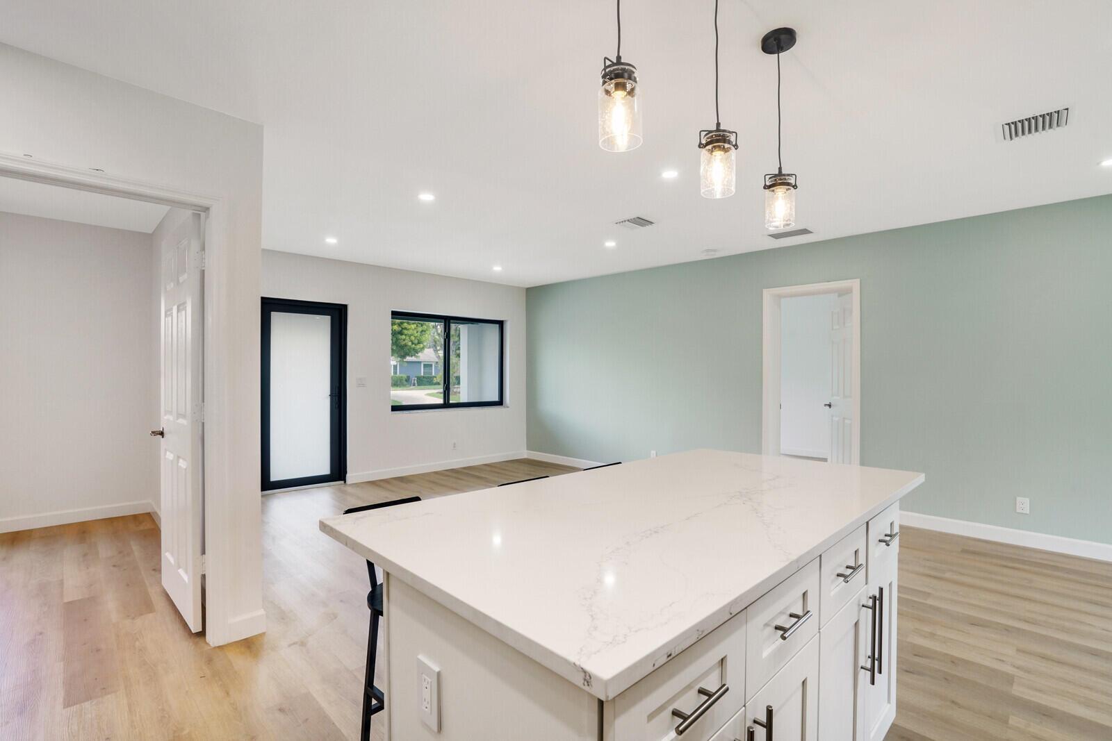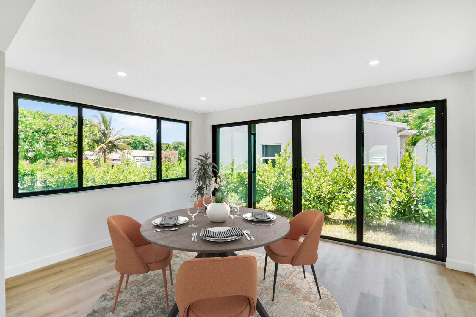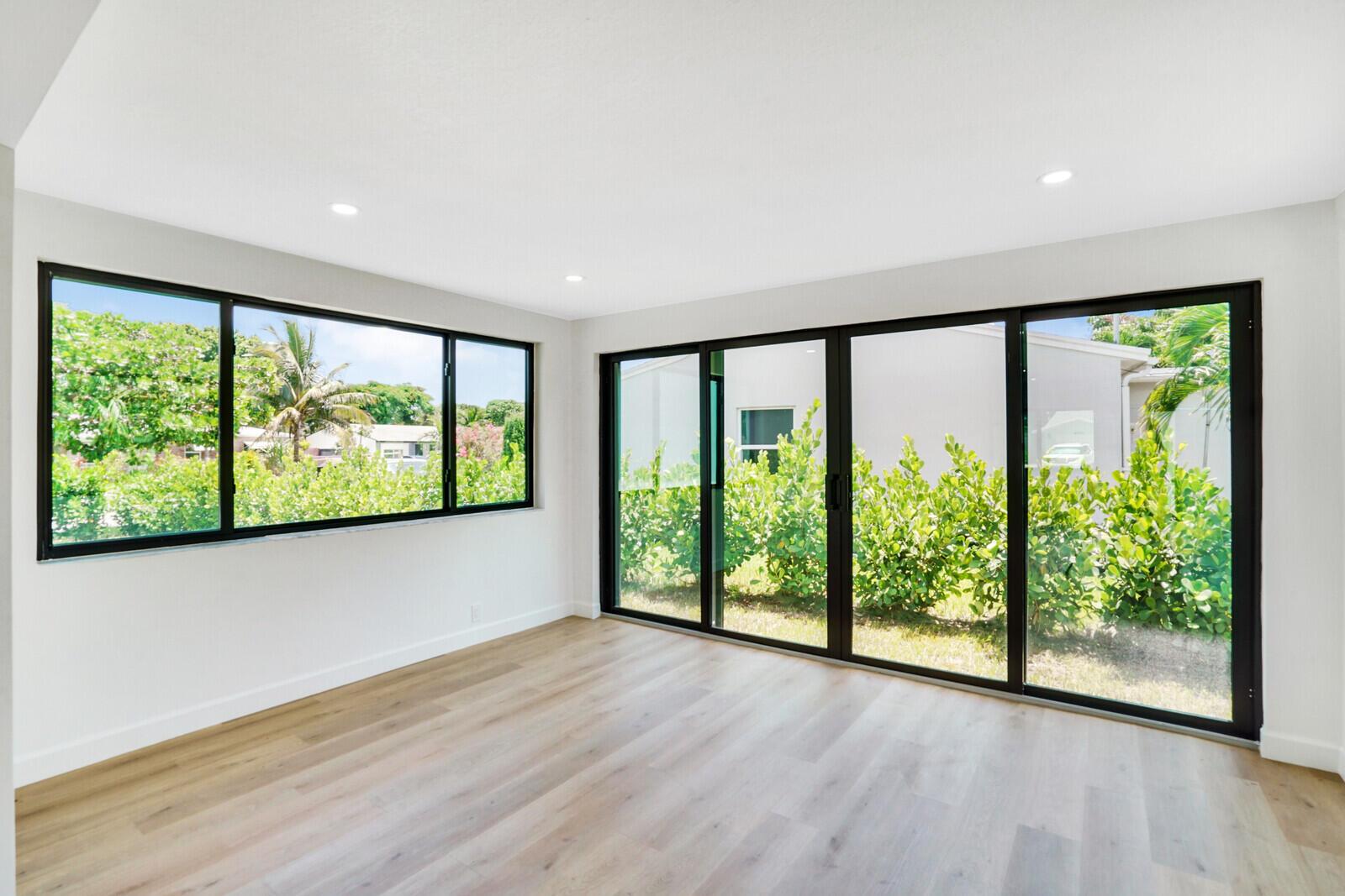 Welcome to this beautifully remodeled 4-bedroom, 2-bathroom home on a desirable corner lot at the end of a quiet street with NO HOA. This property is situated just minutes away from the beach, Pineapple Grove & the heart of Downtown Delray Beach. Enjoy peace of mind with a new roof (2022) & hurricane impact windows & doors. The open concept layout showcases a newly remodeled kitchen with Samsung appliances (2024), new electrical, plumbing, & luxury vinyl flooring throughout. Additional features include a tankless water heater, Avanti washer & dryer (2024), stamped concrete circular driveway, well water lawn sprinkler (save money on your water bill), & new privacy shrubbery. Room for a pool &outdoor kitchen. Would be an excellent Air BnB rental. See Rental Analysis under documents.