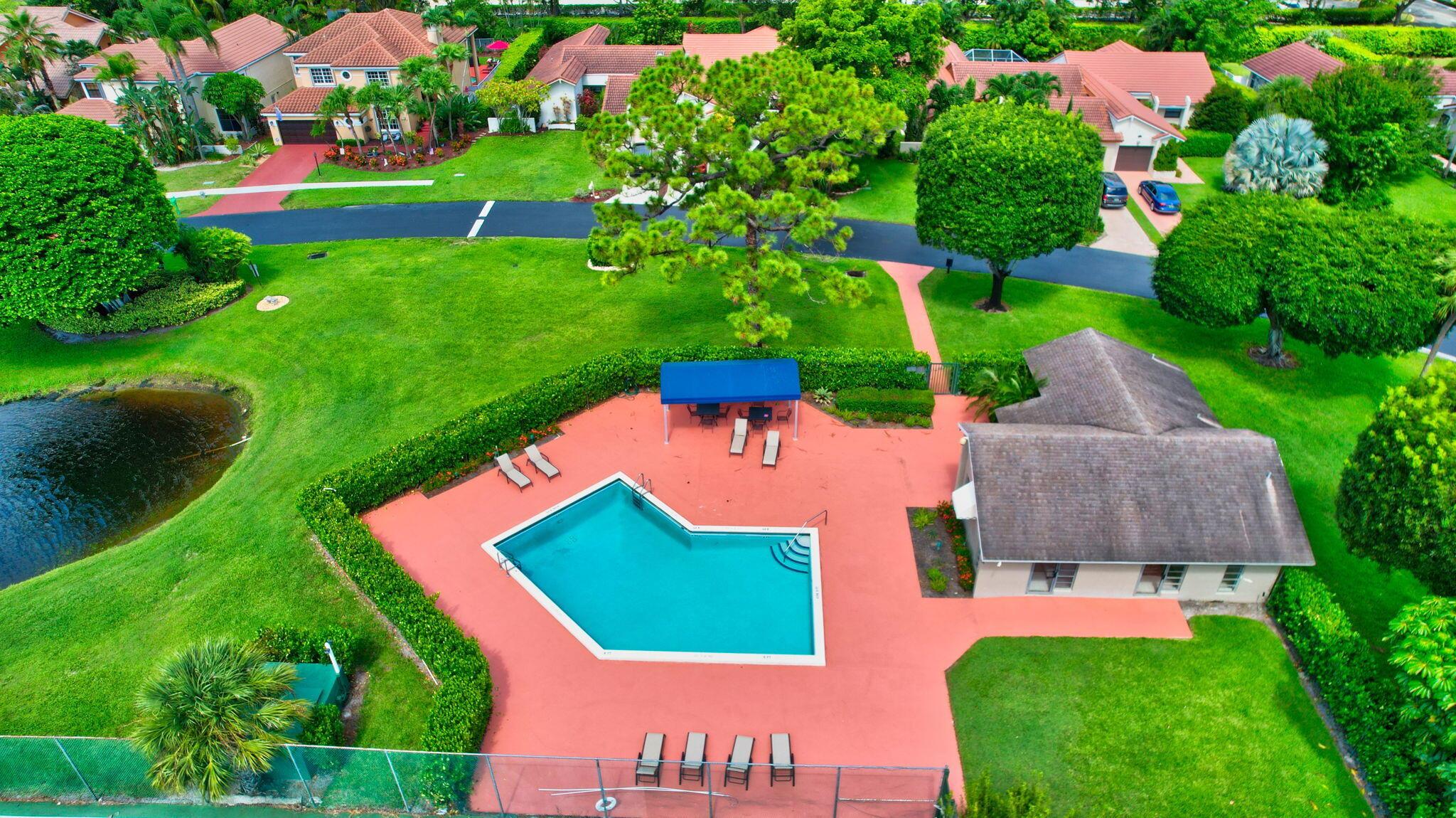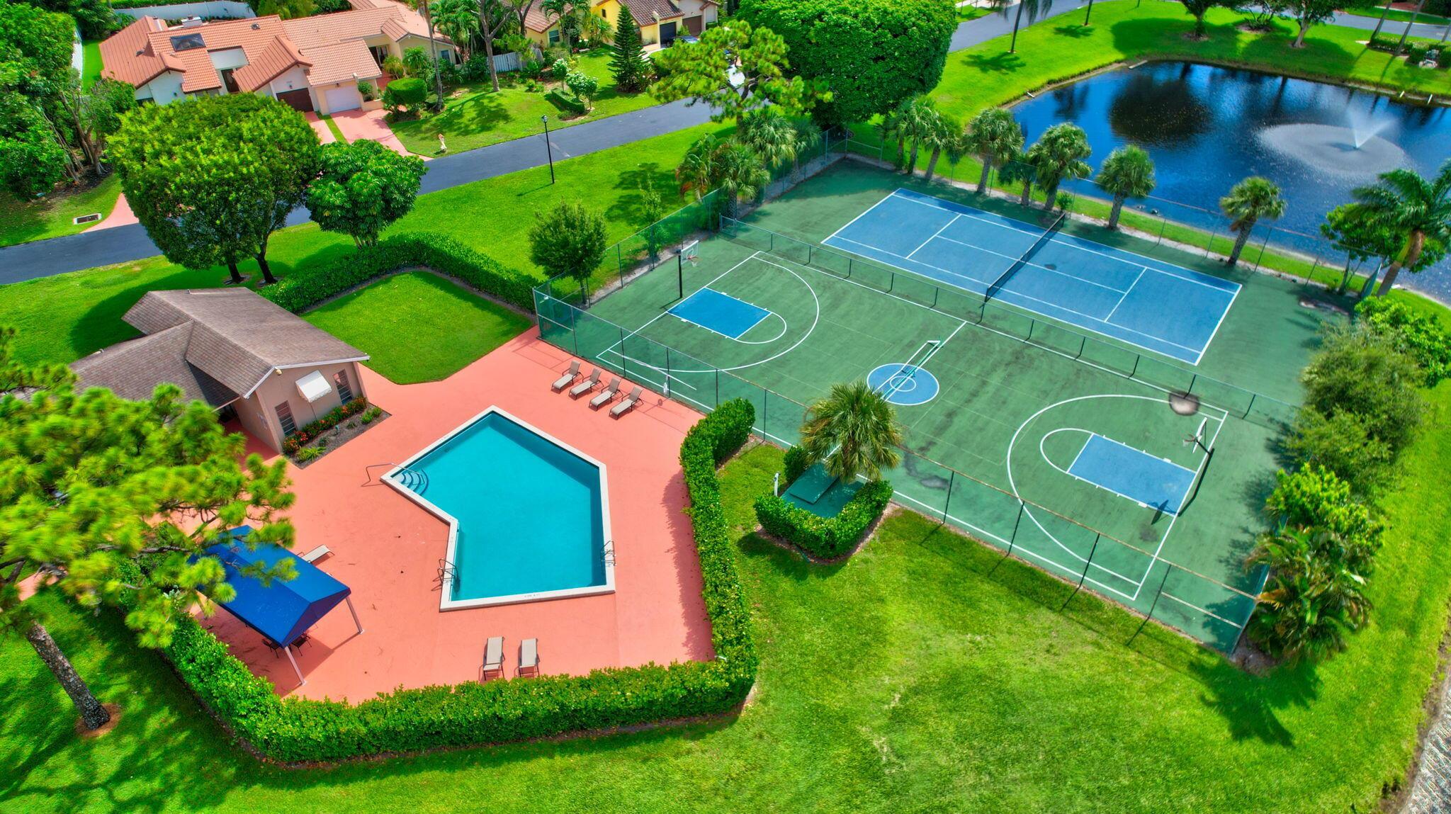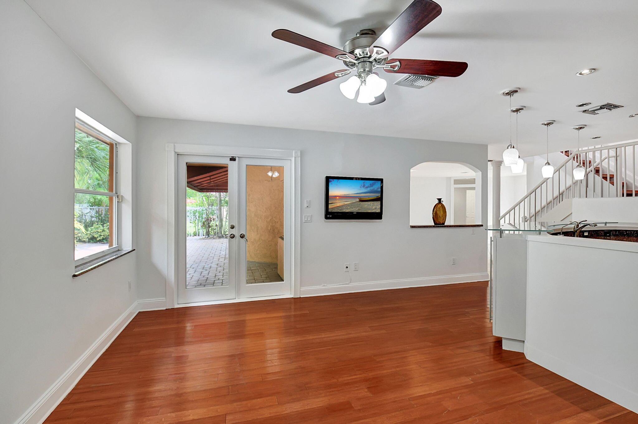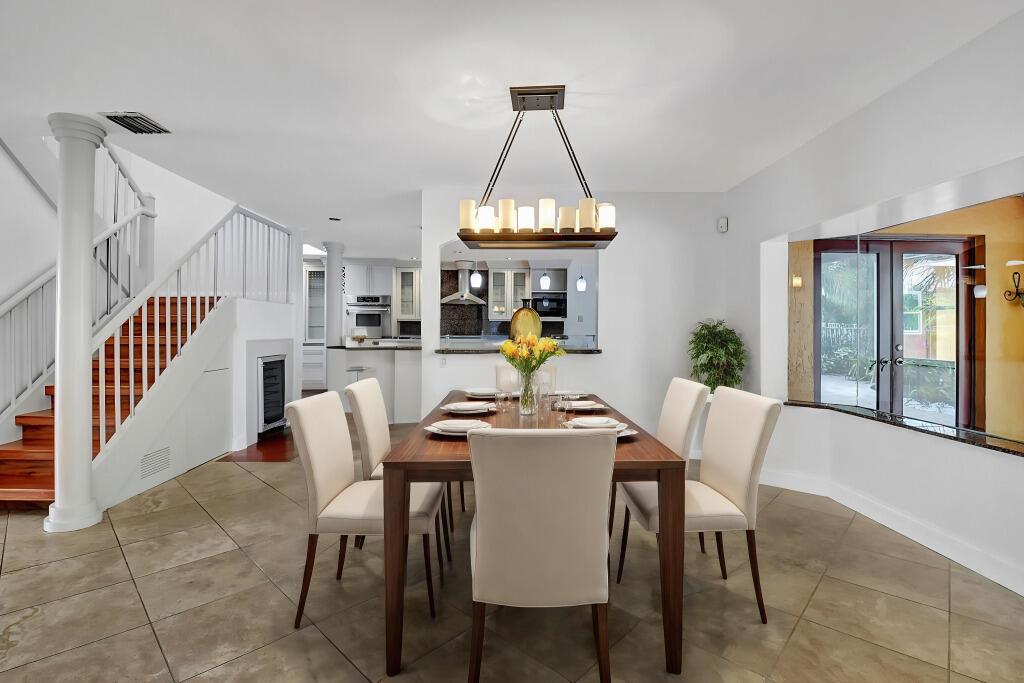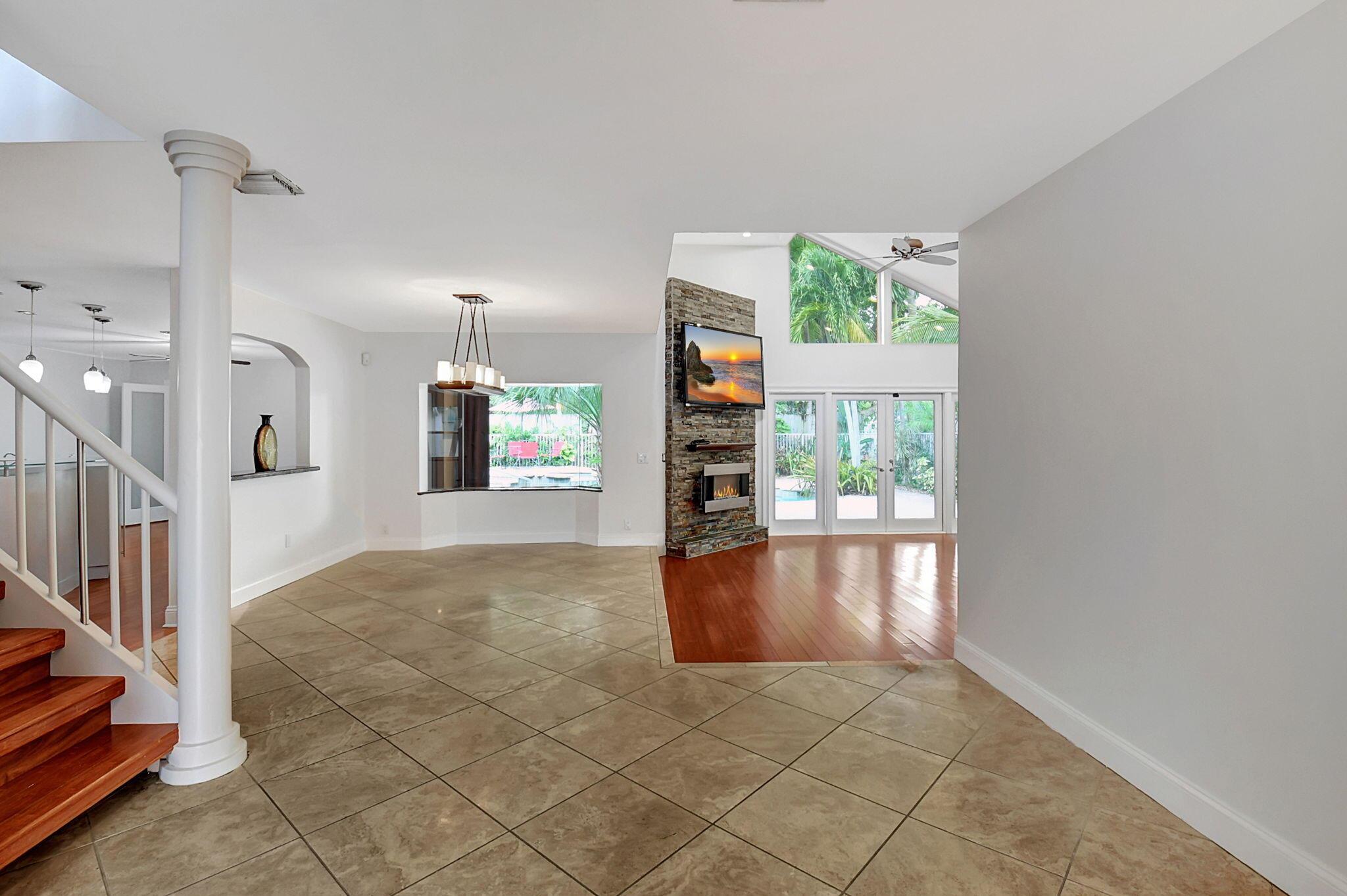 Fantastic home in a prime location! Features include Chicago brick driveway, tropical landscape, S Tile roof (2015), 2 A/C units (2016/17) Certainteed Residential Solar Tiles, large front yard, vaulted ceilings, tile and bamboo floors, fresh paint, stone fireplace with electric insert, kitchen cabinets were professionally painted, GE monogram refrigerator, Jenn Air double ovens, built in wine fridge, decorative glass cabinets, open floorplan with a ton of space, great for entertaining, Good size primary bedroom with large bathroom, walk in closet, and a balcony. The back yard is a tropical paradise with a kidney shaped pool with tropical landscape, pavers, tiki bar, pool and spa are heated. All of this within walking distance to shops, restaurants, and place of worship.
