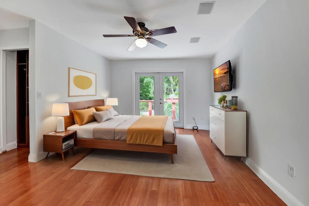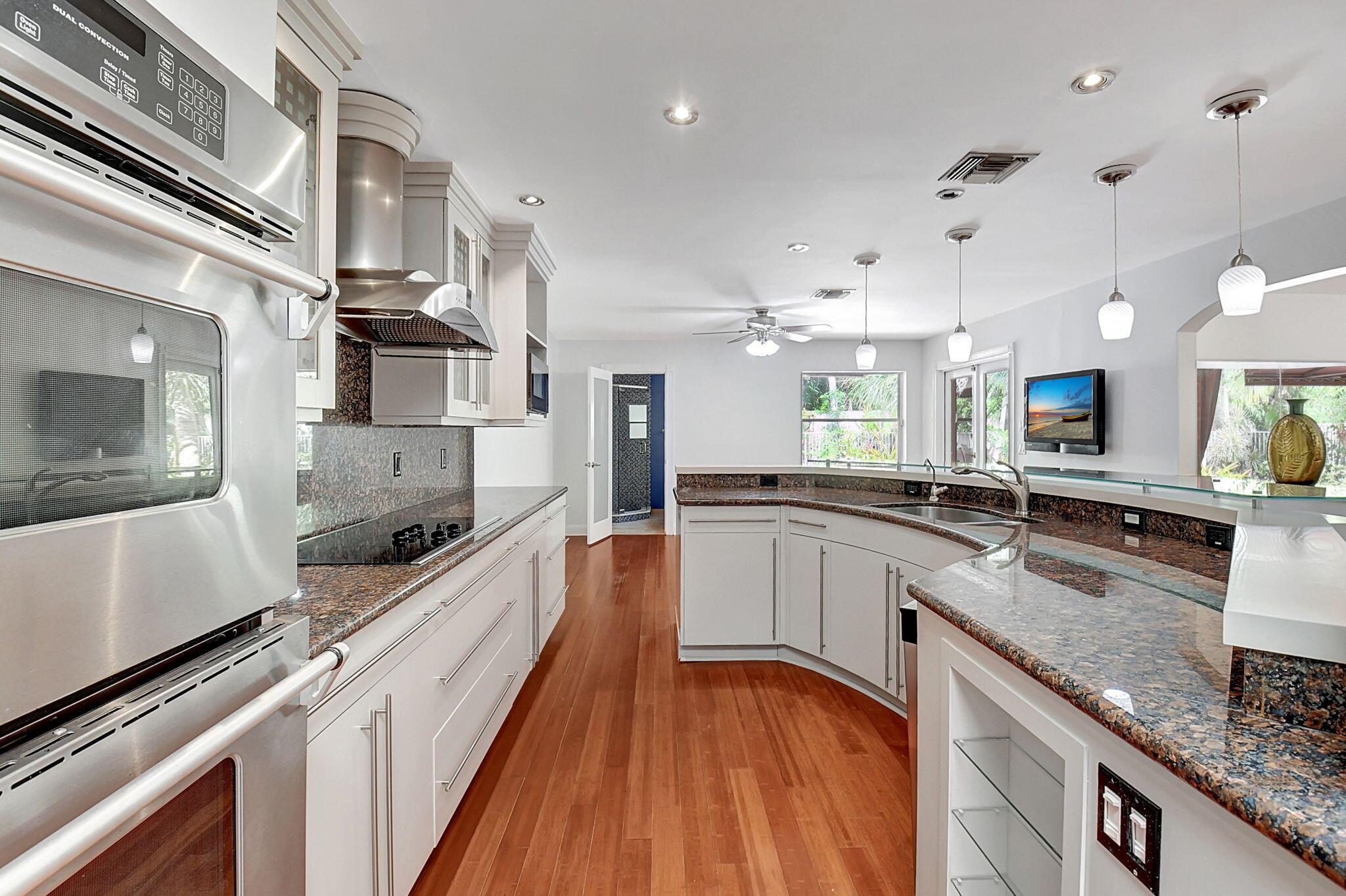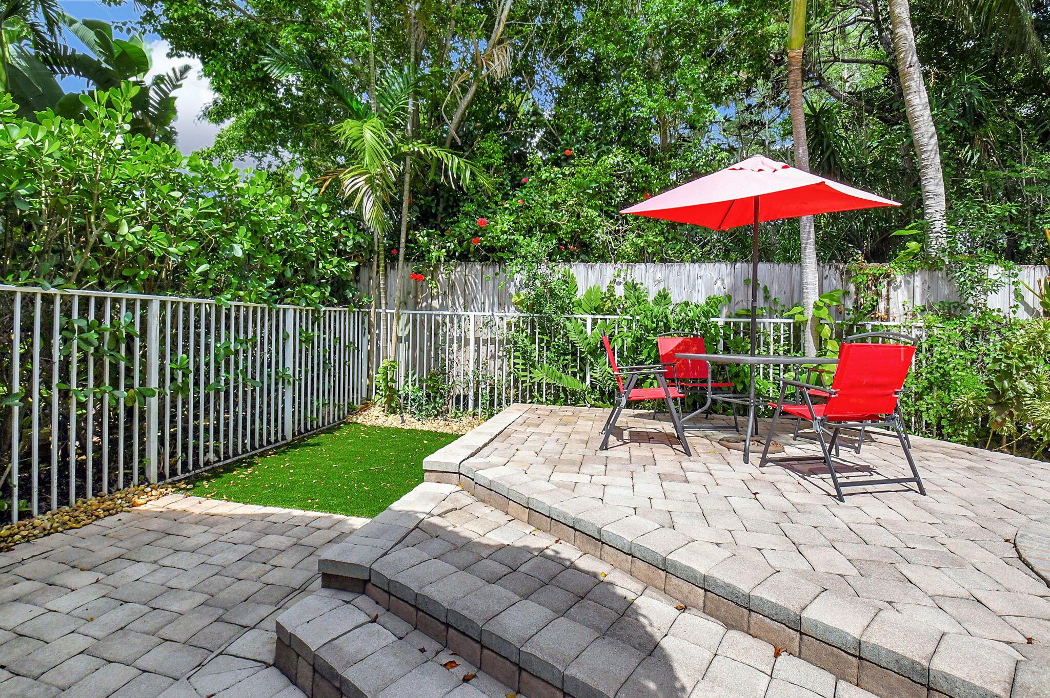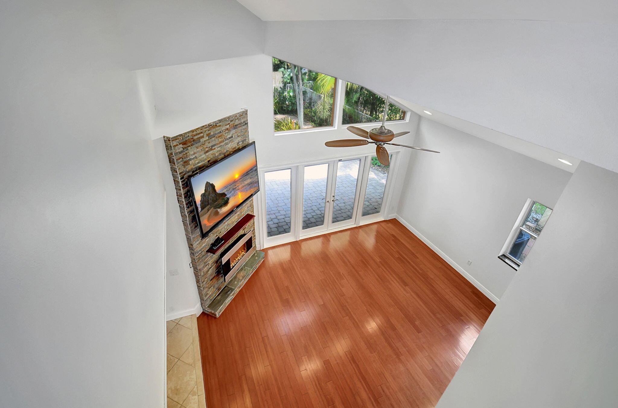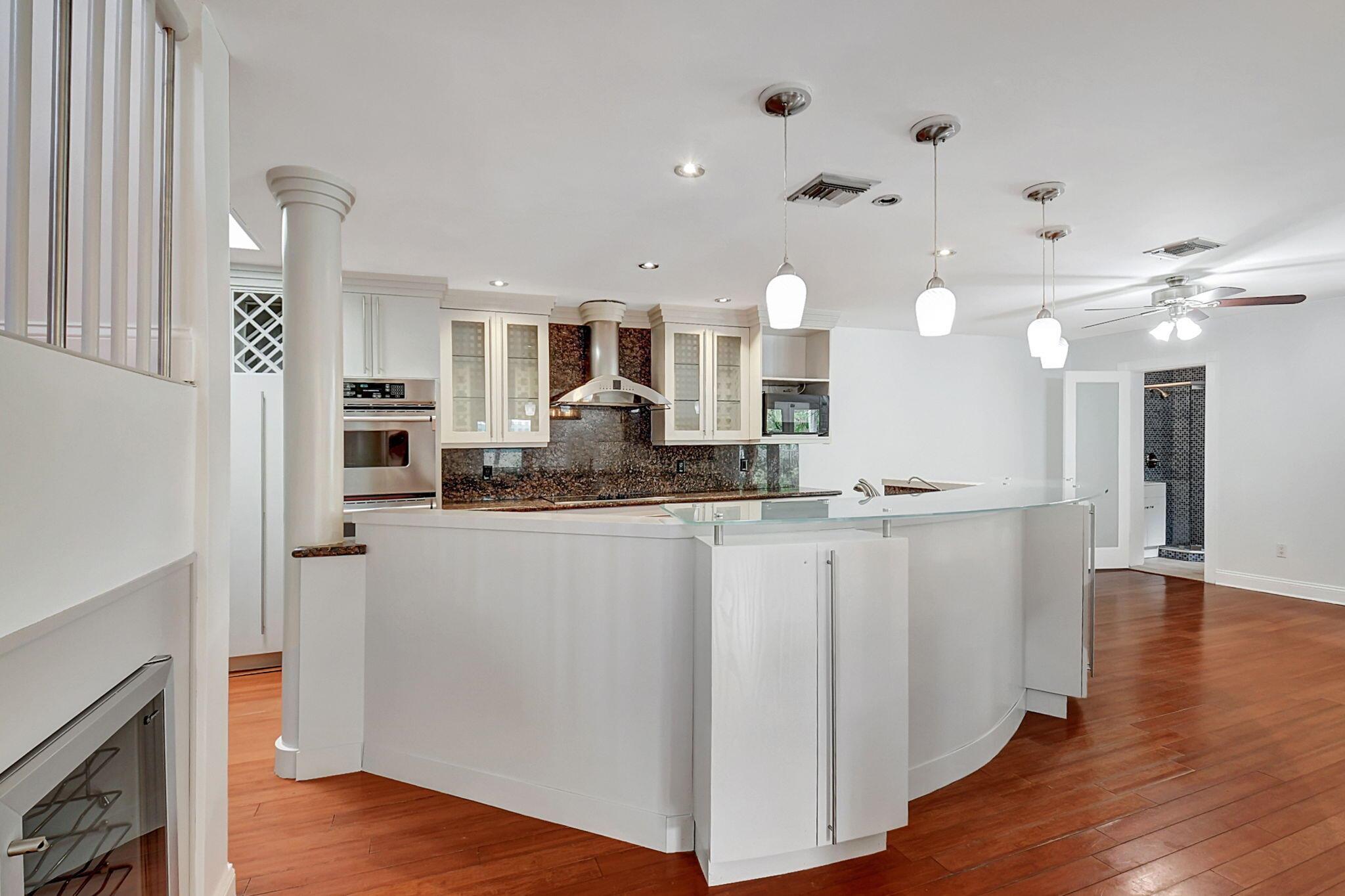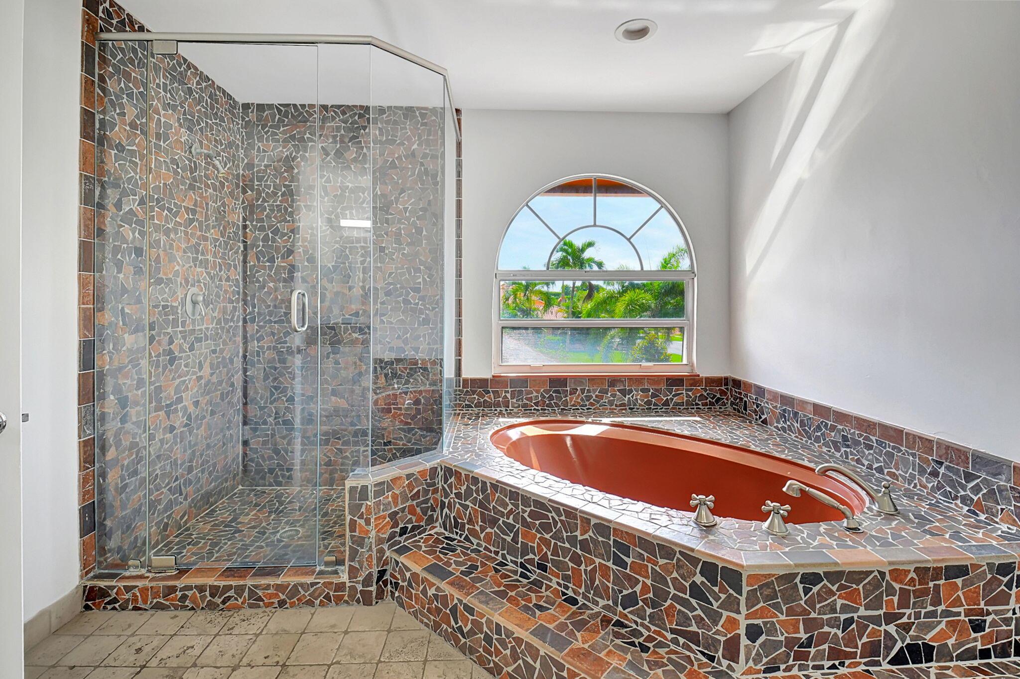 Fantastic home in a prime location! Features include Chicago brick driveway, tropical landscape, S Tile roof (2015), 2 A/C units (2016/17) Certainteed Residential Solar Tiles, large front yard, vaulted ceilings, tile and bamboo floors, fresh paint, stone fireplace with electric insert, kitchen cabinets were professionally painted, GE monogram refrigerator, Jenn Air double ovens, built in wine fridge, decorative glass cabinets, open floorplan with a ton of space, great for entertaining, Good size primary bedroom with large bathroom, walk in closet, and a balcony. The back yard is a tropical paradise with a kidney shaped pool with tropical landscape, pavers, tiki bar, pool and spa are heated. All of this within walking distance to shops, restaurants, and place of worship.