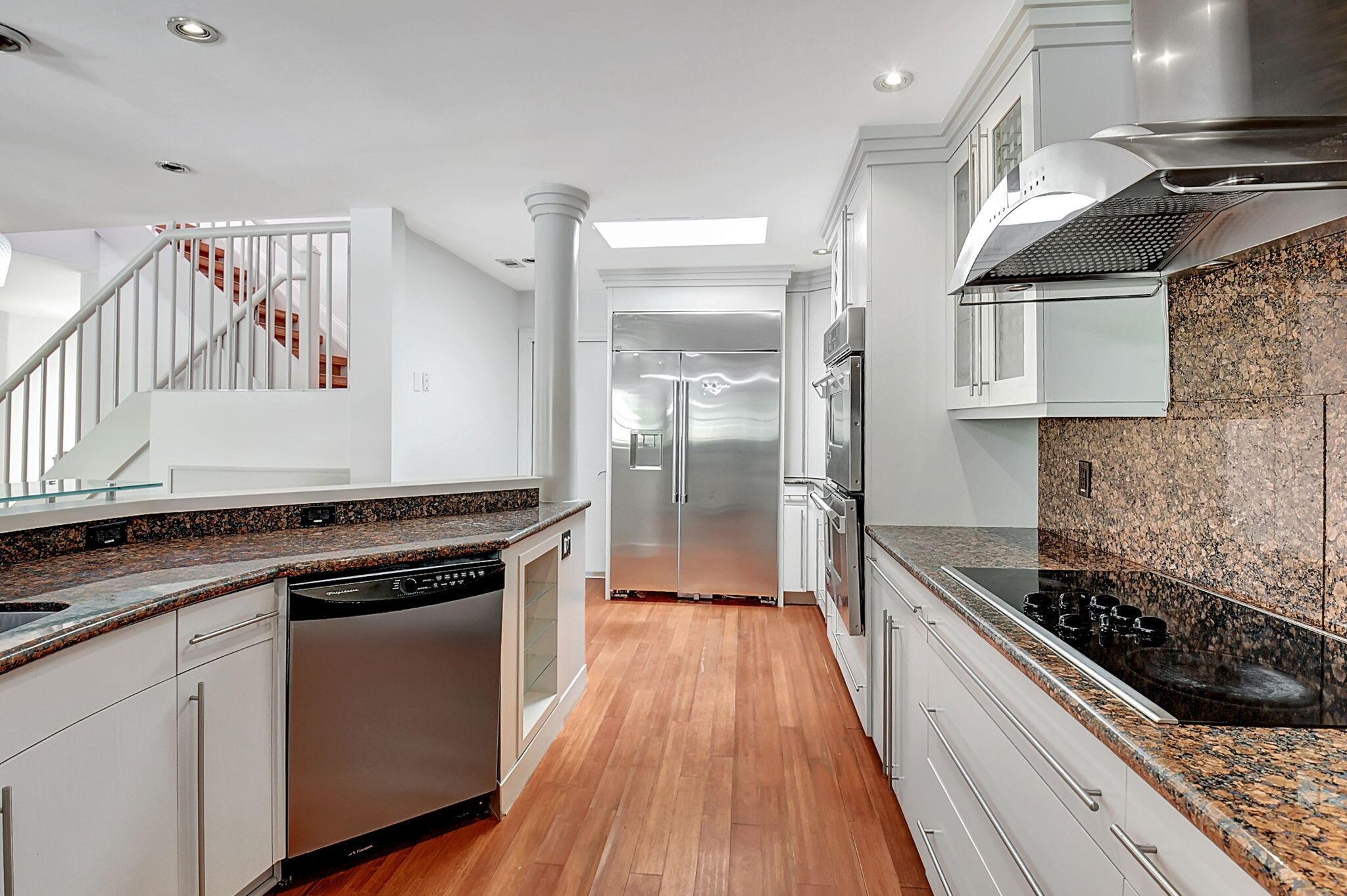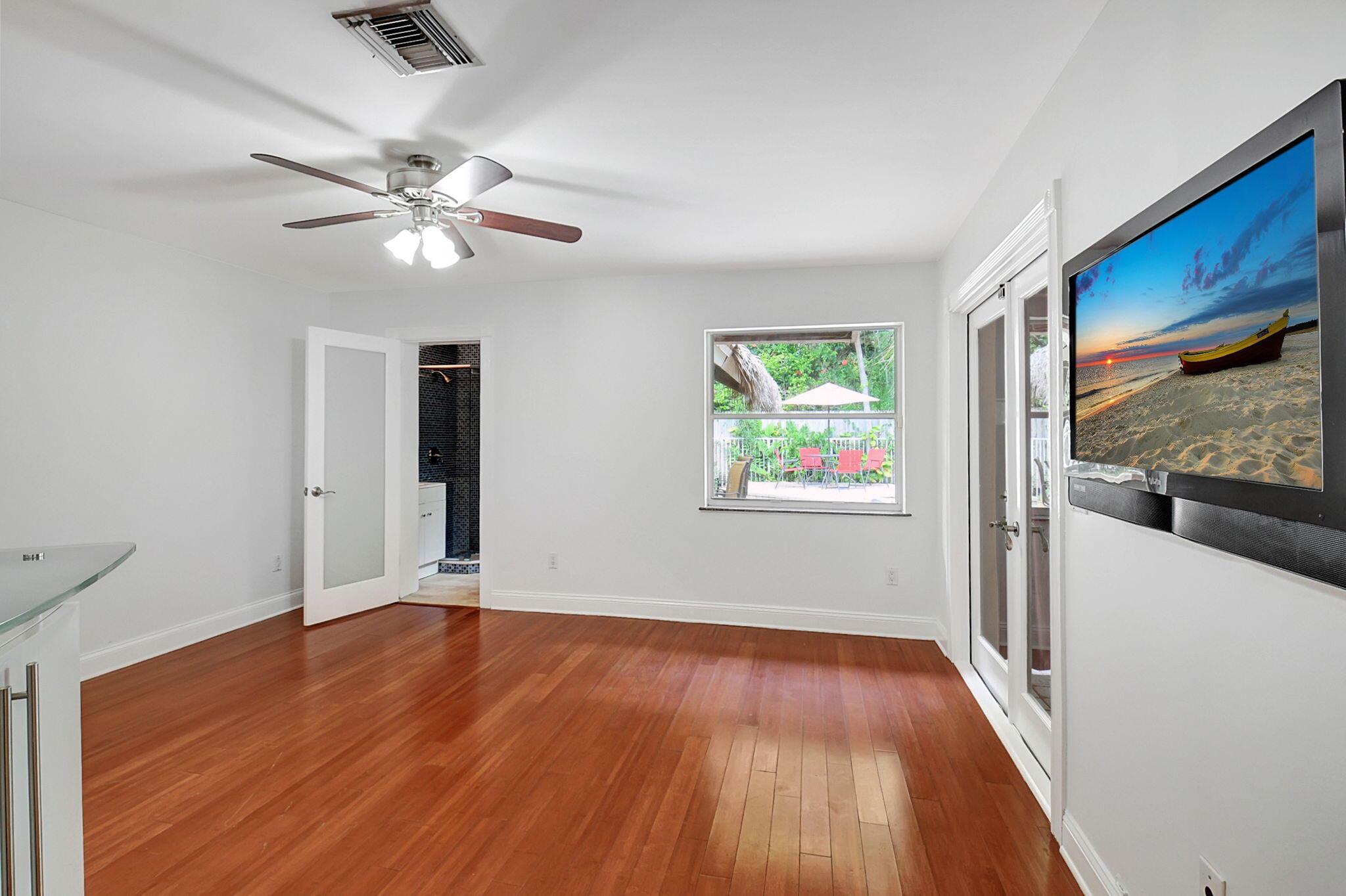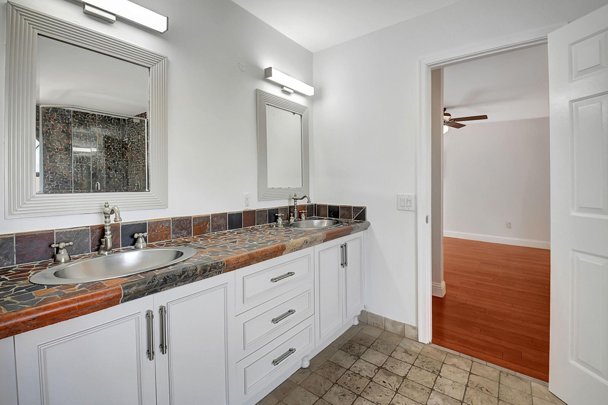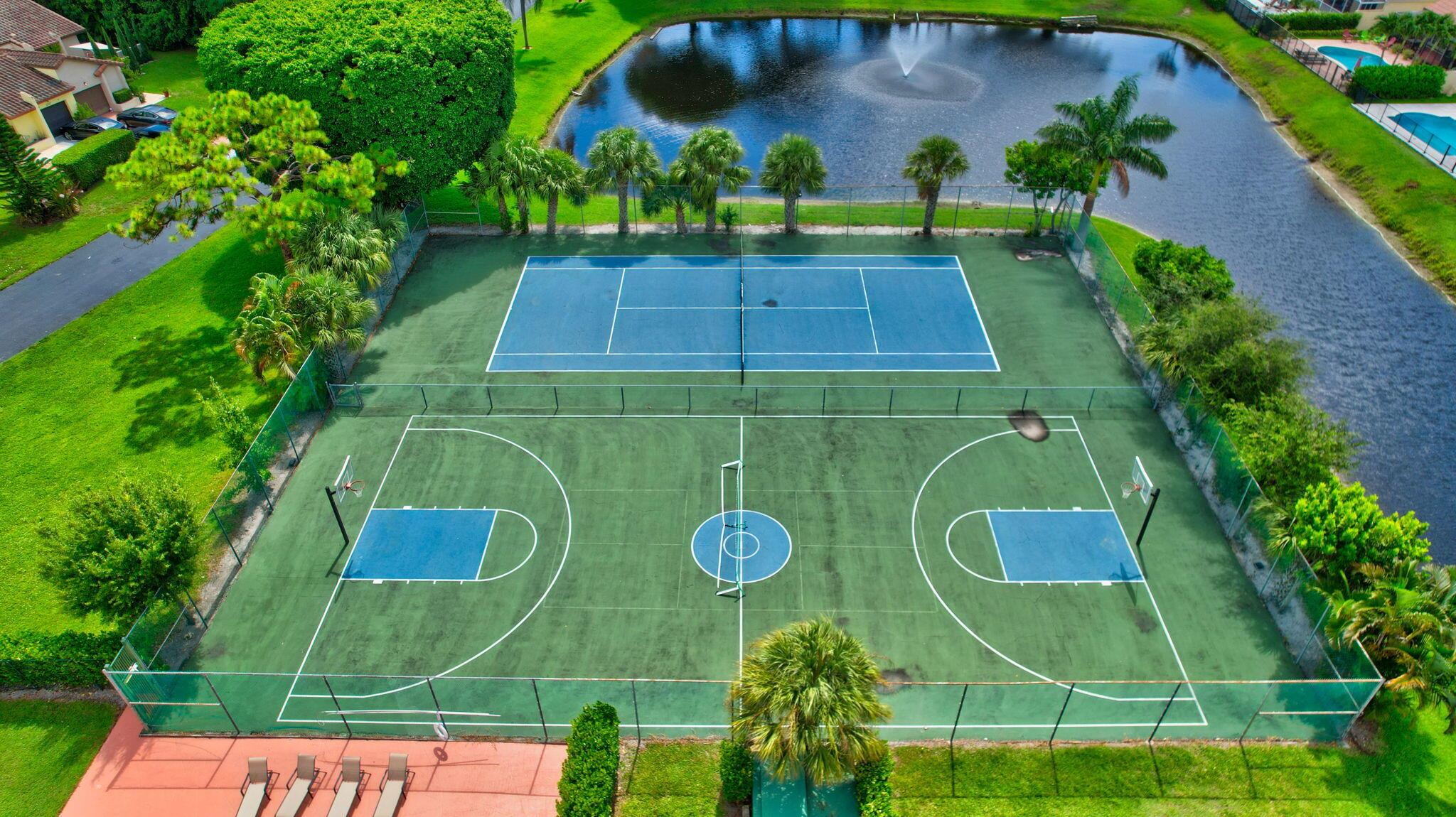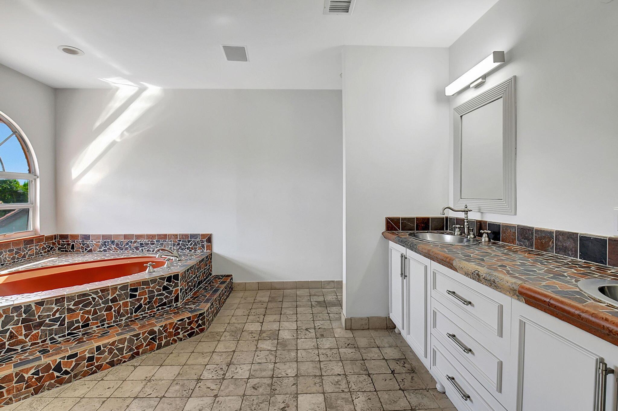 Fantastic home in a prime location! Features include Chicago brick driveway, tropical landscape, S Tile roof (2015), 2 A/C units (2016/17) Certainteed Residential Solar Tiles, large front yard, vaulted ceilings, tile and bamboo floors, fresh paint, stone fireplace with electric insert, kitchen cabinets were professionally painted, GE monogram refrigerator, Jenn Air double ovens, built in wine fridge, decorative glass cabinets, open floorplan with a ton of space, great for entertaining, Good size primary bedroom with large bathroom, walk in closet, and a balcony. The back yard is a tropical paradise with a kidney shaped pool with tropical landscape, pavers, tiki bar, pool and spa are heated. All of this within walking distance to shops, restaurants, and place of worship.