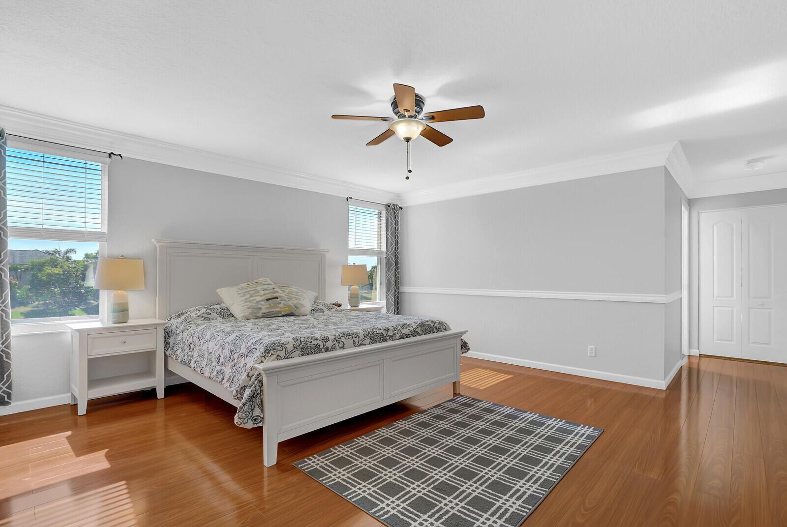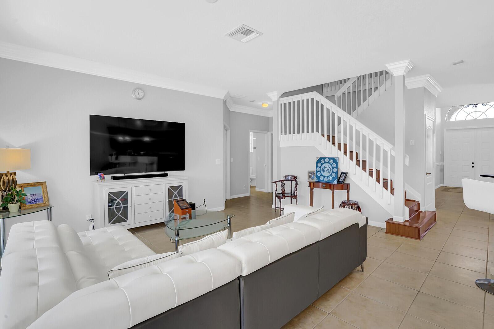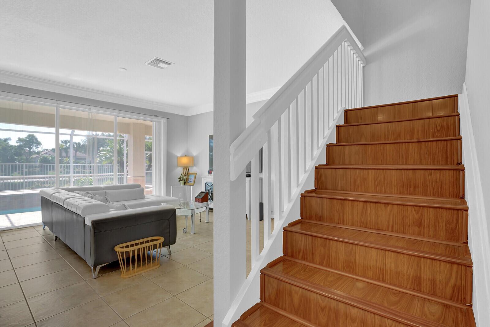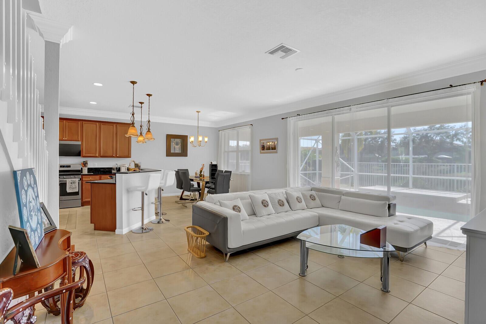 Welcome home to this gorgeous 4/3 lakefront pool home. This home has been meticulously maintained. One bedroom and bath are on the first floor along with the formal living/dining room. The family room opens to the oversized kitchen with upgraded cabinets, granite countertops, gas stove, stainless appliances,an island and snack bar which is perfect for entertaining. The spacious loft is perfect for a home office, extra living space or another bedroom. The primary suite will not disappoint with an ensuite bathroom plus an attached seating area with coffee bar. Enjoy South Florida living on your covered screened patio overlooking your private pool/spa and stunning Lake views. Freshly painted interior, crown molding and full hurricane protection with accordion shutters. Victoria Groves