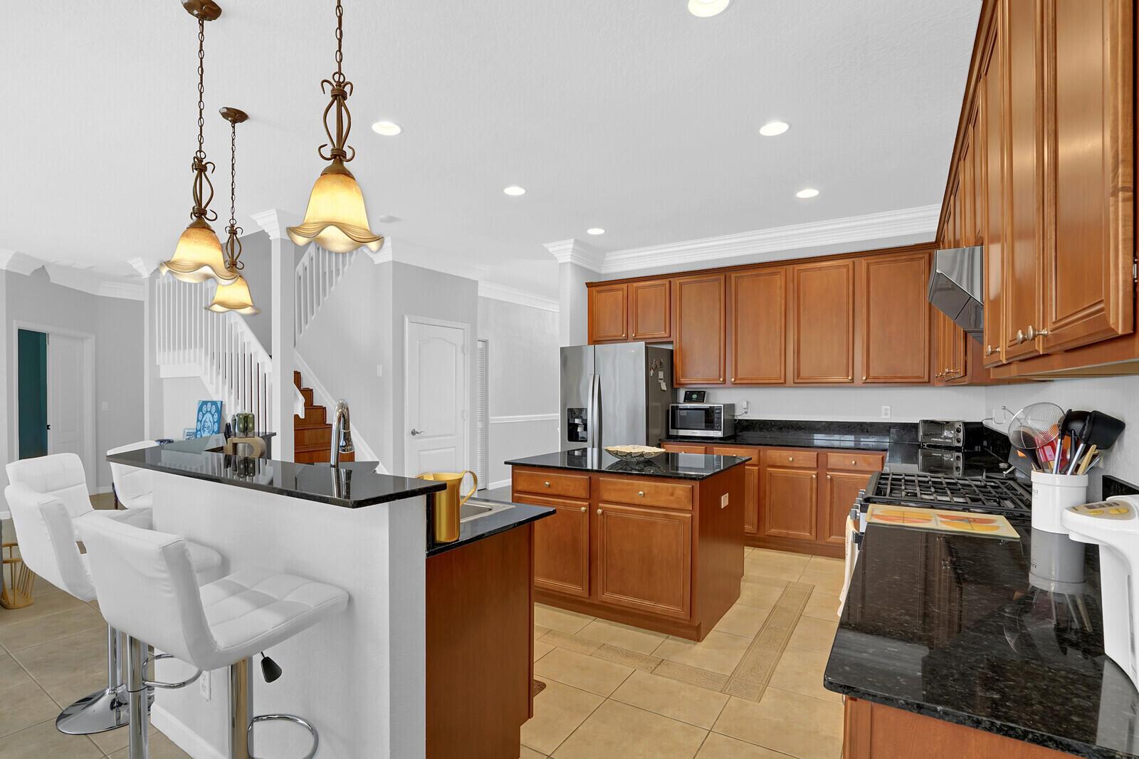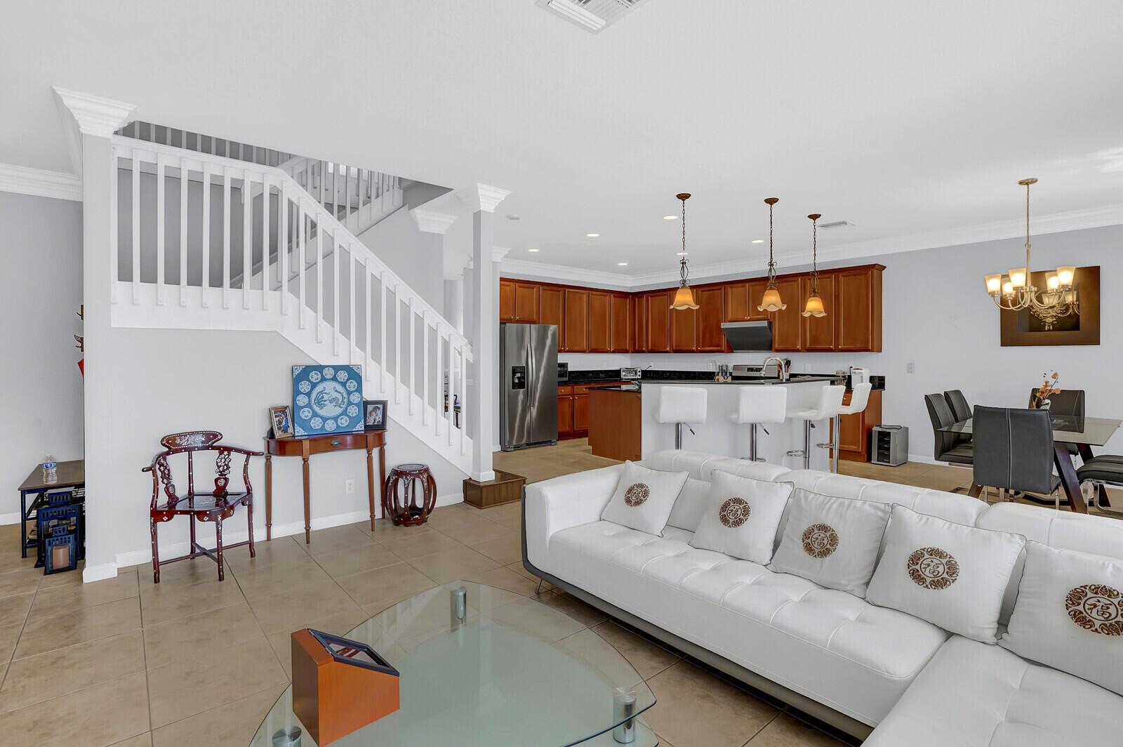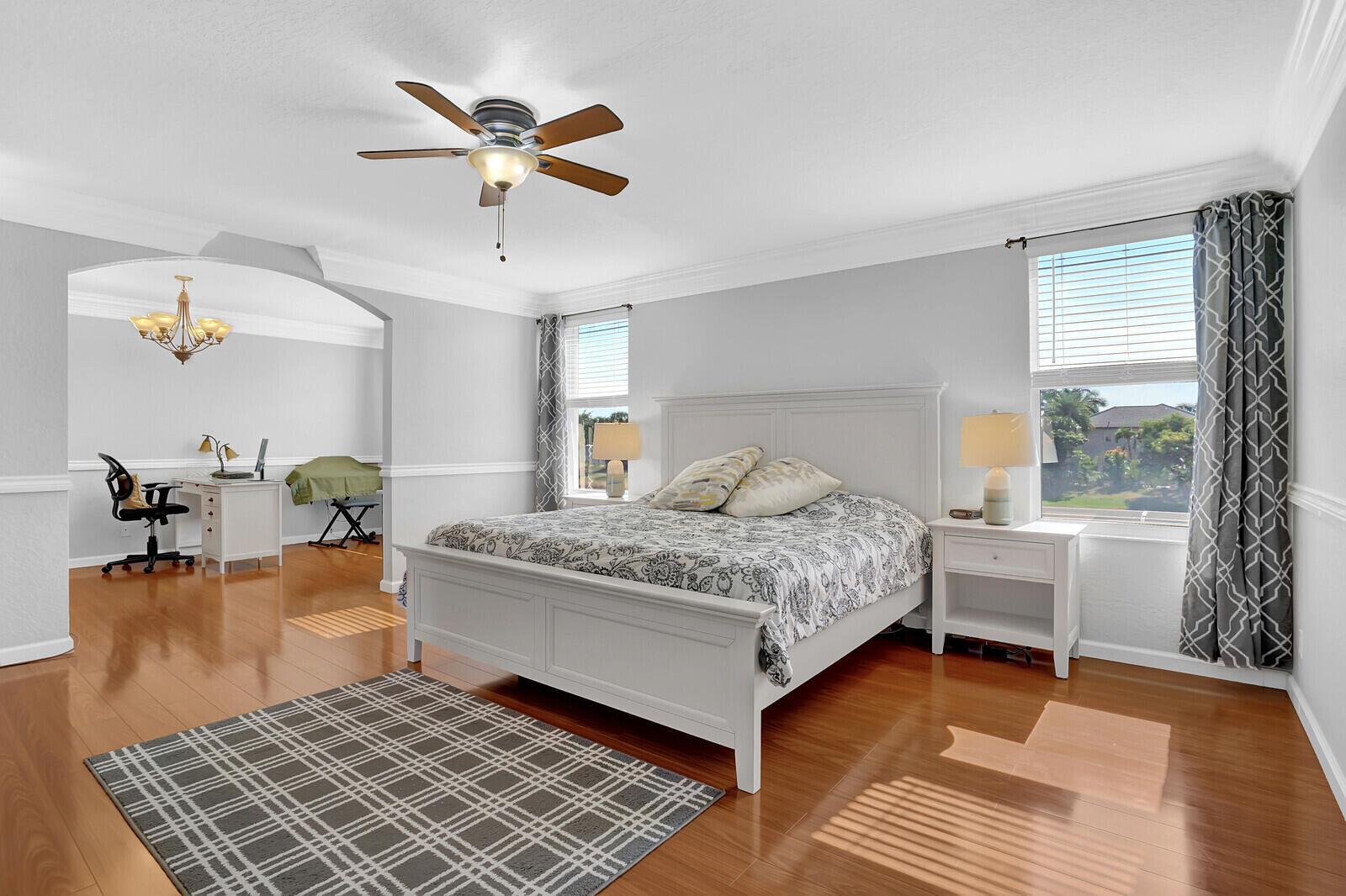 Welcome home to this gorgeous 4/3 lakefront pool home. This home has been meticulously maintained. One bedroom and bath are on the first floor along with the formal living/dining room. The family room opens to the oversized kitchen with upgraded cabinets, granite countertops, gas stove, stainless appliances,an island and snack bar which is perfect for entertaining. The spacious loft is perfect for a home office, extra living space or another bedroom. The primary suite will not disappoint with an ensuite bathroom plus an attached seating area with coffee bar. Enjoy South Florida living on your covered screened patio overlooking your private pool/spa and stunning Lake views. Freshly painted interior, crown molding and full hurricane protection with accordion shutters. Victoria Groves