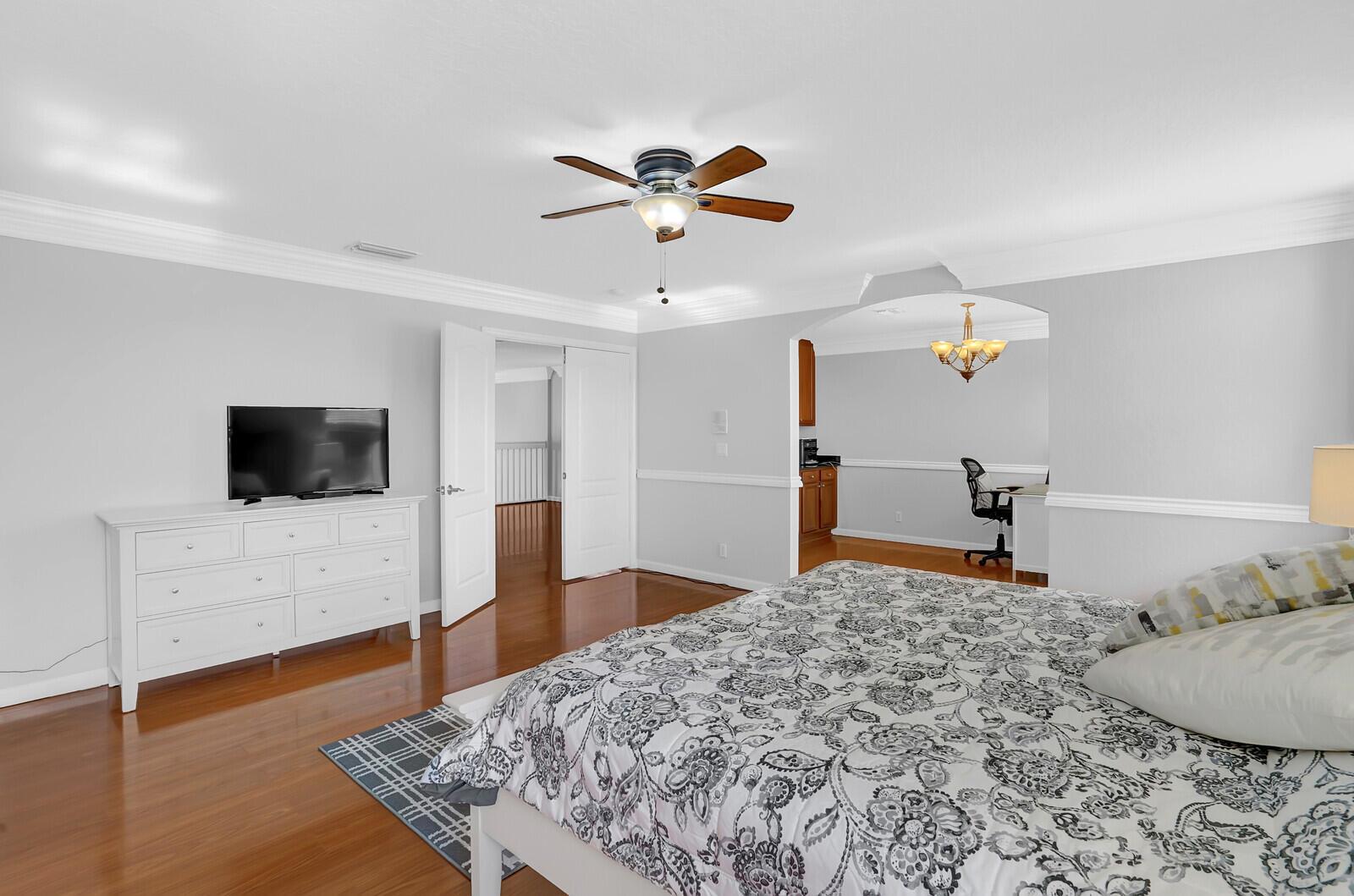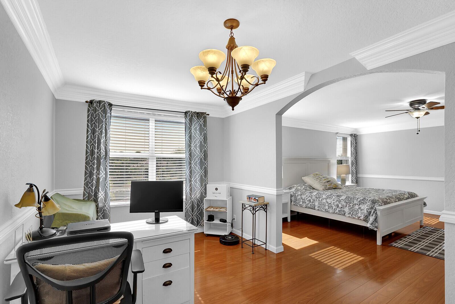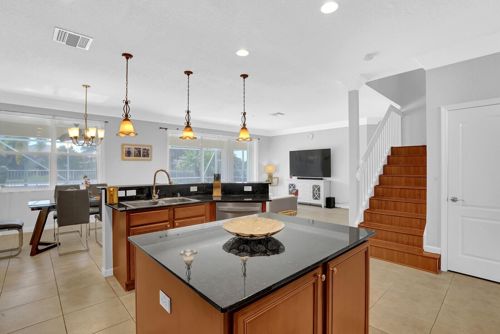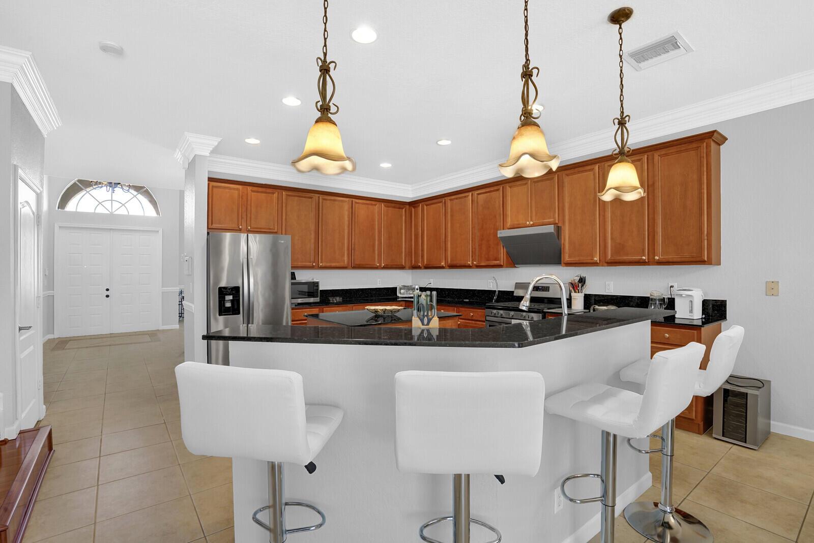 Welcome home to this gorgeous 4/3 lakefront pool home. This home has been meticulously maintained. One bedroom and bath are on the first floor along with the formal living/dining room. The family room opens to the oversized kitchen with upgraded cabinets, granite countertops, gas stove, stainless appliances,an island and snack bar which is perfect for entertaining. The spacious loft is perfect for a home office, extra living space or another bedroom. The primary suite will not disappoint with an ensuite bathroom plus an attached seating area with coffee bar. Enjoy South Florida living on your covered screened patio overlooking your private pool/spa and stunning Lake views. Freshly painted interior, crown molding and full hurricane protection with accordion shutters. Victoria Groves